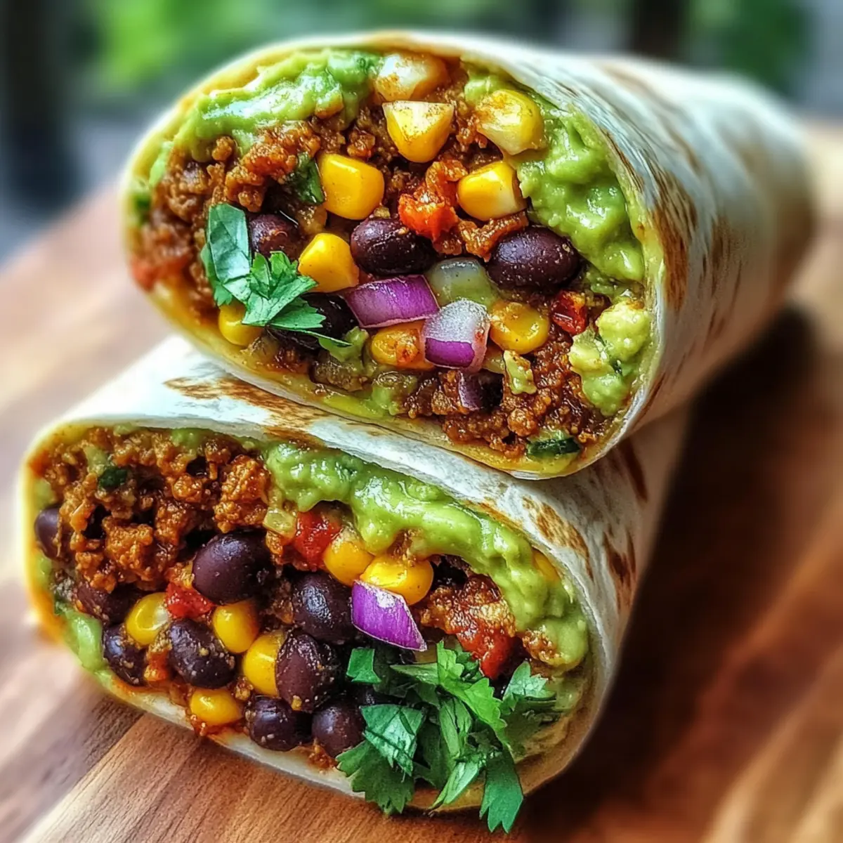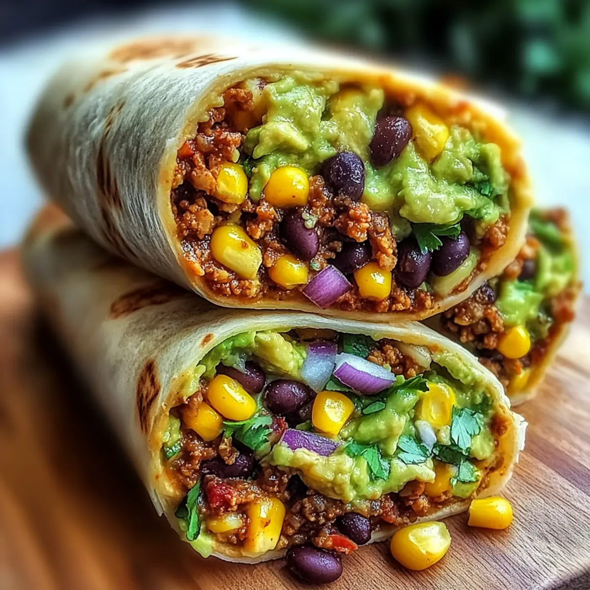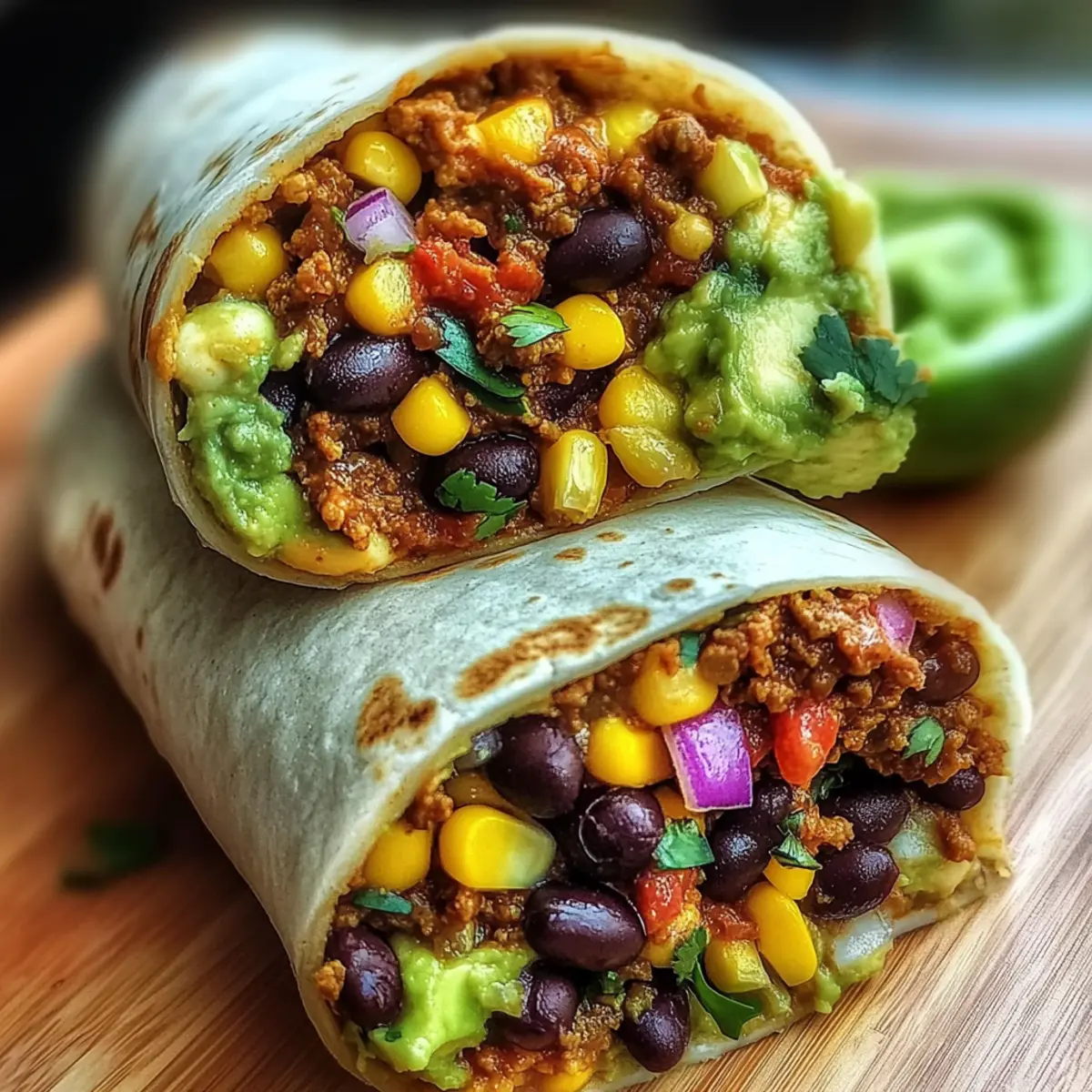 As I stood in my kitchen, with the clock ticking towards dinner time, a lightbulb went off—why not whip up some 10-Minute Vegan Burrito Wraps? These beauties are more than just a meal; they’re a versatile feast ready to satisfy your cravings, whether for a leisurely lunch or a speedy dinner on a hectic night. With creamy avocado, hearty black beans, and sweet corn all cradled in a warm tortilla, they’re not only quick to assemble but also a nutritious powerhouse bursting with flavor and color. What’s even better? You can customize every bite to match your taste. Ready to transform your mealtime routine without getting overwhelmed? Let’s dive into this delicious wrap adventure together! Why You’ll Crave These Burrito Wraps? Simplicity at Its Best: These 10-Minute Vegan Burrito Wraps come together in a snap, making dinner a breeze on busy nights. Flavor Explosion: With the creamy avocado and zesty spices, each bite is a delight that will please your palate. Customizable Goodness: Tailor them to your liking! Add your favorite veggies or spice levels for a unique twist every time. Nutritious Powerhouse: Packed with fiber and healthy fats, these wraps are not just filling; they’re a smart choice for any meal. Crowd-Pleaser: Perfect for families or gatherings, everyone will love the vibrant colors and tastes wrapped in each tortilla. Looking to diversify your meal prep? Check out these delightful Paper Egg Wraps or try the flavorful Chickpea Rice Bliss for more satisfying options. 10-Minute Vegan Burrito Wraps Ingredients For the Filling Ripe Avocado – Adds creaminess and healthy fats; you can use guacamole if available. Black Beans – Provides plant-based protein and fiber; use canned beans for a quick prep. Sweet Corn – Adds sweetness and texture; fresh or frozen corn works perfectly. Chopped Red Onion – Offers a sharp flavor contrast; green onions can be a milder substitute. Fresh Cilantro – Enhances flavor with a fresh herbal note; feel free to swap with parsley if desired. For the Seasoning Cumin Powder – Adds warm, earthy tones; adjust to taste based on spice preference. Chili Powder – Gives a mild heat; omit for a non-spicy version if you prefer. Salt & Black Pepper – Basic seasoning; adjust according to your taste needs. For the Wrap Tortillas – Encases the filling; gluten-free tortillas can also be used for a different dietary need. With these straightforward components, you’re just moments away from an unforgettable dish! Dive into these 10-Minute Vegan Burrito Wraps today, and let your kitchen adventure begin. Step‑by‑Step Instructions for 10-Minute Vegan Burrito Wraps Step 1: Prepare the Avocado Start by slicing the ripe avocado in half, removing the pit, and scooping the flesh into a medium bowl. Use a fork to mash it to your desired creaminess while adding a splash of fresh lime juice. This will not only keep the avocado vibrant but also add a zesty flavor to the filling for your 10-Minute Vegan Burrito Wraps. Step 2: Mix the Filling Next, gently fold in the rinsed black beans, sweet corn, chopped red onion, and fresh cilantro to your mashed avocado. Use a spatula to ensure everything is well combined, making sure to maintain some texture in the mixture. This colorful and nutrient-packed filling is the heart of your delicious burrito wraps. Step 3: Season the Mixture Sprinkle the cumin powder, chili powder, salt, and black pepper over the filling blend. Carefully fold the seasoning into the mixture to evenly distribute the spices without over-mixing. The fragrant spices are key to enhancing the rich flavors of the 10-Minute Vegan Burrito Wraps, making them irresistible. Step 4: Warm the Tortillas Heat a dry skillet over medium heat and warm each tortilla for about 15–20 seconds on each side. Alternatively, you can wrap them in a damp paper towel and microwave for 30–45 seconds. This step ensures your tortillas are pliable and ready to wrap around the flavorful filling, preventing any tearing. Step 5: Assemble the Wraps Lay the warm tortilla flat on a clean surface. Spoon a quarter of the filling mixture into the center, shaping it into a log while leaving some space at the edges. This setup allows for easier folding and wrapping of your 10-Minute Vegan Burrito Wraps, creating a delightful presentation. Step 6: Roll and Secure the Burritos Fold in the short sides of the tortilla, then start rolling tightly from the bottom edge upwards until the burrito is sealed. Make sure to apply gentle pressure to secure it while ensuring the filling stays compact. This rolling technique helps hold together all the luscious ingredients within your burrito wraps. Step 7: Serve and Enjoy Slice the burritos diagonally for a beautiful presentation, exposing the vibrant filling inside. Serve them immediately while they’re still warm, perhaps with a side of fresh salsa or guacamole. These 10-Minute Vegan Burrito Wraps are perfect for any meal and are sure to become a favorite in your culinary repertoire. What to Serve with 10-Minute Vegan Burrito Wraps These delightful wraps can be transformed into a full meal with just the right sides and drinks for a truly satisfying experience. Creamy Guacamole: This rich dip enhances the flavor while providing a creamy contrast, perfect for slathering on each bite. Fresh Salsa: A zesty salsa made from ripe tomatoes, onions, and cilantro brings a refreshing kick that complements the savory burritos. Crispy Sweet Potato Fries: The natural sweetness and crunch of these fries offer a delightful texture contrast to the soft wraps. Zesty Lime Rice: Fluffy rice with a splash of lime and herbs adds a tangy touch that pairs beautifully with the burrito’s flavors. Mexican Street Corn Salad: This vibrant salad features grilled corn and spices, providing a sweet and smoky element that lights up the palate. Roasted Veggie Platter: A medley of colorful roasted vegetables adds warmth and a satisfying bite, enhancing the overall meal 