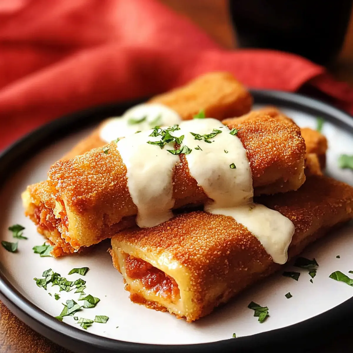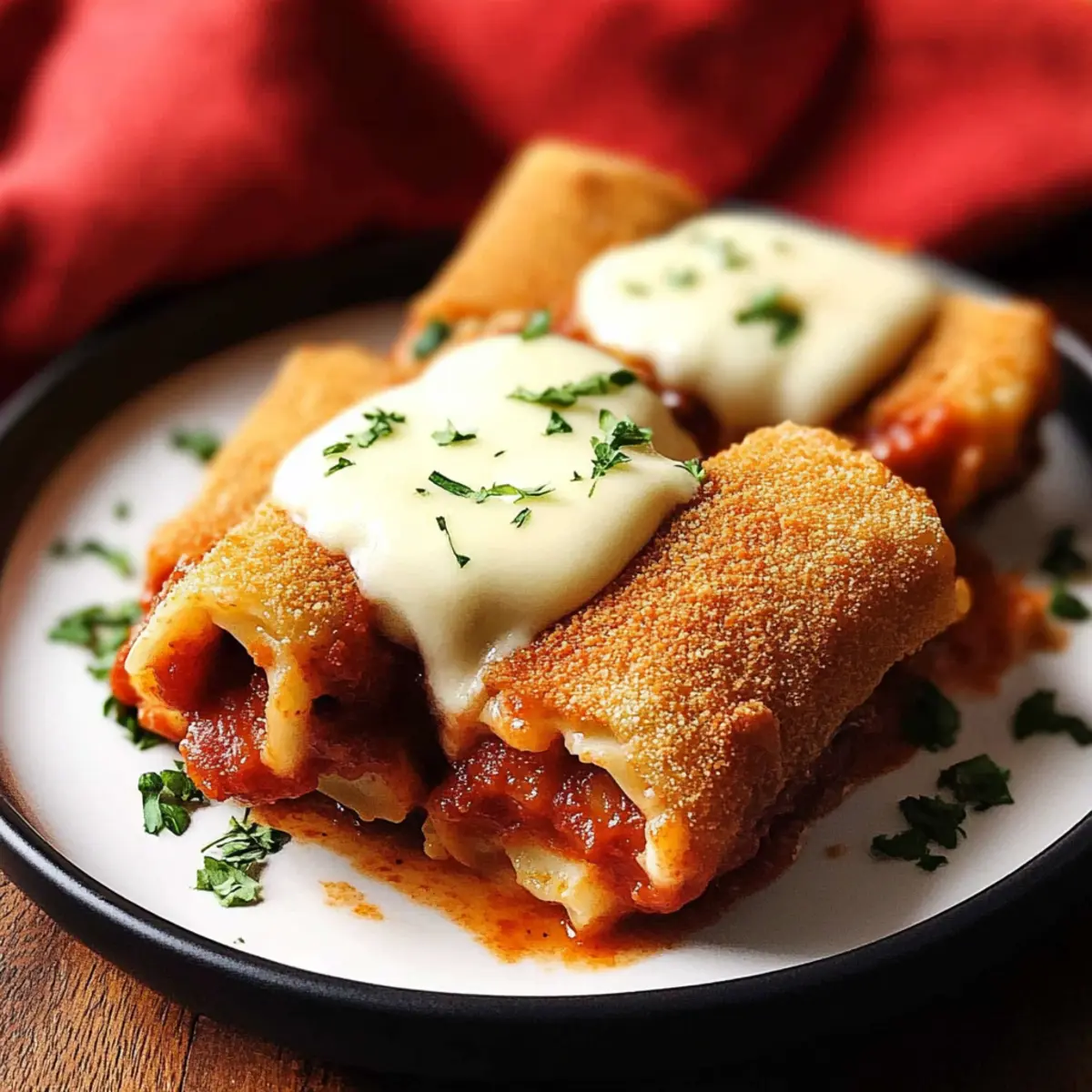 Over the clinking of glasses and laughter around me, I found myself reminiscing about the first time I tasted Air Fryer Lasagna Fritta. The crispy, golden exterior held a treasure trove of five delightful cheeses tucked inside, making it a mouthwatering experience I couldn’t resist recreating. This healthier version captures all the magic of that beloved Olive Garden appetizer, offering a quick prep solution for busy weeknights or elegant gatherings. Whether enjoyed solo or served alongside homemade marinara sauce, this Italian comfort food delivers warmth and satisfaction in every bite. Are you curious about how to whip up these delightful frittas for your next occasion? Why You’ll Adore Air Fryer Lasagna Fritta Simplicity: The straightforward recipe requires minimal effort, making it perfect for both novice cooks and experienced chefs. Flavor Explosion: With a tantalizing blend of five cheeses, each bite is oozing with melty goodness. Versatility: Customize your frittas with various fillings like spinach artichoke or seafood to suit any taste preference! Time-Saving: Quick prep and cooking times mean you can indulge in gourmet flavors without hours in the kitchen. Crowd-Pleasing: Serve this dish at gatherings, and watch it disappear—everyone loves a crispy, cheesy delight! Whether you pair it with homemade marinara or Alfredo sauce, this recipe is sure to impress. For more delicious ideas, check out my Air Fryer Grilled Cheese or Seafood Lasagna Shrimp. Air Fryer Lasagna Fritta Ingredients For the Filling Lasagna Noodles – The base of the dish, providing structure; opt for no-boil noodles for quicker prep. Whole Milk Ricotta Cheese – Creamy filling component adding moisture; substitute with cottage cheese if preferred. Freshly Grated Mozzarella Cheese – Provides gooey, melty texture; use low-moisture mozzarella for best results. Freshly Grated Parmesan Cheese – Adds nice saltiness and depth; use aged Parmesan for richer flavor. Freshly Grated Romano Cheese – Delivers a savory punch; it can be swapped with Pecorino Romano. Freshly Grated Asiago Cheese – Imparts a nuttiness to the filling; substitute with additional Parmesan if unavailable. Italian Seasoning – Enhances flavor complexity of the cheese filling; homemade mix of dried oregano, basil, and thyme works beautifully. Large Eggs – Binds the cheese mixture together; for a vegan option, use flaxseed meal as a substitute. For the Coating Italian Breadcrumbs or Panko – Coats the rolled lasagna for crispiness; gluten-free versions are available if desired. Olive Oil (for breading) – Adds richness and helps achieve a golden color; can be replaced with canola oil if preferred. For Serving Marinara Sauce – Serves as a dipping sauce that enhances the dish’s flavor profile; consider homemade for ultimate freshness. Homemade Alfredo Sauce – Optional sauce that pairs well; feel free to add extra cheese if you desire a creamier texture. Get ready to create your favorite Air Fryer Lasagna Fritta for your next gathering or cozy night in! Step‑by‑Step Instructions for Air Fryer Lasagna Fritta Step 1: Prepare Noodles Begin by boiling your lasagna noodles according to package instructions until they’re al dente, which usually takes about 8–10 minutes. Once done, drain them and rinse under cold water to stop the cooking process. If necessary, trim the edges for a neat finish, setting the noodles aside to cool completely. Step 2: Make Filling In a large mixing bowl, combine the whole milk ricotta, freshly grated mozzarella, Parmesan, Romano, and Asiago cheeses along with Italian seasoning. Crack in the large eggs to bind the mixture together. Stir until you achieve a creamy, well-blended filling that promises deliciousness. Step 3: Roll Noodles Take a lasagna noodle and spread a generous layer of the cheese filling evenly over its surface, ensuring you leave a little space at the edges. Starting at one end, gently roll the noodle into a tight, 2–3 inch cylinder. Repeat this process with the remaining noodles, forming a delightful collection of rolled frittas. Step 4: Freeze Prepare a container with parchment paper lining the bottom. Place your rolled lasagna frittas inside, ensuring they don’t touch each other. Pop them in the freezer for about 1 to 2 hours, which will help them hold their shape and prevent any cheese from leaking during cooking. Step 5: Prepare Breading In a shallow dish, mix Italian breadcrumbs or panko with a drizzle of olive oil. Microwave this mixture for about 30 seconds until it’s lightly toasted. Allow it to cool, then blend in some freshly grated Parmesan for an extra layer of flavor that will crisp up beautifully when you air fry the frittas. Step 6: Bread the Rolls Take each frozen frittas and dip it first into the egg wash, ensuring an even coating. Next, roll it in the breadcrumb mixture, pressing gently to achieve a thick, crunchy crust. This step is crucial for making your Air Fryer Lasagna Fritta crispy and golden upon cooking. Step 7: Air Fry Preheat your air fryer to 400°F (200°C). Lightly spray the basket with oil to prevent sticking, then arrange your breaded rolls in a single layer without overcrowding. Lightly spray the tops of the frittas with oil and air fry for 8 minutes. Carefully flip them over and continue frying for an additional 6–8 minutes or until they are golden brown and crispy. Step 8: Pan-Fry (alternative method) If you prefer a traditional frying method, heat some canola oil in a skillet over medium heat. Once the oil is hot, carefully add the rolls and pan-fry each side for about 2 minutes until they turn a rich golden color. Ensure that all sides are cooked evenly for a deliciously crispy texture. Step 9: Serve Once your Air Fryer Lasagna Fritta are golden and crispy, remove them from the fryer or skillet and place them on a serving platter. Drizzle with warm marinara or Alfredo sauce, or serve them on the side for dipping. Garnish with fresh bas