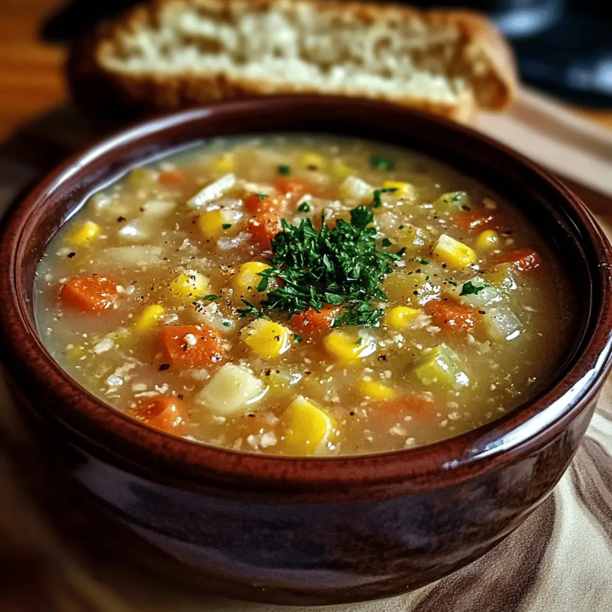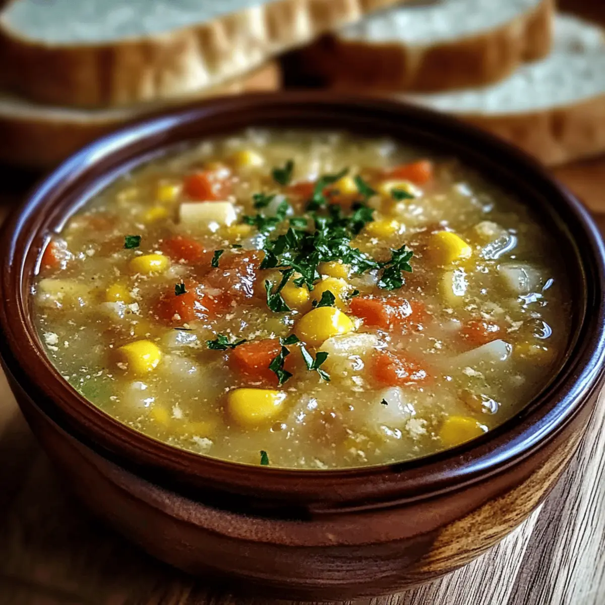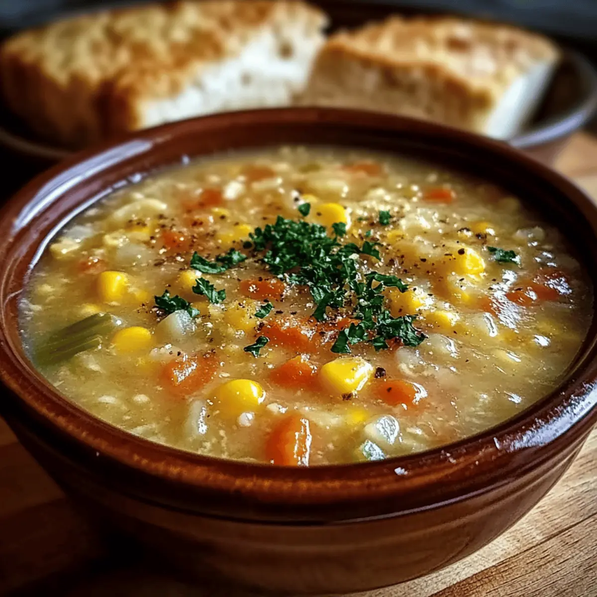 As snowflakes dance outside my kitchen window, there’s nothing quite like the aroma of Amish Snow Day Soup warming up my home. This cozy, hearty dish fills the air with comforting scents, inviting everyone to gather around the table. Within just 45 minutes, you can create a delicious meal that’s adaptable to whatever you have on hand, making it a perfect solution for busy weeknights or unexpected gatherings. Packed with vibrant vegetables and a creamy touch, this soup is not only a delightful winter treat but also a low-carb and dairy-free option for those looking to indulge without the guilt. Ready to make every chilly evening a little brighter? Let’s dive into this soul-soothing recipe that promises to become a family favorite! Why is Amish Snow Day Soup special? Comforting Warmth: This soup radiates warmth on cold winter days, making it the perfect remedy for chilly evenings. Nutritious Veggies: Packed with a colorful array of vegetables, it’s a wholesome meal that nourishes both body and soul. Flavorful Flexibility: Adapt it to your pantry with endless variations — try it dairy-free with coconut milk or low-carb with zucchini noodles. Quick & Easy: Whip it up in only 45 minutes, making it an ideal option for busy families or last-minute gatherings. Crowd-Pleasing Delight: Serve it with crusty bread or a fresh salad, and watch it become a favorite at the table. Explore more hearty options like Turkey Vegetable Soup or warm up with a comforting Colcannon Soup Flavorful for those cozy nights! Amish Snow Day Soup Ingredients For the Base • Olive oil – Adds richness and enhances flavor; can use any cooking oil of choice. • Onion – Provides a fragrant aromatic base; shallots or leeks can be used for a milder taste. • Garlic – Infuses depth and fragrance; garlic powder is a quick alternative. • Carrots – Contributes sweetness and color; other root vegetables like parsnips can be added. • Celery – Adds crunch and flavor; fennel can provide a different profile. • Potato – Offers substance and creaminess when cooked; substitute with cauliflower for a low-carb version. For the Main Elements • Corn – Provides texture and natural sweetness; frozen corn is a convenient swap. • Diced tomatoes – Contributes acidity and moisture; fresh tomatoes can be used but adjust cooking time. • Vegetable or Chicken broth – Serves as the soup base, adding both liquid and flavor; use water with seasoning for a lighter option. • Dried thyme and oregano – Introduce herbaceous notes; fresh herbs can elevate flavor if available. • Salt and pepper – Essential for seasoning; no substitutions allowed. For the Heartiness • Egg noodles (or pasta) – Adds a comforting heartiness; opt for zucchini noodles for a low-carb option. • Heavy cream – Optional for creaminess; replace with coconut milk for a dairy-free alternative. For the Finishing Touch • Fresh parsley – Adds a pop of color for garnish; no substitutions necessary. This Amish Snow Day Soup is a delightful dish that nurtures both the body and spirit, perfect for cozy winter days! Step‑by‑Step Instructions for Amish Snow Day Soup Step 1: Sauté the Aromatics In a large pot, heat 2 tablespoons of olive oil over medium heat. Add 1 diced onion and sauté for about 5 minutes, or until the onion becomes translucent and fragrant. This forms the aromatic base for your Amish Snow Day Soup. Stir occasionally to prevent sticking and ensure even cooking. Step 2: Add the Vegetables Next, stir in 2 minced garlic cloves, 2 chopped carrots, and 2 chopped celery stalks. Cook for an additional 5 minutes until the vegetables soften slightly; they should be vibrant and Aromatic. This step builds the hearty foundation of your soup while adding delightful depth to the flavor. Step 3: Incorporate the Main Ingredients Add 2 cubed potatoes, 1 cup of corn, and 1 can of diced tomatoes along with their juice into the pot. Pour in 4 cups of vegetable or chicken broth. Season the mixture with 1 teaspoon of dried thyme, 1 teaspoon of oregano, and a pinch of salt and pepper. Stir well to combine and allow the mixture to come together beautifully. Step 4: Simmer for Flavor Bring the soup to a gentle boil over medium-high heat, then reduce the heat to low and cover the pot. Let it simmer for about 20 minutes, or until the potatoes are tender but not mushy. The flavors will meld together, creating a rich base for your Amish Snow Day Soup. Step 5: Add Noodles and Cream Once the potatoes are cooked through, stir in 1 cup of egg noodles (or pasta) and 1/2 cup of heavy cream if desired. Allow the soup to heat through for another 5 minutes, stirring occasionally. The noodles should become tender without overcooking, and the cream adds a luscious touch to the soup. Step 6: Final Adjustments and Serve Before serving, taste the soup and adjust the seasonings with extra salt and pepper if needed. Once satisfied, ladle your warm Amish Snow Day Soup into bowls and garnish with freshly chopped parsley for a burst of color and freshness. Serve hot and enjoy the cozy warmth of this delightful dish! How to Store and Freeze Amish Snow Day Soup Fridge: Store your soup in an airtight container for up to 3 days. Be sure to cool it completely before refrigerating to maintain freshness. Freezer: For longer storage, freeze the soup in freezer-safe containers for up to 3 months. Avoid adding noodles before freezing to prevent mushiness. Thawing: To enjoy your Amish Snow Day Soup later, thaw it overnight in the refrigerator. Reheat gently on the stove over low heat, stirring occasionally. Reheating: If the soup thickens after freezing, add a splash of broth or water while reheating to return it to the desired consistency. Make Ahead Options Amish Snow Day Soup is perfect for meal prep enthusiasts looking to save time! You can chop all the vegetables and even cook the soup base up to 24 hours in advance. Simply refrigerate it in an airtight container until y