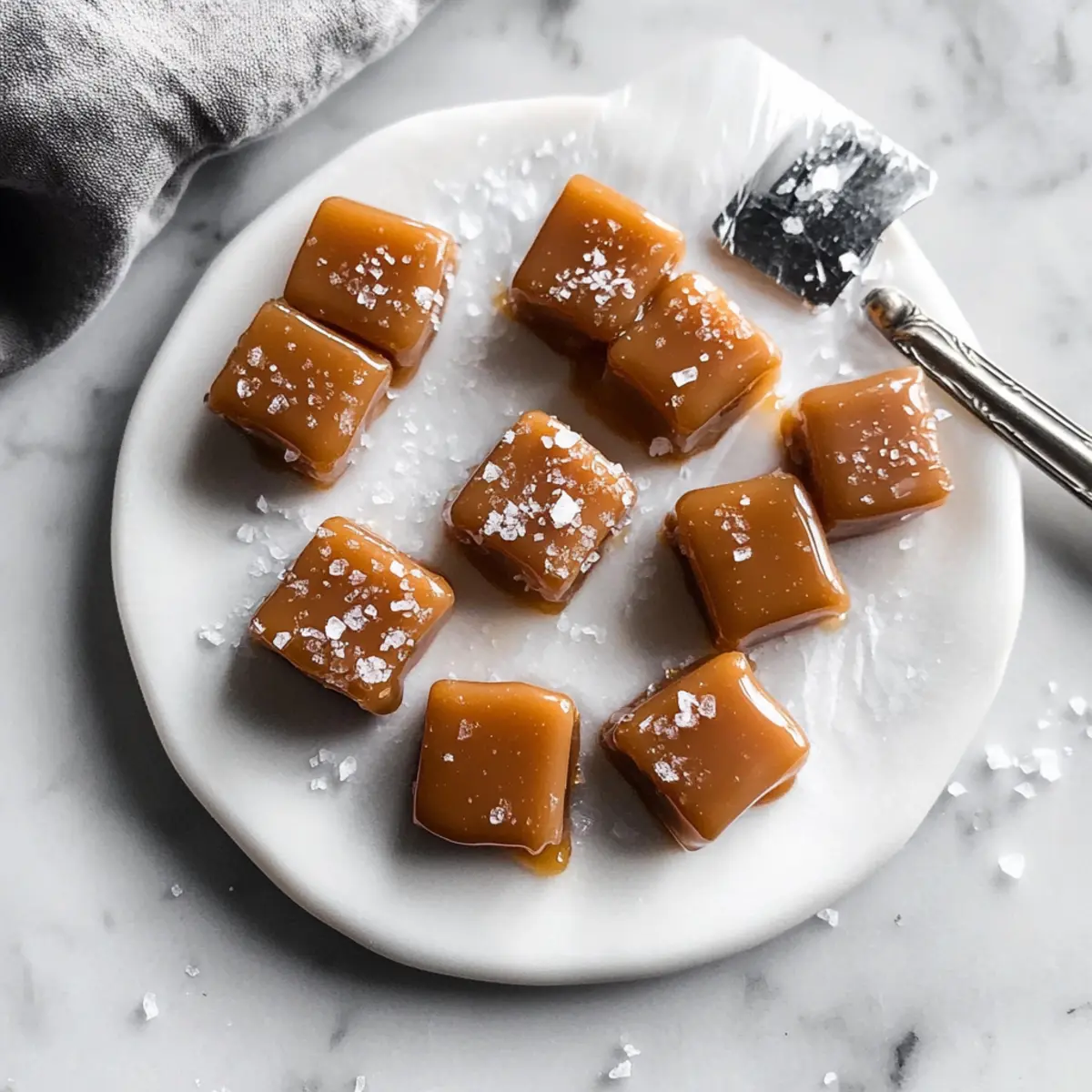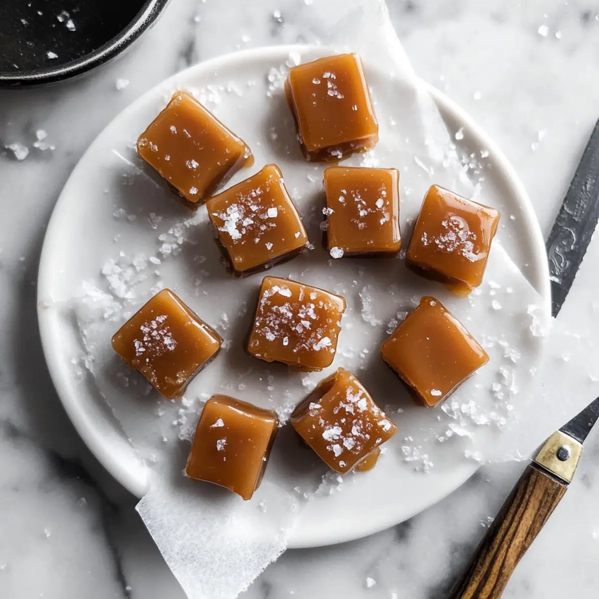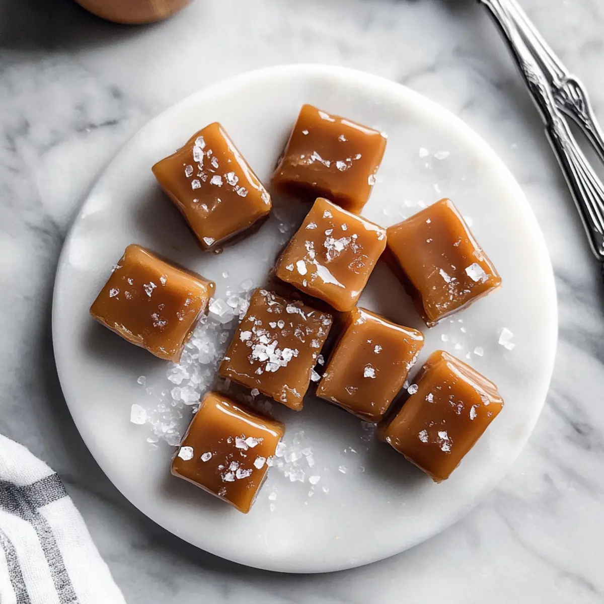The aroma of spiced apple cider fills the air as autumn settles in, tempting you to indulge in a sweet treat that mirrors the season’s charm. Let me introduce you to my Chewy Soft Apple Cider Caramels—a handmade delight that transforms a beloved fall flavor into melt-in-your-mouth goodness. Not only are these caramels incredibly easy to whip up at home, but they also boast a rich, buttery texture that’s perfect for sharing during cozy get-togethers or gift-giving. With the flexibility to adapt the spices or even jazz them up with nuts or chocolate, this recipe becomes a canvas for your creativity. Ready to bring a touch of fall sweetness to your kitchen? Let’s dive into this caramel-making adventure! Why You’ll Crave These Caramels? Irresistible flavors: The blend of apple cider and warm spices creates a unique taste that will keep you coming back for more. Easy to make: With just a few ingredients, this recipe invites bakers of all levels to create homemade magic. Versatile options: Whether you prefer nutty additions or a drizzle of chocolate, these caramels can easily adapt to your taste. Perfect for gifting: Wrap them up beautifully to gift during the holidays or any gathering, spreading joy in each bite. Plus, if you love homemade treats, don’t miss trying my Festive Apple Hand and 4-Ingredient Date Caramels for more sweet inspiration! Apple Cider Caramel Ingredients • For the Caramels Apple Cider – Provides the essential flavor; opt for fresh, unsweetened cider to capture that authentic apple taste. Unsalted Butter – Adds richness and moisture; avoid salted butter unless you’re adjusting added salt accordingly. Heavy Cream – Ensures a creamy texture and softness; substituting with non-dairy options may result in a firmer candy. Granulated Sugar – Sweetens the mixture and aids in caramelization; no direct substitutes without altering the sweetness and consistency. Brown Sugar – Deepens the flavor; could be swapped for more granulated sugar in a pinch. Ground Cinnamon – Offers warm spice notes; feel free to experiment with pumpkin spice for a seasonal twist. Flaky Sea Salt – Enhances the sweet flavor contrast; kosher salt can be used, but adjust quantity to taste. • For the Toppings (Optional) Chopped Nuts – Add texture and crunch; pecans or walnuts work beautifully with these caramels. Chocolate Drizzle – Elevates flavor and presentation; melted dark or milk chocolate pairs wonderfully with apple cider caramels. With these Apple Cider Caramel ingredients, you’re well on your way to crafting a delightful fall treat that’s not just sweet, but full of character! Enjoy the journey of making these irresistible confections. Step‑by‑Step Instructions for Apple Cider Caramels Step 1: Prepare Your Pan Start by lining a standard loaf pan with parchment paper, ensuring it covers the bottom and sides for easy removal later. This preparation step is crucial as it prevents the caramel from sticking. Set the lined pan aside while you focus on making the delicious apple cider mixture. Step 2: Reduce the Apple Cider In a heavy-bottomed pot, pour in your fresh, unsweetened apple cider. Bring it to a vigorous boil over medium-high heat. Stir occasionally to prevent sticking, and reduce the heat to a simmer once it starts bubbling. Continue cooking until the cider thickens down to about 1/4 cup, which will take approximately 45 minutes. You’ll know it’s ready when it coats the back of a spoon. Step 3: Mix in the Cream and Sugars Remove the pot from heat and immediately mix in the unsalted butter, heavy cream, granulated sugar, and brown sugar. Stir vigorously until the butter is completely melted and the sugars are fully dissolved. This will create a smooth and creamy blend that’s essential for your apple cider caramels. Allow the mixture to rest for a moment, letting the flavors meld together. Step 4: Cook the Caramel Mixture Return the pot to medium-high heat and bring the mixture to a boil without stirring. Carefully monitor the temperature with a candy thermometer, cooking until it reaches 252°F. This precise temperature ensures your apple cider caramels achieve that perfect chewy texture. Look for a rich, bubbly consistency as it cooks. Step 5: Add Spices and Salt Once the caramel reaches 252°F, remove it from heat promptly. Gently fold in the ground cinnamon and flaky sea salt until fully incorporated, aiming for a smooth and creamy consistency. Be careful not to stir too vigorously, as introducing bubbles can affect the final texture of your caramels. Step 6: Pour and Chill Carefully pour the warm caramel mixture into your prepared loaf pan, using a spatula to ensure even distribution. Allow the mixture to cool at room temperature for about 10 minutes before placing it in the refrigerator. Let it chill for approximately one hour or until it’s fully set and firm to the touch. Step 7: Cut and Serve Once the caramels are set, remove them from the pan using the parchment paper for easy lifting. Place the block on a cutting board and slice it into square pieces with a sharp knife. For an extra touch, sprinkle additional flaky sea salt on top of each square before serving your delicious apple cider caramels! Apple Cider Caramels Variations Feel free to unleash your creativity and customize these apple cider caramels to suit your taste—and just imagine the delightful aromas that will fill your kitchen! Nutty Delight: Add chopped pecans or walnuts for a crunchy texture that complements the smooth caramels. This extra layer of flavor keeps every bite exciting! Chocolate Drizzle: Melt dark or milk chocolate and drizzle over the cooled caramels for an indulgent twist. This delightful combination of flavors makes these treats feel extra special. Spicy Kick: Swap ground cinnamon for a mix of nutmeg and ginger for a zesty gingery flavor. It’s a fun way to amp up the seasonal spices! Pumpkin Spice: Substitute ground cinnamon with pumpkin spice for an aut