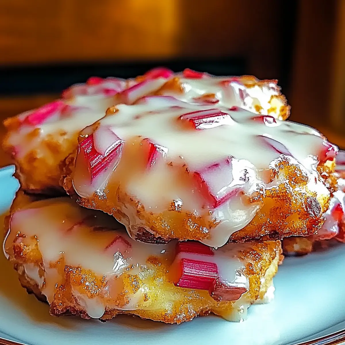 The aroma of cinnamon wafts through the air as I rush to the table, clutching a plate of Fluffy Baked Rhubarb Cinnamon Fritters. This delightful treat, with its tender texture and the perfect balance of sweet and tart, has quickly become my go-to recipe for brunch gatherings and cozy evenings at home. What makes these fritters so special is not only their ease of preparation but also that they’re so versatile—perfect for elevating any occasion, and there’s even a gluten-free option available! These fritters are more than a dessert; they’re a slice of joy wrapped in a warm glaze. Ready to transform your culinary experience? I can’t wait to share this recipe with you! Why are Baked Rhubarb Cinnamon Fritters amazing? Effortless Preparation: Whipping up these fritters requires just a few pantry staples and minimal effort, making them an ideal choice for busy weekends. Fluffy Goodness: Each fritter is light, airy, and oh-so-satisfying, perfectly complemented by the sweet vanilla glaze on top. Versatile Flavor: While rhubarb adds a unique tartness, feel free to experiment with apples or berries for a different tasty twist! Check out my Baked Boursin Salmon for another delightful recipe that embodies versatility. Perfect for Sharing: These fritters are sure to impress guests at brunch or be the star at a cozy family dessert, bringing smiles all around. Gluten-Free Options: Need a gluten-free treat? Simply swap the flour for a gluten-free blend, and the joy of these fritters is easily accessible to everyone! Elevate your next gathering or sweeten your day with these delectable fritters that promise to become a family favorite. Baked Rhubarb Cinnamon Fritters Ingredients • Get ready to gather these delightful components for your baking adventure! For the Batter All-purpose flour – Provides structure and body to the fritters; sift before use to ensure even texture. Granulated sugar – Adds sweetness to balance the tartness of rhubarb. Baking powder – Acts as a leavening agent for that fluffy texture we all love. Ground cinnamon – Infuses warmth and flavor into the fritters, making them irresistible. Fine salt – Enhances the overall flavor of the fritters. Eggs – Binds ingredients and adds richness; be sure to beat until smooth. Whole milk – Keeps the batter moist and soft; can substitute with any milk type. Plain Greek yogurt – Adds creaminess and a slight tang; sour cream can be used as a substitute. Vanilla extract – Imparts aromatic sweetness that elevates the overall flavor. Chopped rhubarb – Provides tartness and texture in each bite; fresh or properly thawed frozen rhubarb works great! For Frying Vegetable oil – Used for frying the fritters until golden brown; ensure oil is hot enough to avoid greasy fritters. For the Glaze Powdered sugar – The sweetener for your glaze, creating a perfect finish. Milk (for glaze) – Adjusts the glaze’s consistency to a pourable state for easy drizzling. Prepare to enjoy a batch of Baked Rhubarb Cinnamon Fritters that will surely delight your family and friends! Step‑by‑Step Instructions for Baked Rhubarb Cinnamon Fritters Step 1: Prepare the Dry Mixture In a large mixing bowl, whisk together the all-purpose flour, granulated sugar, baking powder, ground cinnamon, and fine salt. Ensure all the dry ingredients are well combined and free of lumps by sifting them before mixing. This step is crucial for achieving the light, fluffy texture characteristic of Baked Rhubarb Cinnamon Fritters. Step 2: Prepare the Wet Mixture In a separate bowl, beat the eggs until smooth, then mix in the whole milk, plain Greek yogurt, and vanilla extract. Whisk these ingredients together until they are completely combined and silky in texture. This wet mixture will add richness and moisture to your fritter batter, so take your time to get it just right. Step 3: Combine Mixtures Gently pour the wet mixture into the bowl of dry ingredients. Using a spatula, fold the two mixtures together until just combined—be careful not to overmix, as this can lead to dense fritters. The batter should be thick and slightly lumpy, as this contributes to the fluffy texture of your Baked Rhubarb Cinnamon Fritters. Step 4: Fold in Rhubarb Carefully fold the chopped rhubarb into the batter using a spatula. This step adds pops of tart flavor and beautiful color to your fritters. Make sure the rhubarb is evenly distributed throughout the batter while still preserving some of its structural integrity for a delightful bite in every fritter. Step 5: Heat Oil In a deep skillet, pour enough vegetable oil to reach a depth of about 2 inches and heat to 175°C (350°F). Use a thermometer to ensure the oil is at the right temperature before frying. This is important because oil that is too cool will make the fritters greasy, while oil that is too hot can burn them. Step 6: Fry Batter Once the oil is hot, drop heaping tablespoons of the fritter batter into the skillet, frying about 2-3 fritters at a time to avoid overcrowding. Fry them for 2-3 minutes on each side, or until they turn a delightful golden brown. Keep an eye on them as they cook, turning them carefully with a slotted spoon for even browning. Step 7: Drain Fritters Using a slotted spoon, remove the golden fritters from the oil and place them on a plate lined with paper towels to drain any excess oil. Allow them to cool for a few moments, as this also helps them maintain their fluffy texture while letting the excess grease escape. Step 8: Make Glaze In a small bowl, combine powdered sugar, a splash of milk, and a few drops of vanilla extract. Stir the mixture until you achieve a smooth, pourable consistency. Adjust the thickness of your glaze by adding more milk or powdered sugar until it’s just right for drizzling over your warm Baked Rhubarb Cinnamon Fritters. Step 9: Serve Drizzle the luscious vanilla glaze generously over the warm fritters to enhance their sweetness. Serve them immediately for the best tas