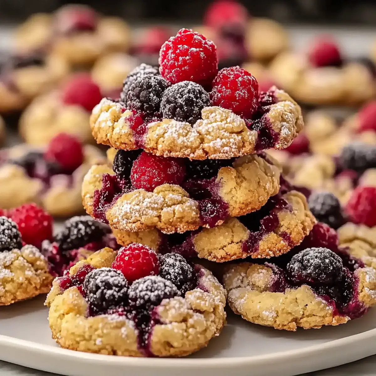 While rummaging through my pantry one afternoon, I stumbled upon a delightful assortment of mixed berries just waiting to be transformed into something extraordinary. That’s when I decided to whip up a batch of Berry Cobbler Cookies—each bite harmoniously marrying the tender texture of a cookie with the sweet burst of juicy berries and a satisfying crumb topping. This quick and easy recipe not only brings comfort but also serves as the perfect way to impress your loved ones at casual gatherings or special celebrations. Whether you choose to use fresh or frozen berries, these cookies are adaptable, ensuring you can always enjoy a taste of summer, no matter the season. Are you ready to dive into the delicious world of Berry Cobbler Cookies? Why Are Berry Cobbler Cookies So Irresistible? Unique Flavor Combination: The delightful mix of sweet, juicy berries and buttery cookie dough creates an unforgettable taste sensation. Quick and Easy: This recipe is straightforward, making it perfect for busy weekdays or spontaneous gatherings. Versatile Treat: Feel free to swap in your favorite fruits or even add white chocolate chunks for a different twist! Crowd-Pleasing Delight: Perfect for family get-togethers or as a charming dessert at your next potluck, everyone will want the recipe! Perfect for All Occasions: Whether you’re celebrating a special event or simply treating yourself, these cookies will make any moment feel festive. Berry Cobbler Cookies Ingredients • To create this delicious treat, gather these essential ingredients! For the Cookie Dough All-Purpose Flour – This forms the sturdy base of your Berry Cobbler Cookies; you can substitute with gluten-free flour if needed. Baking Powder – Ensures your cookies rise and stay light; make sure it’s fresh for the best results. Salt – Balances the sweetness and enhances all the flavors in the cookie dough. Unsalted Butter (3/4 cup, softened) – Gives richness and creaminess, key for a tender texture in your cookies. Granulated Sugar (1/2 cup) – Adds classic sweetness and a slight crispness to the edges. Brown Sugar (1/2 cup) – Infuses a warm, molasses flavor; if you don’t have any, mix white sugar with a bit of molasses for a similar taste. Large Egg (1) – Binds the ingredients together, providing moisture and richness to the cookies. Vanilla Extract (1 teaspoon) – Adds aromatic depth; consider pure vanilla bean paste for an extra boost of flavor. Mixed Berries (1 cup) – The star of your Berry Cobbler Cookies; use fresh or frozen, but toss frozen berries in cornstarch to prevent sogginess. Cornstarch (1 tablespoon) – Only necessary if using frozen berries to help keep the dough from getting too wet. For the Crumb Topping All-Purpose Flour (1/2 cup) – Provides the crumbly structure for the delightful topping. Brown Sugar (1/3 cup) – Adds sweetness and a beautiful depth to the topping. Cinnamon (1/2 teaspoon) – A sprinkle of warmth to enhance the flavor complexity. Unsalted Butter (1/4 cup, softened) – Binds the topping ingredients together for perfect texture and crunch. Step‑by‑Step Instructions for Berry Cobbler Cookies Step 1: Preheat the Oven Begin by preheating your oven to 350°F (175°C). While the oven warms up, line a baking sheet with parchment paper to ensure your Berry Cobbler Cookies bake evenly and don’t stick. Preparing this in advance will help streamline your baking process and allow the cookies to bake uniformly when placed in the oven. Step 2: Cream the Butter and Sugars In a large mixing bowl, cream together the softened unsalted butter, granulated sugar, and brown sugar using an electric mixer. Beat the mixture for about 2-3 minutes until it becomes light and fluffy, showcasing a pale color. This step is crucial as it incorporates air into the mixture, contributing to the tender texture of your cookie dough. Step 3: Add Egg and Vanilla Next, add in one large egg and a teaspoon of vanilla extract to your creamed mixture. Blend the ingredients for another minute until fully combined. You should see a smooth consistency where all elements are well-integrated. This enriching step boosts the flavors in your Berry Cobbler Cookies, making them memorable for everyone who tries them. Step 4: Combine Dry Ingredients In a separate bowl, whisk together your all-purpose flour, baking powder, and salt until combined. Gradually incorporate these dry ingredients into your wet mixture, stirring gently until just combined. Be careful not to overmix as that can lead to denser cookies, which isn’t the goal for your light Berry Cobbler Cookies. Step 5: Fold in the Berries Now, gently fold in one cup of mixed berries into the cookie dough. If using frozen berries, sprinkle one tablespoon of cornstarch over them to keep the dough from becoming too wet. This step should be done with care to prevent breaking the berries, allowing their juicy goodness to shine through in your cookies. Step 6: Prepare the Crumb Topping In a different bowl, mix together the ingredients for the crumb topping: half a cup of all-purpose flour, one-third cup of brown sugar, half a teaspoon of cinnamon, and a quarter cup of softened unsalted butter. Combine these with your fingers or a fork until it resembles coarse crumbs. This tasty topping will add crunchiness and texture to your Berry Cobbler Cookies. Step 7: Drop and Top the Dough With a spoon or cookie scoop, drop heaping tablespoons of cookie dough onto your prepared baking sheet, allowing space between each to let them spread. Once all the dough is placed, sprinkle the crumb topping generously over each mound. This will create a beautiful crunchy layer that perfectly complements the tender cookie and fruity filling. Step 8: Bake the Cookies Place the baking sheet in the preheated oven and bake for 12-14 minutes. Keep a close eye as the edges turn golden and the centers set but remain soft. The aroma of your baking Berry Cobbler Cookies will waft through your kitchen, cre
