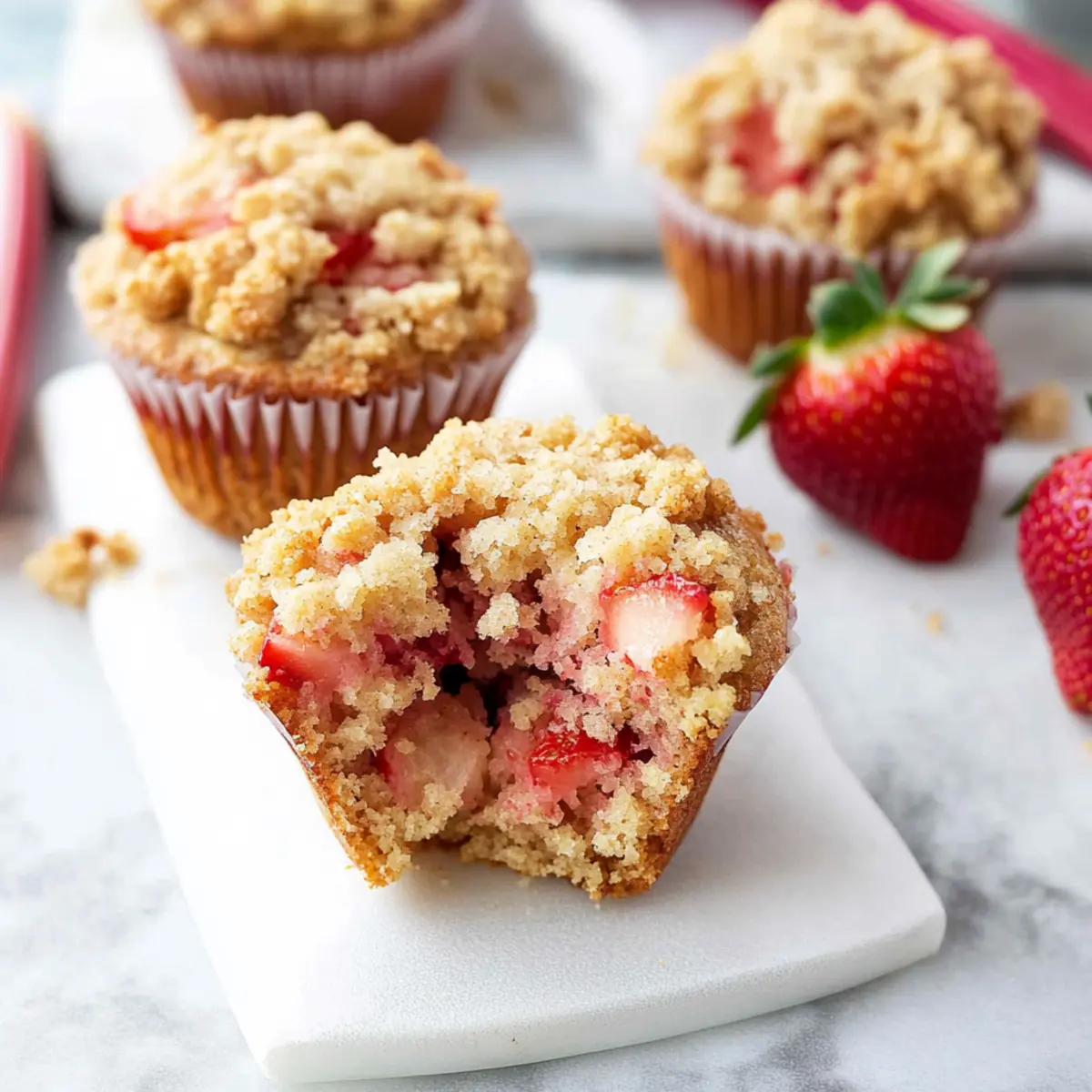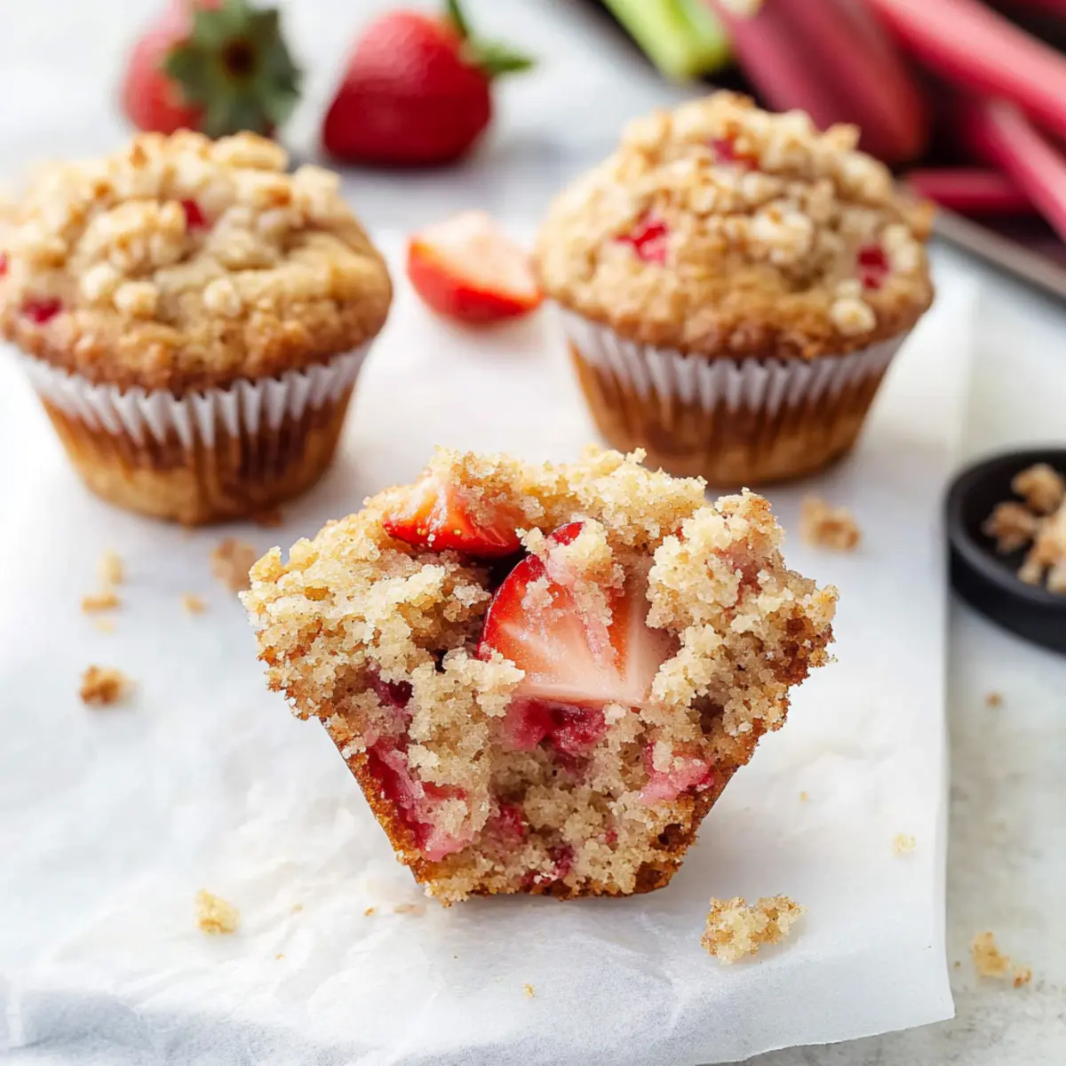 Fresh Ingredients Count: Use fresh strawberries and rhubarb for the best flavor. If using frozen, drain excess liquid to avoid soggy muffins.