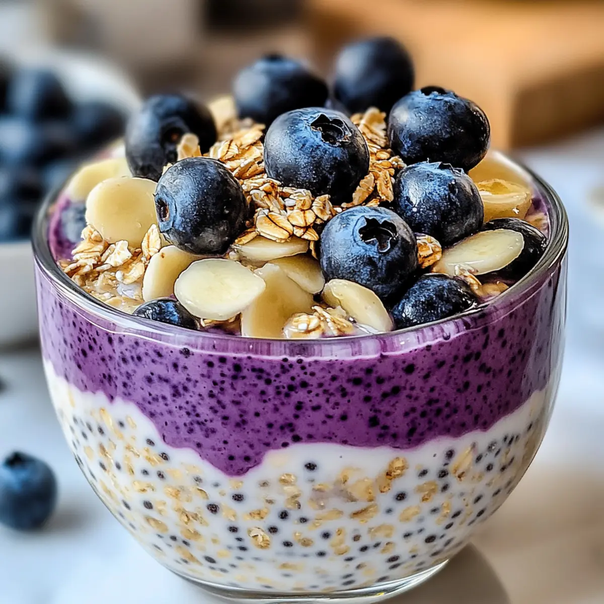 7. Serve and Garnish: In the morning, stir and serve in bowls with extra blueberries or nuts.