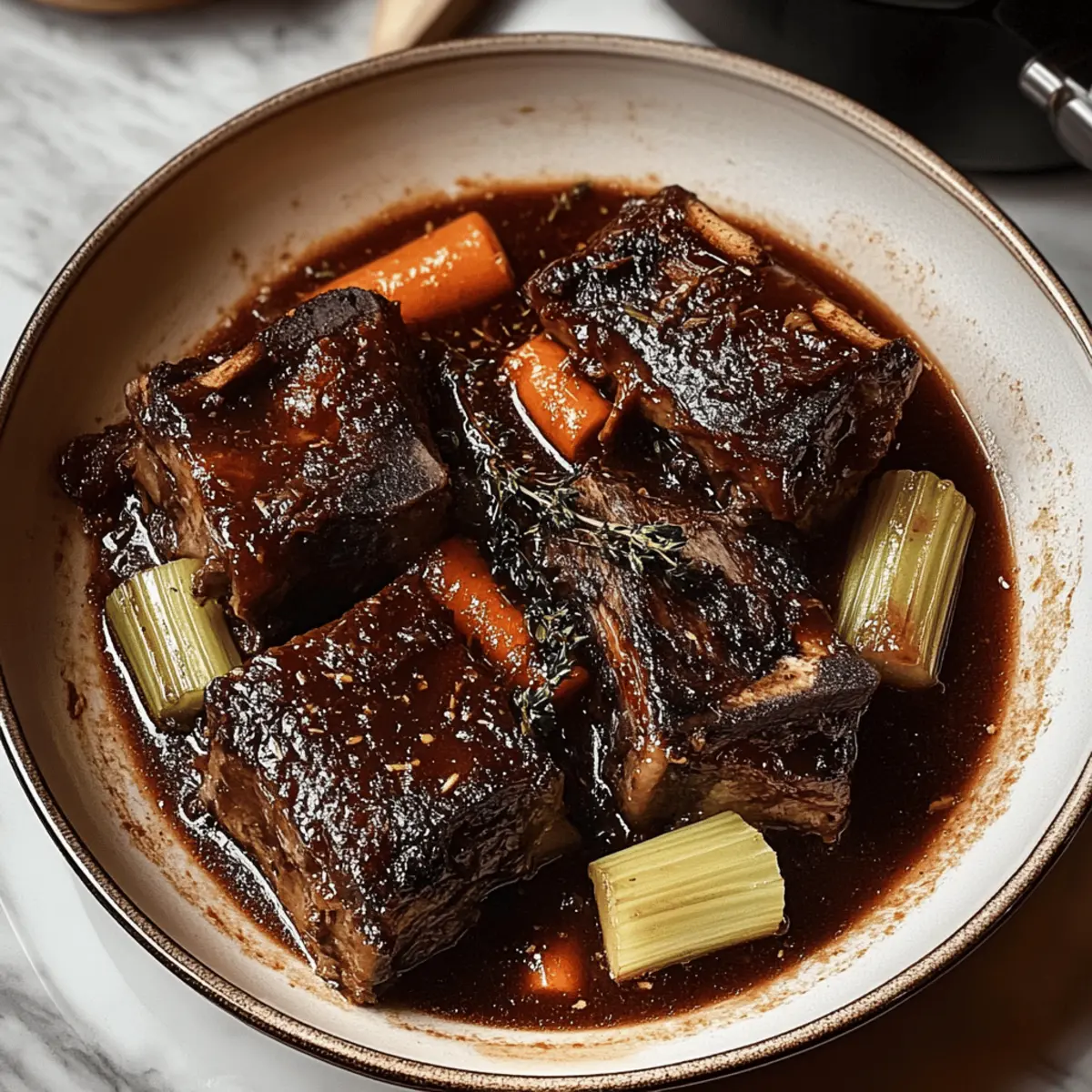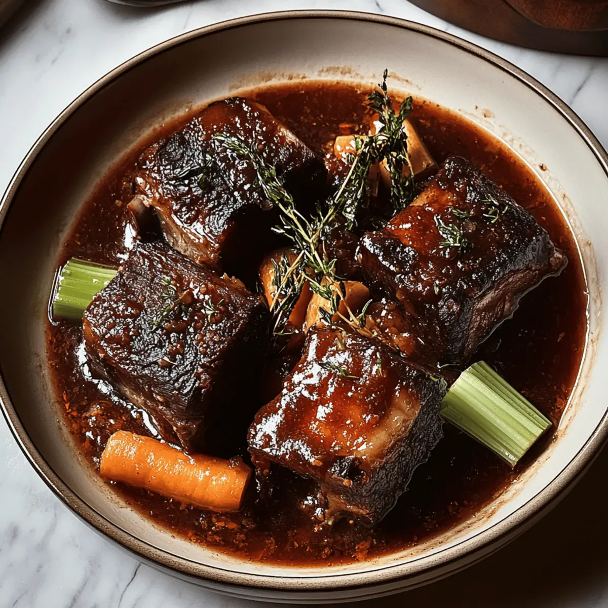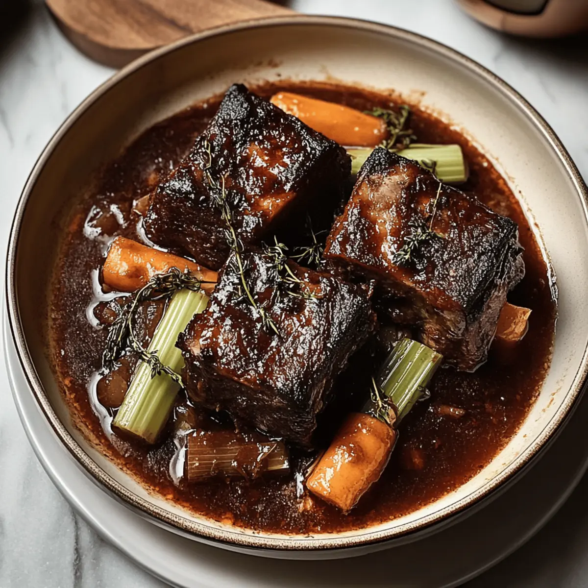 As I stood over the simmering pot, the aroma of beef and spices began to weave its magic through my kitchen, instantly transforming it into a warm embrace of comfort. Braised Short Ribs have a way of captivating both the senses and the soul, making them the ultimate comfort food for anyone longing for a hearty, homemade meal. In just a few hours, this slow-cooked dish turns simple ingredients into a succulent, melt-in-your-mouth experience, perfect for impressing guests or savoring with loved ones at the dinner table. With their rich flavors and protein-packed goodness, these ribs are bound to become a crowd-pleaser in your home. Ready to dive into a recipe that’s both rewarding and soul-soothing? Let’s get started! Why are Braised Short Ribs so irresistible? Tender, Melt-in-Your-Mouth Texture: The slow cooking process breaks down tough fibers, resulting in fork-tender meat that’s simply divine. Rich, Savory Sauce: Infused with red wine and aromatic veggies, this sauce is packed with flavor and perfect for soaking into side dishes. Hearty Comfort Food: Ideal for cozy family dinners or impressive gatherings, these ribs are the ultimate crowd-pleaser. Versatile Serving Options: Pair them with creamy mashed potatoes or crusty bread to complete your meal. For an added depth of flavor, consider incorporating suggestions like Savory Short Rib or other herbs. Make-Ahead Convenience: The flavors continue to develop over time, making them a great candidate for meal prepping or for those busy weeks. Braised Short Ribs Ingredients • Unlock the secret to irresistible comfort food! For the Ribs Beef Short Ribs – Choose bone-in cuts for enhanced flavor and richness. Olive Oil – Essential for searing; it adds a luscious richness to the dish. Salt and Pepper – Basic yet crucial; adjust to taste for a well-seasoned dish. For the Vegetables Onion – Adds natural sweetness to the dish; shallots can be a milder substitute. Carrots – Introduces earthy notes; swap with sweeter parsnips if preferred. Celery – Provides a subtle layer of flavor; can be replaced with fennel for a twist. Garlic – Minced for maximum aromatic impact and depth of flavor. For the Sauce Red Wine – Elevates the dish with acidity; beef broth is a great non-alcoholic substitute. Beef Broth – Creates a juicy braising liquid; essential for tender meat. Tomato Paste – Adds umami and tanginess; fresh tomatoes can be used if necessary. Dried Thyme – Offers herbal notes; feel free to substitute with fresh thyme or Italian seasoning. Bay Leaves – A couple of leaves impart a subtle floral bitterness. Garnish Fresh Parsley – Use it for a vibrant finish that adds both color and freshness! Each ingredient contributes to making these Braised Short Ribs a true comfort food masterpiece that will delight your family and friends. Enjoy the process and the wonderful aromas that will fill your kitchen! Step‑by‑Step Instructions for Braised Short Ribs Step 1: Preheat the Oven Begin by preheating your oven to 300°F (150°C). This low and slow cooking temperature is essential for transforming the beef into a tender masterpiece. While the oven warms up, prepare to gather your ingredients, creating a seamless cooking experience. Step 2: Sear the Ribs Season the beef short ribs generously with salt and pepper. In a large, heavy-duty Dutch oven, heat 2 tablespoons of olive oil over medium-high heat. Once shimmering, add the ribs, browning them for about 3-4 minutes per side until they develop a rich, caramelized crust. Remove the ribs from the pot and set aside on a plate. Step 3: Sauté Vegetables In the same pot, add diced onion, chopped carrots, and celery. Sauté these aromatic vegetables over medium heat for 5-7 minutes, stirring occasionally, until softened and fragrant. Add minced garlic and continue cooking for an additional minute, ensuring it doesn’t burn but enriches the overall flavor of your Braised Short Ribs. Step 4: Add Liquid Next, pour in 1 cup of red wine, using a wooden spoon to scrape up any browned bits from the bottom of the pot—this adds depth to your sauce. Allow the wine to simmer for 2-3 minutes, then stir in 2 cups of beef broth, 2 tablespoons of tomato paste, dried thyme, and bay leaves. Bring this hearty mix to a gentle simmer. Step 5: Braise the Ribs Return the seared ribs back to the pot, ensuring they are submerged in the rich liquid. Cover the Dutch oven with its lid and transfer it to your preheated oven. Allow the Braised Short Ribs to cook slowly for 3 hours, or until the meat is beautifully fork-tender and falling off the bone. Step 6: Serve Once tender, carefully remove the short ribs from the oven. Take out the ribs and strain the sauce to eliminate any solids. Skim off excess fat from the surface for a lighter finish. Plate the ribs, drizzling them with the luscious sauce, and garnish with chopped fresh parsley for a pop of color and freshness. How to Store and Freeze Braised Short Ribs Fridge: Store your Braised Short Ribs in an airtight container for up to 3 days. This allows the flavors to meld beautifully as they cool. Freezer: For longer storage, place the ribs in a freezer-safe container, ensuring the sauce covers them completely. They can be frozen for up to 3 months without losing flavor! Reheating: Thaw overnight in the fridge and reheat gently on the stovetop over low heat. Add a splash of beef broth to keep the sauce smooth and prevent drying out. Make-Ahead Tip: Braised short ribs are ideal for meal prep; they taste even better the next day! Prepare them in advance for a quick, satisfying meal later in the week. What to Serve with Braised Short Ribs Transform your hearty comfort food into a delightful feast that tantalizes the taste buds and warms the soul. Creamy Mashed Potatoes: Their buttery smoothness perfectly soaks up the rich sauce, creating a harmonious pairing with the tender ribs. Crusty Bread: Ideal for mopping up every drop of flavorful sauce, this addition 