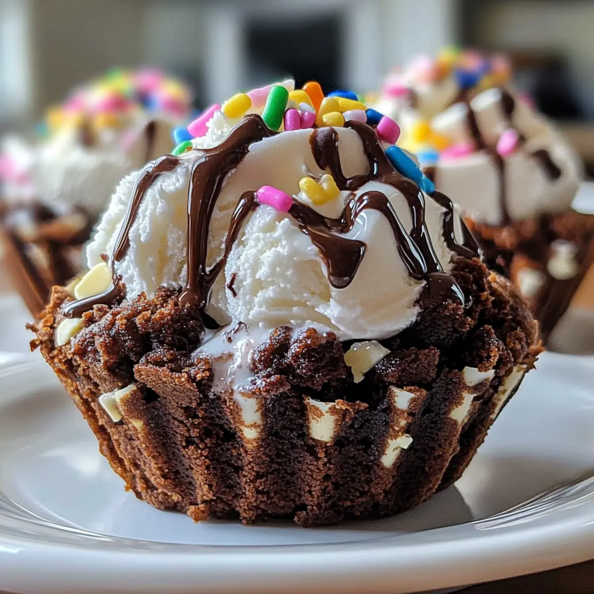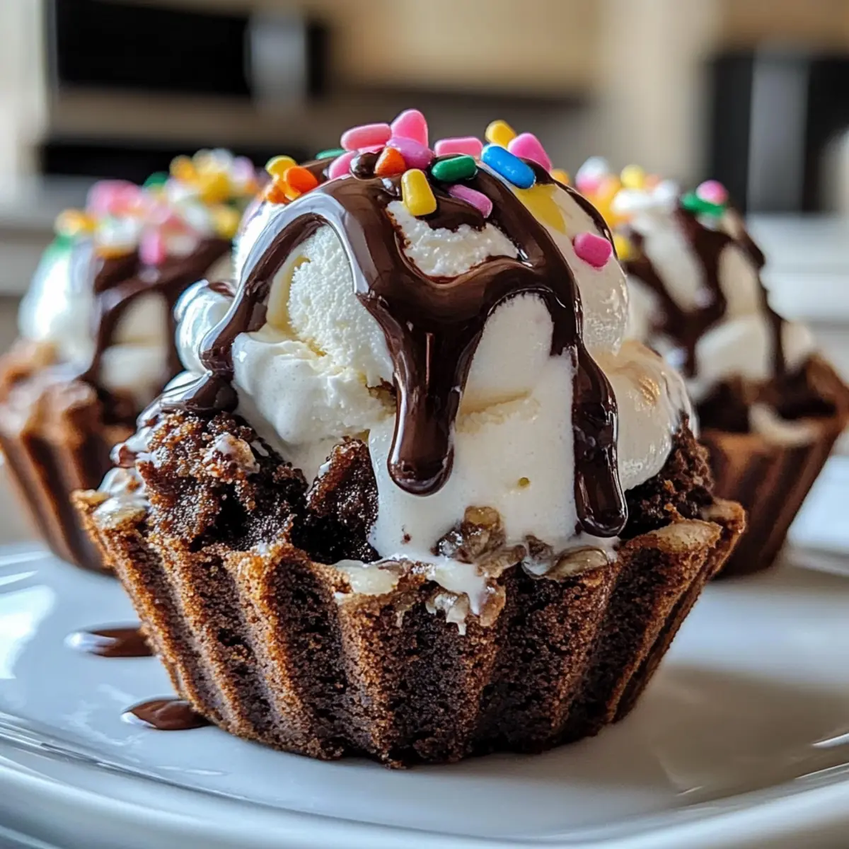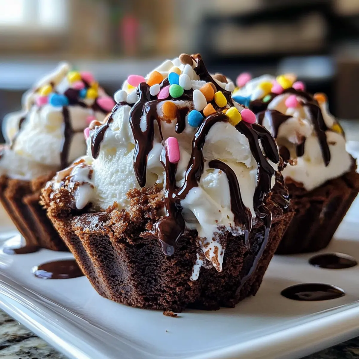 As I stood in my kitchen, a delightful aroma wafted from the oven, instantly transporting me to my childhood days of baking with my grandmother. These 5-Ingredient Brownie Sundae Cups are not just a dessert; they’re a nostalgic trip wrapped in rich, fudgy goodness, topped with creamy ice cream and a drizzle of chocolate syrup. What makes this recipe a game-changer is its remarkable ease—perfect for quick celebrations or simply treating yourself after a long day. With just a handful of ingredients, you can customize every cup to satisfy varied tastes and dietary preferences, making it a truly inclusive dessert. Curious about how these little delights can become the star of your next gathering? Let’s dive into the simple steps for whipping up these fabulous brownie cups! Why Are Brownie Sundae Cups a Must-Try? Decadent Flavor: The rich and fudgy brownie mix pairs beautifully with your favorite ice cream, creating a heavenly blend of sweet goodness. Customizable Delight: Easily adapt these cups for gluten-free or dairy-free diets, ensuring everyone can enjoy a personal treat. Quick and Simple: With just five ingredients, you’ll have a delicious dessert ready in no time, making it perfect for spontaneous celebrations or cozy nights in. Crowd-Pleaser: Whether it’s a birthday party or a family dinner, these brownie sundae cups are sure to impress guests of all ages. Get creative with toppings like nuts or sprinkles; the sky’s the limit! Easy Prep: No complex techniques or fancy gadgets needed—just mix, bake, and serve! For a fun twist, consider setting up an ice cream sundae bar with your favorite toppings. If you’re looking for more scrumptious variations, don’t forget to check out gluten-free options that still deliver on flavor! Brownie Sundae Cups Ingredients • Here’s everything you need to whip up these delightful treats! For the Brownie Base 18-ounce box of brownie mix – This will provide a rich foundation, and a fudge-style mix makes it even more indulgent. Water – Essential for combining with the brownie mix, adding the needed moisture for a fudgy texture. Vegetable oil – Helps keep the brownies rich and moist; canola oil is a great substitute if desired. Egg – Binds the ingredients together and gives structure to your brownie cups. For the Sundae Filling Ice cream – Select your favorite flavor to scoop into the brownie cups; vanilla bean pairs wonderfully for a classic touch. For the Toppings Chocolate syrup – A delicious drizzle brings an extra layer of sweetness and flavor to your cups. Whipped cream – Adds a light, airy texture and makes the dessert feel extra special. Nuts or sprinkles – Great for added crunch or color; customize according to your taste preferences. With just these Brownie Sundae Cups ingredients, you’re on your way to creating a dessert that will wow every bite and satisfy every craving! Step‑by‑Step Instructions for Brownie Sundae Cups Step 1: Preheat and Prepare Preheat your oven to 350°F (175°C). While the oven is heating, grease a standard muffin tin with non-stick spray or line it with paper liners. This ensures easy removal of the brownie cups later. Get your ingredients ready—brownie mix, water, oil, and egg—in one place for a smooth baking experience. Step 2: Mix the Brownie Batter In a large mixing bowl, combine the 18-ounce box of brownie mix with water, vegetable oil, and one egg. Stir the mixture gently with a spatula or whisk just until combined, being careful not to overmix. The batter should be thick and glossy, with no dry streaks remaining. This is the base for your delicious Brownie Sundae Cups! Step 3: Fill the Muffin Tin Using a spoon or a ladle, carefully distribute the brownie batter into each muffin cup, filling them about two-thirds full. This allows enough room for the brownies to rise without overflowing. Use an offset spatula to smooth the tops if desired, ensuring an even surface to hold your ice cream later on. Step 4: Bake the Brownie Cups Place the muffin tin in the preheated oven and bake for approximately 15 minutes. Keep an eye on them; they’re ready when a toothpick inserted into the center comes out with moist crumbs attached. The tops should have a slight sheen and a set appearance, indicating they’re perfectly baked and fudgy. Step 5: Cool the Brownie Cups Once baked, remove the muffin tin from the oven and allow the brownie cups to cool in the pan for about 10 minutes. This helps them firm up slightly. After their initial cooling, gently twist each cup to free it from the tin, transferring them to a wire rack to cool completely before adding the ice cream. Step 6: Assemble the Sundae Cups Once the brownie cups have cooled completely, it’s time to fill them! Scoop generous portions of your favorite ice cream into each brownie cup, allowing the ice cream to mound slightly over the top for an inviting look. This is where your Brownie Sundae Cups truly come to life, ready for toppings! Step 7: Add Toppings and Serve Finally, drizzle chocolate syrup over each ice cream-filled brownie cup and add a swirl of whipped cream. Sprinkle with nuts or colorful sprinkles for a festive touch. These Brownie Sundae Cups are best served immediately for optimal texture, so gather your loved ones and enjoy this delightful dessert together! Brownie Sundae Cups Variations Feel free to unleash your creativity and transform these brownie sundae cups into your own personalized dessert masterpiece! Gluten-Free: Use a gluten-free brownie mix to make these treats suitable for your gluten-sensitive friends and family. They won’t miss a beat in flavor! Dairy-Free: Swap traditional ice cream for your favorite non-dairy alternative, ensuring a creamy delight without the dairy. There are so many delicious coconut or almond milk options out there! Nutty Flavor: Add chopped nuts like walnuts or pecans to the brownie mix before baking for an irresistible crunch. The added texture makes these treats even 