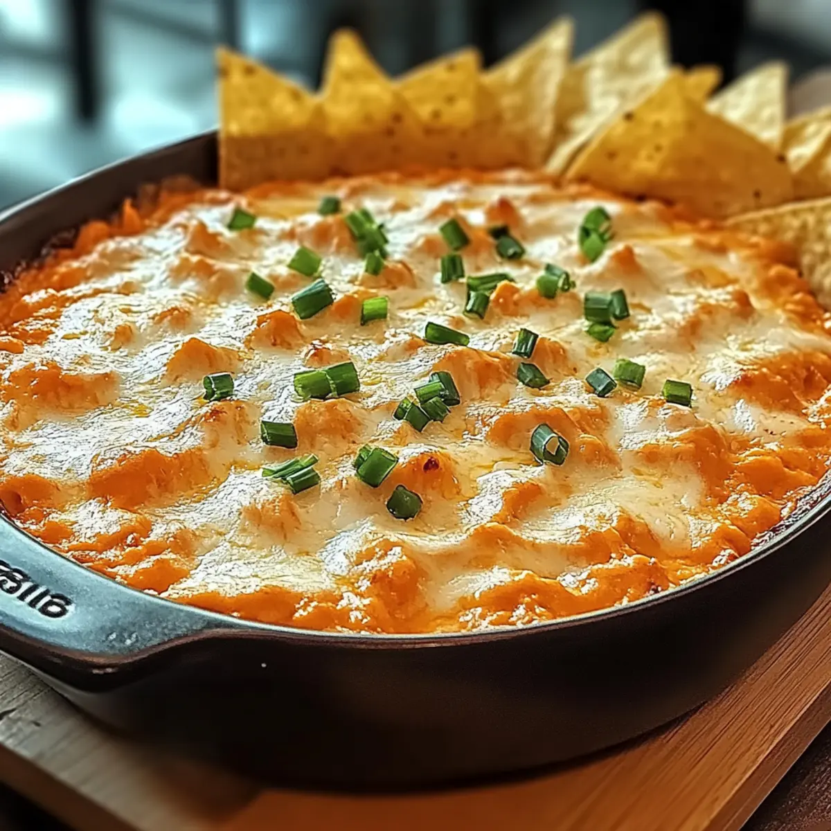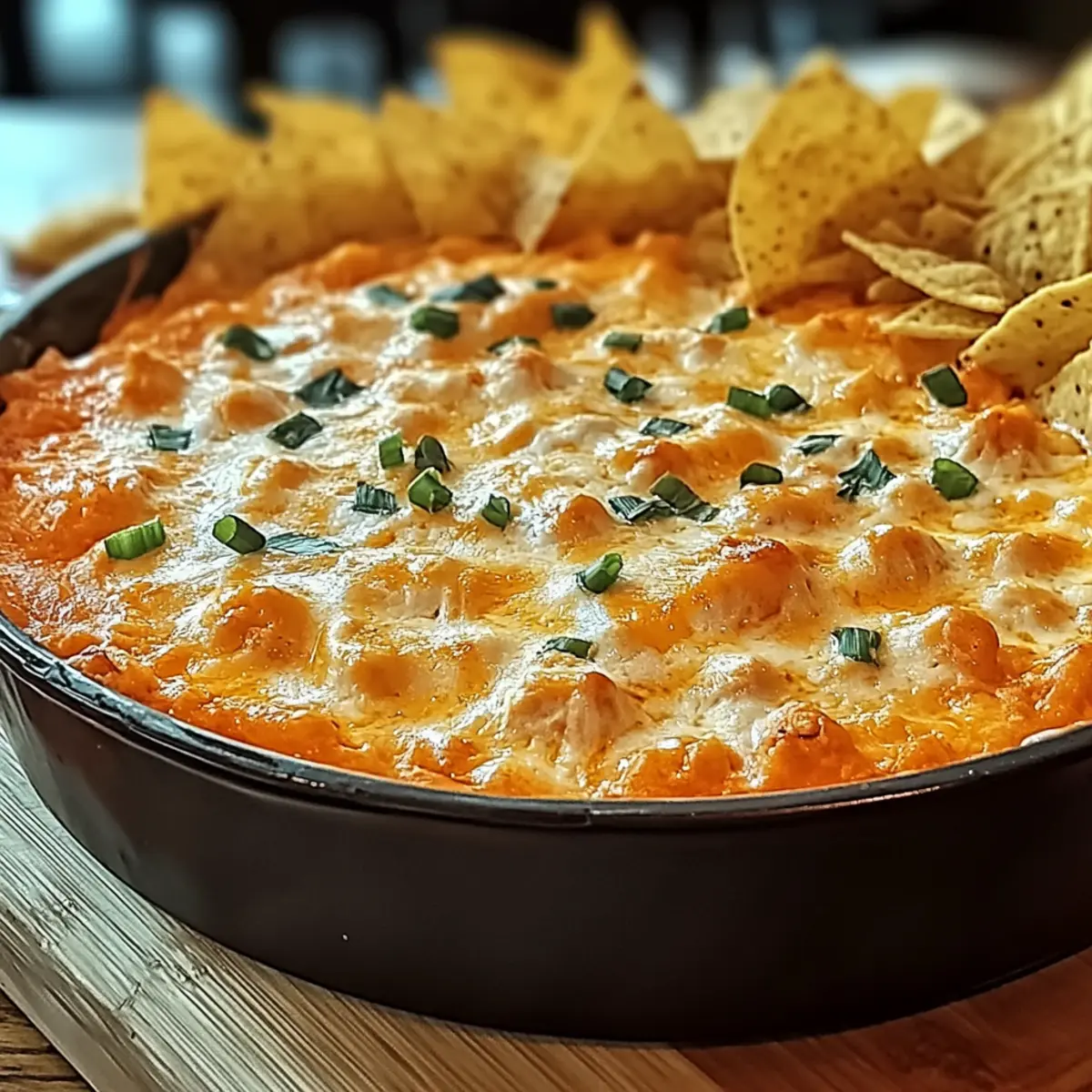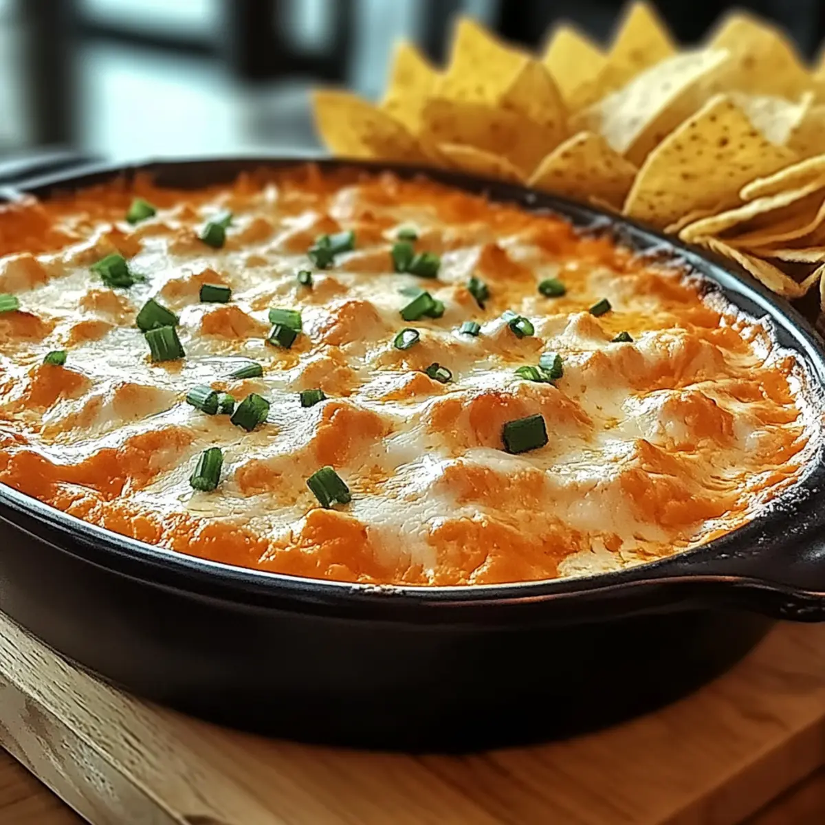 Once baked, remove the dish from the oven and allow it to cool for a few minutes. For the finishing touch, top your dip with chopped green onions for a fresh, vibrant contrast. Serve it warm alongside tortilla chips, fresh veggies, or crusty bread to create the ultimate snacking experience for your friends and family.