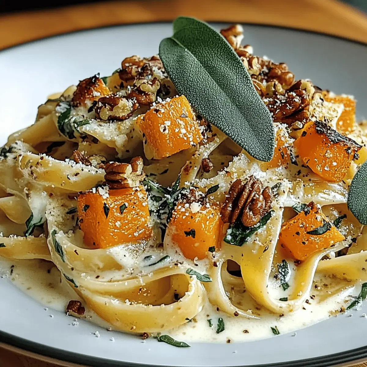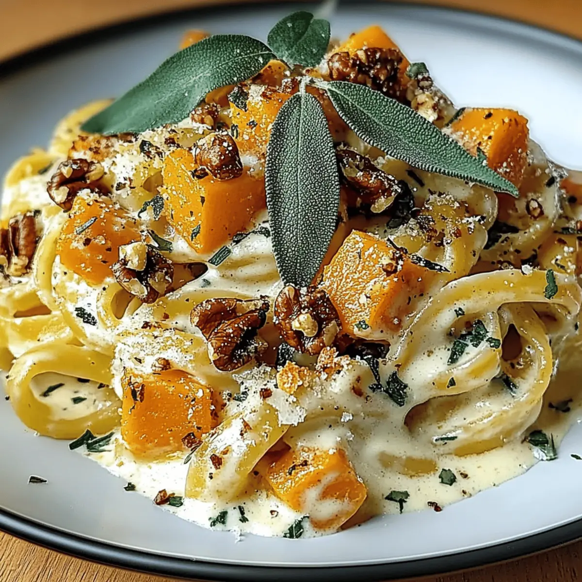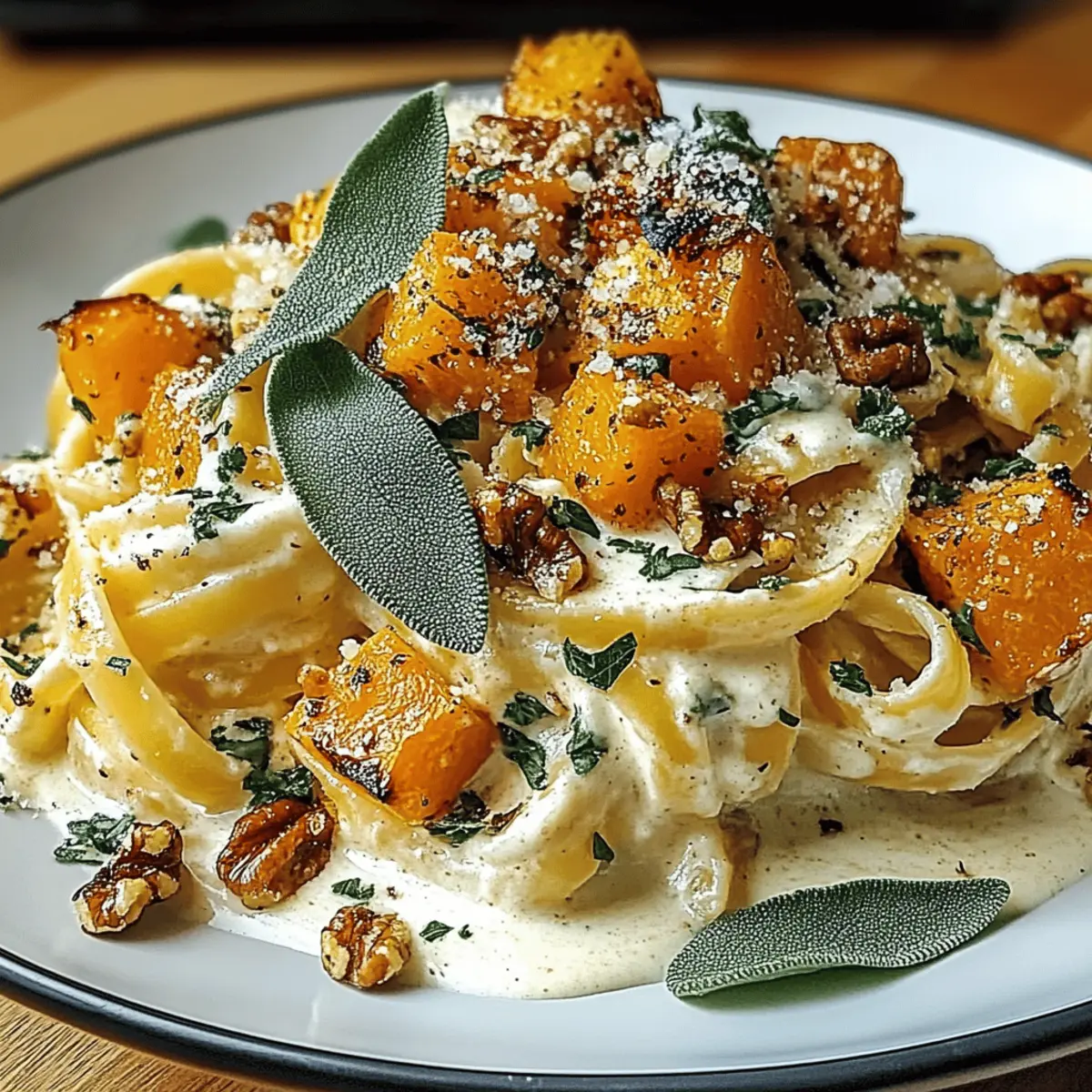 As the leaves turn golden and the air grows crisp, I’m often reminded of a cozy evening spent in the kitchen, crafting a dish that encapsulates the spirit of autumn. This Savory Butternut Squash & Sage Pasta is a true celebration of the season, combining roasted butternut squash’s natural sweetness with the earthy aroma of fresh sage. Not only is this recipe a quick and satisfying meal, but it also embraces vegetarian goodness while delivering a creamy sauce that wraps around every bite. Perfect for chilly nights when you crave something nourishing, this pasta dish will soon become a favorite in your culinary repertoire. Are you ready to dive into the heartwarming flavors of fall? Why is Butternut Squash & Sage Pasta Perfect? Comforting warmth: This dish captures the essence of autumn, making it an ideal meal for those chilly evenings. Creamy indulgence: The rich sauce, made with either heavy cream or coconut milk, envelops the pasta, ensuring each bite is luxuriously satisfying. Nourishing goodness: Packed with vitamins from butternut squash, this recipe combines health and flavor effortlessly. Quick and easy: In just under an hour, you’ll bring a deliciously complex meal to the table without breaking a sweat! Versatile: Swap out ingredients like pasta types or herbs to suit your taste; consider a delicious pairing with Cajun Salmon Pasta or a lighter option with Garlic Butter Pasta. Crowd-pleaser: Whether you’re entertaining guests or enjoying a cozy night in, this dish is sure to impress everyone! Butternut Squash & Sage Pasta Ingredients For the Pasta • Pasta – 12 oz (340g) of your choice; fettuccine or penne suggested for optimal flavor absorption. For the Sauce • Butternut Squash – 2 cups, diced into small cubes; use ripe, firm squash for the best flavor and texture. • Olive Oil – 3 tablespoons, divided; essential for roasting squash and sautéing aromatics, can substitute with avocado oil if desired. • Onion – 1 small, finely chopped; adds sweetness and depth—yellow or white onions work best. • Garlic – 3 cloves, minced; provides aromatic flavor—fresh garlic is recommended for optimal taste. • Fresh Sage – 1 teaspoon finely chopped (or ½ teaspoon dried); enhances flavors with its earthy aroma—fresh is preferred for vibrant flavor. • Red Pepper Flakes – ½ teaspoon (optional); adds a touch of heat—omit if you prefer a milder dish. • Salt and Pepper – To taste; essential for flavoring the entire dish. • Vegetable Broth – ½ cup; adds depth to the sauce and can be substituted with chicken broth for a non-vegetarian option. • Heavy Cream or Coconut Milk – ½ cup; creates a rich, creamy sauce—use coconut milk for a dairy-free version. • Grated Parmesan Cheese – ½ cup, plus extra for serving; provides savory flavor and creaminess—omit for vegan versions or replace with nutritional yeast. For the Toppings • Toasted Walnuts – ¼ cup, roughly chopped; adds crunch and richness—can substitute with pumpkin seeds for a nut-free option. • Fresh Sage Leaves – For garnish; enhances presentation and imparts additional flavor. Each ingredient in this Butternut Squash & Sage Pasta plays a vital role in crafting a dish that is comforting, flavorful, and perfect for enjoying during the cozy fall season. Step‑by‑Step Instructions for Savory Butternut Squash & Sage Pasta Step 1: Preheat the Oven Begin by preheating your oven to 400°F (200°C). This temperature is ideal for roasting the butternut squash to achieve a tender and caramelized texture. While the oven heats up, prepare your baking sheet by lining it with parchment paper, which will make cleanup a breeze. Step 2: Roast the Squash Toss the diced butternut squash with 1 tablespoon of olive oil, salt, and pepper directly on the baking sheet. Spread the cubes out in a single layer for even roasting. Place them in the preheated oven and roast for 25-30 minutes, stirring halfway through, until they are golden brown and fork-tender. Step 3: Cook the Pasta While the squash roasts, bring a large pot of salted water to a boil. Add your pasta of choice and cook it according to the package instructions until al dente. Once cooked, reserve about 1 cup of the pasta water before draining the rest, as this liquid will help adjust the sauce later. Step 4: Sauté the Aromatics In a large skillet, heat the remaining 2 tablespoons of olive oil over medium heat. Once hot, add the finely chopped onion and sauté for about 5 minutes, or until it turns translucent. Next, stir in the minced garlic, chopped sage, and optional red pepper flakes, cooking for another 1-2 minutes until fragrant. Step 5: Combine the Ingredients Add the roasted butternut squash from the oven into the skillet, and use a fork to mash some of the pieces lightly. Pour in the vegetable broth, heavy cream, and grated Parmesan cheese, stirring everything together. Adjust the sauce’s thickness by gradually incorporating some of the reserved pasta water until you reach your desired consistency. Step 6: Toss the Pasta Now, add the drained pasta into the skillet with the creamy butternut squash sauce. Toss well to ensure every piece of pasta is evenly coated with the sauce. Taste and season with additional salt and pepper, adjusting according to your preference for the perfect savory balance. Step 7: Serve the Dish To serve your Savory Butternut Squash & Sage Pasta, plate it up generously. Top with the toasted walnuts for a delightful crunch, sprinkle extra Parmesan cheese, and add fresh sage leaves for a vibrant garnish. This beautiful presentation will be sure to impress everyone at your table! Butternut Squash & Sage Pasta Variations Feel free to unleash your creativity and tailor this dish to fit your taste buds and dietary needs. Gluten-Free: Swap regular pasta for gluten-free options like brown rice or quinoa pasta for a celiac-friendly meal. Sweet Potato: Replace butternut squash with sweet potato for a slightly di