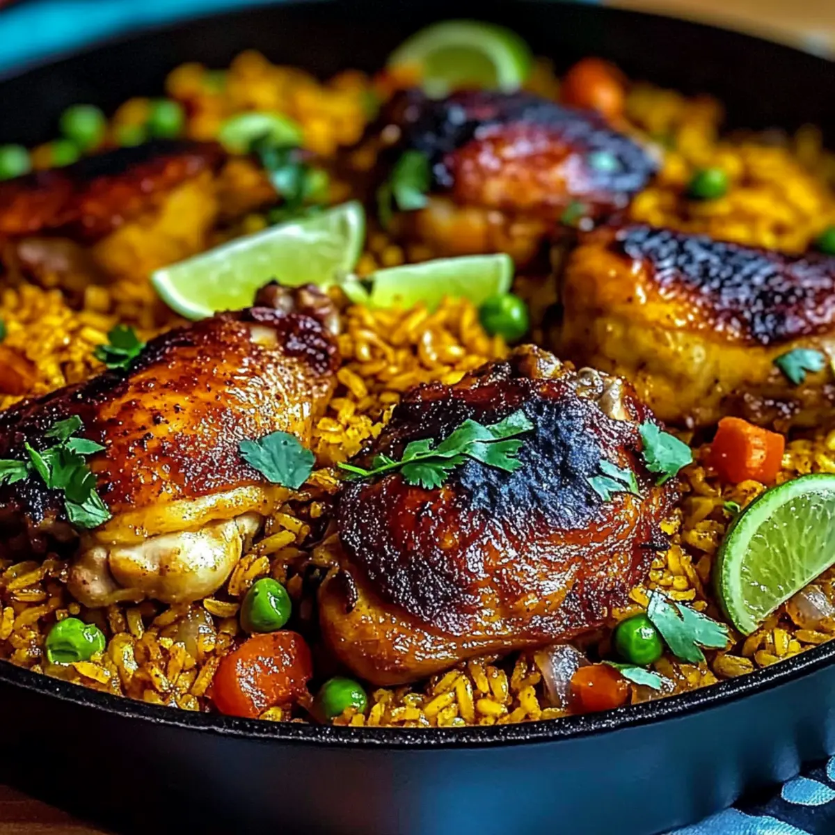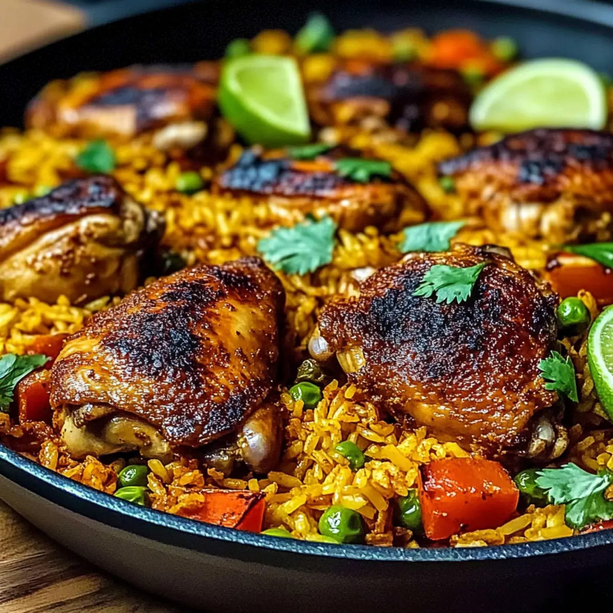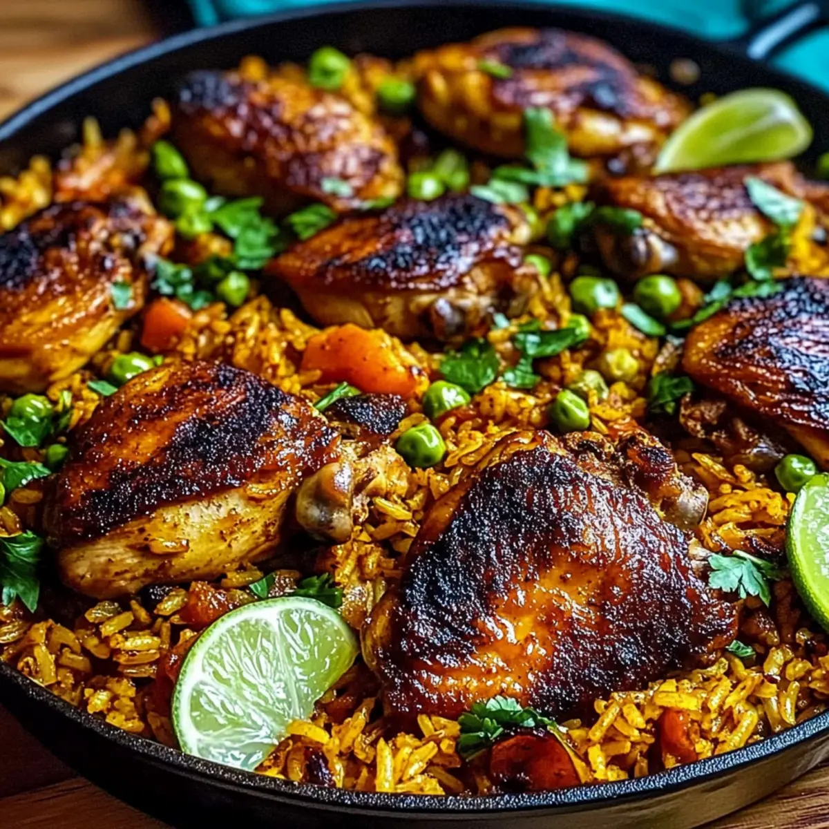 Imagine the sun-kissed shores of an island, where the air is thick with the scent of spices and savory marinades. That’s exactly what you’ll capture in this Caribbean Chicken and Spiced Rice recipe. Using juicy, bone-in chicken thighs, this dish becomes a complete meal that effortlessly brightens your weeknight dinners. The best part? It’s a one-pan marvel, bringing together tender chicken and fragrant rice in a burst of tropical flavors without all the hassle. You’ll savor every bite of this family-friendly feast, whether you’re serving it for a casual weeknight or an unforgettable gathering. Ready to whip up a little taste of paradise in your kitchen? Let’s dive in! Why is this dish a must-try? One-Pan Wonder: This Caribbean Chicken and Spiced Rice combines everything in just one skillet, making clean-up a breeze. Bursting with Flavor: Each bite is a delightful dance of spices, from allspice to the zesty kick of lime. Family-Friendly: A complete meal that even picky eaters will love, this dish is sure to please everyone at the table. Versatile Variations: Swap chicken thighs for drumsticks or boneless pieces based on your family’s preferences. Quick and Easy: Perfect for busy weeknights, this recipe comes together in around 40 minutes, allowing more time to enjoy with loved ones. Try serving it alongside a refreshing green salad or perhaps with some sweet plantains for a stunning meal that transports you straight to the tropics! Caribbean Chicken and Spiced Rice Ingredients • A delightful collection of flavors awaits! For the Chicken Bone-in, skin-on chicken thighs – The star protein that offers juiciness and flavor; substitute with boneless pieces for quicker cooking. Garlic (3 cloves, minced) – Provides aromatic depth; always opt for fresh garlic to elevate the dish. Salt and pepper to taste – Essential for enhancing overall flavor; adjust according to preference. Fresh thyme (1 tsp) – Adds fragrant herbal notes; if fresh is unavailable, use dried thyme but reduce the quantity. For the Rice Long-grain rice – The base of the meal that absorbs all delicious flavors; jasmine or basmati can be used for a twist. Onion (1, chopped) – Builds a flavorful foundation in the rice; yellow or white onions are both great choices. Allspice – Brings warmth and a subtle sweetness, essential for achieving that Caribbean taste; there’s no direct substitute, but a nutmeg-cinnamon blend works in a pinch. Chicken broth (3 cups) – Provides moisture and flavor; for a vegetarian option, use vegetable broth instead. For the Spice and Heat Scotch bonnet or habanero pepper (1, diced) – Introduces a fiery kick and distinct flavor; feel free to adjust depending on your heat preference. Lime (1, juiced) – Brightens and balances the flavors at the end; lemon juice serves as a great substitute if needed. For Cooking Vegetable oil (2 tbsp) – Used for searing the chicken; try olive oil as a tasty alternative. Capture the essence of vibrant Caribbean cuisine with this Caribbean Chicken and Spiced Rice—a flavorful journey you don’t want to miss! Step‑by‑Step Instructions for Caribbean Chicken and Spiced Rice Step 1: Marinate Chicken Begin by seasoning your bone-in, skin-on chicken thighs with allspice, salt, pepper, minced garlic, and fresh thyme in a large bowl. Ensure each piece is well-coated for maximum flavor. Cover the bowl and let the chicken marinate for at least 30 minutes; for more intense flavor, you can marinate it overnight in the refrigerator. Step 2: Sear Chicken Heat 2 tablespoons of vegetable oil in a large skillet over medium-high heat. Once the oil shimmers, carefully place the marinated chicken thighs skin-side down in the skillet. Sear for about 4-5 minutes, or until the skin turns golden brown and crispy. Remove the seared chicken from the skillet and set aside on a plate. Step 3: Sauté Aromatics In the same skillet, add chopped onions, minced garlic, and diced Scotch bonnet or habanero pepper. Sauté these ingredients over medium heat for about 3-4 minutes until the onions are soft and fragrant, stirring occasionally. This step infuses the oil with vibrant flavors, creating a delicious base for your Caribbean Chicken and Spiced Rice. Step 4: Cook Rice Stir in long-grain rice, making sure to coat the grains with the aromatic mixture. Pour in 3 cups of chicken broth and bring the mixture to a gentle simmer. Nestle the seared chicken thighs back into the skillet, ensuring they are partially submerged in the liquid. Cover the skillet and reduce the heat to low, allowing it to cook for about 20 minutes, or until the rice is tender and absorbs most of the broth. Step 5: Finish Dish After 20 minutes, check the rice for doneness and make sure the chicken is cooked through. Once everything is perfect, fluff the rice with a fork. Squeeze fresh lime juice over the dish to brighten the flavors, and give it a gentle stir. Serve the Caribbean Chicken and Spiced Rice warm, garnished with fresh herbs or extra lime wedges for a delightful tropical flair. Expert Tips for Caribbean Chicken and Spiced Rice Marinate for Success: Marinating chicken overnight enhances its flavor and tenderness. Don’t rush this step for the best results. Adjust the Heat: If you’re sensitive to spice, reduce the amount of Scotch bonnet or habanero pepper. You can always add more later! Perfect Rice Consistency: Adding too much broth can make the rice mushy. Keep it to 3 cups for ideal absorption. Sear for Flavor: Searing chicken skin-side down not only adds color but also locks in juices. Make sure your skillet is hot enough. Reheat with Care: When reheating leftovers, add a splash of broth to maintain moisture in the rice—this will keep your Caribbean Chicken and Spiced Rice as delicious as the first day! Caribbean Chicken and Spiced Rice Variations Feel free to customize this delicious family dish and make it your own with these flavorful twists! Boneless Option: Use boneless chicke