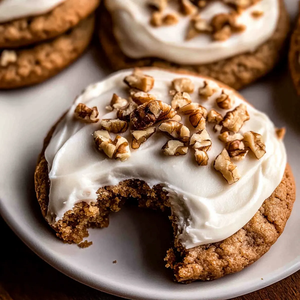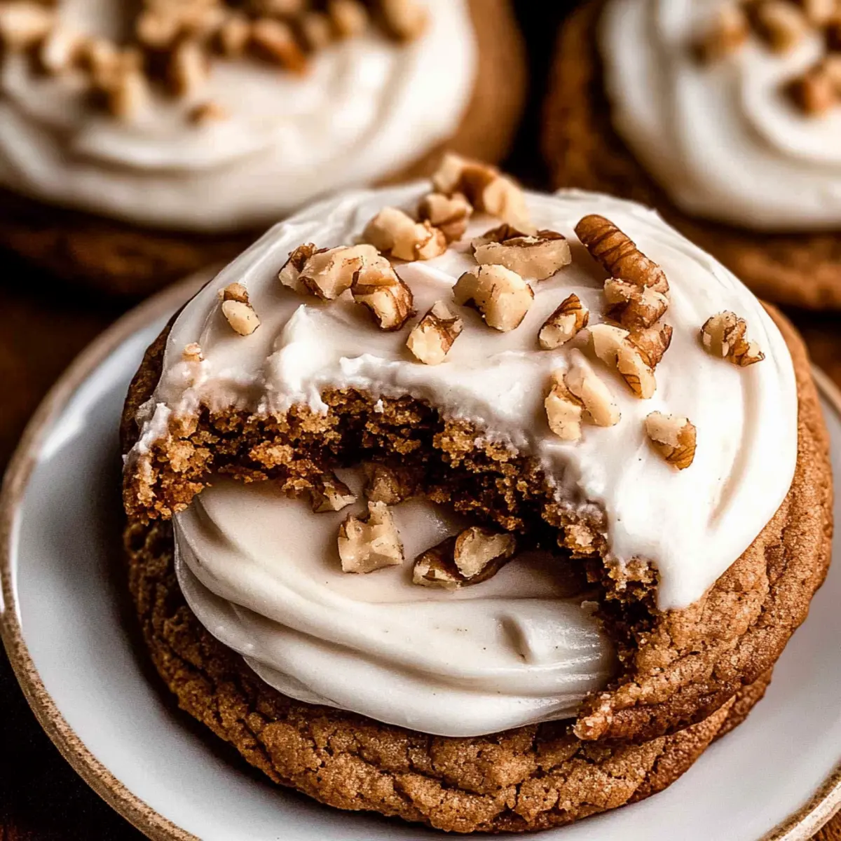 As I was sifting through my pantry for some baking inspiration, I stumbled upon a bag of shredded carrots and thought—why not? Enter the chewy carrot cake cookies with cream cheese frosting that are destined to become your new favorite treat. The delightful combination of cinnamon, nutmeg, and ginger creates a nostalgic flavor that screams comfort, while the creamy frosting adds a luscious touch. These cookies are not just a delightful indulgence; they’re quick to whip up and perfect for any spring celebration, from Easter brunch to casual afternoon tea. Just imagine bringing a batch of these to your next gathering and watching everyone’s eyes light up with joy. Ready to dive into a world of sweet, spiced goodness? Let’s get baking! Why are these cookies a must-try? Chewy Perfection: The secret to these cookies’ irresistible texture lies in the perfectly balanced ingredients, achieving that ideal chewy center with crisp edges. Flavor Explosion: The warm spices of cinnamon, nutmeg, and ginger create a nostalgic flavor profile that will have your taste buds dancing. Quick and Easy: With just a handful of steps, you can whip up a batch of these delightful cookies in no time, making them an ideal choice for busy bakers. Versatile Delight: Serve them at any gathering—Easter brunch, a casual tea, or simply as a sweet treat after dinner. They’re sure to impress! Irresistible Frosting: Topped with creamy cream cheese frosting, each bite is a heavenly indulgence that elevates this cookie experience. They complement a delicious Lemon Pistachio Cookies dessert table perfectly! Carrot Cake Cookies Ingredients For the Cookies Finely Ground Carrot Bits – Moisture and flavor from about 2 large carrots; dry them thoroughly to avoid cakiness. All-Purpose Flour – Provides structure; spoon and level to ensure accuracy for chewy cookies. Ground Cinnamon – Adds warmth and sweetness to the flavor profile. Ground Nutmeg – Contributes a nutty undertone, enhancing the spice blend. Ground Ginger – Elevates the spiciness for a warm and inviting taste. Ground Allspice – Complements the other spices with a fragrant note. Baking Powder & Baking Soda – Essential for achieving the right texture and lift. Sea Salt – Balances sweetness, enhancing overall flavor. Unsalted Butter – Creates a rich and tender texture; use at room temperature for easy creaming. Light Brown Sugar – Adds moisture and subtle caramel flavor. Egg Yolks – Contributes to the cookie’s chewy texture and rich taste. Vanilla Bean Paste or Extract – Offers an aromatic sweetness and deep flavor notes. For the Cream Cheese Frosting Unsalted Butter – Adds creaminess; soften before mixing for a smoother frosting. Cream Cheese (cold) – Forms the base of the frosting, ensuring a rich, creamy consistency. Powdered Sugar – Sweetens and thickens the frosting; adjust to preferred sweetness. Chopped Walnuts (optional) – For garnish and an added nutty element that complements the cookies perfectly. These carrot cake cookies are just the sweet treats you need for your next celebration! Step‑by‑Step Instructions for Chewy Carrot Cake Cookies with Cream Cheese Frosting Step 1: Preheat the Oven Begin by preheating your oven to 350°F (175°C). While it warms up, line two baking sheets with parchment paper. This step ensures that your chewy carrot cake cookies will bake evenly and lift off easily after they’ve cooled. Step 2: Prepare the Carrots Next, grate 2 large carrots until finely shredded, then pulse them in a food processor to achieve a slightly finer texture. Ensure to thoroughly dry the carrot bits with paper towels, as excess moisture can lead to cakey cookies instead of the desired chewy texture. Step 3: Mix the Dry Ingredients In a small bowl, whisk together the all-purpose flour, ground cinnamon, nutmeg, ginger, allspice, baking powder, baking soda, and sea salt. This combo not only gives our chewy carrot cake cookies their warm spice flavor but also helps evenly distribute the leavening agents before mixing everything together. Step 4: Cream Butter and Sugar In a large mixing bowl, beat the softened unsalted butter and light brown sugar together using a hand mixer or stand mixer set to medium speed. Continue mixing for about 2-3 minutes until the mixture becomes light, fluffy, and well combined, which will yield a tender cookie texture. Step 5: Incorporate Yolks and Vanilla To the fluffy butter and sugar mixture, add the egg yolks and vanilla bean paste or extract. Beat on medium-high speed until everything is well blended and airy, achieving a light and fluffy mixture that’s important for the overall chewyness of your cookies. Step 6: Combine Wet and Dry Ingredients Gently fold the finely ground carrot bits into the wet mixture. Then, gradually incorporate the dry ingredient mixture, stirring until just combined. Take care not to overmix, as this can lead to dense cookies instead of the tender, chewy carrot cake cookies we desire. Step 7: Scoop and Bake Using a medium cookie scoop, portion the dough onto the prepared baking sheets about 2 inches apart. Bake your cookies in the preheated oven for 11-13 minutes, or until they are lightly golden around the edges—the perfect visual cue for doneness. Step 8: Cool the Cookies After baking, allow the chewy carrot cake cookies to cool on the baking sheets for about 5 minutes. This brief cooling period helps them firm up, making it easier to transfer them to a wire rack where they will cool completely. Step 9: Make the Frosting While the cookies cool, prepare the cream cheese frosting. In a mixing bowl, beat together the softened unsalted butter and cold cream cheese until smooth. Gradually add the powdered sugar, mixing until you achieve a creamy and spreadable consistency. Step 10: Decorate the Cookies Once the cookies have cooled completely, generously frost the top of each cookie with the cream cheese frosting. If desired, sprinkle with chopped walnuts f