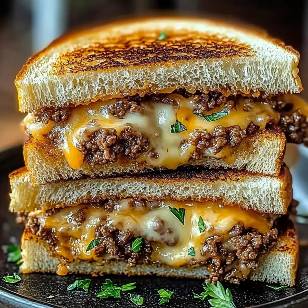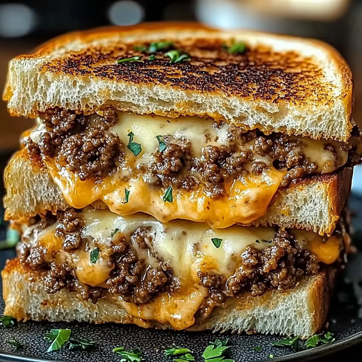 In the whirlwind of daily life, there’s something magical about crafting a comforting meal that feels like a warm hug. Enter the Ultimate Cheesy Ground Beef Melt, a sensational blend of seasoned ground beef and delectable cheeses nestled between crispy, buttery sourdough. This dish is not just another grilled cheese sandwich; it’s a celebration of comfort food that’s quick to prepare and absolutely satisfying. Whether you’re winding down after a long day or seeking a crowd-pleaser for your next gathering, this cheesy ground beef melt promises to deliver joy in every scrumptious bite. Are you ready to learn how to whip up this incredible indulgence? Let’s dive in! Why Will You Love This Cheesy Melt? Ultimate Comfort Food: The combination of melted cheddar and mozzarella, surrounded by savory ground beef, creates a cozy experience that warms the soul. Quick to Make: This recipe is ready in just 30 minutes, making it the perfect solution for busy weeknights or spontaneous get-togethers. Versatile Ingredients: Feel free to customize with your favorite cheeses or add veggies like peppers or mushrooms for an extra flavor boost! Crowd-Pleasing Delight: Loved by both kids and adults, this cheeseburger-inspired melt is sure to satisfy even the pickiest eaters. Easy Cleanup: With minimal prep and only one skillet required, you’ll spend less time cleaning and more time enjoying your delicious meal. If you enjoy a heartwarming meal like this, you might also love making Cheesy Ground Beef for a simple yet satisfying dish! Cheesy Ground Beef Melt Ingredients For the Beef Mixture • Ground Beef – Provides richness and protein; use lean beef to reduce excess grease. • Onion – Adds sweetness and flavor depth; sweet or yellow onions are preferred for this cheesy ground beef melt. • Garlic – Enhances the savory profile; can substitute with garlic powder (1/2 tsp) if needed. • Salt and Pepper – Essential for seasoning to taste; adjust based on preference to ensure a delightful flavor. • Worcestershire Sauce – Infuses umami flavor; soy sauce can be a substitute for a gluten-free option. • Beef Broth – Adds moisture and flavor; vegetable broth can be used for a lighter version if desired. For the Cheeses • Cheddar Cheese – Offers sharp flavor and meltability; Monterey Jack or Gouda are great alternatives. • Mozzarella Cheese – Provides stretch and creaminess; feel free to mix with other melting cheeses for added taste. For Grilling • Sourdough Bread – Perfect for grilling due to its texture; any sturdy white bread can substitute if needed. • Unsalted Butter – Ensures golden, crispy bread; olive oil can be used as a dairy-free option. Optional Garnish • Fresh Parsley – Adds color and freshness; omit if fresh herbs are not available. Now, gather these ingredients and let’s create a cheesy masterpiece that will become a new family favorite! Step‑by‑Step Instructions for Cheesy Ground Beef Melt Step 1: Cook the Beef Mixture In a medium skillet over medium-high heat, crumble and brown 1 pound of ground beef for about 5–7 minutes until no longer pink. Add in one chopped onion and two minced garlic cloves, stirring occasionally until the onion turns translucent, which should take about 3–4 minutes. This savory mixture is the flavorful base for your cheesy ground beef melt. Step 2: Season and Simmer Sprinkle salt and pepper to taste over the beef, then stir in 1 tablespoon of Worcestershire sauce and ½ cup of beef broth. Allow the mixture to simmer on medium-low heat for around 5–6 minutes until it thickens, stirring occasionally. The aroma will fill your kitchen, setting the stage for your delicious cheesy ground beef melt. Step 3: Prepare the Bread While the beef mixture simmers, butter one side of each slice of sourdough bread. Preheat a non-stick skillet or griddle over medium heat. This step is crucial for achieving that golden, crisp exterior on your cheesy ground beef melt, so make sure the pan is hot before proceeding. Step 4: Assemble the Sandwich Place two slices of the bread, butter-side down, on the skillet. Generously layer shredded cheddar cheese, followed by a hearty spoonful of your beef mixture, and sprinkle with mozzarella cheese. Finally, top with the remaining slices of bread, butter-side up, to create a luscious grilled sandwich that’s filled with cheesy goodness. Step 5: Grill to Perfection Cook the sandwiches for 3–4 minutes per side, pressing gently with a spatula to help the cheese melt. Keep an eye out for a golden-brown crust, which signals it’s time to flip. The cheese should be ooey-gooey inside, making your cheesy ground beef melt irresistible. Step 6: Serve and Enjoy Once cooked, carefully remove the sandwiches from the skillet and let them rest for a minute. Slice in half for a charming presentation, and if desired, garnish with freshly chopped parsley for a pop of color. Serve hot and enjoy the comforting flavors of your homemade cheesy ground beef melt! How to Store and Freeze Cheesy Ground Beef Melt Fridge: Wrap any leftover cheesy ground beef melt tightly in foil or place in an airtight container; it can be stored in the refrigerator for up to 2 days. Freezer: For longer storage, freeze the ungrilled, assembled sandwiches wrapped tightly in plastic wrap and foil; they can be kept for up to 3 months. Reheating: Reheat leftovers in a skillet over medium heat for best results, allowing the cheese to melt through without making the bread soggy. Avoid microwaving, as it can lead to a chewy texture. Preparation Tips: If preparing ahead of time, separate the beef mixture and cheese until ready to assemble and cook your cheesy ground beef melt for optimum freshness. Cheesy Ground Beef Melt Variations Customize your cheesy ground beef melt experience with delightful twists and swaps that will tantalize your taste buds! Spicy Kick: Swap out cheddar for pepper jack cheese to add a wonderful heat that’ll invigorate you