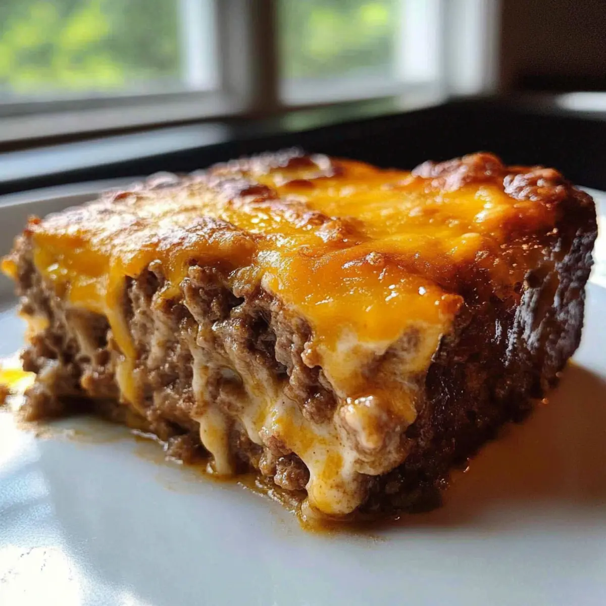 As I stood in my kitchen, the aroma of sizzling ground beef filled the air, wrapping me in a warm embrace of nostalgia. Today, I’m whipping up a Cheesy Loaded Meatloaf Casserole, a dish that not only sings comfort but also brings the whole family together. With its gooey cheese topping and hearty base, this casserole is a true crowd-pleaser, perfect for busy weeknights or Sunday dinners. The best part? It’s straightforward to prepare, ensuring minimal mess while maximizing flavor. You’ll love how it transforms a classic meatloaf into something delightfully exciting and satisfying. Are you ready to bring some cozy goodness into your home with this irresistible cheesy delight? Why is this meatloaf casserole a must-try? Comforting, Hearty Dish: This Cheesy Loaded Meatloaf Casserole combines nostalgia and flavor for the perfect cozy meal. Effortless Preparation: With simple steps and minimal cleanup, it fits seamlessly into your busy schedule. Rich, Gooey Cheese Layer: The blend of sharp cheddar and jack cheeses creates that luscious topping everyone loves. Family-Friendly Delight: This dish pleases picky eaters, making dinnertime enjoyable for all. For those looking for more great casseroles, don’t miss out on the delicious Cattle Drive Casserole or the mouth-watering Mexican Cornbread Casserole to round out your meal plans! Cheesy Meatloaf Casserole Ingredients • For the Meat Mixture Ground Beef (80/20) – Provides a juicy base with the right balance of flavor and fat; try ground turkey for a leaner option. Egg – Binds the mixture together; adding an extra egg can enhance the dish’s structure. Seasonings (Salt, Pepper, etc.) – Tailor these to your taste for customized flavor. • For the Cheese Topping Sharp Cheddar Cheese – Essential for that rich, gooey goodness; don’t skimp on this for maximum cheesiness! Jack Cheese – Blends beautifully with cheddar for a creamy layer; mozzarella can be a great substitute if preferred. • Additional Notes Baking Dish (9×13) – Ideal for even cooking and easy cleanup; alternatives may impact moisture levels so stick to this when possible. This Cheesy Meatloaf Casserole is a dish that warms the heart and satisfies the belly, making it an absolute must for your dinner table! Step‑by‑Step Instructions for Cheesy Loaded Meatloaf Casserole Step 1: Preheat the Oven Begin by preheating your oven to 375°F (190°C). This is a crucial step for ensuring that your Cheesy Loaded Meatloaf Casserole bakes evenly and develops that lovely, bubbly cheese topping as it cooks. While the oven is warming, you can prepare the baking dish and meat mixture. Step 2: Prepare the Baking Dish Grease a 9×13 baking dish with a bit of cooking spray or oil. This step is essential for preventing your casserole from sticking, making cleanup a breeze. By the time you finish greasing, your oven should be hot and ready to go. Step 3: Combine Ingredients In a large mixing bowl, combine the ground beef, egg, and a generous sprinkle of salt and pepper. Use your hands to mix gently, stopping as soon as the mixture is combined. Overmixing can lead to a dense texture in your meatloaf base—remember, we want it tender for our Cheesy Loaded Meatloaf Casserole! Step 4: Spread the Meat Mixture Transfer the meat mixture into your prepared baking dish. Use your hands to spread it evenly across the bottom, patting it down lightly. This will ensure uniform cooking and help the casserole hold its shape once it’s done baking. Step 5: Initial Bake Place the baking dish in the preheated oven and bake for 30 minutes. During this time, the meatloaf will start to cook through and firm up nicely, creating a hearty base for your casserole. Look for a golden-brown hue on top as a sign it’s ready for the next step. Step 6: Mix the Cheeses While the meatloaf bakes, grab a bowl and combine the sharp cheddar and jack cheeses. Mixing these two varieties will provide that rich and gooey texture we all love on top of the Cheesy Loaded Meatloaf Casserole. Get ready for that wonderful melty goodness! Step 7: Add the Cheese Topping After the initial bake, carefully remove the casserole from the oven. Sprinkle the cheese blend evenly over the top of the meat mixture, ensuring every corner is covered. This will create a deliciously cheesy layer that will melt and bubble during the final baking. Step 8: Final Bake Return the casserole to the oven and bake for an additional 10 minutes. This will allow the cheese to melt beautifully and reach that perfect gooey consistency. To check for doneness, use an instant-read thermometer; the internal temperature should hit 160°F (71°C). Step 9: Rest Before Serving Once it’s out of the oven, let the Cheesy Loaded Meatloaf Casserole rest for about 5 minutes. This resting time helps it set, making slicing easier and retaining all those wonderful juices. Get ready to serve a delightful dish that’s sure to be loved by the whole family! How to Store and Freeze Cheesy Loaded Meatloaf Casserole Fridge: Store leftovers in an airtight container for up to 3-4 days. This helps maintain flavor and keeps the casserole fresh for quick meal options throughout the week. Freezer: If you want to enjoy your cheesy loaded meatloaf casserole later, freeze it in an airtight container for up to 3 months. Make sure to wrap it tightly to avoid freezer burn. Reheating: To reheat, thaw in the refrigerator overnight, then warm in a covered pan or microwave. Add a splash of water or broth to retain moisture while reheating. Make-Ahead: Prepare the meat mixture in advance and refrigerate for up to 24 hours. Bake directly from the fridge, adding about 5-10 minutes to the baking time for best results. Expert Tips for Cheesy Loaded Meatloaf Casserole Don’t Overmix: Mix your meat mixture just until combined; overworking it can lead to a tough casserole. Tenderness is key for the cheesy meatloaf casserole! Ideal Cheese Melting: Use freshly grated cheese for the best melt and tex