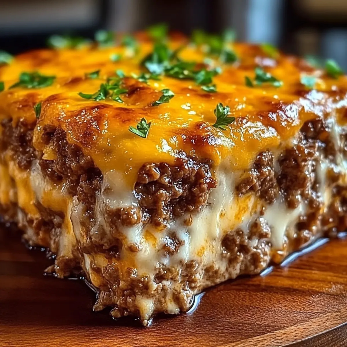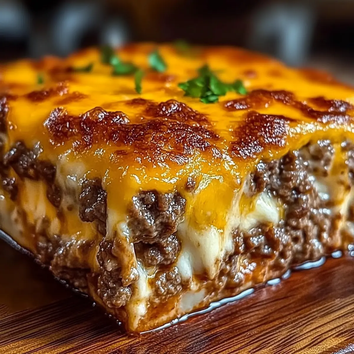 As I opened my fridge looking for inspiration, a glimmer of mozzarella caught my eye, alongside a lonely pound of ground beef. Honestly, it was then I knew I was about to embark on a delicious journey that led me straight to a comforting dish: Cheesy Meatloaf Casserole. This delightful recipe combines the richness of seasoned beef with a golden layer of bubbling cheese that melts in your mouth, making it a surefire hit for those cozy weeknight dinners. Not only is it a breeze to whip up, but it also doubles as a crowd-pleaser—perfect for gatherings with family or friends. Ready to embrace the cozy vibes of homemade comfort food? Let’s dive into this cheesy masterpiece together! Why is Cheesy Meatloaf Casserole a Must-Try? Simplicity makes this dish a weeknight favorite; it’s as easy as mixing ingredients and popping it in the oven. Flavor-packed layers of seasoned beef and melty cheese guarantee satisfaction with every bite. Crowd-pleaser at its finest! Whether you’re feeding the family or entertaining friends, it never disappoints. Versatile enough to adjust with your favorite meat blends or cheese options, this casserole fits everyone’s taste. Comfort food has never been this delightful—serve it alongside a fresh salad or creamy mashed potatoes for a complete meal! Cheesy Meatloaf Casserole Ingredients For the Casserole Ground Beef – 80/20 is ideal for juiciness; leaner blends might dry out. Breadcrumbs – Use plain or panko for binding; soak panko in milk for added moisture. Shredded Cheddar Cheese – Freshly shredded offers better melt; avoid pre-shredded for optimal flavor. Milk – Keeps meatloaf moist; beef broth can be a flavorful substitute. Ketchup – Essential for tangy flavor and moisture; don’t skip this ingredient! Chopped Onion – Enhances overall flavor; sauté for a milder taste if desired. Eggs – Provides structure; room temperature eggs mix more evenly. Salt and Pepper – Adjust to taste for the best flavor profile. Garlic Powder – Adds depth; fresh garlic is a great alternative for extra aroma. Italian Seasoning – For a touch of herbiness; swap for a mix of dried herbs if you’d like. Additional Cheese for Topping – Any cheese will create a bubbly, cheesy crust you’ll love. For Serving Sides – Pair with mashed potatoes or a fresh salad for a complete meal presentation. With these ingredients ready, you’re on your way to creating a delicious Cheesy Meatloaf Casserole that’s sure to warm hearts and bellies alike! Step‑by‑Step Instructions for Cheesy Meatloaf Casserole Step 1: Preheat the Oven Begin by preheating your oven to 350°F (175°C). While the oven warms up, take a moment to grease a 9×13-inch baking dish with a light layer of cooking spray or butter. This will ensure your Cheesy Meatloaf Casserole releases easily after baking and helps create a delicious golden crust. Step 2: Prepare the Meat Mixture In a large mixing bowl, combine the ground beef, breadcrumbs, shredded cheddar cheese, milk, ketchup, chopped onion, and eggs. Season generously with salt, pepper, garlic powder, and Italian seasoning. Use your hands or a spoon to mix until everything is just combined—avoid overmixing to keep the meatloaf tender and moist. Step 3: Shape the Casserole Transfer the prepared meat mixture into the greased baking dish, shaping it into a loaf form or spreading it evenly across the dish. Use a spatula or spoon to smooth the top for an even bake. This Cheesy Meatloaf Casserole will take on a nice, rounded shape as it cooks, giving it a professional appearance. Step 4: Bake the Casserole Place the baking dish in the preheated oven and bake the casserole for approximately 45 minutes. You want to check that the internal temperature reaches 155°F to 160°F, and the edges will start to pull away slightly from the dish. This ensures that your Cheesy Meatloaf Casserole is cooked through and juicy. Step 5: Add Extra Cheese After 45 minutes, remove the casserole from the oven and sprinkle an even layer of additional cheese on top. Return the dish to the oven and bake for another 10 to 15 minutes. Keep an eye on it until the cheese is bubbly and lightly browned, creating a delicious, cheesy crust that elevates the overall flavor. Step 6: Rest and Serve Once done, take the Cheesy Meatloaf Casserole out of the oven and allow it to cool for about 10 minutes. This resting time is crucial as it helps the juices redistribute, making for cleaner slices. After resting, slice into portions and serve, perhaps alongside some mashed potatoes or a fresh salad for a complete meal experience. Storage Tips for Cheesy Meatloaf Casserole Fridge: Store leftover Cheesy Meatloaf Casserole in an airtight container for up to 3-4 days. Make sure it’s fully cooled before sealing to retain freshness. Freezer: Wrap the casserole tightly in plastic wrap or foil and freeze for up to 3 months. This way, you can enjoy a taste of comfort food whenever you crave it! Reheating: To reheat, warm fridge-stored slices in a 350°F oven covered with foil for about 15-20 minutes. If frozen, thaw overnight in the fridge before reheating similarly. Serving Suggestions: Consider pairing reheated slices with a fresh salad or steamed vegetables to round out your meal and keep it delightful! Cheesy Meatloaf Casserole Variations Customize this Cheesy Meatloaf Casserole to tantalize your taste buds and make it uniquely yours! Different Meat Blends: Use half ground chuck and half ground sirloin for a richer flavor profile. This gives you a deliciously succulent bite. Lean Version: Swap in 90/10 lean beef to make a healthier option, just remember to add a bit more milk or an extra egg for moisture. Mini Casseroles: Bake in muffin tins for fun, individual portions that are perfect for parties. Just shorten the baking time to around 25-30 minutes. Cheese Swap: Experiment with different cheeses like Monterey Jack or Pepper Jack for a delightful twist on the traditional cheddar. Vegetable 