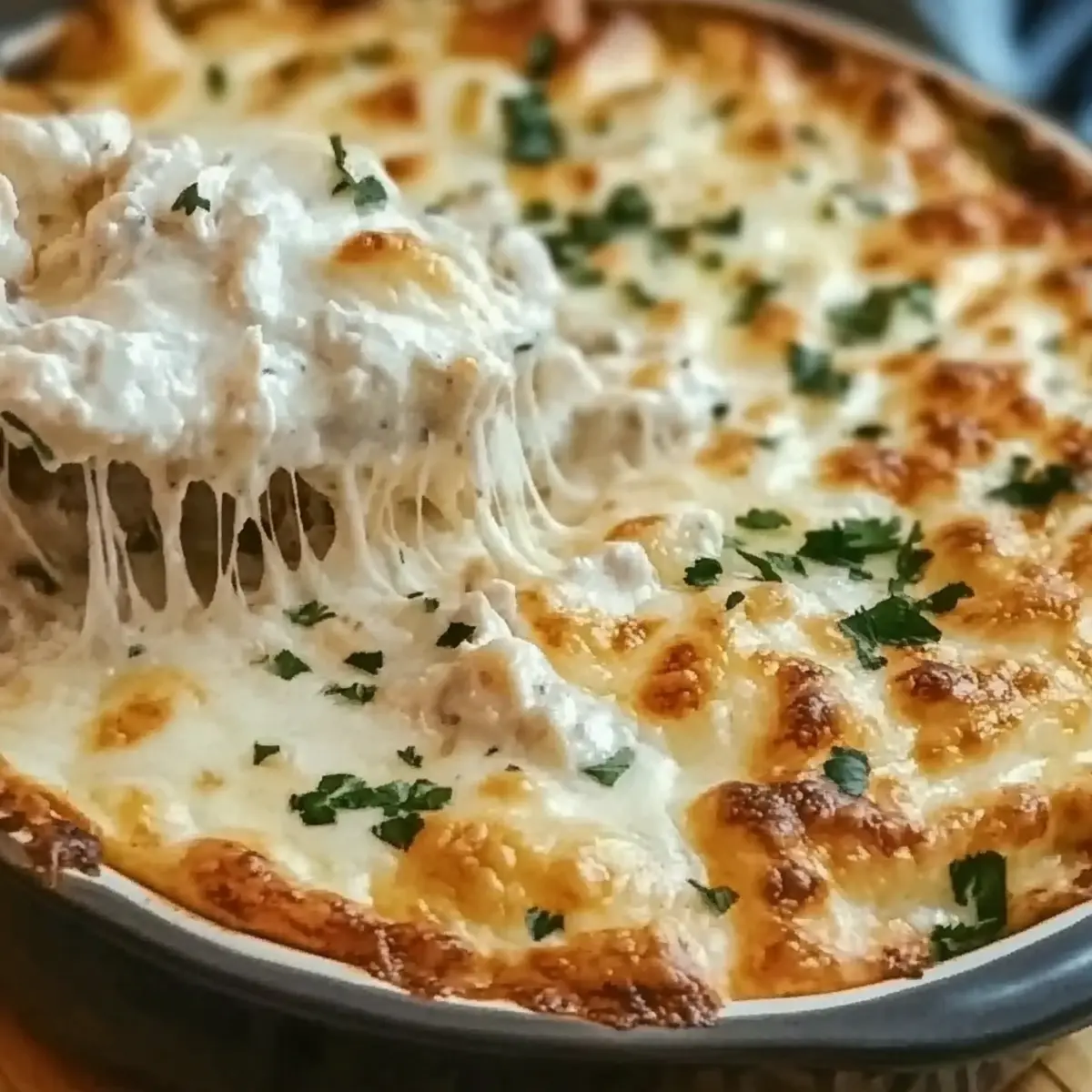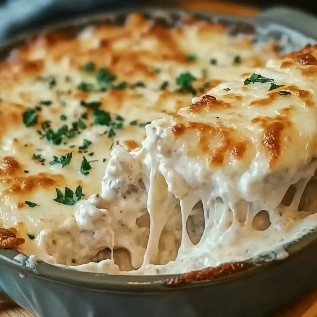 As I stirred the comforting blend of creamy ingredients, a wave of nostalgia washed over me—reminding me of family gatherings where laughter mingled with delicious aromas. This Easy Creamy Chicken Alfredo Dip isn’t just an appetizer; it’s a heartwarming experience wrapped in every bite. Perfect for parties or casual nights in, this dip transforms simple ingredients into a crowd-pleaser that everyone raves about. With its rich, velvety texture and the satisfying flavors of tender chicken and melted cheese, you’ll find it to be an effortless addition to your recipe arsenal. Plus, it whips up in no time, freeing you to enjoy precious moments with loved ones. Are you ready to dive into this irresistible dip that will have everyone coming back for more? Why is this Chicken Alfredo Dip a must-try? Irresistible Comfort: This dip brings together comforting flavors with creamy Alfredo sauce and tender chicken, making it an instant favorite. Effortlessly Simple: With straightforward steps and minimal prep time, even novice cooks can master this recipe. Crowd-Pleasing Appeal: Perfect for gatherings, this dip is guaranteed to keep partygoers coming back for seconds—just like my Shrimp Alfredo Cream. Versatile Options: Customize it with your favorite herbs or switch up the protein for an exciting twist! Deliciously Rich: The gooey cheese and savory chicken blend beautifully to create a dip that’s rich in flavor and texture, reminiscent of your classic comfort dishes. Make Ahead Magic: Prep it in advance for a hassle-free serving when guests arrive, allowing you more time to mingle and enjoy. Chicken Alfredo Dip Ingredients For the Dip Base • Cooked Chicken – Provides protein and bulk; use shredded or chopped leftover chicken for convenience. • Alfredo Sauce – Infuses creaminess and flavor; both store-bought and homemade work wonderfully. • Cream Cheese – Forms the dip’s creamy base; ensure it’s softened for easy mixing. For the Cheesy Layer • Parmesan Cheese – Freshly grated adds a nutty flavor; substitute with Pecorino Romano for a sharper taste. • Mozzarella Cheese – Offers a melty, stretchy texture; go for low-moisture mozzarella for the best results. • Monterey Jack Cheese – Optional for additional creaminess; can be omitted if desired. For Flavoring • Garlic Powder – Enhances the dip’s flavor; fresh minced garlic can also be used for a bolder taste. • Italian Seasoning – Brings herby notes to the mix; substitute with individual dried herbs if unavailable. • Salt and Pepper – Essential for seasoning; adjust these to taste for the perfect balance. With these easy-to-find ingredients, your Chicken Alfredo Dip will be a delightful crowd-pleaser everyone will adore! Step‑by‑Step Instructions for Chicken Alfredo Dip Step 1: Preheat and Prepare Begin by preheating your oven to 350°F (175°C). While the oven warms up, grease a small baking dish with cooking spray or butter to ensure easy removal of your creamy Chicken Alfredo Dip later. This initial step sets the stage for a bubbling, golden dip that will be the star of your gathering. Step 2: Mix the Creamy Base In a large mixing bowl, whisk together the softened cream cheese and Alfredo sauce until the mixture is smooth and creamy. This should take about 2-3 minutes of blending to create a luscious base for your dip. Use a hand mixer or a sturdy whisk; ensure there are no lumps for the best texture in your Chicken Alfredo Dip. Step 3: Season the Mixture Add garlic powder, Italian seasoning, salt, and pepper to your creamy base, stirring until fully incorporated. Taste as you go to adjust the seasoning to your preference, balancing the savory notes with the richness of the cream cheese and Alfredo sauce. This step enhances the flavor profile of your dip, making it more inviting. Step 4: Incorporate the Chicken and Cheese Gently fold in the shredded chicken and grated Parmesan cheese into the creamy mixture, ensuring that everything is well combined. This should take another 2 minutes; the chicken adds protein and substance, while the Parmesan deepens the flavor of the Chicken Alfredo Dip. You’ll notice the mixture becoming less runny and more substantial. Step 5: Assemble in the Baking Dish Spread the dip mixture evenly into your prepared baking dish, smoothing the top with a spatula. This creates a nice, even layer that allows for optimal cooking. Then, sprinkle the top generously with mozzarella and, if desired, Monterey Jack cheese for an ultra-creamy layer that will become gloriously melted as it bakes. Step 6: Bake to Perfection Place the dish in the preheated oven and bake for approximately 20-25 minutes. Keep an eye out for the dip to become bubbly and lightly golden at the edges, indicating it’s ready. The aroma wafting through your kitchen will have everyone excited about the Chicken Alfredo Dip coming out of the oven. Step 7: Broil for Extra Crispiness For an extra touch of indulgence, set your oven to broil and cook for an additional 1-2 minutes. This step adds a crispy, decadent top layer to your dip, making it even more appealing. Just be sure to watch closely to avoid burning; the goal is a beautifully golden, crispy finish. Step 8: Rest and Serve Once baked to perfection, remove the Chicken Alfredo Dip from the oven and let it rest for about 5 minutes. This cooling time helps the dip set a little, making it easier to scoop. Serve warm with toasted bread, crackers, or fresh veggies for a delightful dip experience that will have everyone coming back for more! Expert Tips for the Best Chicken Alfredo Dip • Soften Cream Cheese: Make sure your cream cheese is fully softened before mixing. This prevents lumps and ensures a silky-smooth Chicken Alfredo Dip. • Don’t Overbake: Keep an eye on your dip while baking. Overbaking can lead to a watery consistency. Bake until just bubbly and lightly golden for the best result. • Prep Ahead: For a stress-free gathering, prepare the di