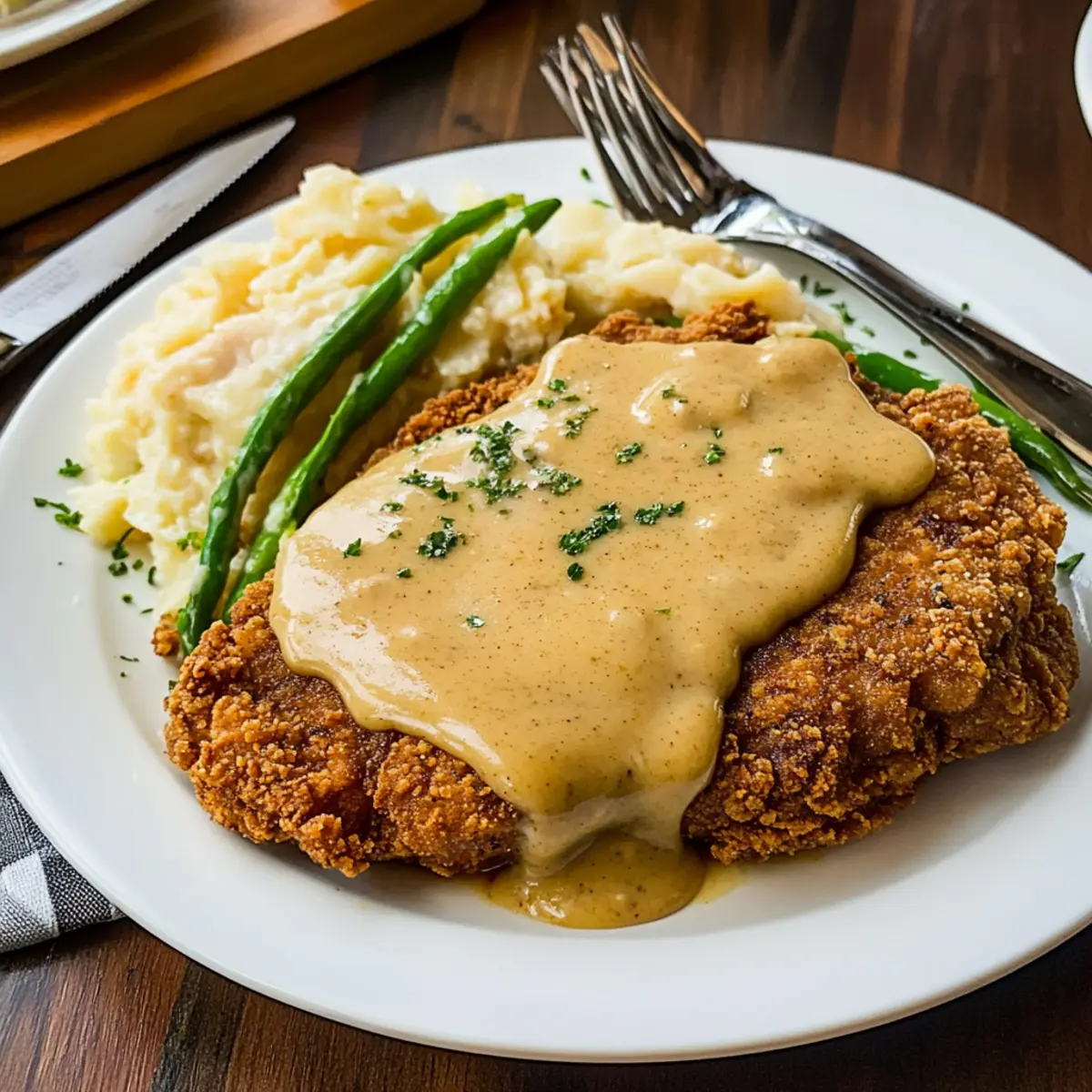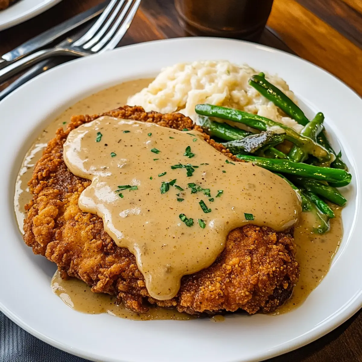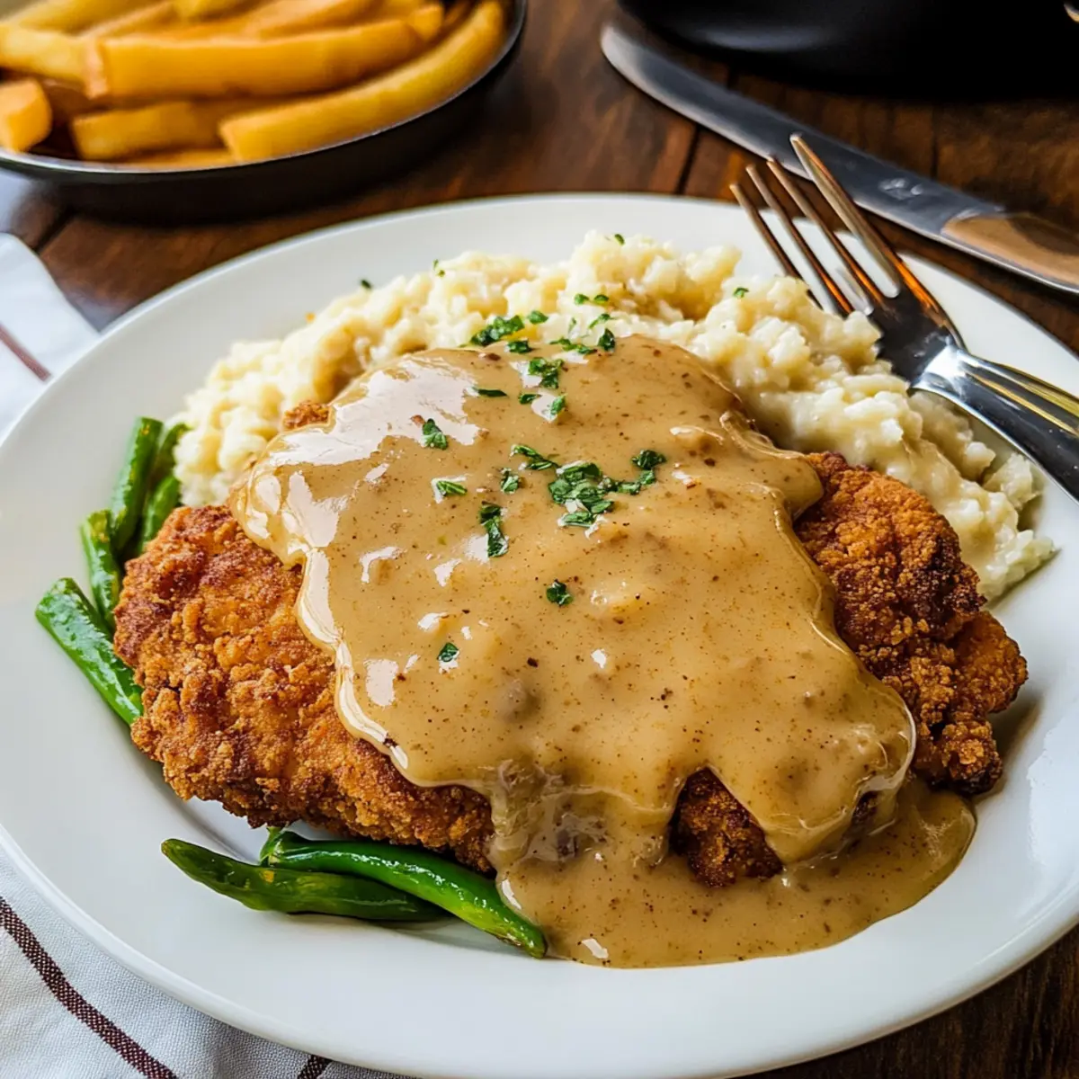 The aroma of sizzling beef fills the air as I prepare to indulge in a Southern classic—Crispy Cajun Chicken Fried Steak with Creamy Gravy. If you think comfort food can’t be both quick and satisfying, think again! This dish combines tender, thinly sliced beef, perfectly breaded, and fried to a glorious golden brown that will have everyone at your dinner table smiling. The homemade Cajun seasoning adds just the right kick, and the creamy gravy ties it all together in a beautifully rich embrace. It’s an ideal recipe for a weeknight meal that delights the senses and delivers a sense of nostalgia, making it a sure crowd-pleaser. Ready to transform your evening into a flavorful getaway? Let’s get cooking! Why is Chicken Fried Steak a Must-Try? Comforting, this chicken fried steak is the essence of Southern home cooking, bringing warmth to your soul with every bite. Crispy coating that opens up to juicy beef creates an irresistible texture that keeps everyone coming back for seconds! Homemade cajun seasoning lets you customize the heat, ensuring it’s just right for your palate. Versatile enough to pair with sides like creamy mashed potatoes or even rice, it easily becomes the centerpiece of any meal. Quick to prepare, this recipe transforms dinner into a delightful event without spending hours in the kitchen. Perfect for those tired of the same old takeout, this dish offers a satisfying experience reminiscent of a classic diner, making it a true crowd-pleaser for your family and friends! Chicken Fried Steak Ingredients • Get ready to indulge in a sensational Southern classic! For the Steak • Cubed Steak – Tenderizes the meat for frying; use top round or sirloin for great flavor. • Flour – Creates a crispy coating; combine with cornmeal for an extra crunch. • Cornstarch – Encourages crispness in the breading; can be omitted if in a pinch. • Baking Powder – Adds lightness to the breading; it’s crucial for a fluffy coating. • Cajun Seasoning – Infuses flavor and a touch of heat; it brings out the soul of chicken fried steak! • Buttermilk – Marinates the steak and adds tenderness; regular milk with vinegar works too. • Egg – Binds the coating; feel free to omit for an egg-free version. • Vegetable Oil – For frying; choose a high smoke point oil like canola for the best results. For the Gravy • Flour – Thickens the gravy; essential for that smooth texture; gluten-free flour can work too. • Milk – Provides that luscious creaminess; swap for almond or any plant-based milk for a dairy-free option. • Salt and Pepper – Essential for seasoning; adjust to taste for your perfect blend. Step‑by‑Step Instructions for Crispy Cajun Chicken Fried Steak with Creamy Gravy Step 1: Prepare the Coating To kick off your crispy Cajun chicken fried steak, combine 1 cup flour, 1/4 cup cornstarch, 1/2 teaspoon baking powder, and 2 tablespoons Cajun seasoning in a mixing bowl. In another bowl, whisk together 1 cup buttermilk and 1 egg until smooth. Ensure you set both mixtures aside within easy reach for easy breading later. Step 2: Bread the Steaks Take each cubed steak and first dredge it in the flour mixture, coating it evenly. Next, dip the coated steak into the buttermilk mixture, allowing any excess buttermilk to drip off. Finally, return the steak to the flour mix, pressing down gently to create a thick, crunchy coating that will hold up during frying. Step 3: Heat Oil In a large, heavy skillet, pour in enough vegetable oil to reach about 1/4 inch deep. Heat the oil over medium heat until it shimmers, a sign that it’s hot enough for frying. To test, drop in a pinch of flour; if it sizzles, you’re ready to fry those breaded steaks to crispy perfection. Step 4: Fry Steaks Carefully place the breaded steaks in the hot oil one at a time, ensuring not to crowd the pan. Cook each steak for about 2 to 3 minutes per side or until they turn a beautiful, golden brown color. Once cooked, transfer the steaks to a wire rack to drain any excess oil while you prepare the gravy. Step 5: Make the Gravy After removing the steaks, drain the skillet, leaving about 3 tablespoons of oil. Add 1/4 cup of flour to the oil, stirring continuously over medium heat for 3-5 minutes until golden brown and fragrant. Gradually whisk in 2 cups of milk, bringing it to a gentle simmer while stirring until the gravy thickens. Season with salt and pepper to taste, ensuring a delicious, creamy finish. Step 6: Serve and Enjoy Once the gravy thickens, it’s time to plate your crispy Cajun chicken fried steak! Serve the golden pieces generously topped with the rich, creamy gravy over a bed of fluffy mashed potatoes or rice. This comforting meal is sure to delight everyone at the table! Chicken Fried Steak Variations & Substitutions Feel free to get creative and make this chicken fried steak your very own masterpiece with these fun variations! Gluten-Free: Use a gluten-free flour blend for the breading and gravy to keep the flavor but eliminate gluten. This swap allows those with gluten sensitivities to enjoy this beloved comfort dish without compromising taste. Spicy Cajun: Add extra cayenne pepper or hot sauce to the buttermilk marination. For spice lovers, this brings an exciting kick that complements the rich flavors beautifully! Pork Alternative: Swap cubed steak for pork chops or tenderized pork loin for a delightful change. Pork embodies the same crispy goodness while providing a different flavor profile that is just as comforting. Creamy Mushroom Gravy: Stir in sautéed mushrooms and shallots to the gravy for a savory twist. This variation adds a depth of flavor that takes your chicken fried steak to the next level. For more savory richness, consider my Garlic Butter Steak Bites and Potatoes! Herbed Touch: Add chopped fresh herbs like thyme or parsley to the gravy for added freshness. A pop of greenery not only enhances the taste but also makes the dish visually appealing. Cheesy Var