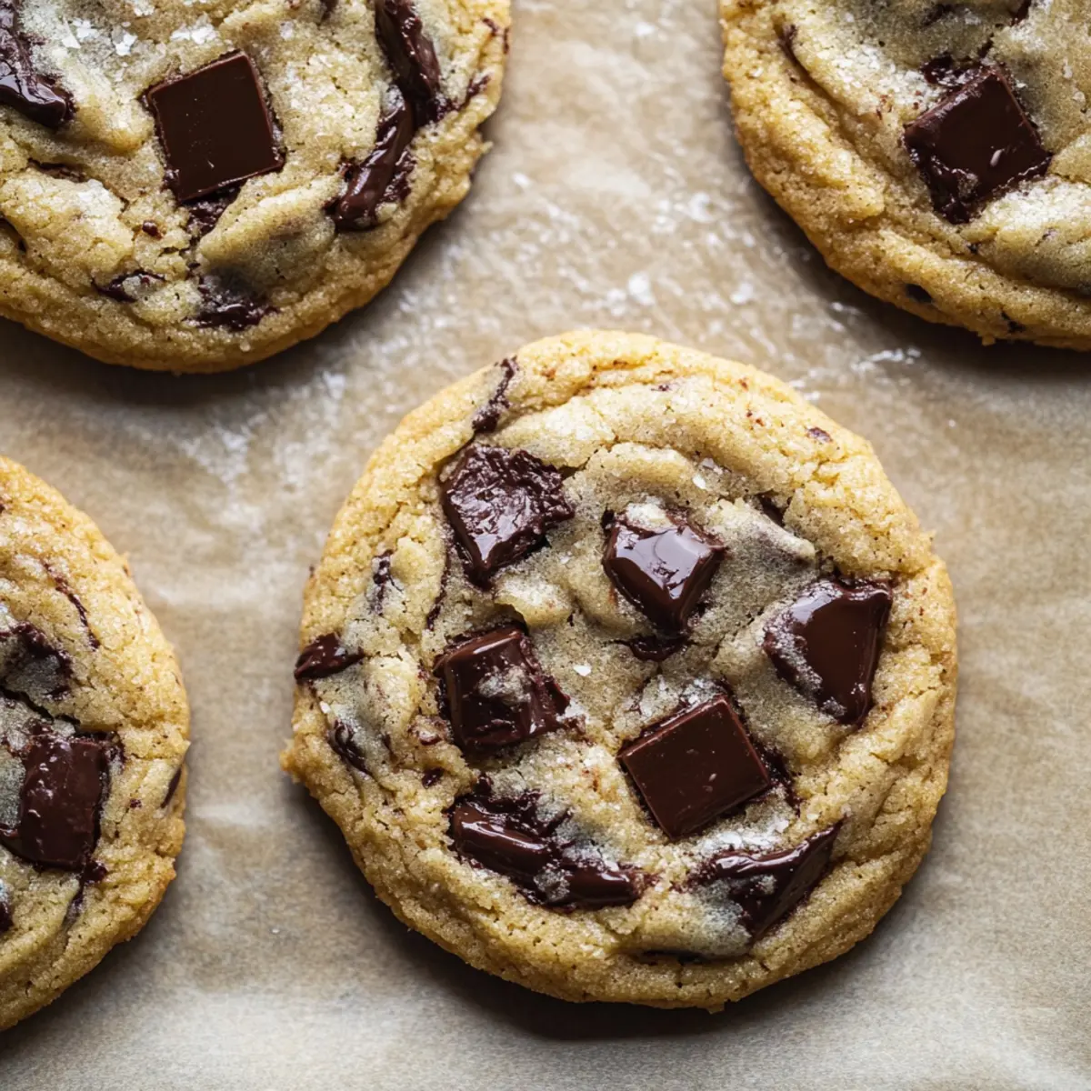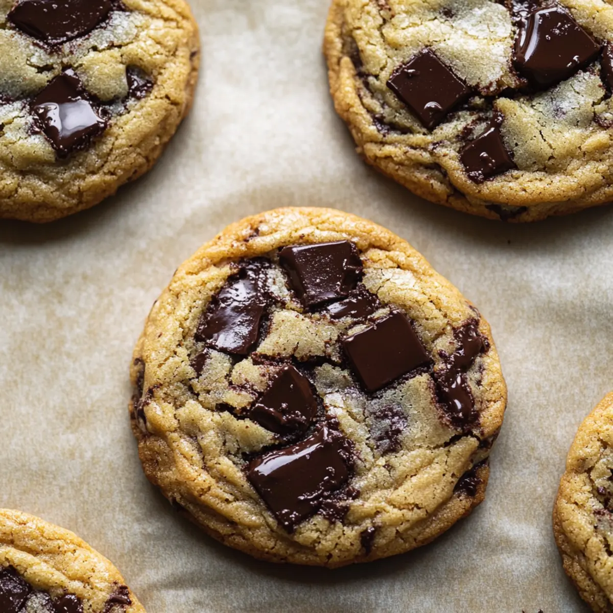 As I pulled the first batch of these Chewy Chocolate Chunk Cookies from the oven, the warm, rich aroma wrapped around me like a cozy hug. There’s something incredibly comforting about a homemade cookie, especially one that strikes that perfect balance of chewy and crispy with delightful pools of melty chocolate. By using melted butter and a mix of granulated and brown sugar, this recipe lets you skip the dough-chilling time, making it a quick and effortless treat to satisfy your sweet tooth. Not only do these cookies promise to please any crowd, but their gooey center paired with crispy edges makes them an irresistible combination for any dessert lover. Ready to indulge in a batch? Let’s dive into this mouthwatering world of chocolatey goodness! Why Are These Cookies So Irresistible? Homemade Comfort: There’s nothing like the warmth of fresh-baked cookies filling your kitchen, instantly uplifting your spirits. Simplified Process: Using melted butter means no chilling required, streamlining your baking experience while still achieving a professional texture. Perfect Texture: Enjoy the delightful contrast of crispy edges and a gooey center that melts in your mouth with every bite. Crowd-Pleaser: These cookies are sure to impress family and friends alike; they pair beautifully with a scoop of vanilla ice cream or even just a glass of milk, enhancing the indulgence. Versatile Variations: You can easily tweak this recipe by swapping semisweet chocolate for dark or adding nuts for an extra crunch, making these cookies uniquely yours. Whether you’re looking to satisfy a sweet craving or share with loved ones, these Chocolate Avocado Truffles are a delightful addition as well! Chocolate Chunk Cookie Ingredients For the Dough • Unsalted Butter – Adds richness and moisture; if using salted butter, reduce added salt. • Brown Sugar – Provides moisture and depth of flavor; pack tightly for optimal sweetness. • Granulated Sugar – Contributes sweetness and promotes spreading; adjust to taste if preferred. • All-Purpose Flour – Gives structure to cookies; ensure accurate measurements by spooning and leveling. • Baking Soda – Acts as a leavening agent for rise; always check for freshness to maximize effectiveness. • Kosher Salt – Balances sweetness and enhances flavor; modify the amount if using salted butter. • Large Egg – Binds the mixture and enriches texture; at room temperature is best for even mixing. • Vanilla Extract – Adds a warm depth of flavor; consider substituting with almond extract for a twist. For the Chocolate • Semisweet Chocolate – Provides rich chocolate flavor; chop into chunks for gooey puddles throughout. Aim for chocolate with 40-65% cacao for desirable melting. These delightful Chocolate Chunk Cookies are ready to take your baking to the next level! Enjoy crafting these easy, scrumptious treats. Step‑by‑Step Instructions for Chewy Chocolate Chunk Cookies Step 1: Preheat the Oven Begin by preheating your oven to 350°F (175°C). This ensures that your cookies bake evenly. While the oven warms up, prepare your baking sheet by lining it with parchment paper. This step is crucial as it prevents the cookies from sticking and helps achieve those lovely crispy edges. Step 2: Combine Butter and Sugars In a large mixing bowl, whisk together the melted unsalted butter, brown sugar, and granulated sugar until the mixture is smooth and well combined. Look for a glossy texture that indicates the sugars are dissolving properly. This step will take about 1-2 minutes. The melted butter adds richness to your Chewy Chocolate Chunk Cookies. Step 3: Add Egg and Vanilla Next, whisk in one large egg and the vanilla extract until the mixture is fully mixed and creamy. This should take another minute. The egg acts as a binder, helping to create that delicious chewy texture. You’ll notice the color lightening as the mixture becomes homogenous—this is a good sign! Step 4: Mix Dry Ingredients Fold in the all-purpose flour, baking soda, and kosher salt using a spatula until just combined. Be careful not to overmix, as this can lead to tougher cookies. The dough will be slightly sticky but cohesive and ready to hold those delicious chunks of chocolate. Step 5: Incorporate Chocolate Chunks Now it’s time to fold in the semisweet chocolate chunks, ensuring they are evenly distributed throughout the dough. Save a few chunks to place on top of the cookie dough balls for a beautiful finish. This step enhances the chocolatey goodness of your cookies, resulting in gorgeous pools of melted chocolate in the final bake. Step 6: Scoop the Dough Using a cookie scoop or a large spoon, scoop approximately 3 tablespoons of cookie dough for each cookie and place them onto the prepared baking sheet, spaced about 2 inches apart. This spacing is crucial for allowing the cookies to spread without touching one another. Top each cookie ball with the reserved chocolate chunks for extra flair. Step 7: Bake the Cookies Place your baking sheet in the preheated oven and bake the cookies for 12-15 minutes, or until the edges are golden brown and the centers are just set. Keep an eye on them towards the end as every oven is different. You want a slightly soft center that will firm up as they cool, giving you that chewy texture. Step 8: Cool Before Serving Once baked, remove the cookies from the oven and let them cool on the baking sheet for about 5 minutes. This allows the cookies to hold their shape and makes them easier to transfer. After cooling slightly, transfer them to a wire rack to finish cooling completely and enjoy your delicious Chewy Chocolate Chunk Cookies! Chocolate Chunk Cookies Variations Feel free to make these chocolate chunk cookies your own with these fun and delicious twists! Dark Chocolate: Swap semisweet chocolate for dark chocolate to intensify the cookie’s rich flavor. A higher cacao percentage will create a more sophisticated profile. Milk Chocolate: Prefer