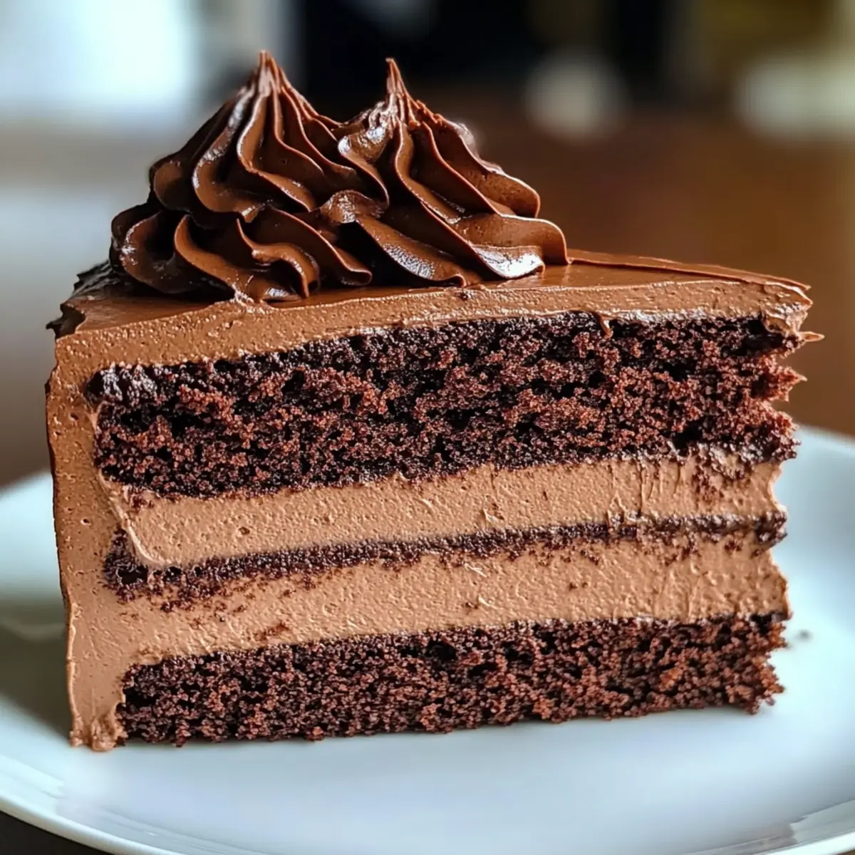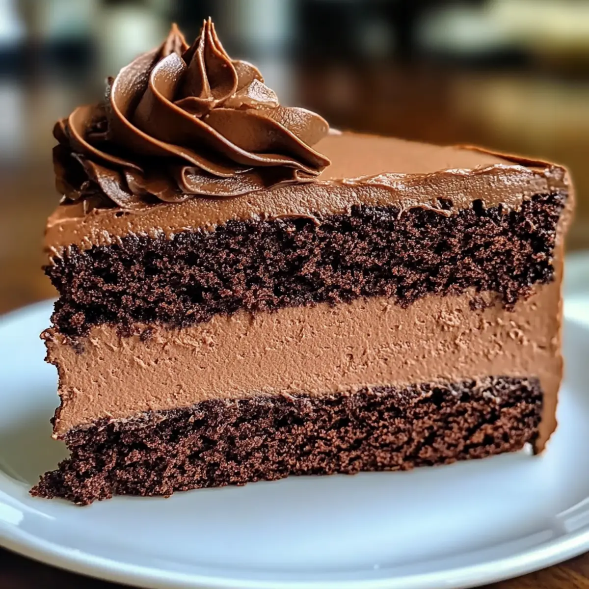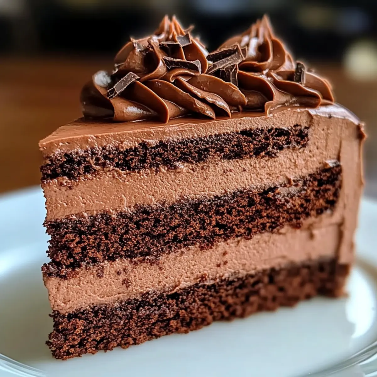 As I stood in my kitchen last Saturday, a heavenly aroma of melted chocolate filled the air, instantly transporting me to my favorite bakery. This Easy Chocolate Mousse Cake is a delightful nod to those blissful moments spent indulging in rich, creamy desserts. With moist layers of cake perfectly paired with fluffy mousse, it’s a decadent experience that’s surprisingly simple to craft. Whether you’re hosting a gathering or treating yourself to a mid-week dessert, this treat is sure to impress. Plus, it offers the versatility to be vegan-friendly, catering to everyone at your table. Who can resist that? Ready to whip up something special and bring a touch of bakery magic home? Let’s dive into this irresistible recipe! Why is this Chocolate Mousse Cake special? Decadent Indulgence: This Easy Chocolate Mousse Cake combines rich, moist layers with a light, airy mousse for the ultimate dessert experience that transports you to dessert heaven with every bite. Versatile Recipe: Feel free to experiment with vegan substitutes like flax eggs and coconut cream, making it perfect for all dietary preferences. Quick and Effortless: With a streamlined process, even novice bakers will find this recipe easy to tackle for a weeknight treat or special occasion—just like my Gluten Free Chocolate cookies, which are both delicious and simple! Showstopper Appeal: The glossy ganache topping not only elevates the look but also adds a gourmet touch, making it a hit at any gathering—great for parties like the ones where I serve my Red Velvet Cake to impress guests. Perfect for Celebrations: This cake’s rich flavors and impressive presentation make it an excellent choice for celebrations, whether you’re enjoying a milestone or simply treating yourself. Indulge guilt-free and savor the joy! Chocolate Mousse Cake Ingredients For the Cake • All-Purpose Flour – Provides structure to the cake; substitute with gluten-free flour for a gluten-free option. • Granulated Sugar – Adds sweetness; try brown sugar for a deeper flavor. • Cocoa Powder – Imparts chocolate flavor; use unsweetened cocoa for less sweetness. • Baking Powder & Baking Soda – Vital leavening agents for a lovely rise; always check for freshness. • Salt – Enhances overall flavor; kosher or sea salt works best here. • Eggs – Binds ingredients and adds moisture; for a vegan option, replace with flax eggs. • Vegetable Oil – Keeps the cake moist; melted coconut oil can also be used. • Buttermilk – Adds tenderness to the cake; use milk with a splash of vinegar as a substitute. • Hot Coffee – Intensifies chocolate flavor; omit for a caffeine-free cake or swap with hot water. For the Mousse • Semisweet Chocolate – The star ingredient that creates a rich mousse; dark chocolate elevates intensity. • Heavy Whipping Cream – Gives the mousse an airy texture; coconut cream serves as a great dairy-free alternative. • Powdered Sugar – Sweetens the whipped cream; adjust based on your sweetness preference. • Vanilla Extract – Infuses depth of flavor; opt for pure vanilla for a brighter taste. For the Ganache • Bittersweet Chocolate – Creates a glossy, luxurious ganache; you can use dark chocolate for a bolder flavor. • Corn Syrup & Butter – Contributes to a shiny and smooth ganache; substitute butter with coconut cream for a vegan alternative. Step‑by‑Step Instructions for Easy Chocolate Mousse Cake Step 1: Preheat the Oven Begin by preheating your oven to 350°F (175°C). While it warms, prepare two round cake pans by greasing them with butter or non-stick spray and dusting with flour. This step ensures your cake layers release easily later, setting you up for a stunning Easy Chocolate Mousse Cake. Step 2: Mix Dry Ingredients In a large mixing bowl, whisk together 1 ¾ cups of all-purpose flour, 2 cups of granulated sugar, ¾ cup of cocoa powder, 1 ½ teaspoons of baking powder, 1 teaspoon of baking soda, and ½ teaspoon of salt. This combination of dry ingredients creates the rich base for your cake, while its chocolatey aroma fills your kitchen. Step 3: Combine Wet Ingredients In a separate bowl, whisk together 2 large eggs, ½ cup of vegetable oil, 1 cup of buttermilk, and 1 cup of hot coffee until smooth. The hot coffee enhances the chocolate flavor, making your Easy Chocolate Mousse Cake truly decadent. Ensure all wet ingredients are well blended before combining them with the dry. Step 4: Incorporate Wet and Dry Ingredients Gently fold the wet mixture into the dry ingredients using a spatula or wooden spoon. Mix until just combined; be careful not to over-mix, as this can lead to a denser cake. Lumps are okay! Once fully combined, you’ll have a luscious batter ready to be poured into the pans. Step 5: Bake the Cake Layers Divide the batter equally between the prepared cake pans. Bake in the preheated oven for 25-30 minutes, or until a toothpick inserted in the center comes out clean. Keep an eye on the cake’s rise and color—golden brown is an excellent sign of doneness. Once baked, remove them to cool completely. Step 6: Melt the Semisweet Chocolate While the cakes cool, melt 8 ounces of semisweet chocolate using a double boiler or in the microwave in 30-second intervals, stirring until smooth. Allow the melted chocolate to cool slightly before using it in your mousse. The chocolate should be warm but not hot so it blends seamlessly into the whipped cream later. Step 7: Whip the Cream In a chilled bowl, whip 2 cups of heavy whipping cream with 1/2 cup of powdered sugar and 1 teaspoon of vanilla extract until stiff peaks form. This step is crucial for achieving the light and airy texture of the mousse. Use an electric mixer for efficient whipping—don’t rush this part! Step 8: Combine Melted Chocolate with Whipped Cream Gently fold the cooled melted chocolate into the whipped cream. Use a spatula to carefully combine, maintaining the airiness of the cream. This will create the fluf
