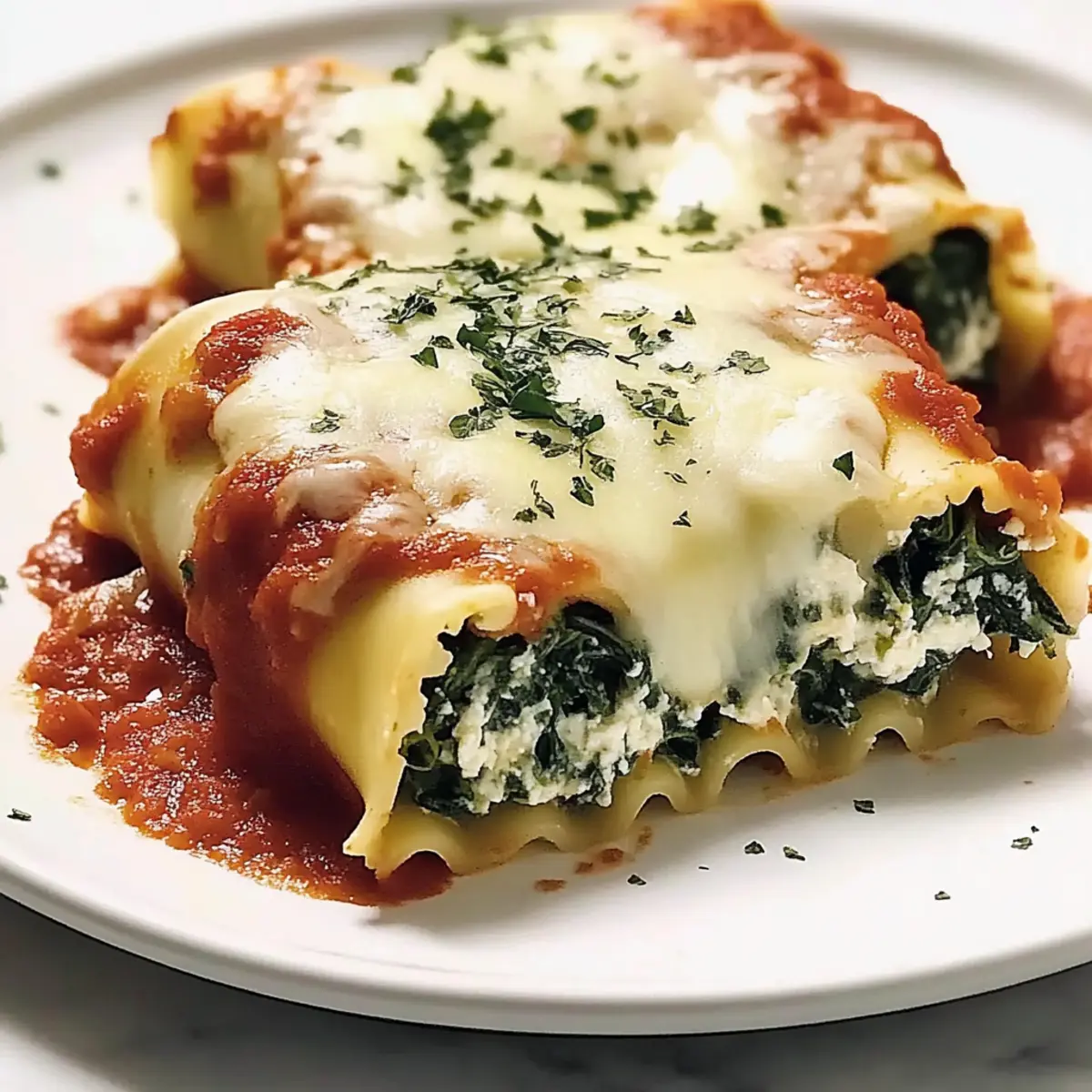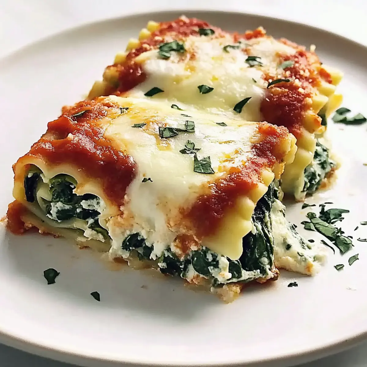 As I stood in my kitchen, the aroma of sautéing onions and garlic whisked me away to a cozy Italian trattoria. This Easy Classic Spinach Lasagna Roll-Ups recipe has become a weeknight savior, combining the comforting essence of homemade lasagna with the delightful twist of individual servings. Packed with creamy, nutrient-rich spinach and surrounded by gooey mozzarella, these roll-ups are not only a wholesome vegetarian option but also a crowd-pleaser that brings joy to any table. Plus, they whip up quickly, making them perfect for those busy evenings when you’re craving something special. Looking to elevate your dinner routine? Let’s dive into crafting these delightful roll-ups together! Why are Spinach Lasagna Roll-Ups a Must-Try? Comforting, Homemade Goodness: These roll-ups deliver all the love of classic lasagna, but in an easy-to-serve format. They make the perfect weeknight treat or family gathering dish. Quick Preparation: With straightforward steps, these roll-ups can be ready to bake in no time, ensuring you can focus on enjoying the moment with your loved ones. Nutritious Twist: Packed with nutrient-dense spinach, you’re not only indulging but also fueling your body with goodness. You can even try swapping spinach with shredded zucchini or mushrooms for a flavor twist! Melty Cheese Delight: A generous layer of melted mozzarella tops each roll-up, providing that gooey satisfaction you’ll crave again and again. Pair them with a crisp Caesar salad or some garlic bread for a complete meal that your family will rave about! For more ideas, check out my Easy Lasagna for cozy nights or Chicken Feta Spinach Burgers for a fun twist! Spinach Lasagna Roll-Ups Ingredients • Curiosity Note: Discover what makes these classic roll-ups so delightful! For the Sauce Olive Oil – Essential fat for sautéing; can substitute with another cooking oil such as vegetable oil. Onion – Adds sweetness and depth to the sauce; yellow or white onions work best. Crushed Tomatoes – Forms the base of the sauce, providing acidity and richness; canned diced tomatoes can be used as a substitute. Garlic – Enhances flavor; substitute with garlic powder if necessary (1 teaspoon for each clove). Dried Basil – Offers aromatic flavor; fresh basil can be substituted (use about 1 tablespoon). Dried Oregano – Adds earthy notes; fresh can be used in equal amounts. Dried Parsley – Provides freshness; can be omitted if not available. Salt and Pepper – Enhances overall flavor; adjust according to preference. For the Filling Frozen Spinach – Main ingredient for the filling; provides nutrients. For fresh, use 1 pound, sautéed and drained. Ricotta Cheese – Base for the creamy filling; cottage cheese can substitute with a similar texture. Mozzarella Cheese – Provides gooey, melt-in-your-mouth quality; use other melty cheeses like provolone if desired. Parmesan Cheese – Adds a nutty flavor; Pecorino Romano is a suitable alternative. Egg – Binds the filling ingredients; can be omitted for a vegan variation. For Assembly Lasagna Noodles – Structure for the dish; no-boil noodles can be substituted but adjust the cooking method accordingly. Enjoy crafting these delectable Spinach Lasagna Roll-Ups, where each bite is a burst of creamy spinach goodness! Step‑by‑Step Instructions for Classic Spinach Lasagna Roll-Ups Step 1: Sauce Preparation Begin by heating 2 tablespoons of olive oil in a medium saucepan over medium heat. Once hot, add 1 diced onion and sauté until translucent, about 5 minutes. Stir in 2 cloves of minced garlic and cook for an additional minute until fragrant. Next, add a 28-ounce can of crushed tomatoes, 1 teaspoon each of dried basil and oregano, salt, and pepper to taste. Allow the sauce to simmer gently for at least 20 minutes, stirring occasionally until thickened. Step 2: Noodle Cooking In a large pot, bring water to a rapid boil and add a pinch of salt. Cook 12 lasagna noodles according to package instructions until al dente, about 8-10 minutes. Drain the noodles well and gently lay them flat on wax paper or parchment to cool, ensuring they don’t stick together. This will make it easier to roll up the noodles later while preparing your Classic Spinach Lasagna Roll-Ups. Step 3: Filling Mix In a large mixing bowl, combine 2 cups of thawed and well-drained frozen spinach, 15 ounces of ricotta cheese, and 1.5 cups of shredded mozzarella cheese. Add 1/4 cup of grated Parmesan cheese and a beaten egg, mixing thoroughly until all ingredients are well combined. This creamy filling is the heart of your Classic Spinach Lasagna Roll-Ups, so be sure to blend well for maximum flavor. Step 4: Assembly Spread about 1/4 cup of the spinach filling evenly over each lasagna noodle. Carefully roll each noodle from one end to the other, creating a tight roll, and place seam side down in a greased 9×13 inch baking dish. Continue this process until all noodles are rolled up, ensuring each roll is packed with the creamy spinach filling for the perfect Classic Spinach Lasagna Roll-Ups. Step 5: Final Assembly Pour the remaining simmered tomato sauce over the assembled roll-ups, making sure they are generously covered. Sprinkle with an additional cup of shredded mozzarella cheese on top for that delicious, melty finish. Preheat your oven to 375°F and bake for 25 minutes, or until the cheese is bubbling and golden. For an extra touch of browning, broil the roll-ups for an additional 2-3 minutes at the end of baking. What to Serve with Easy Classic Spinach Lasagna Roll-Ups Imagine a meal where crisp, fresh side dishes harmonize beautifully with warm, cheesy goodness to create a comforting dining experience. Crisp Caesar Salad: The tangy dressing and crunchy romaine provide a refreshing contrast to the creamy roll-ups, enhancing every bite. Garlic Bread: Warm, buttery garlic bread is perfect for soaking up the rich tomato sauce, making each mouthful even more delightful. Italian-Style Roasted Veg