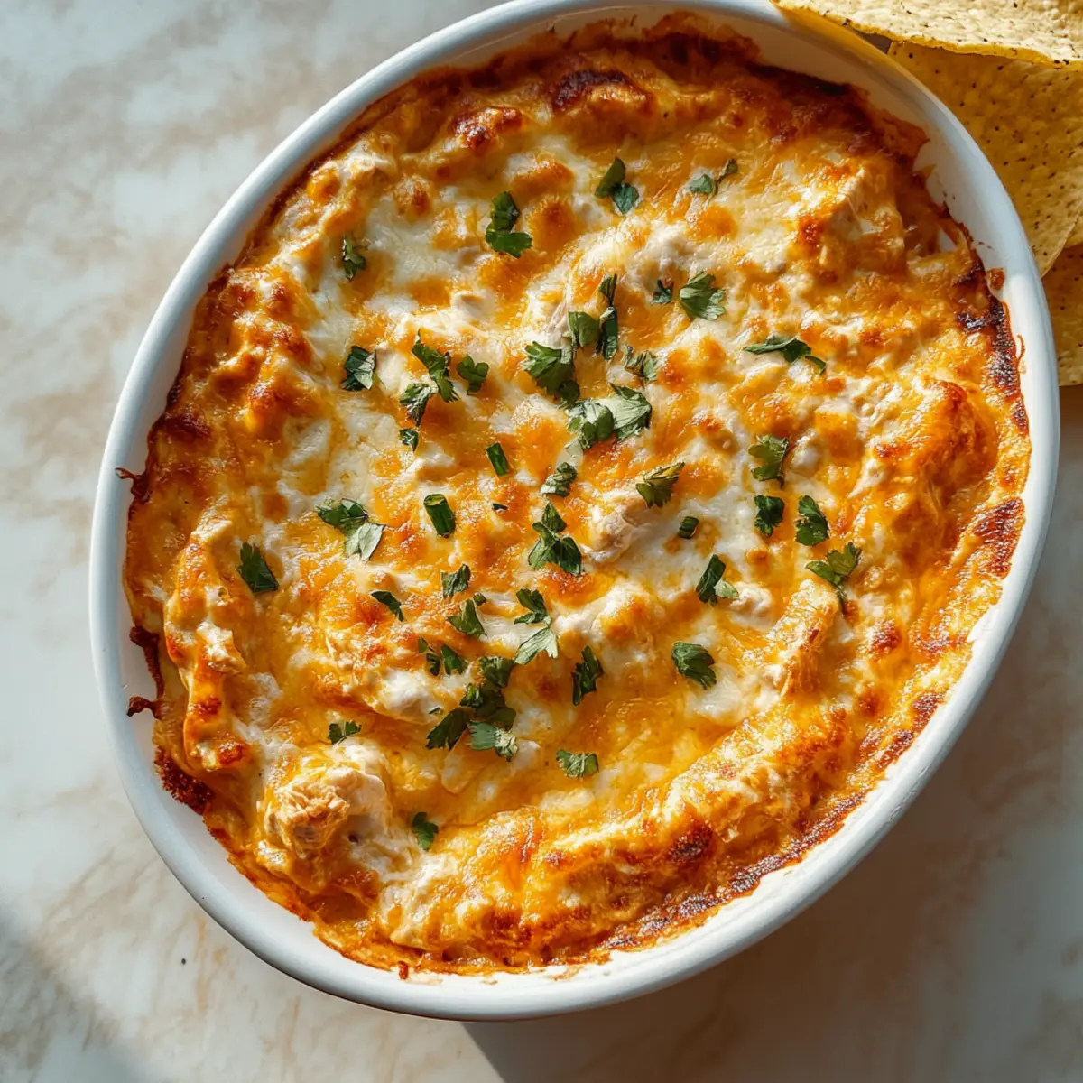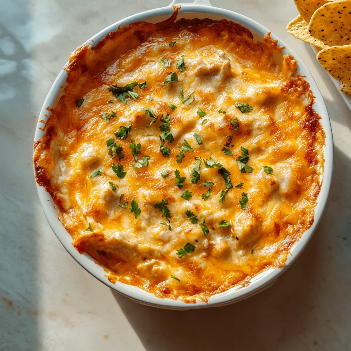 There’s nothing quite like the thrill of whipping up a crowd-pleasing comfort food, and my Creamy Buffalo Chicken Dip is just that! This rich and cheesy dip effortlessly melds shredded chicken, zesty hot sauce, and cream cheese into a scrumptious blend that’s perfect for any gathering—whether it’s game day, a birthday bash, or a cozy night in with friends. What I adore about this easy recipe is how it transforms casual ingredients into an indulgent treat, requiring minimal effort and time. With just a few simple steps, you can serve a dip that’s not only delicious but also ideal for scooping up with crunchy chips or crisp veggies. Who can resist diving into a warm, bubbly dish that awakens the taste buds? Ready to make a statement at your next get-together? Let’s get started! Why is this Buffalo Chicken Dip unforgettable? Irresistible Flavor: The balance of creamy cheese with the spicy kick of buffalo sauce keeps everyone coming back for more. Effortless Preparation: This easy recipe requires only a few steps, making it perfect for busy hosts! Versatile Serving Options: Pair it with tortilla chips, celery sticks, or even as a filling in small tortillas for a fun twist. Crowd Favorite: Boost your gatherings with a dish that appeals to both spicy food lovers and comfort food fans alike. Make-Ahead Friendly: Prep it the night before and simply bake when you’re ready to serve—it’s that simple! Ready to elevate your snack game? Check out my delicious Chicken Ranch Macaroni for another crowd-pleasing option! Creamy Buffalo Chicken Dip Ingredients For the Dip Cooked Shredded Chicken – Main protein source; using freshly shredded chicken gives the dip better flavor and texture. Cream Cheese (8 oz, softened) – Adds luscious creaminess; consider reduced-fat cream cheese for a lighter option. Buffalo Hot Sauce (1/2 cup, e.g., Frank’s) – Provides that signature spicy kick; feel free to adjust based on your heat preference. Ranch Dressing (1/2 cup) – Enhances flavor with tanginess; substitute Greek yogurt for a healthier alternative. Shredded Cheddar Cheese (1 cup) – Contributes richness; opt for sharp cheddar for a more pronounced flavor. Shredded Mozzarella Cheese (1/2 cup) – Adds a delightful stretchiness when melted; for added zest, mix in some pepper jack cheese. For Serving Tortilla Chips – Perfect for dipping into the creamy goodness; avoid plain chips for a flavor boost! Celery Sticks – A crunchy companion that balances the richness; they’re a great low-calorie option. Small Tortillas – Great for wrapping up the dip into bite-sized snacks; makes for an easy party treat! Ready to create this comforting, creamy Buffalo Chicken Dip that everyone will crave? Enjoy every scoop! Step‑by‑Step Instructions for Creamy Buffalo Chicken Dip Step 1: Preheat Oven Begin by preheating your oven to 350°F (175°C). This is key to ensure your Creamy Buffalo Chicken Dip bakes evenly and thoroughly. Grab a baking dish, ideally around 8×8 inches, to prepare for the cheesy goodness that will come soon! Step 2: Mix Chicken and Cream Cheese In a large mixing bowl, combine the cooked shredded chicken with softened cream cheese. Using a hand mixer or a spatula, blend them together until you achieve a smooth, creamy texture. This should take about 2-3 minutes. Make sure there are no lumps, as a smooth base is crucial for your dip! Step 3: Add Hot Sauce and Dressing Next, stir in the buffalo hot sauce and ranch dressing into the chicken and cream cheese mixture. Continue mixing until the ingredients are evenly coated and well incorporated, which should take another 2-3 minutes. The vibrant orange hue should indicate that your dip is coming together beautifully! Step 4: Incorporate Cheeses Now, fold in half of the shredded cheddar and mozzarella cheese into your mixture. Use a spatula to ensure the cheeses are distributed throughout the dip. This creates a rich, melty consistency when baked, which takes your Creamy Buffalo Chicken Dip to the next level of deliciousness. Step 5: Spread the Mixture Transfer the creamy chicken mixture into your prepared baking dish. Spread it out evenly with the spatula, smoothing the top to create a nice surface for the remaining cheese. This will help the dip bake evenly and develop that golden, bubbling layer of cheesy goodness. Step 6: Top with Remaining Cheese Sprinkle the remaining cheddar and mozzarella cheese over the top of the dip. This additional layer will melt beautifully during baking, creating a irresistible golden crust. Make sure to cover the surface evenly, as this will enhance both texture and flavor of your Creamy Buffalo Chicken Dip. Step 7: Bake the Dip Place the baking dish into the preheated oven and bake for 20-25 minutes. Keep an eye on it—aim for bubbly edges and a melted, slightly golden top. The aroma wafting through your kitchen will let you know that something special is happening! Step 8: Cool and Serve Once baked, take the dish out of the oven and allow it to cool for about 5-10 minutes. This cooling time helps thicken the dip slightly, making it easier to scoop with your favorite tortilla chips or celery sticks. Your Creamy Buffalo Chicken Dip is now ready to impress at your gathering! Expert Tips for Creamy Buffalo Chicken Dip Soften Cream Cheese: Allow the cream cheese to sit at room temperature for at least 30 minutes before mixing; this helps achieve a smooth consistency and prevents lumps in your creamy dip. Adjust Spice Level: If you’re unsure about the heat, start with a little less buffalo hot sauce and gradually add more to suit your taste; this ensures everyone enjoys the dip without it being too spicy. Baking Dish Choice: Use a shallow baking dish, such as an 8×8 inch one, to ensure even cooking for your Creamy Buffalo Chicken Dip; a deeper dish may require longer baking time and could affect texture. Make-Ahead Option: Prepare the dip a day in advance and refrigerate it uncooked; this allows the f