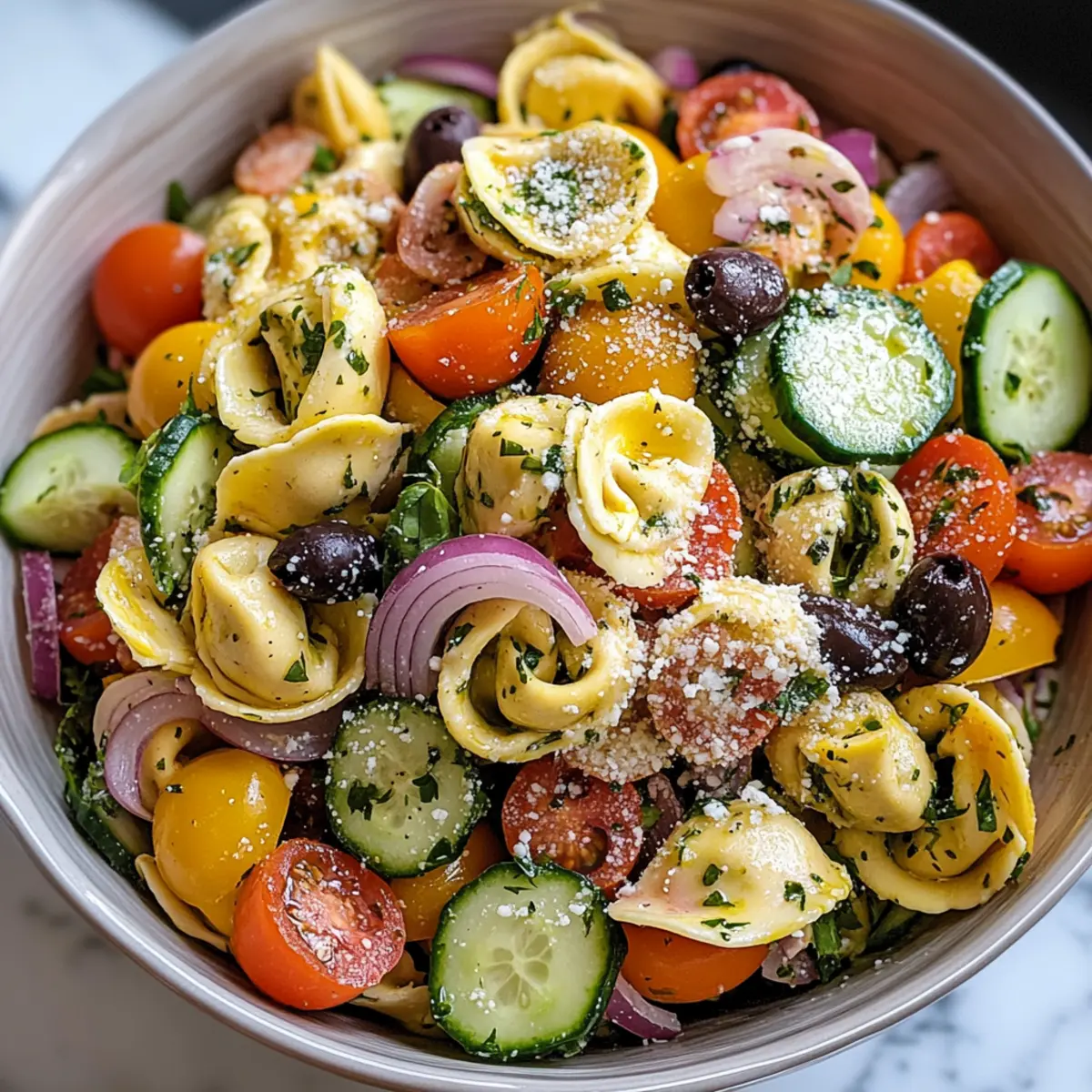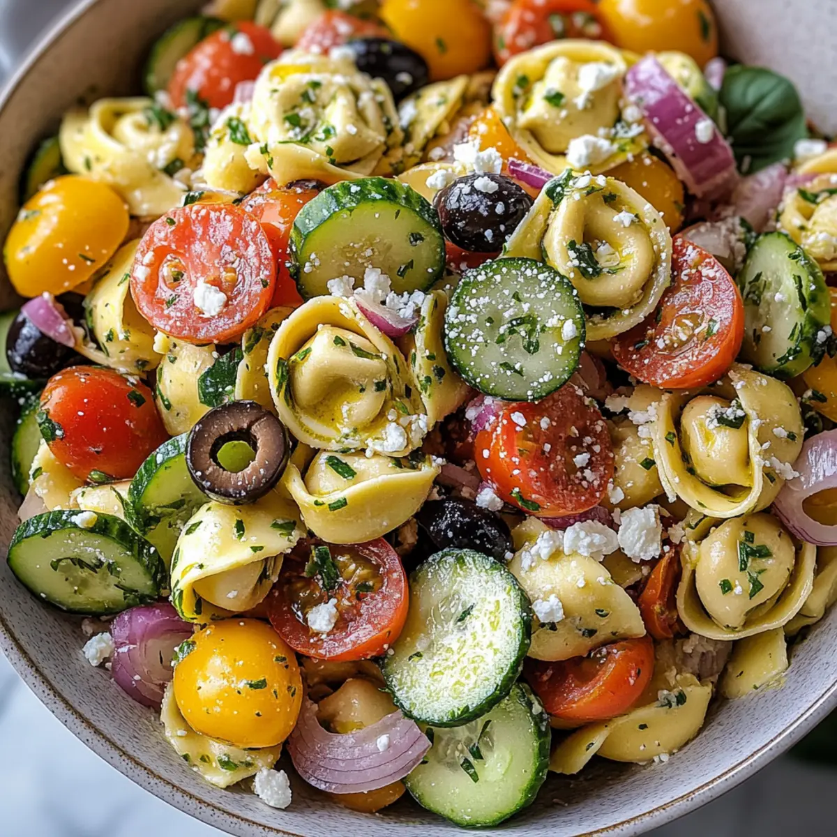 There’s nothing quite like the exhilaration of fresh, vibrant veggies dancing atop a bed of creamy pasta, especially when they come together in a dreamy Creamy Italian Tortellini Salad. This dish is my go-to for sunny days, offering a fantastic balance of flavors that can brighten any meal—whether it’s a picnic or a simple dinner at home. What truly warms my heart is its adaptability; with just a shift in vegetables or proteins, it transforms effortlessly to suit every season. Plus, it’s a breeze to prepare, making it perfect for those hectic days when you still crave something homemade. Imagine the joy of serving a bowl of this delightful salad to friends and family; the smiles alone make it worth it! Ready to whip up a dish that’s sure to impress? Let’s dive into this culinary adventure together! Why Is This Salad a Must-Try? Versatile Ingredients: With cheese tortellini as a creamy base, you can easily swap veggies and proteins, making it adaptable for any occasion. Vibrant Flavors: The melody of fresh cherry tomatoes, crunchy cucumbers, and tangy balsamic vinaigrette creates a burst of taste in each bite. Quick and Easy: This salad comes together in just a few minutes, perfect for those busy summer days when you crave delicious homemade food. Make-Ahead Magic: You can prepare it ahead of time; letting it sit allows flavors to meld, making it an ideal dish for gatherings. Serve it alongside Avocado Egg Salad for a delightful spread! Crowd-pleaser: Whether it’s for a picnic or family dinner, this salad charms everyone at the table, ensuring smiles with every serving. Creamy Italian Tortellini Salad Ingredients • Perfect for a refreshing summer dish! For the Salad Cheese Tortellini – the creamy base that brings heartiness; substitute with gluten-free tortellini for a lighter option. Cherry Tomatoes – deliciously sweet and juicy; swap for diced bell peppers for additional crunch. Cucumber – adds a refreshing crunch; replace with zucchini for a low-carb choice. Red Onion – offers a zesty bite; green onions are a milder alternative. Black Olives – contribute a savory depth; capers make a great substitute or omit for a less briny flavor. Feta Cheese – creamy and salty finish; goat cheese works well too or omit for a dairy-free option. For the Dressing Olive Oil – serves as the rich base; avocado oil is a healthy alternative. Balsamic Vinegar – provides tangy brightness; red wine vinegar can also elevate the flavors. Dijon Mustard – adds a sharpness to the dressing; feel free to omit for a milder taste. Salt and Pepper – essential for enhancing the flavors; adjust according to your preference. For Garnishing Fresh Basil – offers aromatic freshness; substitute with parsley for a different herbaceous note. Step‑by‑Step Instructions for Creamy Italian Tortellini Salad Step 1: Cook the Tortellini Begin by cooking the cheese tortellini according to the package instructions, which typically takes about 2–4 minutes in boiling salted water. Once al dente, drain the tortellini and rinse it under cold water to halt the cooking process. This cooling method ensures the pasta remains tender and perfect in your Creamy Italian Tortellini Salad. Step 2: Prepare the Vegetables While the tortellini cools, chop the cherry tomatoes, cucumber, red onion, and black olives. Aim for bite-sized pieces to ensure an even mix throughout the salad. Toss these vibrant fresh vegetables into a large mixing bowl, creating a colorful base that highlights the Creamy Italian Tortellini Salad’s refreshing appeal. Step 3: Combine Salad Ingredients Once the tortellini has cooled completely, add it to the bowl with the freshly chopped vegetables. Next, crumble the feta cheese over the mixture, allowing its creamy qualities to meld wonderfully with the rest of the ingredients. Gently toss everything together to combine, ensuring each ingredient is coated in deliciousness. Step 4: Make the Dressing In a separate small bowl, whisk together olive oil, balsamic vinegar, Dijon mustard, and a pinch of salt and pepper. The mixture should have a smooth consistency and a balanced tangy flavor. This dressing will elevate your Creamy Italian Tortellini Salad, bringing harmony among the ingredients. Step 5: Dress the Salad Drizzle the dressing over the tortellini and vegetable mixture. Use a large spoon to gently toss the salad until all components are evenly coated in the flavorful dressing. Be careful not to crush the tortellini; this will maintain its exquisite texture in your Creamy Italian Tortellini Salad. Step 6: Garnish and Serve To finish, garnish your salad with freshly torn basil leaves, sprinkling them lightly over the top for an aromatic touch. If desired, serve immediately or allow it to sit for at least 15 minutes to let the flavors meld. Your Creamy Italian Tortellini Salad is now ready to impress at any gathering! Storage Tips for Creamy Italian Tortellini Salad Fridge: Store your Creamy Italian Tortellini Salad in an airtight container in the fridge for up to 3 days to maintain freshness. Keep Ingredients Separate: If possible, store the dressing separately until you’re ready to serve for optimal flavor. Basil and cheese should also be kept apart to prevent wilting and moisture. Freezer: For longer storage, you can freeze the salad without dressing for up to 2 months. Thaw in the fridge overnight before serving. Reheating: This salad is best enjoyed cold, but if you prefer to reheat it, do so gently in a microwave for about 30 seconds, ensuring not to overheat the tortellini. Make Ahead Options This Creamy Italian Tortellini Salad is a lifesaver for busy weeknights or gatherings! You can prepare the tortellini and chop the vegetables up to 24 hours in advance; just keep them in separate airtight containers in the refrigerator to maintain freshness and prevent sogginess. The dressing can also be made ahead and stored for up to 3 days, ensuring it’s ready to elevate your salad w