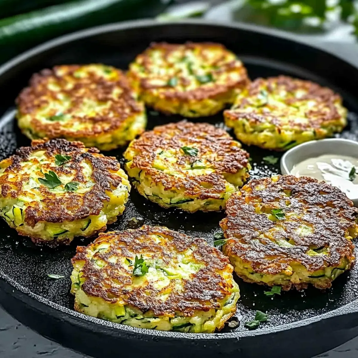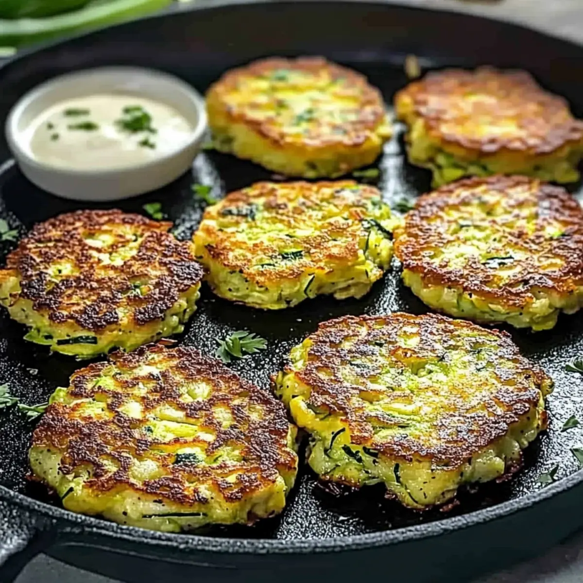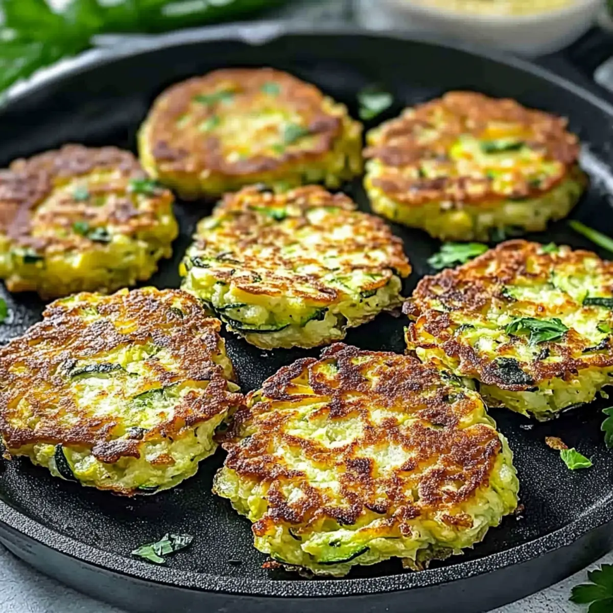 You know that feeling when fresh ingredients from the market inspire you to create something delicious? That’s exactly how I felt when I first whipped up these Crispy and Easy Zucchini Fritters. With their golden, crunchy exterior and fluffy interior, they quickly became my go-to snack for both casual afternoons and dinner parties. What I love most about this recipe is its versatility – not only is it vegetarian, but it can easily cater to various dietary needs, whether you’re vegan or gluten-free. Plus, they come together in mere minutes, making it a perfect option for those busy weeknights when you crave something homemade. So, are you ready to transform your zucchini into a delightful treat that will impress everyone at your table? Let’s dive in! Why Are These Fritters a Must-Try? Crispy and Delicious: Enjoy the satisfying crunch of these fritters that are perfectly golden brown on the outside while remaining light and fluffy inside. Versatile Variations: Whether you need a vegan option or a gluten-free delight, this recipe can easily adapt to your dietary needs without sacrificing flavor. Speedy Preparation: Ready to eat in just minutes, these fritters are the ultimate quick snack that won’t keep you from enjoying time with family or friends. Crowd-Pleasing Appeal: Serve them at your next gathering alongside some homemade tzatziki or marinara sauce, and watch them disappear! Nutrient-Packed Goodness: Made primarily from wholesome zucchini, these fritters are a guilt-free snack that won’t derail your healthy eating habits. Pair them with Smashed Carrots Bites for a colorful platter. Crispy Zucchini Fritter Ingredients For the Fritters • Zucchini – The main ingredient that brings moisture to the fritters; remember to squeeze out excess moisture for optimal crispiness. • Egg – Binds the ingredients together; swap with a flaxseed or chia egg for a vegan version. • All-Purpose Flour – Provides structure; can be substituted with almond or chickpea flour for gluten-free options. • Parmesan (optional) – Adds a rich, savory flavor; feel free to omit for a vegan or lighter dish. • Minced Garlic – Infuses wonderful depth of flavor; fresh garlic elevates the taste even more. • Black Pepper – Enhances overall seasoning; adjust according to your preference. • Paprika – Adds a hint of smokiness; experiment with the amount for a punchier kick. • Olive Oil – Essential for frying and achieving that crispy texture; ensure an even coating of oil without overcrowding the pan. For Serving • Sour Cream or Tzatziki – Perfect dips that complement the fritters well; they add creaminess and flavor. • Marinara Sauce – A tangy option that pairs nicely; serve on the side for a scrumptious twist. These Crispy and Easy Zucchini Fritters are not only delightful but also adaptable to suit various dietary needs! Enjoy crafting this vibrant dish that’s a sure hit, whether for a quick alone-time snack or a delightful treat for gatherings. Step‑by‑Step Instructions for Crispy and Easy Zucchini Fritters Step 1: Prepare the Zucchini Start by washing and grating two medium zucchinis and placing the shreds into a colander. Sprinkle with salt and let them sit for 10–15 minutes to draw out excess moisture, which is crucial for achieving the crispy texture in your Crispy and Easy Zucchini Fritters. As the salt draws out moisture, you can prepare the other ingredients. Step 2: Squeeze Out Liquid After the zucchini has rests, take a handful of the grated mixture and squeeze out as much water as possible using your hands or a nut milk bag. This step is essential for preventing soggy fritters. The drier the mixture, the crispier your fritters will turn out. Set the squeezed zucchini aside as you move on to the next stage. Step 3: Mix the Batter In a large mixing bowl, crack an egg (or prepare a flaxseed egg for a vegan version) and whisk it until smooth. Gradually add in all-purpose flour, grated Parmesan (if using), minced garlic, black pepper, and paprika. Mix well until you create a thick, cohesive batter, ensuring that all ingredients are well incorporated to form the base for your fritters. Step 4: Combine Ingredients Now, add the squeezed zucchini shreds into the batter and mix until they are evenly coated. If you’re feeling adventurous, toss in some chopped fresh parsley for an extra flavor boost. This mixture should be thick enough to hold its shape but not too dry. Your mixture is now ready to be shaped into fritters. Step 5: Shape the Fritters With clean hands, take about two tablespoons of the mixture and form them into patties. Flatten each patty slightly to ensure even cooking. Place the formed fritters on a plate, making sure they don’t touch each other. This preparation will help them fry better and maintain their shape as you cook the Crispy and Easy Zucchini Fritters. Step 6: Heat the Oil In a large skillet, heat enough olive oil over medium heat until shimmering, which typically takes around 2-3 minutes. Test the oil by adding a small piece of batter; if it sizzles, it’s ready for frying. Don’t overcrowd the skillet; fry the fritters in batches to ensure they cook evenly and stay crispy on all sides. Step 7: Fry the Fritters Carefully place the zucchini patties in the hot oil, cooking each side for about 3-4 minutes or until golden brown and crispy. Keep an eye on them, as the exact time may vary depending on your stove and skillet. Once they achieve a nice golden color, flip them gently to cook the other side for that desirable crunch. Step 8: Drain and Serve After frying, transfer the fritters to a plate lined with paper towels to drain excess oil. This step will keep your Crispy and Easy Zucchini Fritters from becoming greasy. Serve them warm alongside your favorite dipping sauces like tzatziki, marinara, or sour cream for a delicious snack or side dish that everyone will love! Make Ahead Options These Crispy and Easy Zucchini Fritters are perf