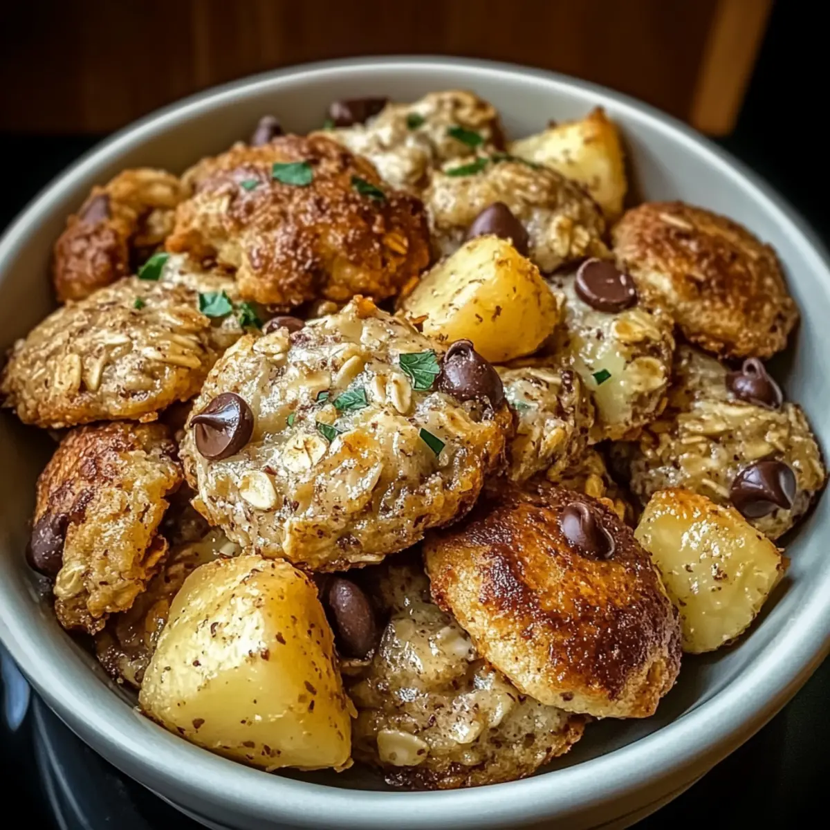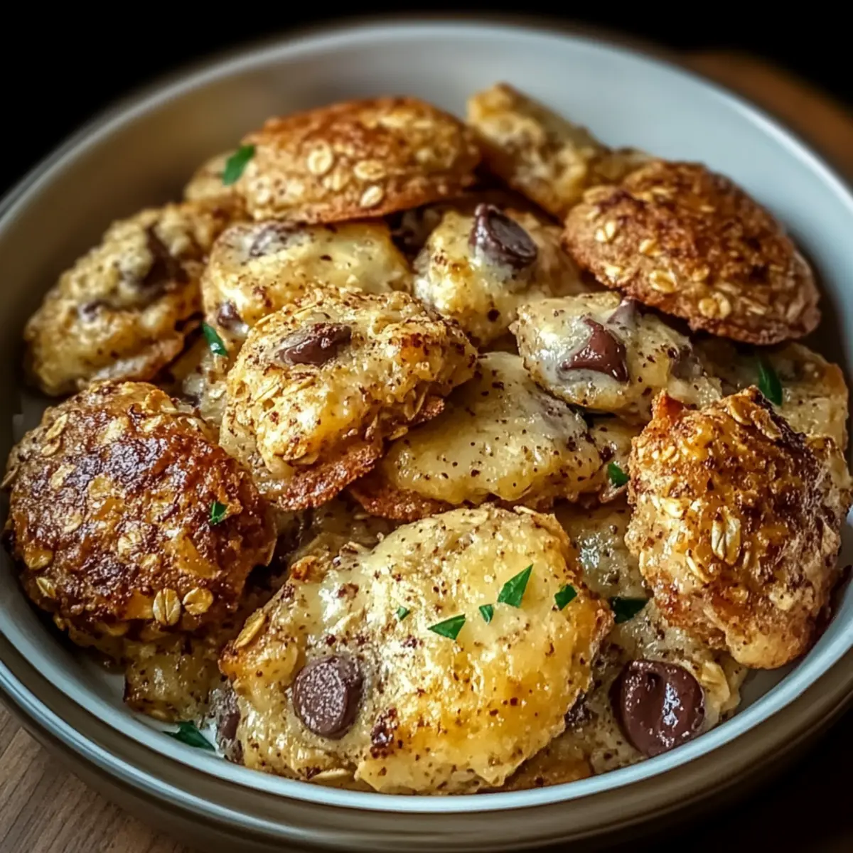 As I nestled into my cozy kitchen on a lazy afternoon, the warm aroma of melting chocolate and toasty oats wafted through the air, instantly lifting my spirits. That’s the kind of magic you experience when making these 4-Ingredient Crispy Chocolate Oat Cookies. They’re not just a treat; they’re a perfect blend of simplicity, healthiness, and that much-needed crunch. With just four ingredients, you can whip up a delightful snack that’s both gluten-free and guilt-free. It’s a quick bake made for those moments when you crave something sweet yet nourishing, effortlessly catering to your inner home-chef. So, how about treating yourself to a batch of these yummy cookies that are sure to impress friends and family alike? Let’s dive into the recipe and unwrap the joy together! Why Are These Cookies a Must-Try? Simplicity Made Delicious: With only four ingredients, these Crispy Chocolate Oat Cookies are incredibly easy to make, perfect for any home cook looking for quick satisfaction. Guilt-Free Indulgence: Enjoy the delicate balance of nutty oats and rich peanut butter that keeps this treat wholesome while satisfying your sweet cravings. Versatile Variations: Feel free to experiment with different nut butters or sweeteners to personalize your cookies, catering to everyone’s tastes, even with delightful additions like dried fruits or a hint of cinnamon. Ultimate Crunch: Experience a satisfying crunch that makes these cookies a delightful snack or breakfast topper, especially when crumbled over yogurt for a nourishing breakfast. Crowd-Pleasing Avenue: Whether hosting guests or treating yourself, these cookies are sure to impress—just like how a serving of Chicken Kofta Garlic warms the heart and delights the palate! Crispy Chocolate Oat Cookie Ingredients • Ready to bake some delicious cookies? Let’s gather what you need! For the Cookies Old-Fashioned Oats – These oats form the sturdy, chewy base for your cookies, giving them that satisfying texture. Peanut Butter – Acts as a natural binder and adds a richness that elevates the flavor. Don’t worry—almond butter works too for nut-free wishes! Honey or Maple Syrup – This brings sweetness to your cookies; feel free to switch to agave nectar for a vegan option. Chocolate Chips – These little gems melt beautifully in the oven, creating delightful pockets of chocolatey goodness. Dark chocolate chips can be used for a more decadent twist. Optional Flavor Boosters Cinnamon – A pinch of this spice adds warmth and a hint of complexity to the cookie’s flavor. Dried Fruits – Toss in some cranberries or raisins for a burst of sweetness and texture that’s simply irresistible! Now that you have your ingredients ready, you’re only moments away from enjoying your crispy, chocolatey goodness! Step‑by‑Step Instructions for Garlic Parmesan Crockpot Chicken and Potatoes Step 1: Prepare the Ingredients Start by gathering your ingredients for the garlic parmesan crockpot chicken and potatoes. Chop the potatoes into even chunks for uniform cooking and season them with salt, pepper, and a splash of olive oil. This step not only enhances the flavor but also creates a pleasing texture when cooked. Set aside while you prepare the chicken. Step 2: Sear the Chicken In a skillet over medium-high heat, sear your chicken breasts for about 3-4 minutes on each side until they develop a golden-brown crust. This adds an extra layer of flavor to your garlic parmesan crockpot chicken. Once done, transfer the chicken to your slow cooker to keep it warm while you prepare the garlic and parmesan mixture. Step 3: Mix the Garlic Parmesan Sauce In a bowl, combine minced garlic, grated parmesan cheese, melted butter, and dried herbs, creating a rich and creamy sauce. Stir until all ingredients are well incorporated. This garlic parmesan sauce will infuse your chicken and potatoes with a comforting, savory flavor throughout the cooking process — just the scent you want in your kitchen! Step 4: Layer the Potatoes and Chicken Add the seasoned potatoes to the bottom of the slow cooker, creating a base layer. Next, place the seared chicken breasts on top of the potatoes. Pour the garlic parmesan mixture evenly over the chicken, ensuring every piece is generously coated to maximize flavor absorption during cooking. Step 5: Set the Crockpot Cover your crockpot and set it to low heat for 6-7 hours. Alternatively, for a quicker option, set it to high for about 3-4 hours. During this time, the chicken will become tender and juicy, and the potatoes will be perfectly cooked. Keep this delicious garlic parmesan combo cooking until everything is fork-tender. Step 6: Final Touches and Serve Once cooking time is up, lift the lid and take in the aromatic scent of your garlic parmesan crockpot chicken and potatoes. Serve immediately, garnished with freshly chopped parsley for a pop of color. The juicy chicken paired with creamy potatoes makes for a comforting and satisfying meal that your family will love! Variations for Crispy Chocolate Oat Cookies Customize these scrumptious cookies to suit your taste, and enjoy every delightful bite! Nut-Free Option: Substitute peanut butter with sunflower seed butter for a nut-free treat that keeps all the flavor intact. This is perfect for lunchboxes! Vegan Delight: Use agave nectar instead of honey or maple syrup for a completely vegan cookie. They’ll be so good, you won’t even miss the honey! Texture Twist: Incorporate chopped nuts like walnuts or almonds into the batter for a crunchy texture boost. The combination of melt-in-your-mouth chocolate and nutty bites will elevate your experience. Addition of Flaxseed: Add ground flaxseeds for a boost of omega-3 fatty acids and an extra chewiness. It contributes both nutrition and a lovely texture. Dried Fruit Medley: Toss in cranberries or raisins to introduce bursts of sweetness. They complement the chocolate perfectly, creating a delightful surprise in every bite. Cinnamo