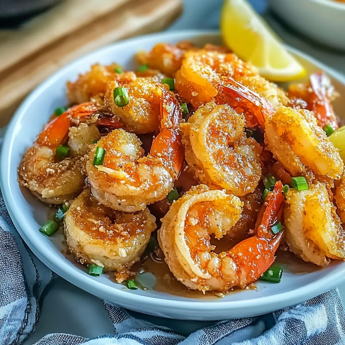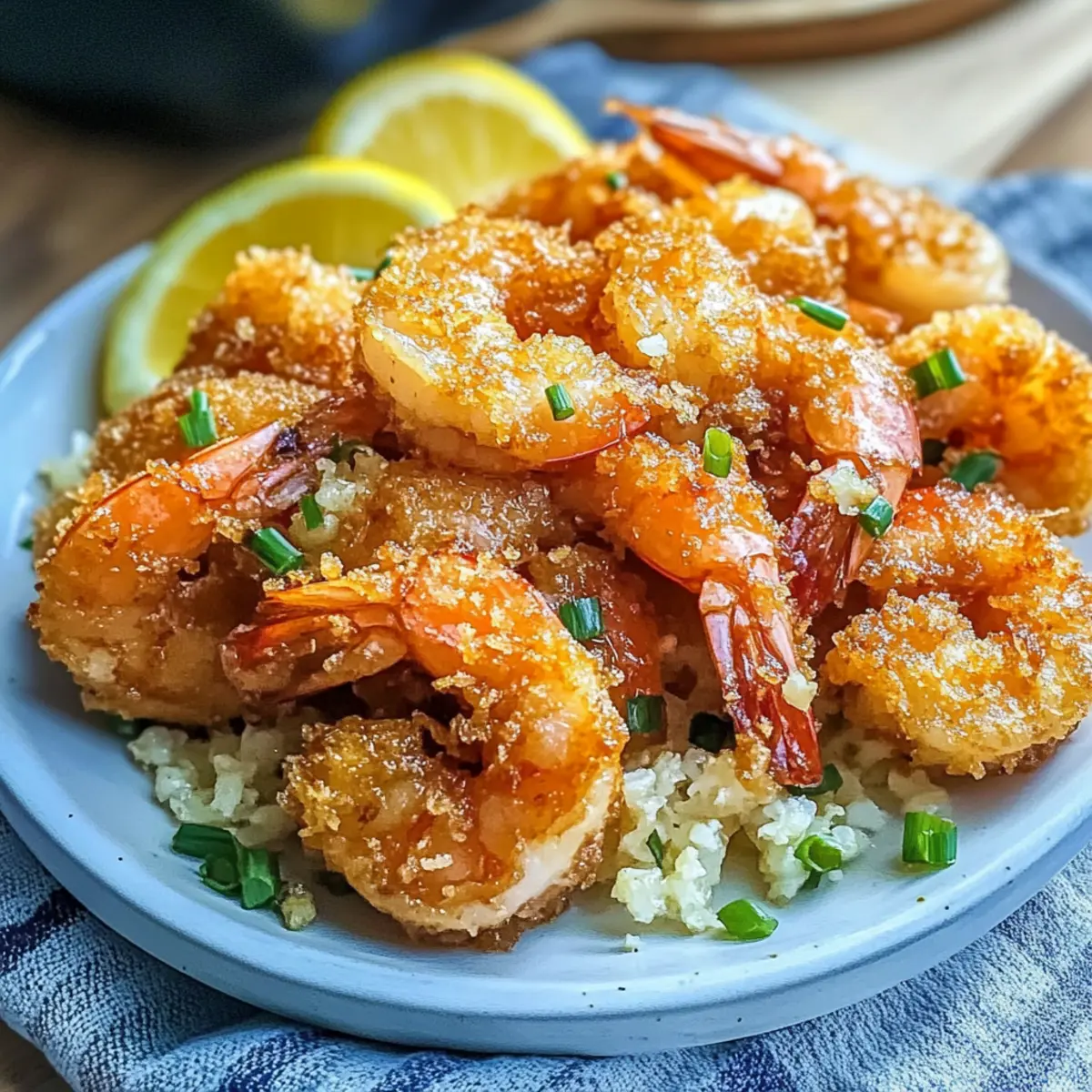 The enticing aroma of garlic sizzling in butter has a way of whisking me back to my time on the sun-kissed shores of Hawaii. The recipe for Crispy Hawaiian Garlic Shrimp brings that seaside memory straight to your kitchen, offering a dish that balances crunch and succulence like no other. Perfect for those of us who crave a break from fast food, this recipe transforms simple ingredients into a restaurant-quality experience in no time. With an easy-to-follow technique and the flexibility to customize, you’ll impress your friends and family with this crowd-pleaser. And let’s not forget—this dish is just as delicious alongside a refreshing salad or served over a bed of fluffy rice. Are you ready to dive into this culinary adventure and bring a taste of Hawaii to your table? Why Is This Shrimp Recipe a Must-Try? Deliciously Crispy: The use of potato starch ensures each shrimp is enveloped in a perfectly crunchy coating, elevating your dining experience. Garlic Lovers Rejoice: With 10-15 cloves of garlic, this dish packs an aromatic punch that will tantalize your taste buds. Quick and Easy: This recipe requires minimal prep and can be on the table in under 30 minutes, making it perfect for busy weeknights. Versatile Serving Options: Pair it with traditional Hawaiian sides like macaroni salad or serve with a light salad for a refreshing twist. Customization Galore: Feel free to swap shrimp for chicken or tofu and adjust the garlic level to cater to everyone’s palate! If you’re looking to explore more with seafood, check out my recipe for Garlic Lime Shrimp. Your friends and family will be asking for seconds! Crispy Hawaiian Garlic Shrimp Ingredients For the Shrimp • Shrimp – Fresh or thawed frozen shrimp both work; ensure they’re well-drained and patted dry for ultimate crispiness. For the Coating • Potato Starch – This creates a lighter and crunchier coating; cornstarch can also be used for a similar effect. • Seasonings (salt, pepper, cayenne) – Elevate the flavors and add heat; adjust cayenne to taste for a milder or spicier result. For the Sauce • Garlic (10-15 cloves) – Offers an aromatic, rich flavor; use more or less depending on your desired garlic intensity. • Butter – Adds creaminess and enriches the sauce; unsalted is recommended for better control of seasoning. • Lemon (for zest and wedges) – Provides freshness and acidity to balance the richness; lime can also be a delightful alternative. Step‑by‑Step Instructions for Crispy Hawaiian Garlic Shrimp Step 1: Prepare Shrimp Begin by cleaning and deveining your shrimp, ensuring they are well-drained. Pat them dry thoroughly with paper towels to remove any excess moisture; this step is crucial for achieving that coveted crispiness in your Crispy Hawaiian Garlic Shrimp. Set aside as you prepare the next steps to get the frying process started. Step 2: Make Coating In a mixing bowl, combine potato starch with your seasonings—salt, pepper, and cayenne. Whisk them together to create a uniform coating mixture that will cling beautifully to each shrimp. The potato starch will produce a lighter and crunchier crust, contributing to the inviting texture you want for your Hawaiian Garlic Shrimp. Step 3: Dredge Shrimp Now, take each shrimp and coat it evenly in the starch mixture, ensuring they’re completely covered. You might want to work in batches to avoid overcrowding the bowl. This dredging creates a crispy shell, so gently shake off any excess coating before frying. Lay the coated shrimp on a clean plate to prepare for frying. Step 4: Fry Shrimp In a large skillet, heat a generous amount of neutral oil, like canola or vegetable oil, over medium-high heat. Once the oil shimmers, carefully add the shrimp in batches, ensuring not to overcrowd the pan. Fry for about 2-3 minutes on each side or until they turn golden brown and crispy. Transfer the perfectly fried shrimp to a paper towel-lined plate to drain excess oil. Step 5: Prepare Garlic Sauce Using the same skillet, reduce the heat to medium, and add unsalted butter. Once it melts, add your minced garlic, sautéing it until fragrant and lightly golden, which should take about 1-2 minutes. The enticing aroma will fill your kitchen, setting the stage for the rich flavor that will enhance your Crispy Hawaiian Garlic Shrimp. Step 6: Combine Carefully toss your fried shrimp back into the skillet with the garlic sauce. Stir gently to coat the shrimp evenly with the luscious garlic butter. Allow them to cook for an additional minute, letting the flavors meld together beautifully, so each bite of your Crispy Hawaiian Garlic Shrimp is infused with that aromatic richness. Step 7: Serve Plate your succulent shrimp immediately, garnishing them with fresh lemon wedges and chopped green onions for an added pop of color and zest. Serve hot and enjoy this delightful taste of Hawaii, knowing you’ve created an impressive dish that’s sure to wow your guests and loved ones! Make Ahead Options These Crispy Hawaiian Garlic Shrimp are perfect for meal prep enthusiasts! You can clean and devein the shrimp up to 24 hours in advance, just be sure to pat them dry thoroughly to maintain their crispiness. The potato starch coating can also be mixed with seasonings ahead of time and stored in a sealed container for up to 3 days. When you’re ready to serve, simply dredge the shrimp in the starch mixture, fry them until golden brown, and toss them in the garlic butter sauce. This approach saves time on busy weeknights, ensuring the shrimp are just as delicious and crunchy as if they had been cooked fresh! Crispy Hawaiian Garlic Shrimp Variations Feel free to get creative and adapt this recipe to suit your tastes and dietary preferences! Chicken Swap: Use chicken breasts or thighs instead of shrimp, following the same coating and frying technique. This tender twist makes a hearty meal! Tofu Delight: For a plant-based option, swap shrimp for firm tofu. Just make sure to press