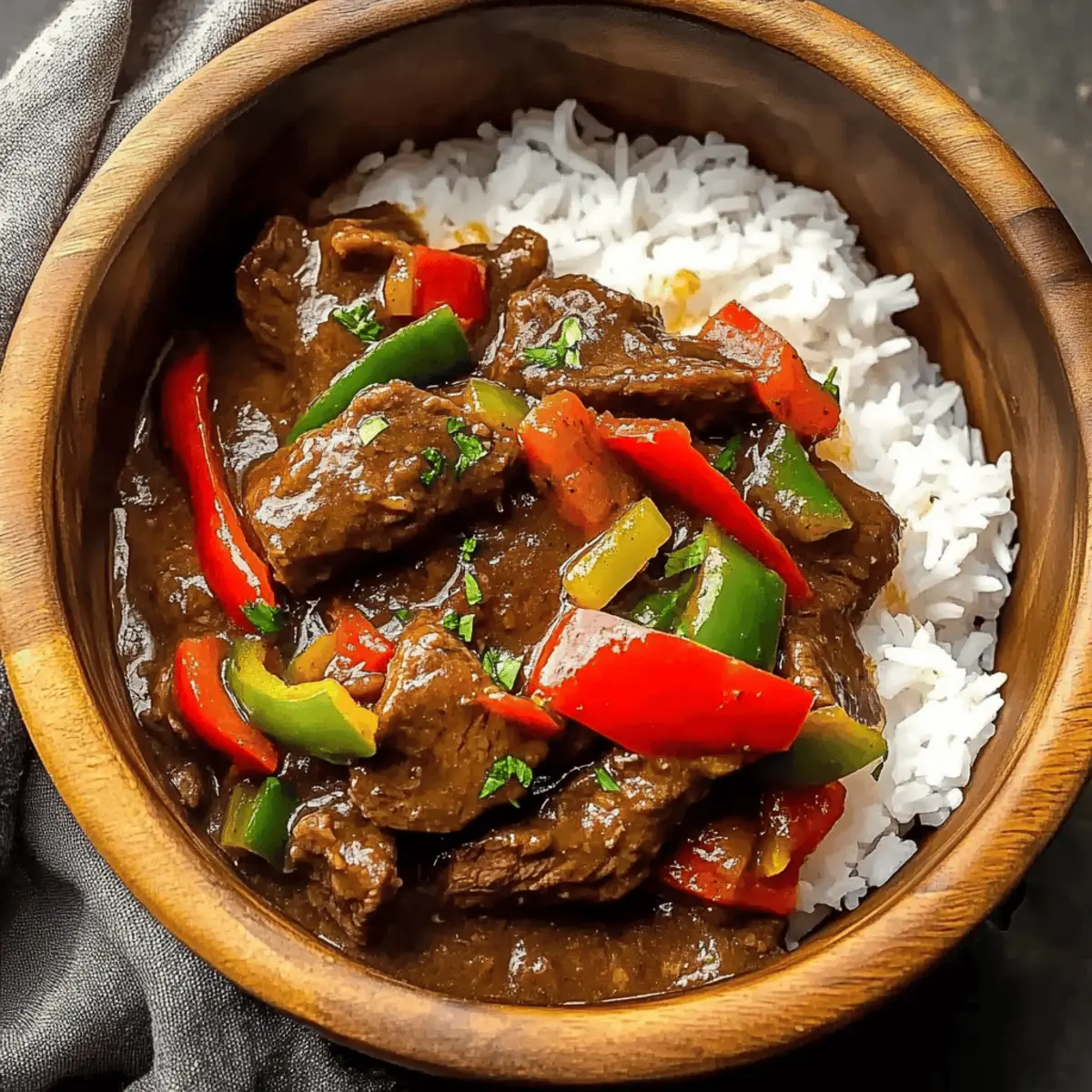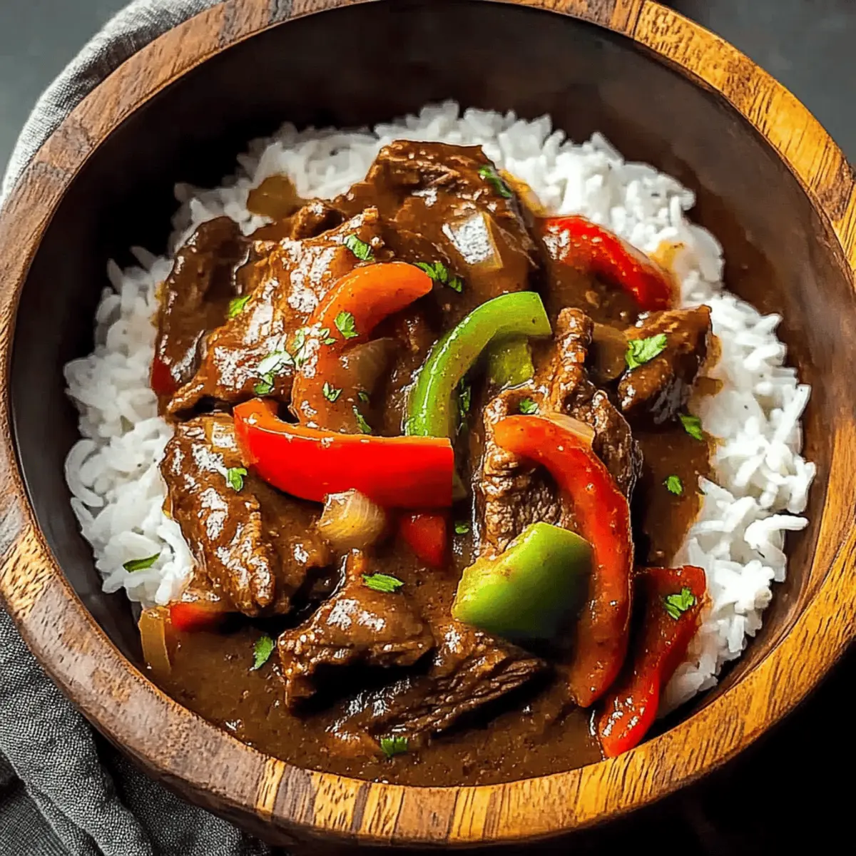 The aroma of slow-cooked beef and peppers wafts through the kitchen, instantly transporting me back to cherished family dinners. My Crock Pot Pepper Steak is a delightful twist on an old favorite, where tender slices of steak meld with vibrant bell peppers in a savory soy-based sauce. It’s not just nostalgic; this cozy classic is a lifesaver on those whirlwind weeknights when time is short but the desire for a comforting homemade meal runs deep. With effortless prep and the ability to easily customize it, this dish checks all the boxes for an easy dinner that’s sure to satisfy the whole family. What variations will you dream up to make it your own? Why is Crock Pot Pepper Steak a Must-Try? Simplicity at Its Best: This dish requires minimal prep, letting the slow cooker do all the hard work while you relax. Mouthwatering Aroma: The fragrant combination of beef, garlic, and soy sauce fills your home, making it feel like a warm embrace. Customizable Options: Whether you want to spice things up with red chili flakes or add sweet hoisin sauce, feel free to experiment with flavors that suit your palate. Ideal for Meal Prep: With its forgiving cooking time and easy storage, it’s perfect for leftovers or a packed lunch. Pair it with rice, noodles, or even use it as a hearty filling for hoagie rolls—endless possibilities! Crowd-Pleaser: This recipe is sure to impress family and friends alike. Don’t forget to check out my Pepperoni Pizza Quesadillas for another fun, comforting meal option! Crock Pot Pepper Steak Ingredients For the Beef • Steak – 2 lbs flank or sirloin steak, sliced thin; provides a tender protein base that absorbs flavors beautifully. For the Vegetables • Green Bell Pepper – 1, sliced; adds color and texture to the dish. • Red Bell Pepper – 1, sliced; contributes a sweet crunch and vibrant contrast. • Yellow Onion – 1, sliced; deepens the flavor profile for a more satisfying dish. For the Sauce • Low Sodium Soy Sauce – 1/3 cup; enhances umami flavor without being overly salty. • Minced Garlic – 1 tbsp; infuses the recipe with rich, aromatic goodness. • Ground Ginger – 1 tsp; imparts warmth and a hint of spice to the dish. • Brown Sugar – 1 tbsp; balances the dish with a touch of sweetness. • Beef Broth – 1 cup; adds moisture and richness to the sauce’s consistency. For the Thickening Agent • Cornstarch – 2 tbsp mixed with 2 tbsp water; uses in the last 30 minutes to achieve the perfect sauce thickness for your Crock Pot Pepper Steak. Step‑by‑Step Instructions for Crock Pot Pepper Steak Step 1: Prepare the Steak Start by slicing the 2 lbs of flank or sirloin steak thinly against the grain. This will ensure tenderness. Place the beautifully sliced steak into your crock pot, allowing it to form the rich base of the Crock Pot Pepper Steak. Make sure to spread it evenly to promote even cooking. Step 2: Add the Vegetables Next, slice 1 green bell pepper, 1 red bell pepper, and 1 yellow onion. Add these vibrant pieces to the crock pot, layering them over the steak. The colorful bell peppers and onion will not only enhance the dish visually but will infuse the meat with their delicious flavors as they cook together. Step 3: Mix in the Aromatics Sprinkle 1 tablespoon of minced garlic and 1 teaspoon of ground ginger over the steak and vegetables. These aromatics will elevate the flavor of your Crock Pot Pepper Steak as they meld together during cooking. Mix everything gently to ensure an even coating of these flavorful ingredients. Step 4: Pour the Sauce Ingredients Pour in 1/3 cup of low sodium soy sauce and 1 cup of beef broth, drenching your ingredients in a savory, aromatic blend. Then, add a tablespoon of brown sugar, which will balance the saltiness of the soy sauce and enhance the overall flavor beautifully. This creates the luscious sauce that will envelop your dish. Step 5: Set the Cooking Temperature Cover your crock pot with its lid, setting it to cook on LOW for 6-7 hours or HIGH for 3-4 hours. As the Crock Pot Pepper Steak simmers, you’ll notice the savory aroma wafting through your home, filling the kitchen with warmth and comfort. Step 6: Thicken the Sauce In the last 30 minutes of cooking, prepare a cornstarch slurry by mixing 2 tablespoons of cornstarch with 2 tablespoons of water. Stir this mixture into the crock pot to thicken the sauce and give your Crock Pot Pepper Steak that perfect glossy finish. Allow it to heat through, ensuring it’s well-incorporated. Step 7: Serve and Enjoy When the cooking time is complete, serve your delicious Crock Pot Pepper Steak hot over steamed rice or noodles. This comforting dish is perfect for sharing, and it can be garnished with fresh herbs if desired. The tender beef and vibrant peppers will surely delight everyone at the table! What to Serve with Crock Pot Pepper Steak Transform your meal into a comforting feast with these delightful pairings that enhance your dining experience. Steamed Jasmine Rice: Fluffy rice serves as the perfect canvas for soaking up the rich sauce from the Crock Pot Pepper Steak. Garlic Bread: This warm, crusty bread not only complements the savory flavors but also adds a satisfying crunch to your meal. Roasted Vegetables: Seasonal veggies caramelized to perfection bring a burst of color and sweetness, balancing the hearty dish beautifully. Asian Noodle Salad: Toss some cool, crunchy veggies with noodles and a light soy dressing for a refreshing contrast to the warm, savory steak. Crispy Egg Rolls: Give your meal an extra crunchy texture with these delightful appetizers, adding a burst of flavor that pairs perfectly with the beef. Chilled Lemonade: A bright, citrusy drink that cuts through the richness of the steak while keeping you refreshed and satisfied. Apple Crisp: End your meal on a sweet note with a warm apple crisp, providing cozy vibes and a touch of nostalgia alongside your classic dinner. Wine Pairing: A glass of Cabernet Sauvignon compleme