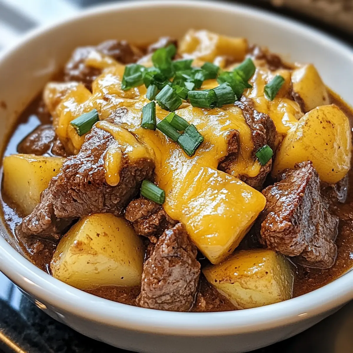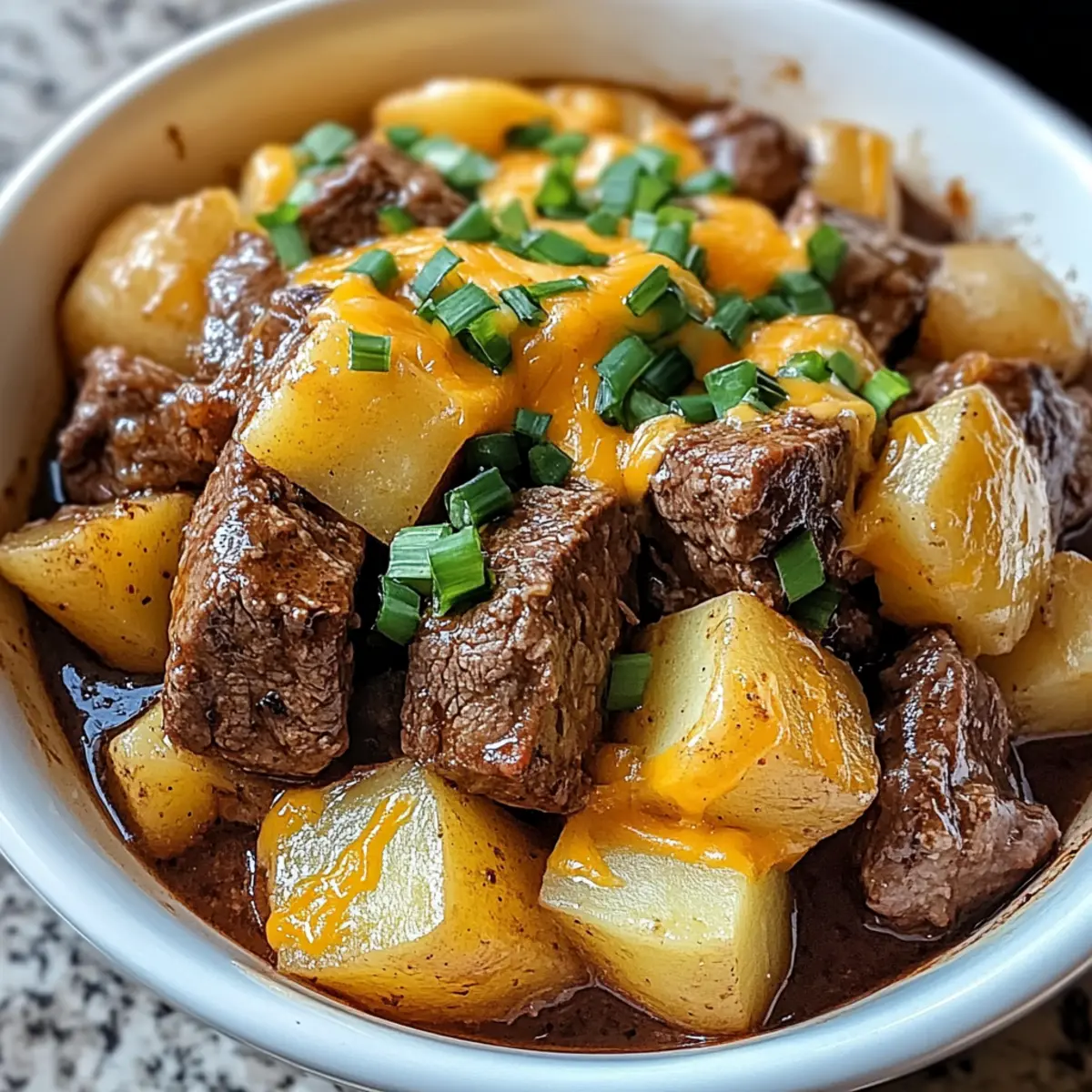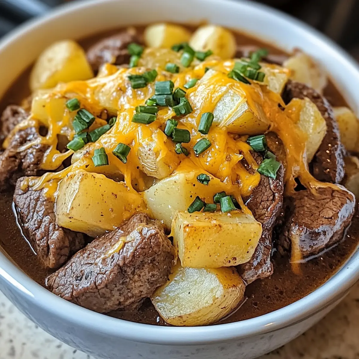 As the day winds down and the chill of evening settles in, the aroma of a Crockpot Loaded Steak and Potato Bake fills the air, wrapping me in a warm embrace. This comforting dish combines tender steak and fluffy potatoes bathed in a creamy, cheesy sauce, bringing a sense of home to every bite. One of the best parts? You can simply toss the ingredients into your slow cooker and let it work its magic while you unwind from a busy day. It’s a true family-friendly recipe that’s not only easy to whip up but is also perfect for those hectic nights when you crave something hearty and satisfying. Are you ready to discover how this delightful meal can become your new go-to for cozy dinners? Why is this dish a must-try? Comforting and Hearty: This Crockpot Loaded Steak and Potato Bake delivers warmth and satisfaction in every bite, making it the ideal remedy for chilly evenings. Effortless Preparation: With minimal prep time, simply toss the ingredients into your slow cooker and enjoy the magic of a home-cooked meal without the hassle. Flexible Ingredients: Feel free to mix and match components! Try different cuts of steak or add your favorite veggies like carrots for extra nutrition. Creamy Indulgence: The cheesy sauce combines beautifully with tender meat and fluffy potatoes, resulting in a luscious texture that your family will absolutely adore. Crowd-Pleasing Appeal: Perfect for both casual family dinners and gatherings with friends, this dish is sure to impress everyone at the table! For a delightful side, consider pairing it with a fresh salad or some Twice Baked Potatoes for an extra treat. Crockpot Loaded Steak and Potato Bake Ingredients For the Dish • Chuck Steak – Provides flavor and tenderness when slow-cooked; sirloin or round steak can also be used but may require adjusted cooking time. • Yukon Gold or Russet Potatoes – Creates a creamy texture and holds up well during cooking; other starchy potatoes work, but avoid waxy varieties. • Beef Broth – Enriches the dish and adds moisture; vegetable broth can offer a lighter flavor if preferred. • Worcestershire Sauce – Adds depth and umami flavor; consider enhancing with a splash of red wine for richness. • Garlic Powder – Provides aromatic flavor; fresh garlic offers a more intense taste if desired. • Onion Powder – Complements savory flavors; fresh onions can be substituted for a fresher bite. • Salt and Pepper – Essential seasonings for enhancing flavors; adjust quantities to taste. • Shredded Cheddar Cheese – Melts beautifully into the dish for creaminess; any preferred melting cheese can be used, or omit for a lighter option. • Sour Cream – Adds creaminess and tang; Greek yogurt can serve as a healthier alternative. • Chopped Green Onions – Provides garnish and freshness; fresh herbs like parsley can be used for added flavor. Step‑by‑Step Instructions for Crockpot Loaded Steak and Potato Bake Step 1: Prep Ingredients Begin by cutting the chuck steak into 1-inch cubes and dicing the Yukon Gold or Russet potatoes into bite-sized pieces. This ensures your ingredients cook evenly and absorb the flavors in the Crockpot Loaded Steak and Potato Bake. Gather all your ingredients and set them within arm’s reach to streamline the preparation process. Step 2: Layer in Crockpot Carefully place the cubed steak at the bottom of the slow cooker, forming an even layer. Next, add the diced potatoes on top of the steak, creating a hearty base for your dish. This layering helps to capture the savory juices from the meat while the potatoes cook, elevating the flavors of your Crockpot Loaded Steak and Potato Bake. Step 3: Add Liquids and Seasonings Pour the beef broth over the layered ingredients, allowing it to seep through. Then, drizzle in Worcestershire sauce and sprinkle garlic powder, onion powder, salt, and pepper on top. Stir gently to combine all the flavors, ensuring every piece of meat and potato is nicely coated in this aromatic mixture. Step 4: Select Cooking Setting Cover the slow cooker with its lid and set it to cook on low for 6-8 hours or high for 3-4 hours. The goal is to achieve tender, succulent steak and creamy potatoes. As the time passes, your kitchen will be filled with the delightful smell of this hearty Crockpot Loaded Steak and Potato Bake. Step 5: Finish the Dish Once the cooking time is complete, gently stir in the shredded cheddar cheese and sour cream until thoroughly combined. This addition transforms the dish into a luscious, creamy delight. Allow the cheese to melt and blend in, creating a beautifully creamy texture that coats the steak and potatoes wonderfully. Step 6: Garnish and Serve Spoon the finished Crockpot Loaded Steak and Potato Bake into bowls and garnish with chopped green onions for a pop of color and additional flavor. This vibrant garnish not only enhances the visual appeal but also adds a fresh touch to your comforting dish. Serve warm, and enjoy together around the table! Expert Tips for Crockpot Loaded Steak and Potato Bake Prep Ahead: Prepare your ingredients the night before and store them in the fridge. This makes it easy to toss everything in the crockpot in the morning, ensuring a stress-free dinner. Layer Wisely: Always place your steak at the bottom and potatoes on top to allow the juices from the meat to flavor the starches, enhancing the overall taste of your Crockpot Loaded Steak and Potato Bake. Avoid Overloading: Don’t overload your crockpot. Stick to the recommended ingredient quantities to ensure even cooking and prevent mushy textures. Choose Cuts Wisely: Opt for cuts with a little marbling, like chuck steak. Leaner cuts can dry out in the crockpot if not monitored closely, so check for tenderness toward the end of cooking. Adjust for Time: Note that cooking times can vary by crockpot model. Keep an eye on your dish, checking for tenderness around the 5-hour mark on high or 4 hours on low. Flavor Boosts: For more depth, consider tossing i