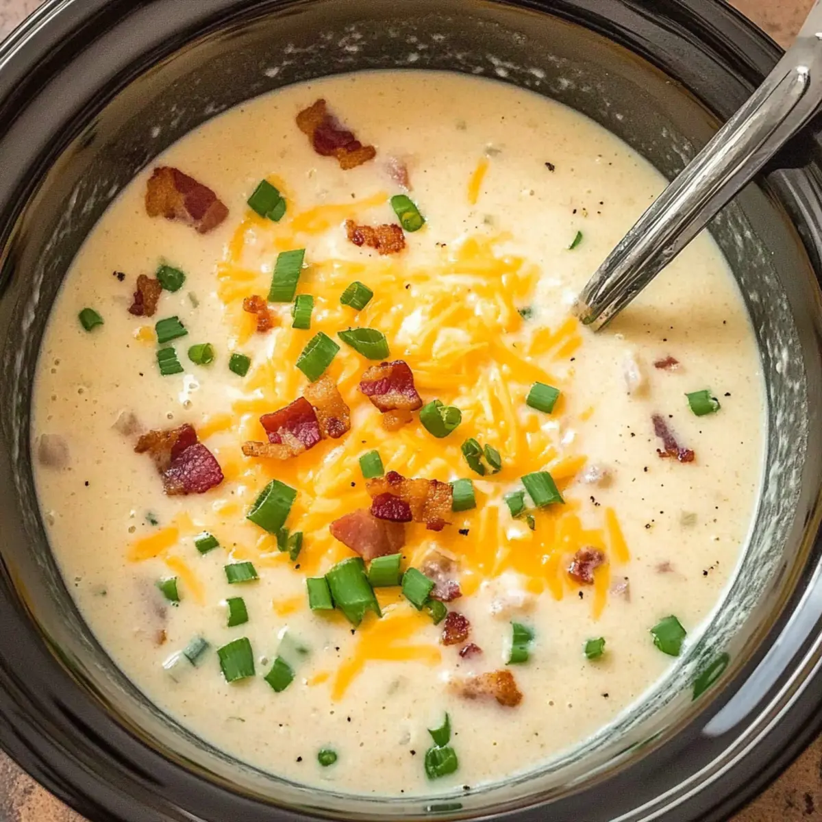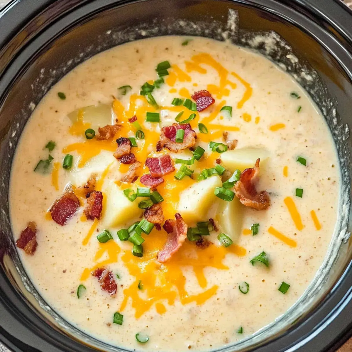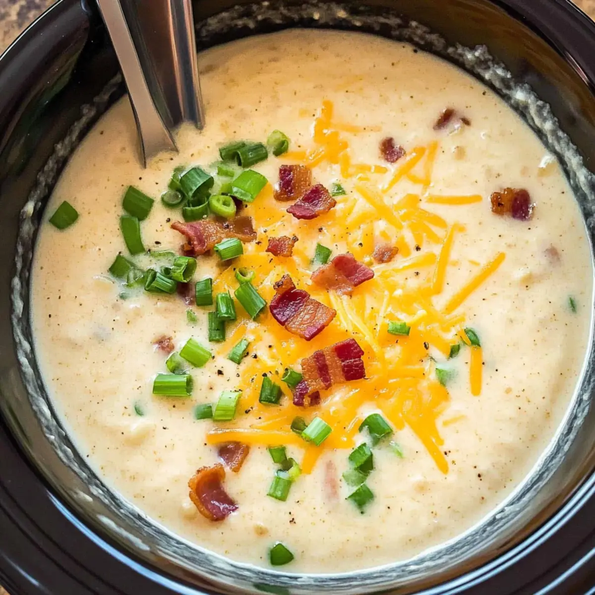As I stirred the creamy mixture in my slow cooker, the familiar aroma of savory bacon and melted cheese filled my kitchen, instantly transporting me back to cozy family dinners. This Crockpot Potato Soup is my go-to recipe for busy weeknights when comfort food reigns supreme. With just a few simple ingredients and minimal prep, it promises a rich and hearty meal that everyone will adore. The best part? It’s incredibly versatile—you can serve it as is or customize each bowl with your favorite toppings. Get ready for a thick, velvety soup that not only warms your heart but also brings smiles around the dinner table. What toppings will you choose? Why is this Crockpot Potato Soup a must-try? Comforting Creaminess: This easy Crockpot Potato Soup is a warm embrace in a bowl, with creamy textures that make it a beloved favorite. Time-Saving Delight: With its slow-cooker method, you can set it and forget it—perfect for busy weeknights. Flavorful Fusion: The savory combination of bacon and cheddar cheese elevates this soup to an indulgent, satisfying level. Customization Galore: Feel free to mix it up with toppings or variations, like adding broccoli, swapping cheeses, or even making it vegetarian! Crowd-Pleasing Appeal: Whether it’s family or friends, this soup is guaranteed to impress and leave everyone asking for seconds. Check out ideas for how Garlic Butter Potatoes can complement this dish beautifully! Crockpot Potato Soup Ingredients • Dive into the flavors of this comforting dish! For the Soup Base Potatoes – Use russet or Yukon gold for a creamy texture; peel and cube them for even cooking. Chicken Broth – Adds a rich depth of flavor; vegetable broth is a great substitute for a vegetarian version. Onion – Finely chopped, it enhances the soup’s foundation; shallots work well as an alternative. Garlic – Fresh minced garlic adds aroma; skip the powder for a brighter taste. Salt – Essential for boosting all the flavors; adjust to your preference. Black Pepper – Freshly ground adds just the right spice kick; a little goes a long way. For Creaminess and Flavor Unsalted Butter – Contributes to a rich, creamy texture; can be swapped with olive oil if needed. All-Purpose Flour – Thickens the soup beautifully; corn starch can serve as a gluten-free option. Whole Milk – Provides luscious creaminess; consider cream for a richer result or almond milk for a dairy-free alternative. Cheddar Cheese (shredded) – Melts perfectly for that cheesy goodness; freshly shredded cheese is the best choice. Sour Cream – Adds a tangy, creamy finish; Greek yogurt is a tasty substitute. For Garnishing Bacon – Gives a savory and slightly crispy texture; omit for a vegetarian option or replace with mushrooms. Green Onions – Add vibrant color and freshness as a garnish; they also enhance the overall flavor. Step‑by‑Step Instructions for Creamy Crockpot Potato Soup with Bacon Step 1: Combine Ingredients In your crockpot, mix together the peeled and cubed potatoes, chicken broth, cooked bacon, finely chopped onion, and minced garlic. Season with salt and freshly ground black pepper to taste. Stir the ingredients well to ensure even distribution of flavors, and set the atmosphere for your delicious Crockpot Potato Soup. Step 2: Cook to Tenderness Cover the crockpot with the lid and set your cooker to high for 3-4 hours or low for 5-6 hours. During this time, the potatoes will become fork-tender and soak up all the savory flavors. Keep an eye on it; you’ll know it’s ready when you can easily pierce the potatoes with a fork. Step 3: Mash for Texture Once the potatoes are fork-tender, use a fork or an immersion blender to lightly mash them in the crockpot. If you prefer a smoother texture for your Crockpot Potato Soup, blend thoroughly, but leave some chunks for a delightful mouthfeel. This step enhances the soup’s creaminess while combining the ingredients. Step 4: Add Creamy Elements Stir in the unsalted butter, all-purpose flour, whole milk, shredded cheddar cheese, and sour cream. Mix everything together until well combined, ensuring the flour is incorporated for thickening. Cook on low for an additional 30-60 minutes, allowing the soup to become creamy and rich, with melted cheese pulling it all together. Step 5: Serve and Garnish Once the soup has reached your desired creaminess, ladle it into bowls and garnish with freshly chopped green onions. Feel free to add additional toppings like extra cheese or crispy bacon bits to make your Crockpot Potato Soup even more special. Serve hot and enjoy the comforting flavors! Variations & Substitutions for Crockpot Potato Soup Feel free to get creative and customize your savory bowl of comfort with these exciting variations! Dairy-Free: Substitute whole milk and cheese with almond milk and a dairy-free cheese alternative for a creamy yet dairy-free soup. Vegetarian Delight: Omit the bacon and replace it with sautéed mushrooms or a mix of your favorite veggies for a hearty vegetarian option. The umami from mushrooms will add depth without the meat. Savory Cheese Boost: Experiment by incorporating different cheeses such as Gouda or Monterey Jack for a unique flavor twist that will surprise your taste buds. Each variety brings its own character to the dish! Spicy Kick: Add crushed red pepper flakes or a dash of hot sauce to infuse some heat. It’s perfect for those who like to spice things up and adds another layer of excitement to the soup. Bonus Veggies: Toss in steamed broccoli or cauliflower florets during the last hour of cooking. They’ll bring extra nutrition and texture, making your soup even more filling! Creamy Touch: Swap out sour cream for Greek yogurt for a lighter, protein-packed finish that doesn’t skimp on creaminess. It adds a lovely tang too! Thickening Twist: For a gluten-free option, replace all-purpose flour with cornstarch mixed in water. It thickens beautifully without affecting the taste! Herb Infusion: Incor