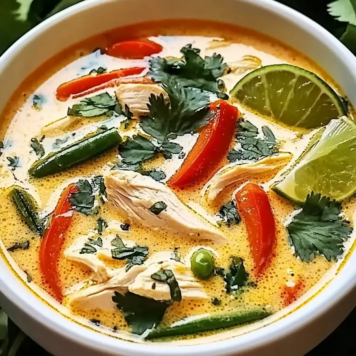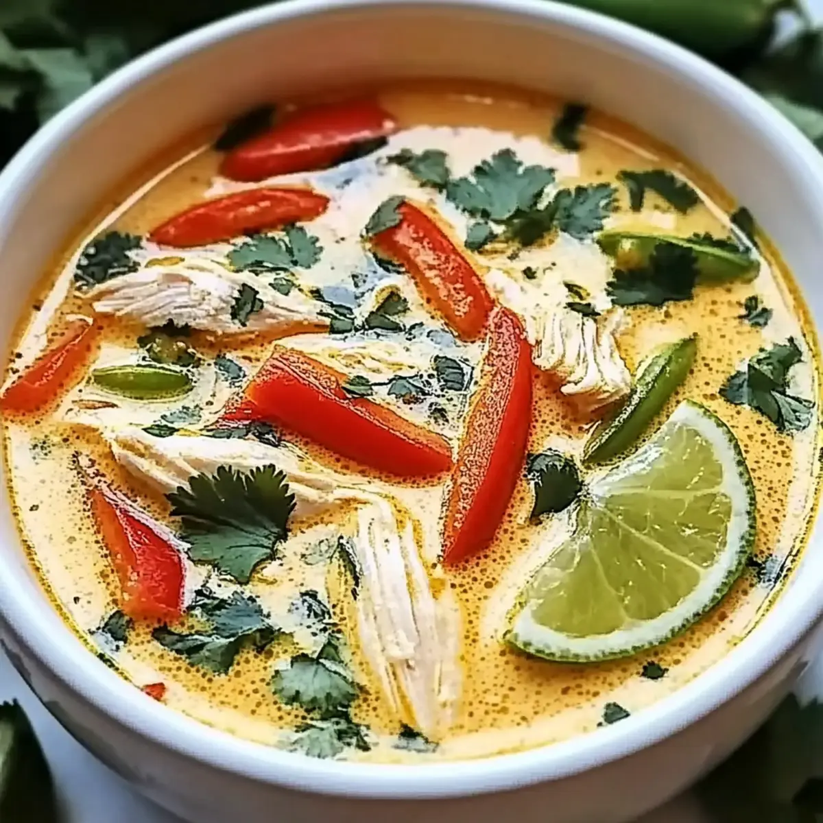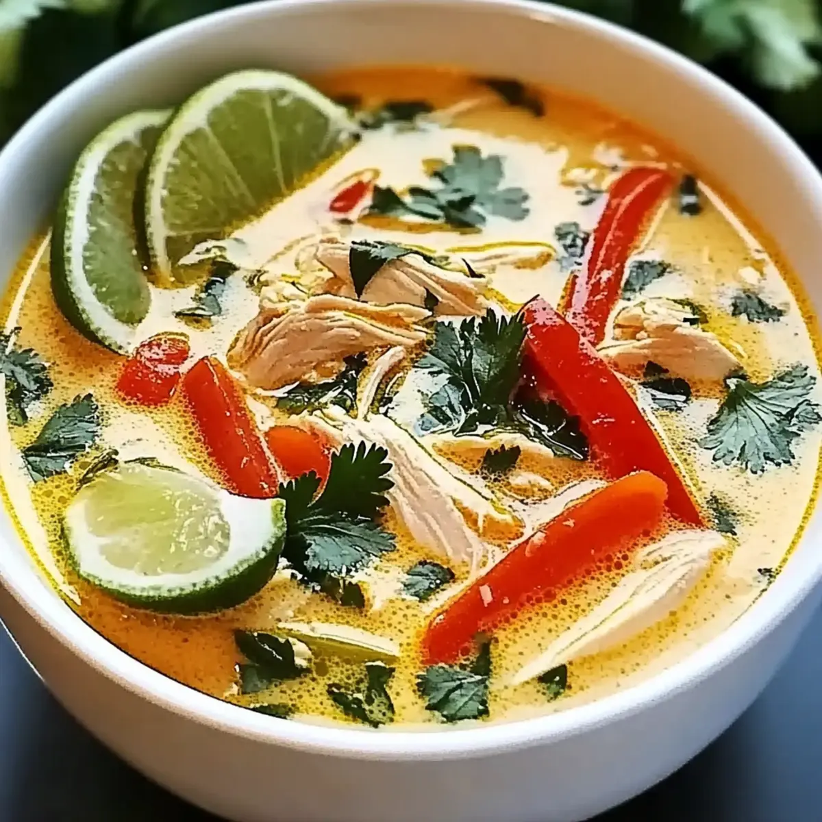 The moment I first tasted a spoonful of Crockpot Thai Coconut Chicken Soup, it felt like a cozy embrace on a cold evening. This vibrant dish combines creamy coconut milk with the enticing warmth of Thai spices, making it a true comfort food that beckons for a spot on your dinner table. Not only is this soup bursting with healthy ingredients, but it’s also incredibly easy to whip up—just toss everything into your slow cooker and let it work its magic. Perfect for busy weeknights, it’s a family-friendly meal that even the pickiest eaters will adore. Plus, it’s easily customizable: whether you prefer chicken, shrimp, or a veggie twist, there’s a delicious variation waiting for you. What will you add to make it your own? Why is this soup a must-try? Incredible Flavor: The rich blend of coconut milk and Thai spices creates a deliciously complex taste that warms your soul. Easy Preparation: Just toss your ingredients into the crockpot, set it, and forget it! This is slow-cooking at its finest. Versatile Options: With substitutions like shrimp or tofu, you can easily tweak the recipe to fit your dietary needs or cravings. Nutritious Delight: Packed with protein and vitamins from the fresh ingredients, this soup is a healthy choice for the whole family. Crowd Pleaser: It’s a comforting dish that appeals to everyone, making it perfect for gatherings or family dinners. If you’re looking for more crowd-pleasers, consider trying my Honey Bourbon Chicken or Bang Bang Chicken. Crockpot Thai Coconut Chicken Soup Ingredients • Get ready to gather all you need for this delightful dish! For the Soup Base • Boneless, Skinless Chicken Breasts – The primary protein, but feel free to substitute with shrimp or tofu for a delicious twist! • Coconut Milk (1 can, 14 oz) – Adds creaminess and rich flavor; coconut cream can be used for an even thicker texture. • Chicken Broth (4 cups) – This forms the base of the soup; use vegetable broth to make it vegetarian-friendly. For the Veggies • Chopped Carrots (1 cup) – Adds both sweetness and vibrant color; feel free to swap with parsnips if you prefer. • Chopped Bell Peppers (1 cup) – Choose red or yellow to introduce crunch and sweetness. • Snap Peas or Green Beans (1 cup) – These add freshness and a tender crunch; broccoli or cauliflower florets can be used as alternatives. For Flavor • Red Curry Paste (2 tablespoons) – This is the heart of the soup, providing a spicy, aromatic base; adjust the amount to control the heat level. • Minced Garlic (3 cloves) – Enhances the soup’s flavor depth with its aromatic essence. • Minced Ginger (1 tablespoon) – Brings warmth and zest to the dish. • Fish Sauce (1 tablespoon) – A boost of umami flavor; use soy sauce instead for a vegetarian option. • Lime Juice (2 tablespoons) – Brightens and balances the flavors beautifully. • Salt and Pepper – Season to taste for the perfect finishing touch. For Garnish • Fresh Cilantro – Beautifully fresh, it adds the perfect finishing touch to your soup! • Lime Wedges – Optional serving accompaniment that brightens each bowl. Gather these vibrant ingredients and let the symphony of flavors come together in your crockpot to create the ultimate Crockpot Thai Coconut Chicken Soup! Step‑by‑Step Instructions for Crockpot Thai Coconut Chicken Soup Step 1: Prepare the Chicken Place the boneless, skinless chicken breasts at the bottom of your crockpot. This layer will absorb all the delicious flavors from the ingredients above. Ensure they are spread out and not overlapping, then set the crockpot to low heat. Step 2: Add Aromatics Sprinkle the minced garlic and ginger evenly over the chicken. The garlic will infuse the Crockpot Thai Coconut Chicken Soup with a rich aroma, while the ginger adds a warm, zesty kick. Let these aromatic ingredients settle on the chicken as you prepare the vegetables. Step 3: Layer the Vegetables Next, carefully layer the chopped carrots, bell peppers, and snap peas or green beans on top of the chicken. Vivid colors from the vegetables will brighten the dish and enhance its nutritional value. Make sure to spread them evenly for balanced cooking. Step 4: Pour in the Liquids Open and pour the can of coconut milk and the chicken broth over the vegetables and chicken. The creamy coconut milk creates the luscious base, while the broth adds depth. Give a gentle stir to combine, ensuring everything is incorporated for optimal flavor. Step 5: Mix in Flavorings Stir in the red curry paste and fish sauce, fully blending them into the mixture. This step is crucial for achieving the signature taste of Thai cuisine in your soup; adjust the red curry paste quantity for your desired spice level. Step 6: Season the Soup Season your Crockpot Thai Coconut Chicken Soup with salt and pepper according to your taste. This final touch enhances all the flavors in the soup, bringing out the best in every ingredient. Make sure to taste and adjust as needed. Step 7: Cook to Perfection Cover your crockpot with its lid, setting the temperature to low for 4-6 hours or high for 2-3 hours. The soup is ready when the chicken is tender and easily shredded. The slow cooking will meld the flavors beautifully over time. Step 8: Shred the Chicken About 30 minutes before serving, remove the chicken from the crockpot and shred it with two forks. Return the shredded chicken to the soup, allowing it to soak in the vibrant flavors. Stir everything together to ensure even distribution. Step 9: Add Lime Juice Just before serving, stir in the fresh lime juice to brighten the overall flavor of your soup. This addition lifts the flavors and balances the creaminess of the coconut milk, making it even more delightful in each bowl. Step 10: Serve with Garnishes Ladle the soup into warm bowls and garnish with fresh cilantro and lime wedges. These toppings add a burst of freshness and visual appeal, making your Crockpot Thai Coconut Chicken Soup a comf