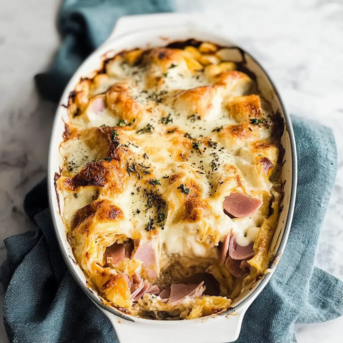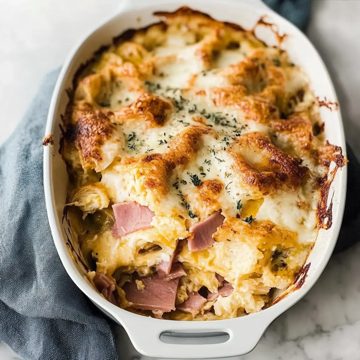 As the sun streams through my kitchen window, I can practically taste the anticipation in the air for a sumptuous brunch. That perfect indulgence awaits in the form of my Croque Madame Breakfast Casserole, a delightful twist on the classic French sandwich that marries crispy edges with creamy interiors. This glorious dish is not only a crowd-pleaser but also an effortless make-ahead option, ideal for those lazy Sunday mornings when cooking should be as relaxing as sipping your coffee. With layers of savory smoked ham, nutty Gruyère cheese, and a luxurious béchamel sauce, each bite transports you to a quaint Parisian café. Who wouldn’t want to indulge in something this comforting and delicious? Ready to elevate your brunch game? Let’s get cooking! Why is this casserole a must-try? Unique Twist: This Croque Madame Breakfast Casserole transforms the beloved classic sandwich into a warm, shareable delight, making breakfast feel special. Effortlessly Delicious: With its rich béchamel sauce and layers of Gruyère cheese, it impresses diners without requiring chef-level skills. Make-Ahead Magic: Prep it the night before and enjoy a hassle-free brunch at your leisure, ensuring you spend more time with loved ones instead of slaving over the stove. Crowd-Pleasing Comfort: Ideal for gatherings, this casserole tantalizes both casual eaters and gourmet enthusiasts alike. Pair it with a fresh salad or fruit for added contrast. Time-Saving Savvy: Easy to assemble and bake, it fits perfectly into your busy mornings, giving you one less thing to worry about. Croque Madame Breakfast Casserole Ingredients For the Casserole Thick Country French Bread – Perfectly absorbs the egg mixture and adds delightful texture; opt for unsliced crusty bread for the best results. Gruyere Cheese – Provides a rich, nutty flavor and creamy texture; feel free to substitute with Swiss or Gouda if needed. Smoked Ham – Adds savory depth to the dish; try using cooked bacon for a smokier flavor variation. Eggs – Essential for creating a custard-like interior; high-quality eggs will enhance the overall flavor. Bechamel Sauce – This sauce ensures a creamy consistency that takes the casserole to the next level; mastering this basic sauce can enhance many recipes. Fresh Thyme – Infuses the dish with aromatic notes; you can replace it with fresh parsley if thyme isn’t on hand. Black Pepper – Adds a hint of spice to balance the richness; use freshly ground pepper for the best flavor. For Serving Fried Eggs – Top individual servings with a fried egg for that classic Croque Madame touch; it’s a delightful way to elevate this comforting dish. Fresh Parsley – A sprinkle of fresh herbs brings color and additional freshness to the plate. Step‑by‑Step Instructions for Croque Madame Breakfast Casserole Step 1: Preheat the Oven Begin by preheating your oven to 375°F (190°C). This temperature ensures that your Croque Madame Breakfast Casserole cooks evenly, achieving that golden crust while the inside becomes rich and custardy. As the oven warms up, gather your ingredients and equipment, including a large mixing bowl and a greased casserole dish. Step 2: Prepare the Bread Mixture Cube your thick country French bread into bite-sized pieces and place it into a large mixing bowl. Add in the diced smoked ham and shredded Gruyère cheese, tossing everything together until evenly combined. The bread will act as the base of your casserole, soaking up the egg mixture beautifully. Step 3: Whisk the Eggs and Make the Bechamel In a separate bowl, crack in the eggs and whisk them thoroughly until well combined. Next, prepare your béchamel sauce, heating butter in a saucepan, adding flour, and gradually whisking in milk until it thickens. This creamy sauce gives your Croque Madame Breakfast Casserole the luxurious texture it needs. Step 4: Combine the Mixtures Pour the whisked eggs and the prepared béchamel sauce over the bread, ham, and cheese mixture. Gently fold everything together, ensuring the bread cubes are well-coated. Let this mixture rest for about 10-15 minutes; this will allow the bread to absorb the flavors and moisture to create a perfect casserole. Step 5: Assemble in the Casserole Dish After the resting period, pour the bread and egg mixture into your greased casserole dish, spreading it evenly. Make sure to press down slightly to compact the layers. For an added layer of cheesy goodness, sprinkle any remaining Gruyère cheese on top, which will form a delicious crust during baking. Step 6: Bake the Casserole Place the casserole in your preheated oven and bake for approximately 38 minutes. Keep an eye on it; the top should be golden brown and slightly puffed when done. To check if it’s set, gently shake the dish; it should wobble slightly like custard but not be overly jiggly. Step 7: Broil for Extra Crispness If you desire an even crispier top, switch your oven to broil for the last 2-3 minutes of baking. Watch closely as it can quickly go from perfect to burnt. This step enhances the texture and adds a delightful crunch, completing your Croque Madame Breakfast Casserole beautifully. Step 8: Serve with Fried Eggs Once baked, remove the casserole from the oven and let it sit for a few minutes to cool. For an authentic touch, top each serving with a fried egg, enhancing the classic Croque Madame experience. Garnish with fresh parsley for a pop of color and serve warm alongside a light salad or fresh fruit. Croque Madame Breakfast Casserole Variations Get ready to customize your casserole with these delightful twists and substitutes that will invigorate your brunch experience! Cheese Swap: Replace Gruyère with a blend of Parmesan and Romano for a sharper flavor profile. This substitution adds a delightful twist while maintaining that cheesy goodness. Veggie Boost: Incorporate leftover roasted vegetables such as bell peppers or spinach for extra nutrients. This is a fantastic way to elevate the dish and re