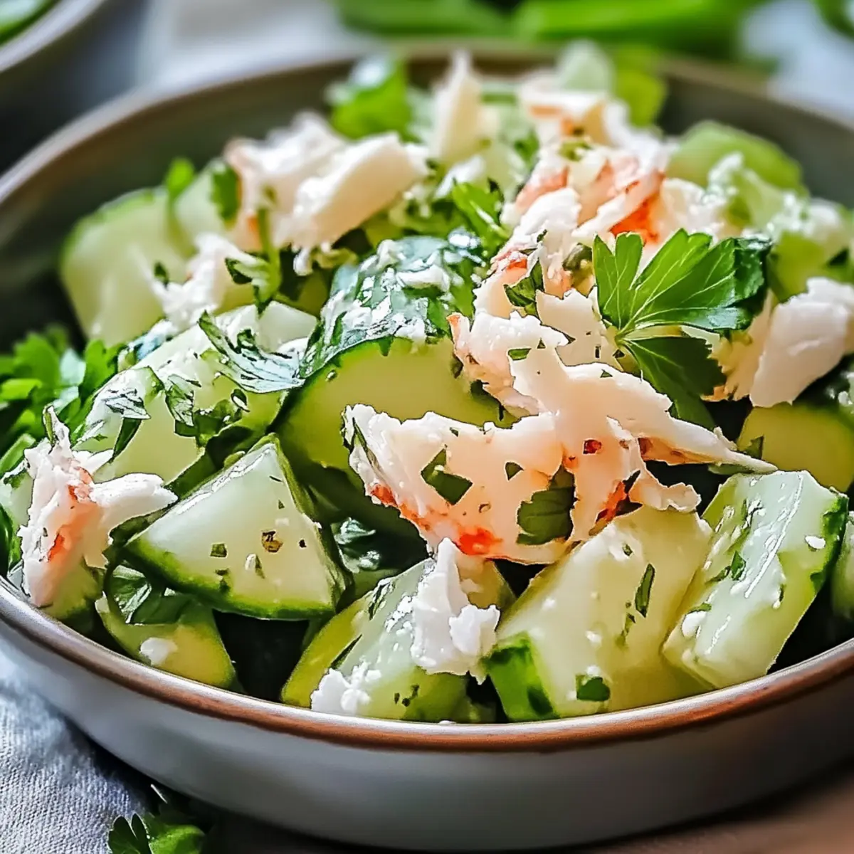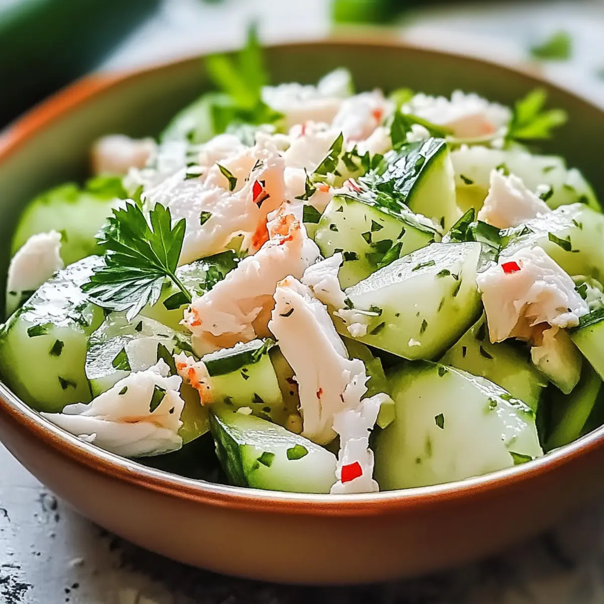 As I gazed at the summer sun dipping below the horizon, I recalled many evenings spent savoring a delightful Cucumber Salad with Crab Meat. This refreshing dish captures the essence of summer, combining the crisp sweetness of Persian cucumbers with the tender richness of crab. It’s a dream for anyone seeking a quick and easy meal that’s also protein-packed—perfect for lazy afternoons or elegant dinner parties. You’ll adore how effortlessly it comes together; just a few simple ingredients and a quick whisk of the dressing will transport your taste buds straight to the coast. Ready to brighten up your summer table with this colorful salad? Let’s dive in! Why is this salad a summer must-try? Vibrant Flavors: This Cucumber Salad with Crab Meat is a burst of fresh, zesty tastes that dance on your palate, making it the perfect light meal for warm days. Quick & Easy: With minimal prep time, effortless assembly ensures this salad is a go-to option for spontaneous summer picnics or last-minute gatherings. Protein-Packed: The blend of cucumbers and crab meat delivers a healthy dose of protein, making it both a satisfying snack and a nutritious choice for lunch. Customizable Delight: Want to mix it up? You can adapt it easily; try swapping imitation crab for shredded rotisserie chicken or adding fresh herbs for an extra flavor kick—just like you can in a Quinoa Crunch Salad. Refreshing Presentation: The colorful and crisp texture creates an appealing dish that’s as delightful to the eyes as it is to the stomach, thus impressing guests at any summer gathering. Cucumber Salad with Crab Meat Ingredients • Fresh and vibrant elements to entice your taste buds. For the Salad Persian Cucumbers – Crisp and sweet; crucial for texture. Substitute with Japanese cucumbers if unavailable. Imitation Crab Meat – Provides seafood flavor and a protein boost. Shred into small pieces for even mixing. For the Dressing Mayo – Forms the creamy base of the dressing; adjust quantity for preferred richness. Vinegar – Adds tang; start with a small amount and adjust to taste. Garlic Powder – Enhances dressing flavor gently; use for subtle depth. Sugar – Balances the tanginess of vinegar; adjust for preferred sweetness. Freshly Cracked Pepper – Adds a hint of spice; freshly cracked delivers better flavor. For Garnishing Sesame Seeds or Fresh Herbs (Dill/Cilantro) – Garnishing options for visual appeal and extra flavor; use for a beautiful touch. This Cucumber Salad with Crab Meat will surely become a star dish for your summer gatherings! Step‑by‑Step Instructions for Cucumber Salad with Crab Meat Step 1: Prep Cucumbers Begin by washing the Persian cucumbers thoroughly under cold water. Slice them into thin julienne strips, ensuring a vibrant presentation. Once sliced, sprinkle the cucumbers with salt and let them sit in a colander for 5-10 minutes. This process will draw out excess moisture, ensuring your Cucumber Salad with Crab Meat maintains a crisp texture. Step 2: Dry Cucumbers After the cucumbers have released their moisture, gently squeeze them to remove any remaining liquid. This step is crucial to prevent sogginess in your salad. Pat the cucumbers dry with paper towels for an extra crunch, ensuring the delightful crispness shines through when mixed with the other ingredients. Step 3: Prep Crab Take your imitation crab meat and shred it into small, bite-sized pieces. This ensures that each mouthful of your Cucumber Salad with Crab Meat is packed with flavor and texture. You might want to use your hands or a fork for fluffier shreds. Set aside the shredded crab meat while you prepare the dressing. Step 4: Make Dressing In a medium-sized mixing bowl, combine the mayonnaise, vinegar, garlic powder, sugar, and freshly cracked pepper. Whisk the ingredients together vigorously until the mixture is smooth and creamy, allowing the flavors to meld. Taste the dressing and adjust sweetness or tanginess to your preference, ensuring a perfect balance for your salad. Step 5: Combine In a large mixing bowl, gently combine the dried cucumbers with the shredded crab meat. Pour the creamy dressing over the mixture, and toss everything together carefully. The goal is to coat the cucumbers and crab without crushing them, leaving you with a beautiful, vibrant Cucumber Salad with Crab Meat that is ready to serve. Step 6: Serve Transfer the salad to a serving dish or individual bowls, garnishing with sesame seeds or your choice of fresh herbs like dill or cilantro. This adds a lovely touch of color and enhances the dish’s flavors. Serve your salad immediately, or chill it slightly for a refreshing treat on a hot summer day. Make Ahead Options These refreshing Cucumber Salad with Crab Meat are perfect for meal prep enthusiasts! You can prep the cucumbers and crab meat up to 24 hours in advance to save time. Simply julienne the Persian cucumbers, sprinkle them with salt to draw out moisture, and store them in an airtight container in the refrigerator. Shred the imitation crab meat and keep it in a separate container to maintain freshness. Once you’re ready to serve, combine the veggies and crab with the dressing—whisked together just before serving to ensure that your salad is just as delicious and crisp as when freshly made. This way, you can enjoy a delightful, protein-packed salad with minimal effort on busy summer nights! How to Store and Freeze Cucumber Salad with Crab Meat Fridge: Store the salad in an airtight container for up to 2 days, but note that cucumbers may lose some crisp texture over time. Make-Ahead Tips: Prepare cucumbers and crab meat a day in advance, keeping them separate from the dressing. Combine with dressing just before serving to keep the salad fresh and crunchy. Freezer: It’s best not to freeze this Cucumber Salad with Crab Meat, as the texture of the cucumbers and crab will change upon thawing. Enjoy it fresh! Reheating: This salad is best served cold; there’s no need 