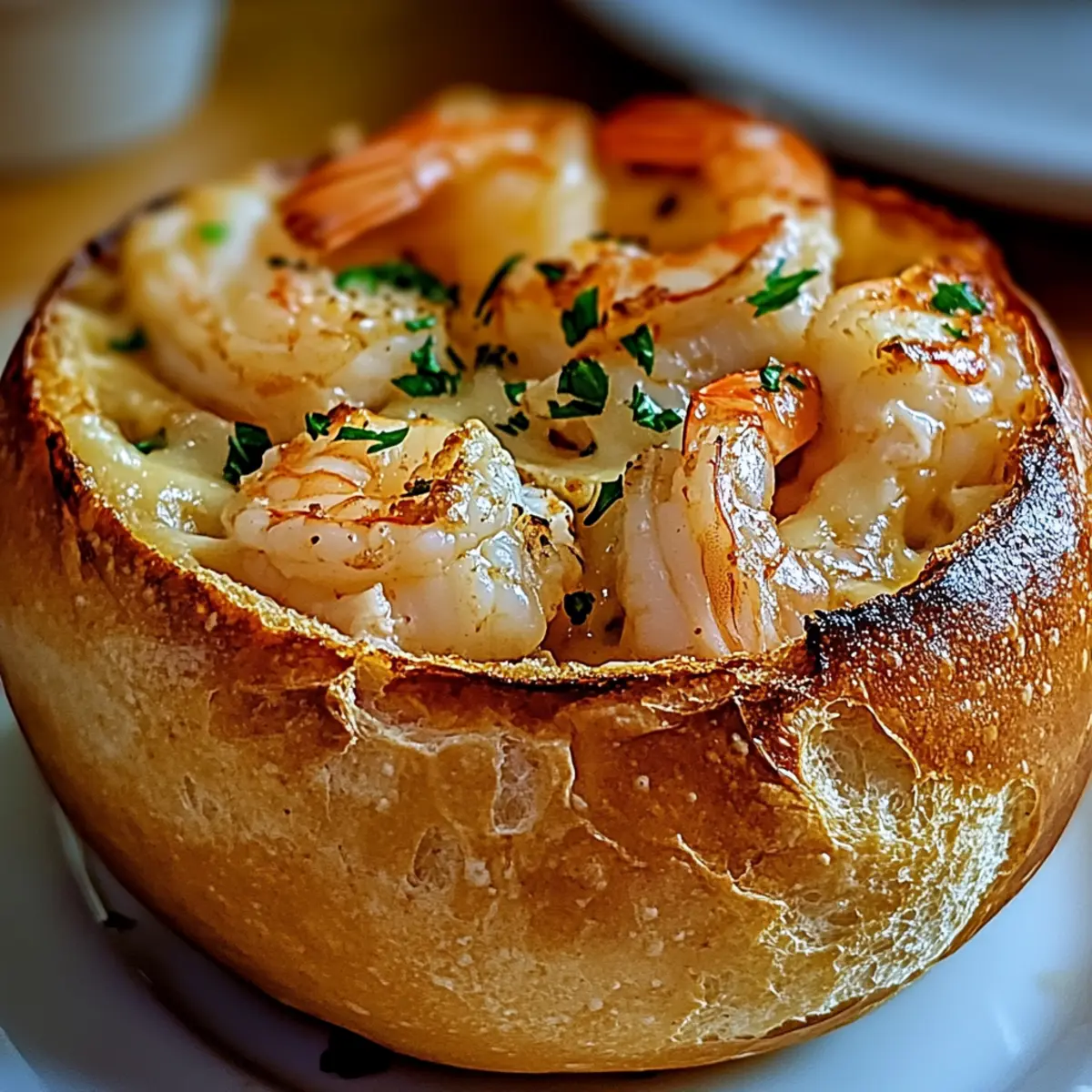 As I stood in my kitchen, the tantalizing aroma of the ocean wafted through the air, instantly transporting me to sun-drenched beaches. Today, I’m thrilled to share my delightful stuffed seafood bread bowl recipe, filled with a creamy, savory mix of shrimp, crab, and fresh herbs tucked inside a warm, crusty loaf. This dish not only brings a touch of coastal charm to your table but also transforms any gathering into a delightful culinary experience. It’s quick to prepare and perfect for sharing, making it a fantastic option for dinner parties or cozy nights in. Are you ready to dive into this flavor-packed adventure? Let’s get started! Why is this seafood bread bowl a must-try? Unforgettable Flavor: Each bite bursts with a medley of shrimp, crab, and aromatic herbs, transporting you to coastal paradise. Crowd-Pleasing Appeal: A show-stopping appetizer that’s sure to impress your guests, perfect for gatherings or cozy nights. Customizable Choices: Switch up the seafood with lobster or scallops for a unique twist each time. Quick and Easy: This recipe comes together in under an hour, so you can whip it up on busy weekdays or leisurely weekends. Warm and Comforting: The golden, crusty loaf encasing creamy goodness is the ultimate comfort food—perfect for any occasion! Don’t forget to grab some fresh veggies or crackers to pair it with, just like with my Garlic Bread Grilled Cheese for an extra crunch! Delightful Stuffed Seafood Bread Bowl Ingredients For the Bread Bowl • Crusty Bread Loaf – A sourdough or artisan loaf enhances flavor and provides the perfect vessel for your filling. For the Filling • Cream Cheese – Adds creaminess and binds the filling for an irresistible texture. • Shrimp – The key protein, lending sweetness; feel free to substitute with scallops or lobster for a refreshing twist! • Crab Meat – Boosts richness and offers a delicate seafood flavor essential for our delightful stuffed seafood bread bowl recipe. • Garlic Powder – Infuses depth to the mix; use fresh garlic for a bolder kick. • Lemon Juice – Brightens the dish with a touch of acidity to balance the richness. • Fresh Herbs (e.g., dill or parsley) – Imparts a fresh burst; swap for dried herbs if fresh aren’t available. • Shredded Cheddar Cheese – Introduces flavor and creaminess—add extra for an indulgent touch! Step‑by‑Step Instructions for Delightful Stuffed Seafood Bread Bowl Recipe Step 1: Preheat Oven Begin by preheating your oven to 375°F (190°C). This temperature is essential for achieving that golden-brown crust on your Delightful Stuffed Seafood Bread Bowl as it bakes. While the oven warms up, prepare your baking sheet by lining it with parchment paper for easy cleanup. Step 2: Prepare Bread Bowl Carefully cut the top off your crusty bread loaf and use your hands or a spoon to hollow out the inside. Make sure to leave a sturdy outer shell to hold the creamy filling without collapsing. You want about an inch of bread around the sides and bottom for the best results in your seafood bread bowl. Step 3: Mix Filling In a mixing bowl, combine the softened cream cheese with chopped shrimp, crab meat, garlic powder, lemon juice, and your choice of fresh herbs. Blend everything together until the mixture is smooth and creamy, ensuring all the seafood is well coated and the flavors meld beautifully, creating the perfect filling for your Delightful Stuffed Seafood Bread Bowl. Step 4: Add Cheese Fold in the shredded cheddar cheese into the seafood mixture. This step enhances the filling’s creaminess and adds an extra layer of flavor. Make sure all components are thoroughly mixed and the cheese is well-distributed, ensuring the filling will be rich and satisfying. Step 5: Stuff the Bread Using a spoon, generously fill the hollowed-out bread with the creamy seafood mixture. Pack it in so it’s heaping above the edges of the bread without overflowing. This ensures every bite of your Delightful Stuffed Seafood Bread Bowl is packed with that delicious filling, making it a delightful centerpiece for your table. Step 6: Bake Place your stuffed bread bowl on the prepared baking sheet and transfer it to the preheated oven. Bake for 25-30 minutes, or until the top is golden brown and the filling is bubbly. Watch closely; you’ll notice the delightful aroma filling your kitchen as the seafood mixture cooks, a sure sign it’s almost ready! Step 7: Serve Once baked to perfection, remove the bread bowl from the oven and allow it to cool slightly. You can slice it into wedges or serve it whole with fresh veggies or crackers on the side. The combination of flavors and textures in your Delightful Stuffed Seafood Bread Bowl is sure to impress everyone at your gathering! Make Ahead Options These delightful stuffed seafood bread bowls are perfect for meal prep! You can mix the creamy filling (using cream cheese, shrimp, crab, and herbs) up to 24 hours in advance; just store it in an airtight container in the refrigerator. Additionally, hollow out the bread bowl up to 3 days ahead of time to save on prep work. Be sure to wrap the bread securely to maintain its freshness and texture. When you’re ready to enjoy, simply stuff the chilled filling into the bread bowl, bake at 375°F (190°C) for 25-30 minutes, and you’ll serve a warm, inviting dish that’s just as delicious as when you made it fresh! What to Serve with Creamy Stuffed Seafood Bread Bowl Set the stage for a delectable dining experience that complements every bite of creamy seafood goodness. Crispy Green Salad: Adds a refreshing crunch and balances the richness of the bread bowl, brightening up the meal. Garlic Breadsticks: The buttery, garlicky flavor of breadsticks will harmonize beautifully, enhancing the overall bread experience. Zesty Coleslaw: A tangy slaw provides a crunchy contrast and a refreshing acidity that cuts through the creamy filling. Steamed Asparagus: This vibrant green veggie brings a subtle eart