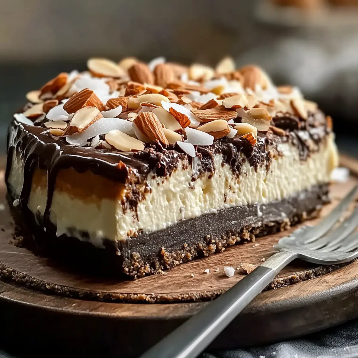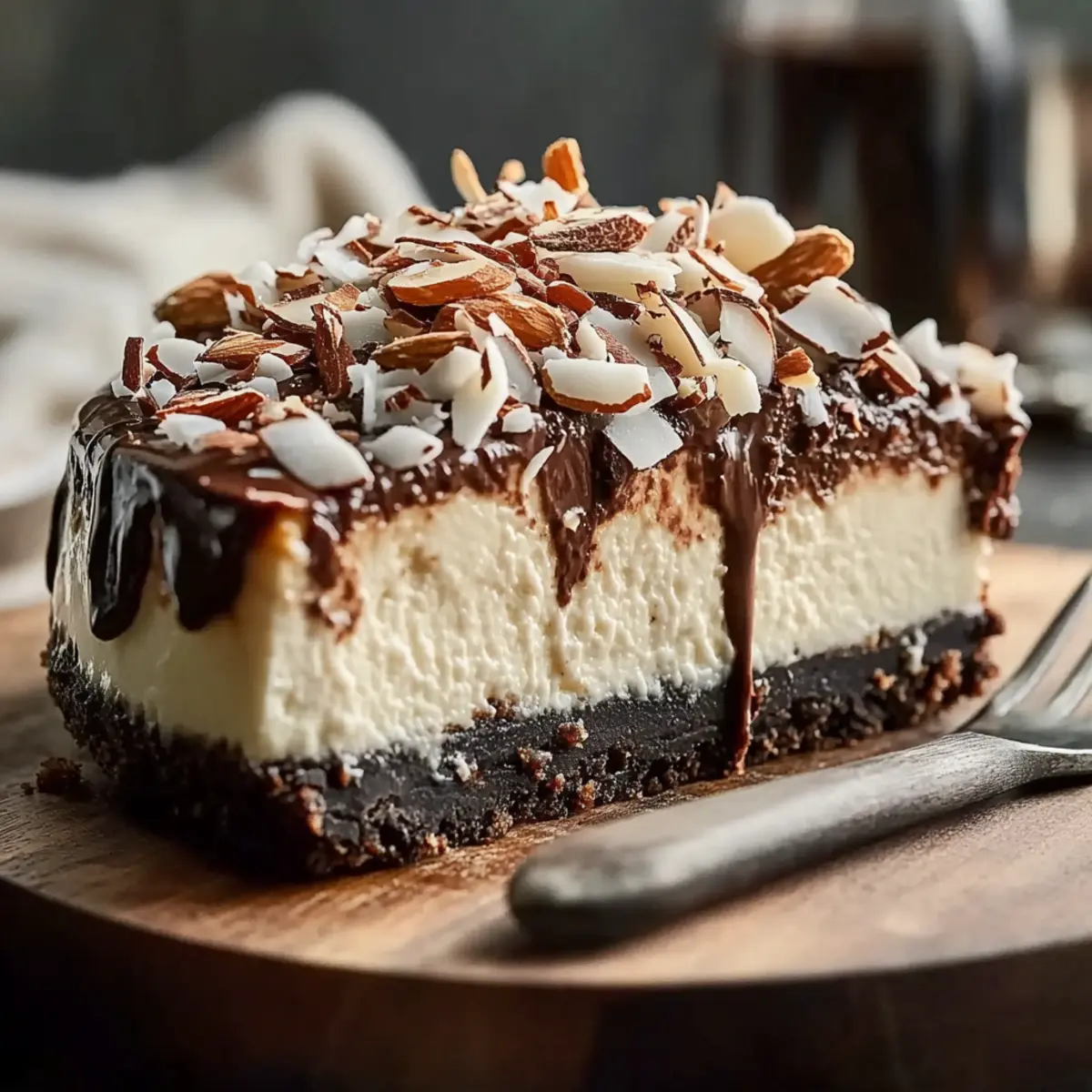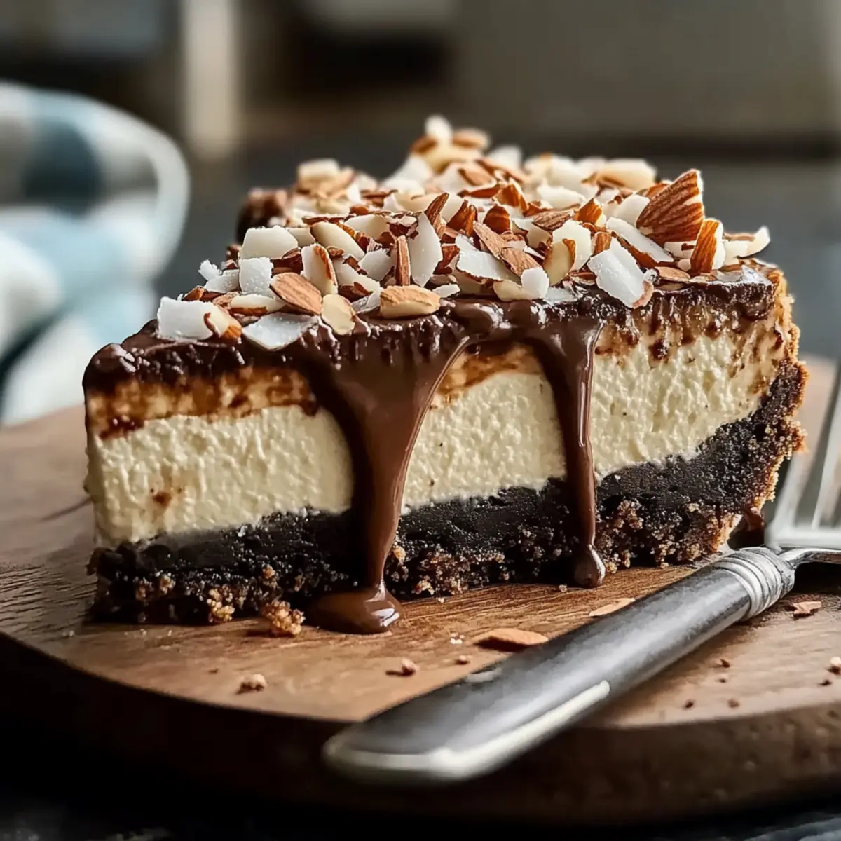 As I stood in my kitchen, the enticing aroma of melted chocolate and toasted coconut filled the air, transporting me to a tropical paradise with each whiff. This Dreamy Chocolate Coconut Cheesecake is more than just a dessert; it’s a celebration in every bite! Crafted with a rich chocolate cookie crust and a lusciously creamy coconut filling, this cheesecake not only pleases the palate but also boasts a stunning, crack-free appearance—perfect for your next gathering. With its gluten-free option, everyone can enjoy this irresistible treat without worry. Whether you’re a baking novice or a seasoned pro, this cheesecake provides a quick and rewarding way to impress friends and family. Curious about how to create this showstopper? Let’s dive into the delightful details together! Why Is This Cheesecake So Irresistible? Decadent Flavor: The combination of rich chocolate and tropical coconut creates a delightful contrast that dances on your taste buds. Showstopper Presentation: With its flawless, crack-free surface, this cheesecake is visually stunning, making it the star of any dessert table. Gluten-Free Option: Easily swap in gluten-free chocolate cookies for those with dietary restrictions, ensuring everyone can indulge! Effortless Baking: Featuring straightforward steps, even novice bakers can achieve a luxurious dessert with minimal fuss. Make-Ahead Convenience: Prepare this cheesecake a day in advance; it gets better as it chills, making it perfect for busy schedules. Add a dollop of freshly whipped cream and maybe a side of Baked Cod Coconut for a complete feast! Dreamy Chocolate Coconut Cheesecake Ingredients For the Crust • Chocolate Sandwich Cookies – Forms the crust base; for a gluten-free option, use gluten-free chocolate cookies. • Unsalted Butter – Binds the crust and adds richness for that extra indulgence. For the Filling • Full-Fat Cream Cheese – Provides a creamy texture and tangy flavor; make sure it’s at room temperature for a smooth batter. • Granulated Sugar – Sweetens the filling, balancing the tanginess of the cream cheese. • Sour Cream – Adds moisture and subtle tartness; must also be at room temperature for a perfect texture. • Pure Vanilla Extract – Enhances the overall flavor, making every bite divine. • Large Eggs – Essential for binding; ensure they are at room temperature to prevent curdling and ensure smooth mixing. For the Ganache and Toppings • Semi-Sweet Chocolate Chips – Create a rich chocolate ganache for topping; can substitute with chocolate chunks if desired. • Heavy Cream – Used in the ganache for added richness and a glossy finish. • Toasted Sliced Almonds – Adds crunchy texture and a nutty flavor that complements the cheesecake beautifully. • Toasted Shredded Coconut – Enhances the tropical aspect of the cheesecake, adding both flavor and texture. Prepare yourself for the joy of making this Dreamy Chocolate Coconut Cheesecake that will leave your guests raving! Step‑by‑Step Instructions for Dreamy Chocolate Coconut Cheesecake Step 1: Preheat and Prepare Begin by preheating your oven to 325°F (160°C). While the oven warms, prepare a large roasting pan by filling it with hot water; this water bath will help keep your cheesecake moist while baking. Additionally, line the bottom of a 9-inch springform pan with parchment paper to prevent sticking, ensuring effortless removal later. Step 2: Make the Crust Crush about 24 chocolate sandwich cookies in a food processor until they resemble fine crumbs. In a bowl, combine these crumbs with melted unsalted butter until well mixed. Press this mixture firmly into the bottom of your prepared springform pan to create a solid crust, then bake it for 8 minutes. You’ll want it slightly set but not browned. Step 3: Prepare the Filling In a large mixing bowl, beat room-temperature full-fat cream cheese with an electric mixer on medium speed until it’s creamy and smooth, about 2 minutes. Gradually add granulated sugar while mixing, followed by sour cream and pure vanilla extract. The filling should be well-blended and creamy, with no lumps, ensuring a delightful texture for your Dreamy Chocolate Coconut Cheesecake. Step 4: Add the Eggs Lower the mixer speed to add the large eggs one at a time, mixing just until each is incorporated. This careful addition prevents overmixing, which could cause cracks in your cheesecake. Mixing too much after adding the eggs introduces air into the batter and will result in an uneven surface when baked. Step 5: Bake the Cheesecake Pour the creamy cheesecake filling over the baked crust, smoothing the top with a spatula. Carefully place the springform pan in the roasting pan filled with hot water. Bake for 1 hour to 1 hour 15 minutes. You’ll know it’s done when the edges are set but the center has a slight jiggle—it will firm up as it cools. Step 6: Cool Gradually Once baking is complete, turn off the oven and slightly crack the door, allowing the cheesecake to cool inside for 1 hour. This gradual cooling is crucial for preventing cracks on the surface. The warmth will slowly dissipate, letting your cheesecake settle beautifully while retaining a dreamy smoothness. Step 7: Refrigerate After an hour, remove the cheesecake from the oven and the water bath. Allow it to cool completely on a wire rack at room temperature. Once cooled, refrigerate the cheesecake for at least 6 hours or overnight. This chilling time enhances the flavors and gives the cheesecake its luxurious texture. Step 8: Prepare the Ganache To make the luscious ganache, heat semi-sweet chocolate chips and heavy cream in a small saucepan over low heat until melted and well combined, stirring frequently. Once melted, let it cool slightly before drizzling it over the chilled cheesecake. This glossy ganache elevates the presentation, making your Dreamy Chocolate Coconut Cheesecake even more irresistible. Step 9: Finish and Serve Once the ganache has set, garnish yo