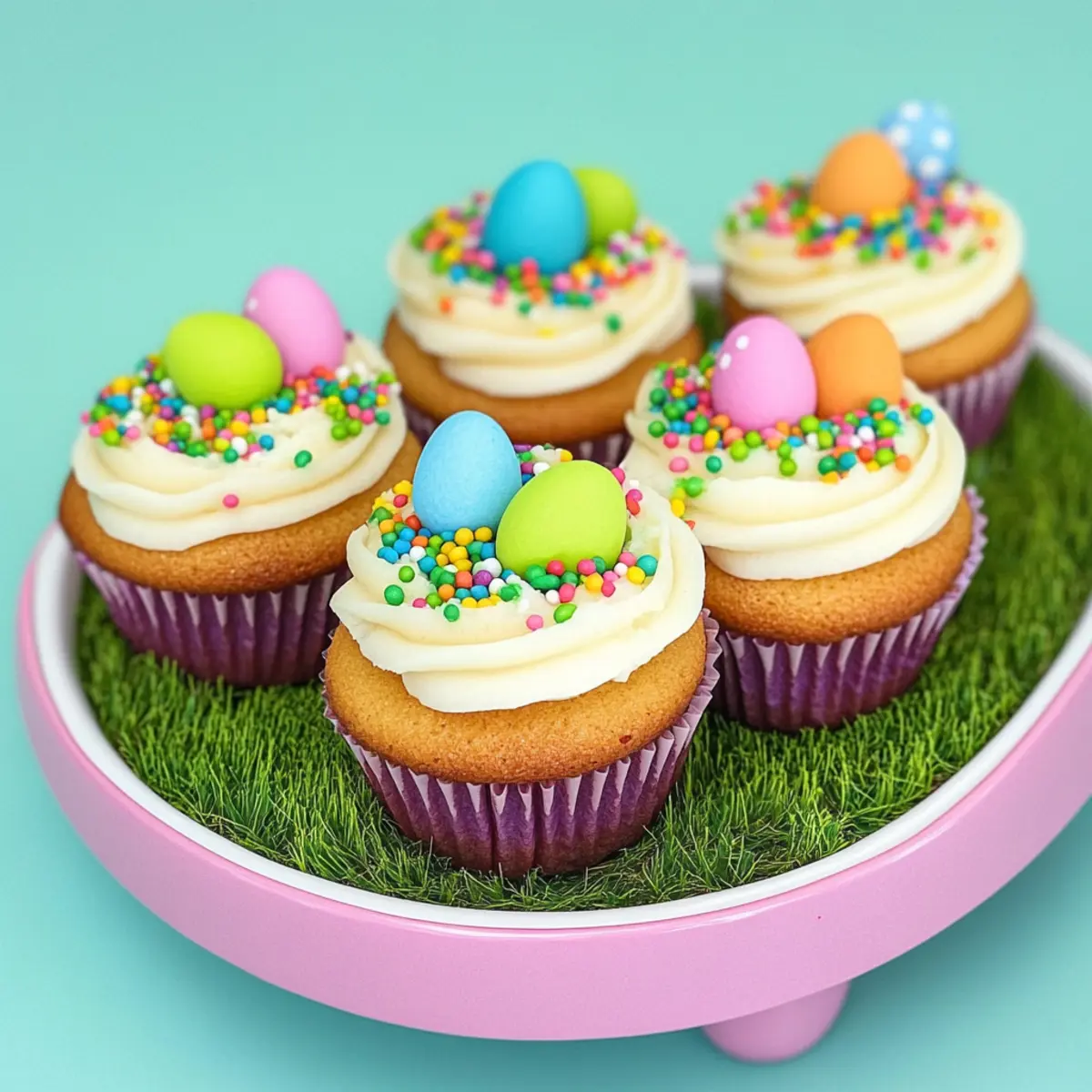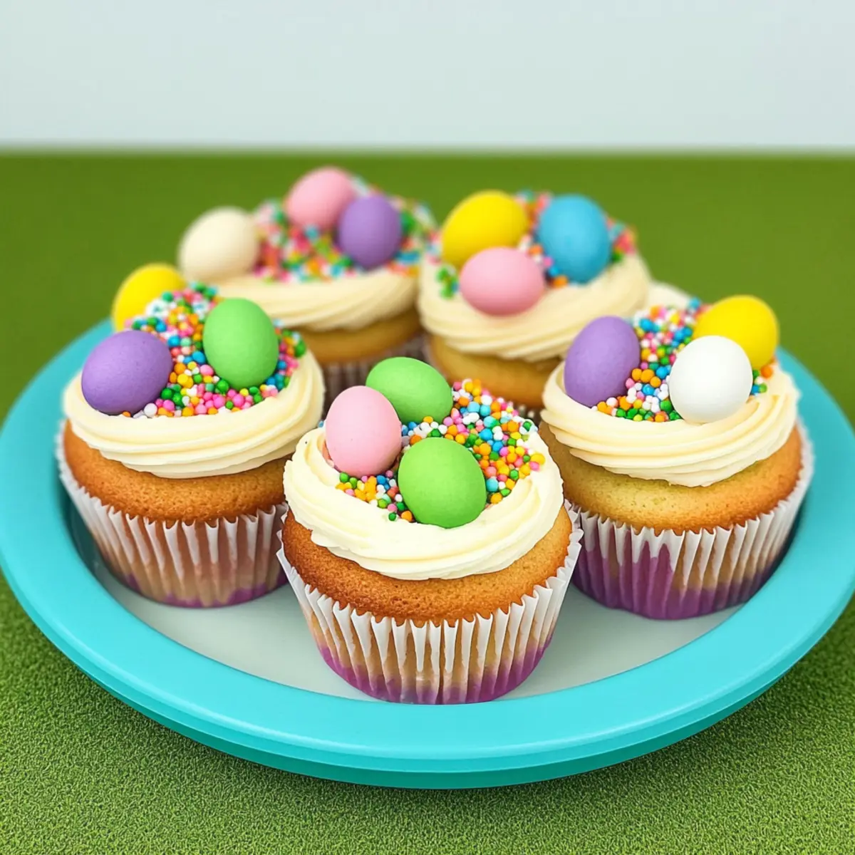 As I rummaged through my kitchen cabinets, an exciting discovery caught my eye: the vibrant pastel cupcake liners I had saved for Easter! This inspired me to dive into the world of festive baking with these delightful Easter Egg Cupcakes. Not only are these treats a feast for the eyes—with charming colors and playful toppings—but they also bring a sense of joy and creativity to your holiday gatherings. With minimal prep time and the ability to personalize each cupcake to your heart’s desire, this recipe transforms a simple baking session into a memorable family experience. Are you ready to whip up some sweet magic and make this Easter a little more special? Let’s get started! Why Make Easter Egg Cupcakes? Festive Fun: These Easter Egg Cupcakes are a joyful way to celebrate the holiday, adding vibrant colors and playful themes to your table. Easy Preparation: With simple ingredients and a quick baking process, you’ll be on your way to creating these adorable treats in no time! Family Bonding: Baking together turns into a cherished family activity—each cupcake can be uniquely decorated, letting everyone’s creativity shine! Customizable Toppings: Choose from a variety of sprinkles and edible decorations, allowing you to personalize each cupcake to match your festive style. Crowd Pleaser: These cupcakes are perfect for gatherings, ensuring your friends and family will be delighted with their whimsical appearance and delicious flavor. Ready for more inspiration? Try Keto Avocado Egg for a savory twist post-sweets, or check out our Rice Paper Egg for a different egg-themed treat! Easter Egg Cupcake Ingredients • Get ready to bake these delightful Easter Egg Cupcakes! For the Cupcakes Vanilla or Chocolate Cake Mix – Choose your favorite mix for a fluffy and tasty base. Eggs – Provides structure and moisture; follow the cake mix instructions for the right number. Vegetable Oil – Keeps your cupcakes moist and tender; can be replaced with melted butter for extra flavor. Water – Helps combine ingredients; make sure it’s at room temperature for best results. For the Frosting Buttercream Frosting – A classic sweet and creamy topping; consider adding some food coloring to match the Easter theme. Cream Cheese Frosting – Swap for a tangy alternative that pairs beautifully with sweet decorations. For Decoration Pastel Sprinkles – These add a fun crunch and vibrant color; mix various types for a festive look. Candy Eggs – For playful toppings; substitute with chocolate bunnies or other seasonal candies if preferred. Edible Glitter – A sprinkle of magic; adds sparkle and whimsy to your cupcakes, making them extra special for Easter celebrations. Each ingredient plays a part in crafting these delightful Easter Egg Cupcakes, perfect for sharing with loved ones! Step-by-Step Instructions for Easter Egg Cupcakes Step 1: Bake Cupcakes Preheat your oven to 350°F (175°C) and gather your favorite vanilla or chocolate cake mix. In a large mixing bowl, combine the cake mix, eggs, vegetable oil, and water as per package instructions. Stir until the batter is smooth and pour it evenly into pastel BakeBright cupcake liners, filling each about two-thirds full. Step 2: Bake Position the filled cupcake liners in the preheated oven and bake for 15-20 minutes. Keep an eye on them; the cupcakes are done when they’re golden brown and a toothpick inserted into the center comes out clean. Once baked, carefully remove them from the oven and let them cool for a few minutes in the pan. Step 3: Cool Cupcakes After a short cool-down, transfer the cupcakes to a wire rack to cool completely. This is crucial, as frosting warm cupcakes can lead to melty frosting disasters. Let them sit for at least 30 minutes to ensure they are fully cooled, making them perfect for your Easter Egg Cupcakes. Step 4: Prepare Frosting While the cupcakes are cooling, prepare your buttercream frosting. In a mixing bowl, beat softened butter until creamy, then gradually add powdered sugar, mixing until smooth. Add a splash of milk and any desired food coloring to achieve your favorite pastel hues. Beat until light and fluffy, creating a delightful frosting for your cupcakes. Step 5: Decorate Cupcakes With the cupcakes cooled and frosting ready, generously frost the top of each cupcake, spreading it smoothly or creating fun swirls as you like. For a festive touch, roll the edges of the frosted cupcakes in colorful spring sprinkles, allowing them to cling beautifully to the frosting. Step 6: Top with Candy Finally, finish off your Easter Egg Cupcakes by placing candy eggs on top of the frosted surface. Press them gently into the frosting for stability, creating a charming display that reflects the joyful spirit of Easter. Mix and match different candy decorations for creative flair! How to Store and Freeze Easter Egg Cupcakes Airtight Container: Store your Easter Egg Cupcakes in an airtight container at room temperature for up to 3 days to keep them fresh and moist. Refrigerate: If your cupcakes are topped with cream cheese frosting, refrigerate them for up to 5 days. Wrap them closely to protect from drying out. Freezer-Friendly: Freeze un-frosted cupcakes for up to 3 months. Place them individually in plastic wrap, then in a freezer bag, to maintain their texture. Reheating: To enjoy, thaw cupcakes overnight in the fridge, then let them come to room temperature before adding your favorite frosting. Expert Tips for Easter Egg Cupcakes • Cooling Time Matters: Allow cupcakes to cool completely before frosting to avoid melting. This ensures beautifully decorated Easter Egg Cupcakes. • Texture Variation: For added excitement, experiment with different cake mixes like lemon or carrot. Each will bring a unique flavor to your Easter celebration. • Frosting Fun: Try different frosting techniques—spreading, swirling, or piping with a star tip—to give your cupcakes distinct looks. It’s all about creativity! • Sprinkl