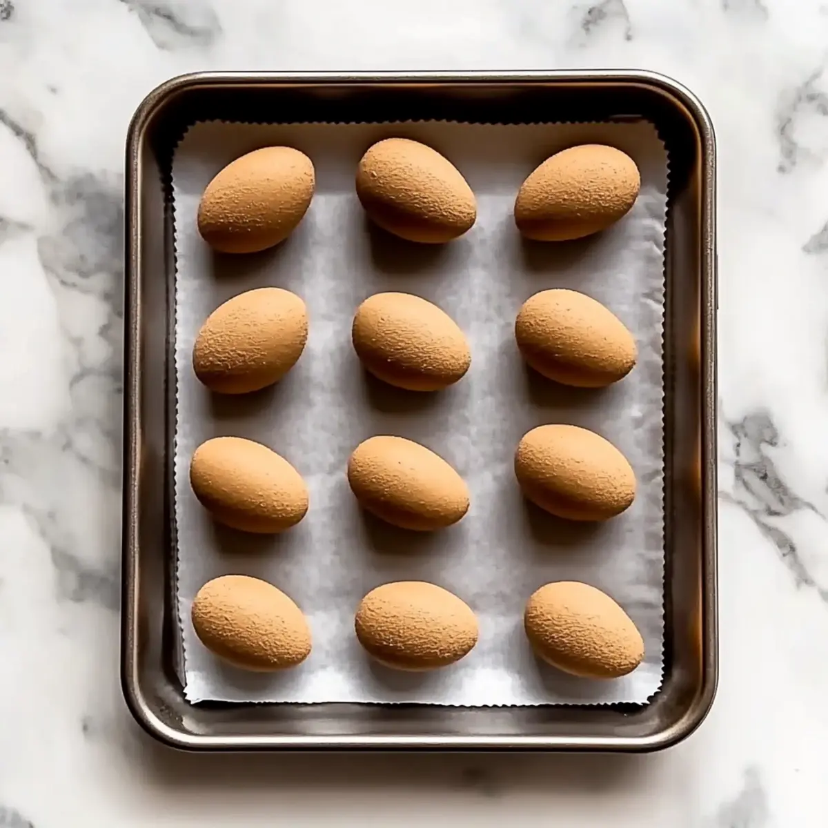 Use your hands or a small cookie scoop to portion out the mixture, rolling each portion into an egg shape. Aim for a uniform size, about 1.5 inches in width, for even cooling and an appealing look. Place each shaped egg onto your prepared baking sheet as you work.
