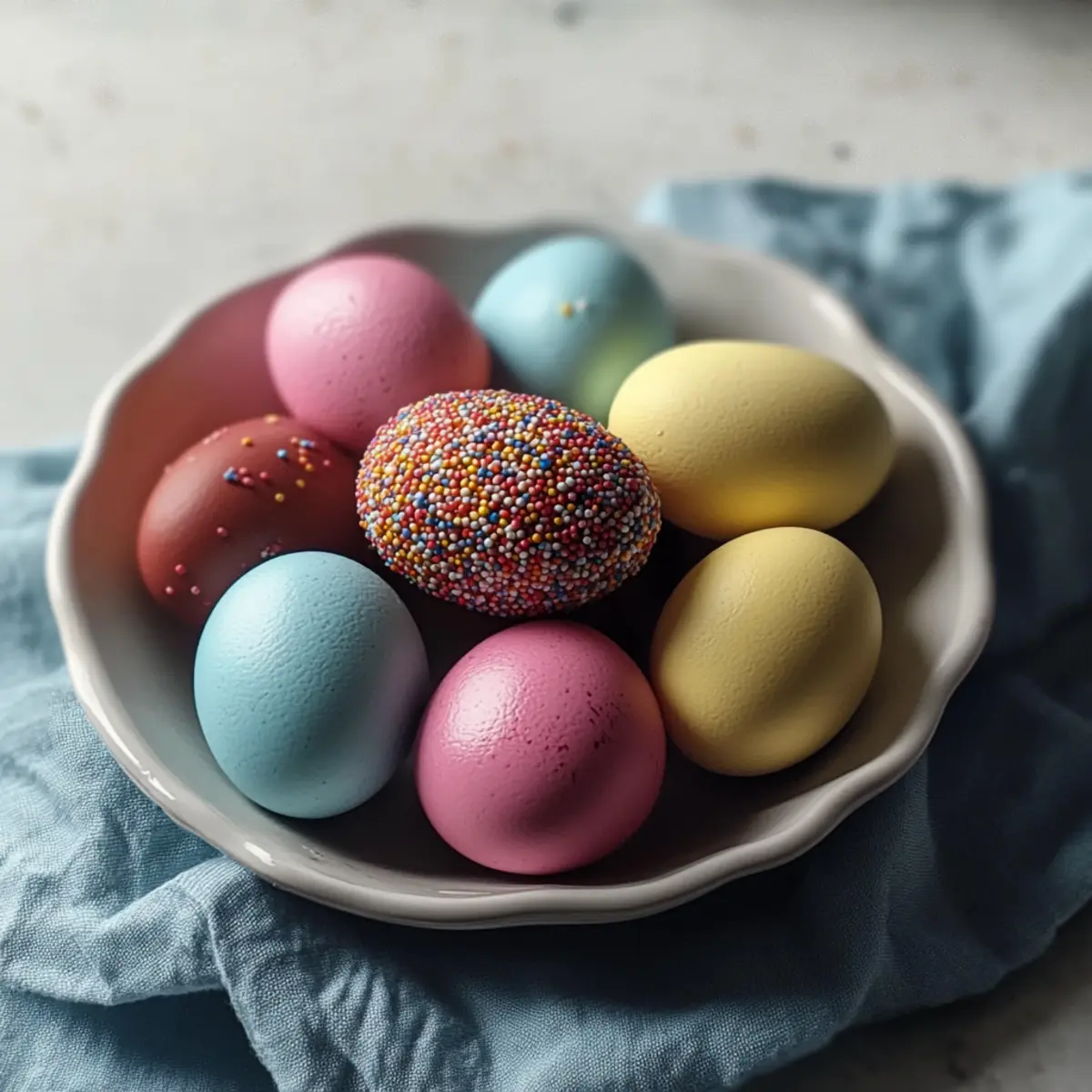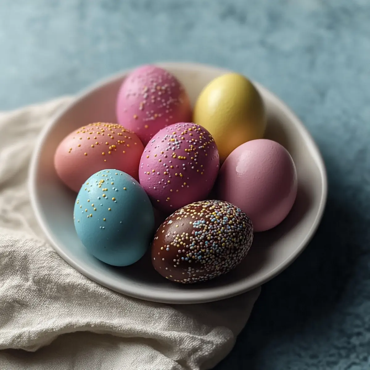 As I stood in my kitchen, surrounded by a mosaic of colors, I couldn’t help but feel the excitement of Easter approaching. Decorating Easter Eggs with vibrant hues has been a beloved tradition in my home, and this year, I’m thrilled to share my Foolproof Natural Dye Easter Eggs recipe with you. With just a few ingredients like beets and turmeric, you can create beautiful, eye-catching eggs that will not only brighten your holiday table but also offer a fun, engaging activity for the whole family. Whether you choose the earthy tones of natural dyes or the lively shades of food coloring, this festive recipe is quick to prep and sure to impress! Ready to add a splash of color to your Easter celebrations? Let’s dive in and make some dazzling eggs together! Why Make Natural Dye Easter Eggs? Unforgettable Fun: Kids and adults alike will enjoy the hands-on experience of creating vibrant, personalized Easter Eggs. Natural Ingredients: With just beets, turmeric, and other pantry staples, you can achieve beautiful colors without harmful chemicals. Versatile Techniques: Whether you prefer rich earthy tones or bright pops of color, this recipe caters to all tastes. Creative Patterns: Use rubber bands and botanicals to transform ordinary eggs into stunning artisan pieces. Family Tradition: Dyeing eggs is a meaningful way to celebrate Easter, fostering connections and creating lasting memories. Quick & Easy: This recipe is accessible for all skill levels, making it a perfect option for a festive family activity this season! Easter Eggs Ingredients Get ready to create colorful masterpieces! For the Base Eggs – Essential for dyeing; choose large eggs for the best results. For Natural Dyes Beets – Provide beautiful red/pink hues; cook them in water to extract color. Turmeric – Produces vibrant yellow; simmer in water for an easy dye. Red Cabbage – Yields lovely blue tones; simmer in water to create your dye. For Binding Vinegar – Essential for both dye methods; helps the color adhere to egg shells. For Bright Colors Food Coloring – Mix with water and vinegar for a lively pop of color; blend colors for unique shades. For Patterns Rubber Bands/Botanicals – Use these to create fun designs and patterns during the dyeing process. Note: Each technique for your Easter eggs offers a unique touch, whether you opt for natural dye using beets and turmeric or go for a splash of bright color! Step-by-Step Instructions for Foolproof Natural Dye Easter Eggs Step 1: Prepare the Eggs Start by gently placing large eggs in a pot and filling it with water, ensuring the eggs are fully submerged. Bring the water to a boil, then reduce the heat and let them simmer for 10-12 minutes. Once cooked, transfer the eggs to an ice bath for 5-10 minutes to cool them quickly and prevent cracking, preparing them perfectly for dyeing. Step 2: Make the Dye Baths For the natural dyes, choose your ingredients—like beets, turmeric, or red cabbage—and chop them into smaller pieces. In separate pots, simmer each plant ingredient in about 2 cups of water for 30 minutes, then strain the liquid into bowls. Stir in 1 tablespoon of vinegar to help the colors adhere to the eggs. For food coloring, mix warm water with vinegar and your chosen colors in separate cups. Step 3: Dye the Eggs Now it’s time to dye your Easter eggs! For the natural dye, immerse each egg in the dye bath, ensuring it’s fully covered. Let the eggs soak until they reach your desired color, which can take a few hours or even overnight for deeper hues. For the bright color method, dip the eggs into your prepared cups for 2-10 minutes, depending on how intense you want the shades to be. Step 4: Dry and Decorate Once your eggs have absorbed their beautiful colors, carefully remove them from the dye baths and place them on a cooling rack or in an egg carton to dry. Allow them to rest for at least 30 minutes or until completely dry. This is also the perfect time to get creative by decorating with stickers, markers, or wax pens as desired! Step 5: Add Patterns For a unique touch, consider using rubber bands or botanical materials like flowers or leaves before dyeing the eggs. Wrap rubber bands around the eggs in various designs, or press botanicals against the surface. These will create stunning, intricate patterns once dyed, transforming your Easter Eggs into beautiful, artisan-quality pieces. Step 6: Store and Display After your eggs are completely dry, store them in the refrigerator if you plan to eat them; they will remain fresh for about a week when kept covered. Alternatively, display your vibrant Easter Eggs in decorative bowls or baskets as a lovely centerpiece for your holiday spread, celebrating the joy and color of the season. Storage Tips for Easter Eggs Fridge: Keep your dyed eggs in the refrigerator for up to one week. Store them in a covered container to maintain their freshness and prevent odors from being absorbed. Room Temperature: If displaying your Easter Eggs, they can be left at room temperature for up to 2 hours. After that, it’s best to refrigerate them to avoid spoilage. Covering: Use plastic wrap or an airtight container to protect your eggs, especially if you’ll be eating them later. This helps keep the colors vibrant and the eggs safe. Reheating: If you plan to incorporate your hard-boiled Easter Eggs into dishes like salads, simply slice or chop them cold from the fridge. Resist reheating, as it can affect texture and flavor. Easter Eggs Variations & Substitutions Let your creativity shine as you explore delightful twists on this classic recipe! Blend Colors: Combine different natural dyes for new hues, like yellow from turmeric mixed with blue from red cabbage for a vibrant green. Onion Skin Dyes: Use onion skins for stunning mottled effects. Simply simmer the skins in water to create a unique dye. Bold Patterns: Experiment with various shaped rubber bands or botanicals for intricate designs. This technique elevates your eggs