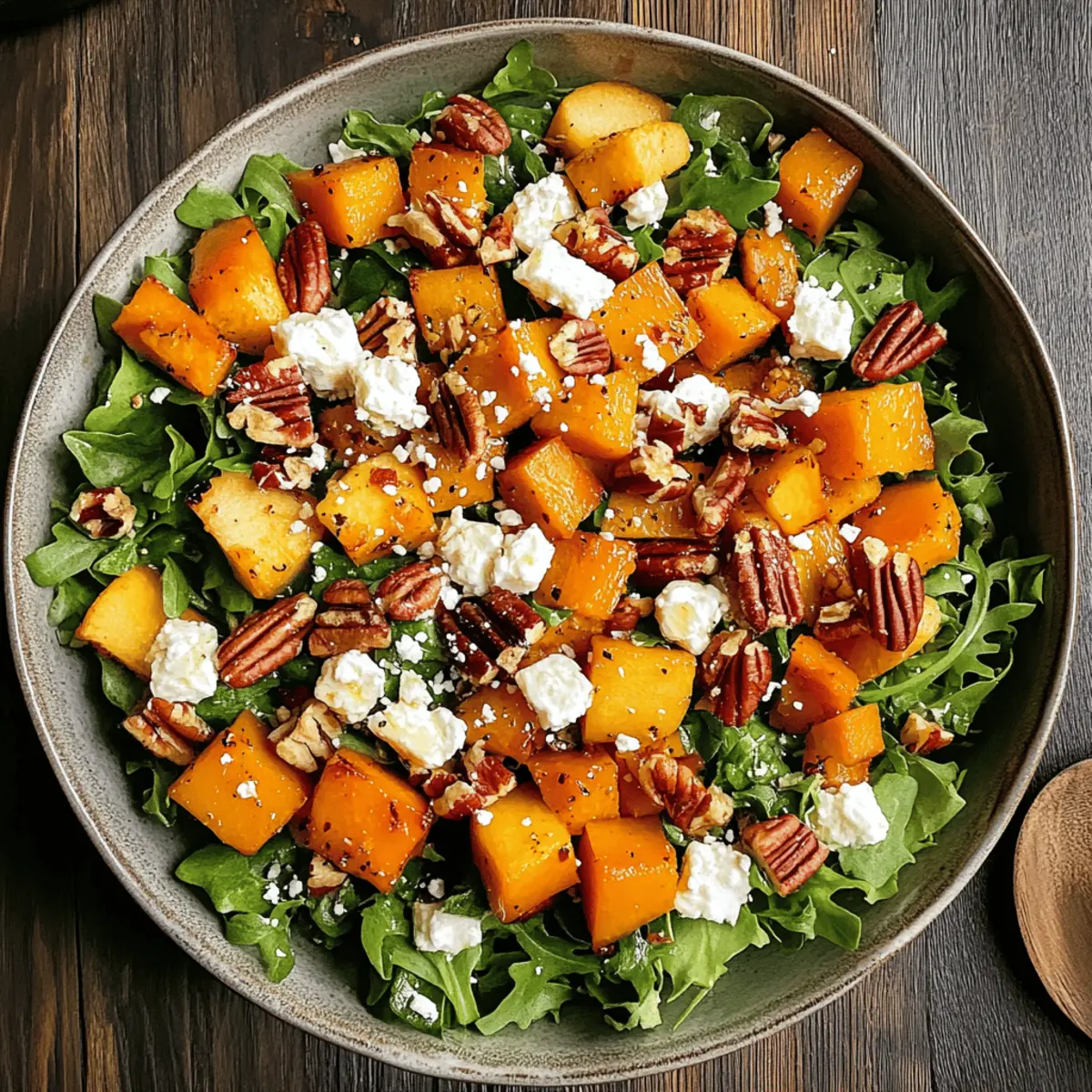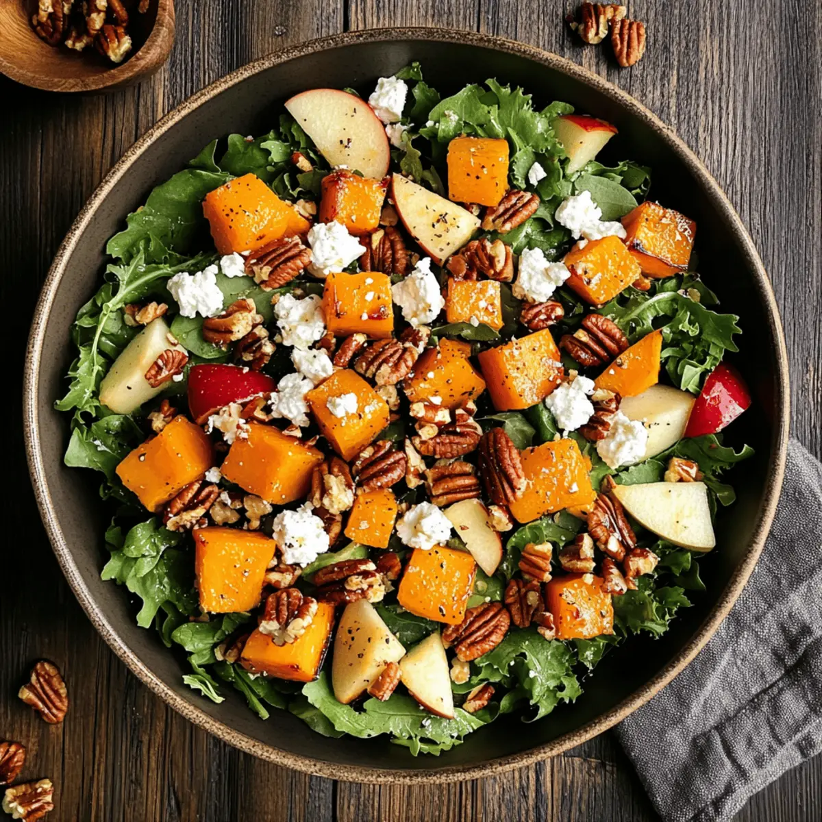 There’s something magical about the first bite of a Fall Harvest Salad with Butternut Squash—it’s like wrapping yourself in a cozy sweater while sipping warm cider on a crisp day. As autumn envelopes us, this vibrant salad bursts with the seasonal goodness of roasted butternut squash, juicy apples, and crunchy pecans, making it a delightful centerpiece for your holiday table or a satisfying lunch anytime. With its simple preparation and the option to make it ahead of time, this dish not only brings warmth and health to your plate but also saves you precious moments in the kitchen. Ready to create a salad that showcases the beauty of fall? Let’s dive into this deliciously colorful recipe that will have everyone asking for seconds! Why is this salad a fall favorite? Vibrant Colors: This Fall Harvest Salad with Butternut Squash is a feast for the eyes, featuring the warm hues of roasted squash and vibrant apple slices that invite you to dig in. Health Boost: Packed with vitamins and healthy fats, this salad combines nutrient-rich ingredients, making it a wholesome choice for any gathering. Perfect for Gatherings: Its stunning presentation and robust flavors make it an ideal centerpiece for Thanksgiving or cozy dinners with friends and family. Time-Saving: Prep the squash and dressing ahead of time, then assemble just before serving, ensuring you can enjoy quality moments with your loved ones. Versatile: Substitute ingredients as needed, like using sweet potatoes instead of butternut squash or swapping feta for goat cheese, so you can adapt it to your taste preferences or dietary needs. While you’re adding this delightful salad to your table, consider pairing it with a warm bowl of Creamy Soups for a rounded meal! Fall Harvest Salad with Butternut Squash Ingredients For the Salad Butternut Squash – Adds a natural sweetness and hearty element; sweet potatoes are a great substitute for a different flavor. Crisp Apple (e.g., Honeycrisp or Fuji) – Offers refreshing sweetness; choose sweet-tart varieties for the best flavor contrast. Mixed Greens (spinach, kale, or arugula) – The fresh base contributing texture and vibrancy to the salad. Feta Cheese – Provides a creamy, tangy touch; goat cheese or blue cheese can be delightful alternatives. Toasted Pecans – Adds crunch and nuttiness; walnuts are a nice replacement or skip them for a nut-free version. Pomegranate Seeds or Dried Cranberries – Enhances the dish with color and sweetness; both options add a festive touch to your fall harvest salad. For the Dressing Maple Syrup – Acts as a sweetener; adjust the quantity to suit your taste. Apple Cider Vinegar – Introduces acidity and enhances the overall flavor profile. Dijon Mustard – Adds a hint of depth; feel free to use your favorite mustard variety. Olive Oil – The base of your dressing, lending richness and smoothness to the mix. Pinch of Cinnamon – Optional, but it brings a warm, autumnal flavor note to the dressing. Feel free to mix and match your ingredients, making this Fall Harvest Salad with Butternut Squash uniquely yours while enjoying the cozy flavors of the season! Step‑by‑Step Instructions for Fall Harvest Salad with Butternut Squash Step 1: Preheat and Roast the Squash Begin by preheating your oven to 400°F (200°C). While the oven heats, toss cubed butternut squash in a bowl with olive oil, a pinch of salt, a sprinkle of pepper, and an optional dash of cinnamon. Spread the squash evenly on a baking sheet and roast for 25–30 minutes, or until the squash is golden and tender, flipping halfway through to ensure even cooking. Step 2: Prepare the Greens While the butternut squash is roasting, wash and dry your mixed greens thoroughly, ensuring they are fresh and crisp. If using kale, take a moment to massage it gently with a little olive oil—this helps soften the leaves and enhances the flavor. Set your greens aside in a large bowl, ready to form the base of your Fall Harvest Salad. Step 3: Slice the Apple and Prepare Toppings Thinly slice the crisp apple, opting for varieties like Honeycrisp or Fuji for a perfect balance of sweetness. In a small pan over medium heat, toast the pecans for about 5 minutes, stirring frequently until they are fragrant and golden. Crumble the feta cheese into small pieces as well, ensuring it’s ready to provide a creamy contrast in your salad. Step 4: Whisk Together the Dressing In a small bowl, whisk together the maple syrup, apple cider vinegar, Dijon mustard, olive oil, and a pinch of cinnamon until well combined and emulsified. Taste the dressing and adjust the sweetness or acidity according to your preference. This delightful maple dressing will add a warm, tangy flavor that perfectly complements the Fall Harvest Salad. Step 5: Combine Salad Ingredients Once the butternut squash is nicely roasted and slightly cooled, it’s time to assemble your salad. In a large bowl or platter, layer the mixed greens with the roasted squash, sliced apples, crumbled feta, and toasted pecans. Finally, sprinkle pomegranate seeds or dried cranberries over the top, adding a pop of color and sweetness to your inviting Fall Harvest Salad. Step 6: Dress & Serve the Salad Just before serving, drizzle your homemade maple dressing over the salad ingredients. Gently toss everything together to ensure an even distribution of flavors without bruising the greens. This vibrant Fall Harvest Salad with Butternut Squash is now ready to dazzle your guests or enjoyed as a cozy meal at home! What to Serve with Fall Harvest Salad with Butternut Squash Transform your lovely salad into a complete dining experience with these delightful pairings! Roast Chicken: Juicy, herb-marinated roast chicken harmonizes beautifully with the sweet and savory flavors of the salad, making for a satisfying meal. Creamy Pumpkin Soup: A warm bowl of creamy pumpkin soup adds a cozy, comforting texture that complements the salad’s crisp elements perfectly. Quinoa Pilaf: 
