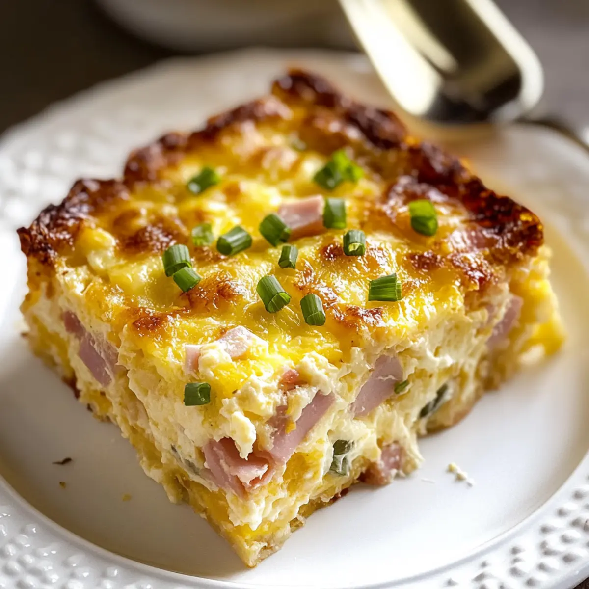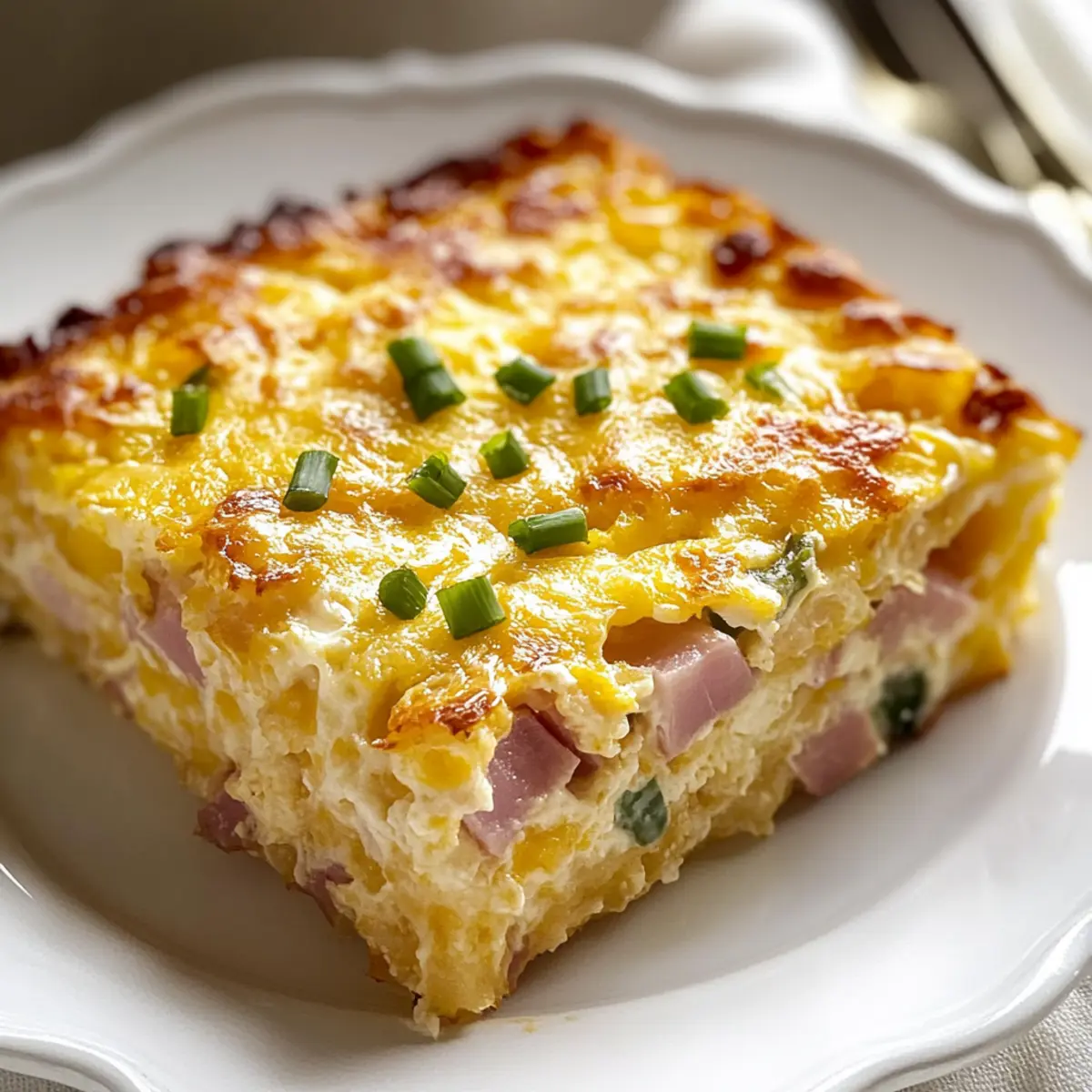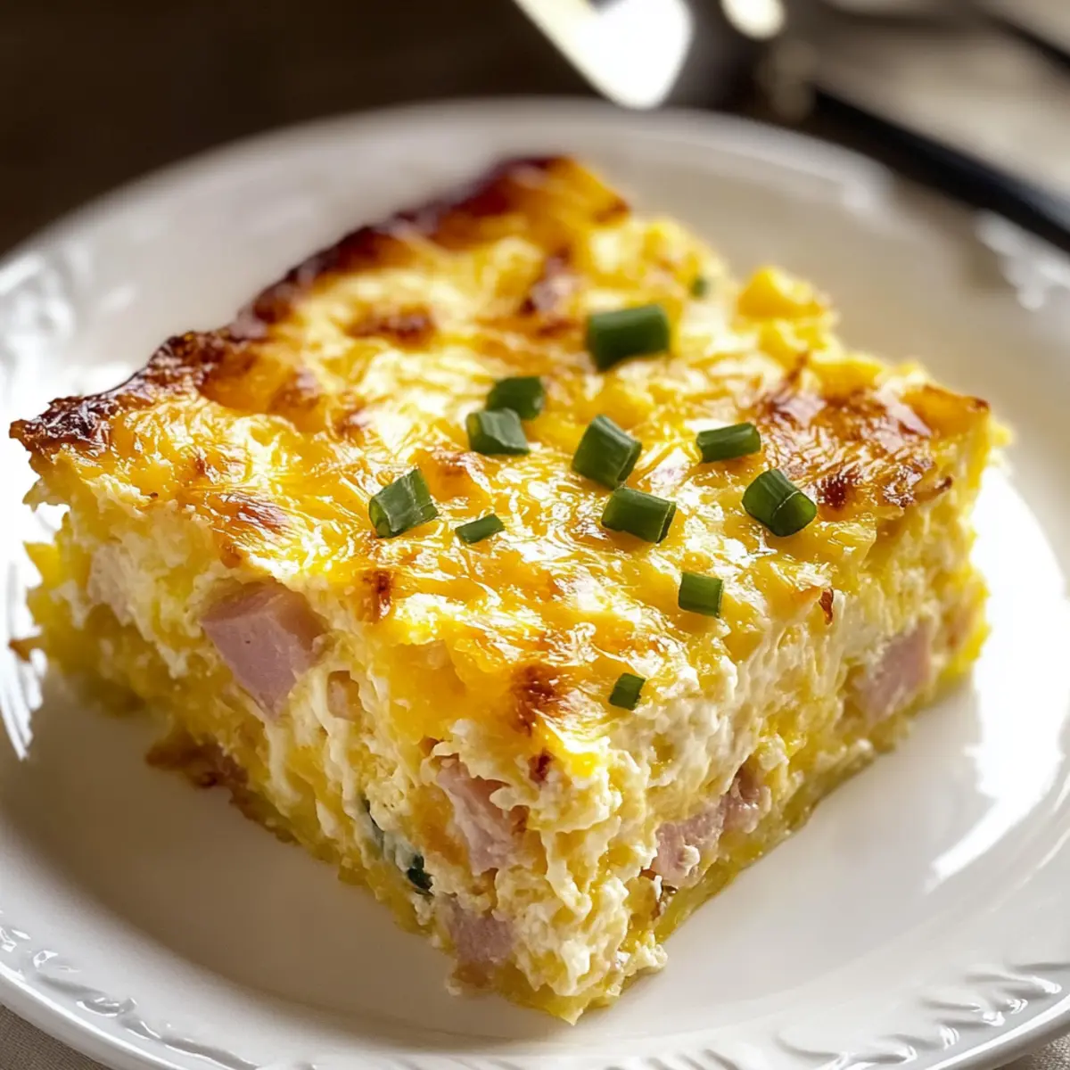 “Can you believe how quickly a hearty Farmer’s Casserole can transform a sleepy morning into a joyful feast?” This comforting breakfast bake is a game-changer, making it an all-time favorite in my kitchen. It features layers of crispy hash browns, savory diced ham, gooey cheddar cheese, and rich eggs that meld together into a creamy, flavorful delight. Not only is this recipe incredibly customizable—swap in your favorite meats or veggies—but it’s also a fantastic make-ahead option, allowing you to enjoy a delicious meal without the morning stress. Perfect for brunches, holidays, or just a cozy weekend at home, this casserole will soon become your go-to for feeding family and friends. Curious about how to whip up this hearty dish? Let’s get started! Why is Farmer’s Casserole a Must-Try? Simplicity: With just a few ingredients, you can create a wholesome dish that everyone will love. Make-Ahead Magic: Prep it the night before for a hassle-free morning; simply bake and serve! Customizable: Whether you prefer sausage, veggies, or extra cheese, the options are endless. Check out the Vegetarian Farmer’s Casserole for a meat-free twist! Crowd-Pleaser: Perfect for brunch or family get-togethers, this casserole feeds a hungry crew with ease. Flavor Explosion: The blend of crispy hash browns, creamy egg, and gooey cheese creates an unforgettable taste experience. Don’t forget to pair it with a refreshing side salad or fruit for a balanced meal! Farmer’s Casserole Ingredients • Get ready to create a hearty masterpiece! For the Casserole Frozen Hash Brown Potatoes – The crispy base adds structure and heartiness, so make sure they’re thawed for even cooking. Cooked Ham – This classic flavor element can be swapped for cooked bacon or breakfast sausage for a tasty twist. Green Onions – Offering a fresh, mild onion flavor; if you desire a stronger taste, sautéed regular onions work nicely too. Shredded Cheddar Cheese – A creamy, rich staple; opt for sharp cheddar for the best flavor or mix it with Monterey Jack or Swiss for variety. Large Eggs – Essential for binding the casserole together while providing a rich texture. Evaporated Milk – Adds luscious creaminess; it can be substituted with whole milk or half-and-half for a richer consistency. Black Pepper and Salt – Fundamental seasonings to enhance the overall flavor of your Farmer’s Casserole. Dried Mustard (Optional) – Adds a delightful depth of flavor, but feel free to omit it if that’s not your preference. Step‑by‑Step Instructions for Farmer’s Casserole Step 1: Preheat Your Oven Begin by preheating your oven to 350°F (175°C). As it warms up, grease a 9×13-inch baking dish with a light coating of cooking spray or butter to prevent sticking. This step is crucial for achieving a perfectly baked Farmer’s Casserole that slides out easily once it’s done. Step 2: Layer the Ingredients Spread the thawed hash brown potatoes evenly across the bottom of the greased baking dish. Next, layer the diced ham generously on top, ensuring an even distribution for maximum flavor. Sprinkle half of the shredded cheddar cheese over the ham, followed by the sliced green onions, creating a visually appealing and flavorful base for your casserole. Step 3: Whisk the Egg Mixture In a large mixing bowl, crack the large eggs and add the evaporated milk, salt, black pepper, and optional dried mustard, if desired. Whisk these ingredients together vigorously until they are fully blended and frothy. This mixture will serve as the binding agent for your Farmer’s Casserole, contributing to its creamy texture once baked. Step 4: Combine and Bake Pour the egg mixture evenly over the layered ingredients in the baking dish. Gently press down to ensure the layers are coated. Then, sprinkle the remaining cheddar cheese on top to create a deliciously gooey crust. Place the dish in the preheated oven and bake uncovered for 45-55 minutes, or until the center is set and the top is a beautiful golden brown. You can check for doneness using a knife; it should come out clean. Step 5: Cool and Serve Once baked, remove the Farmer’s Casserole from the oven and allow it to cool for about 10 minutes. This cooling period helps the casserole to firm up, making it easier to slice. Cut into squares and serve warm, enjoying the delightful blend of textures and flavors in every bite. How to Store and Freeze Farmer’s Casserole Fridge: Store leftovers in an airtight container for up to 4 days. Allow the casserole to cool completely before sealing to maintain its freshness. Freezer: For longer storage, freeze in a tightly wrapped portion or individual slices for up to 2 months. Thaw in the fridge overnight before reheating. Reheating: To enjoy reheated Farmer’s Casserole, place it in a preheated oven at 350°F (175°C) for 20-25 minutes, or until heated through. Covering: When storing, make sure to cover with plastic wrap or foil to prevent freezer burn and maintain flavor. What to Serve with Hearty Farmer’s Casserole? What could elevate your brunch spread and complement the creamy, savory delight of a hearty casserole? Crispy Sour Cream & Chive Biscuits: The fluffy texture and tangy flavor of these biscuits add a delightful contrast, perfect for mopping up delicious egg goodness. Fresh Fruit Salad: A colorful assortment of seasonal fruits introduces a refreshing sweetness, balancing the richness of the casserole beautifully. Coffee or Herbal Tea: A warming cup of coffee or soothing herbal tea creates a cozy morning vibe, enhancing the overall dining experience. The warmth of your drink pairs perfectly with the baked delight on your plate. Light Garden Salad: Crisp greens with a zesty vinaigrette offer a refreshing crunch that complements the hearty dish while lightening up the meal. Roasted Asparagus: Seasoned and lightly roasted asparagus adds a delicious earthy flavor and a bit of crunch to contrast with the casserole’s creamy texture