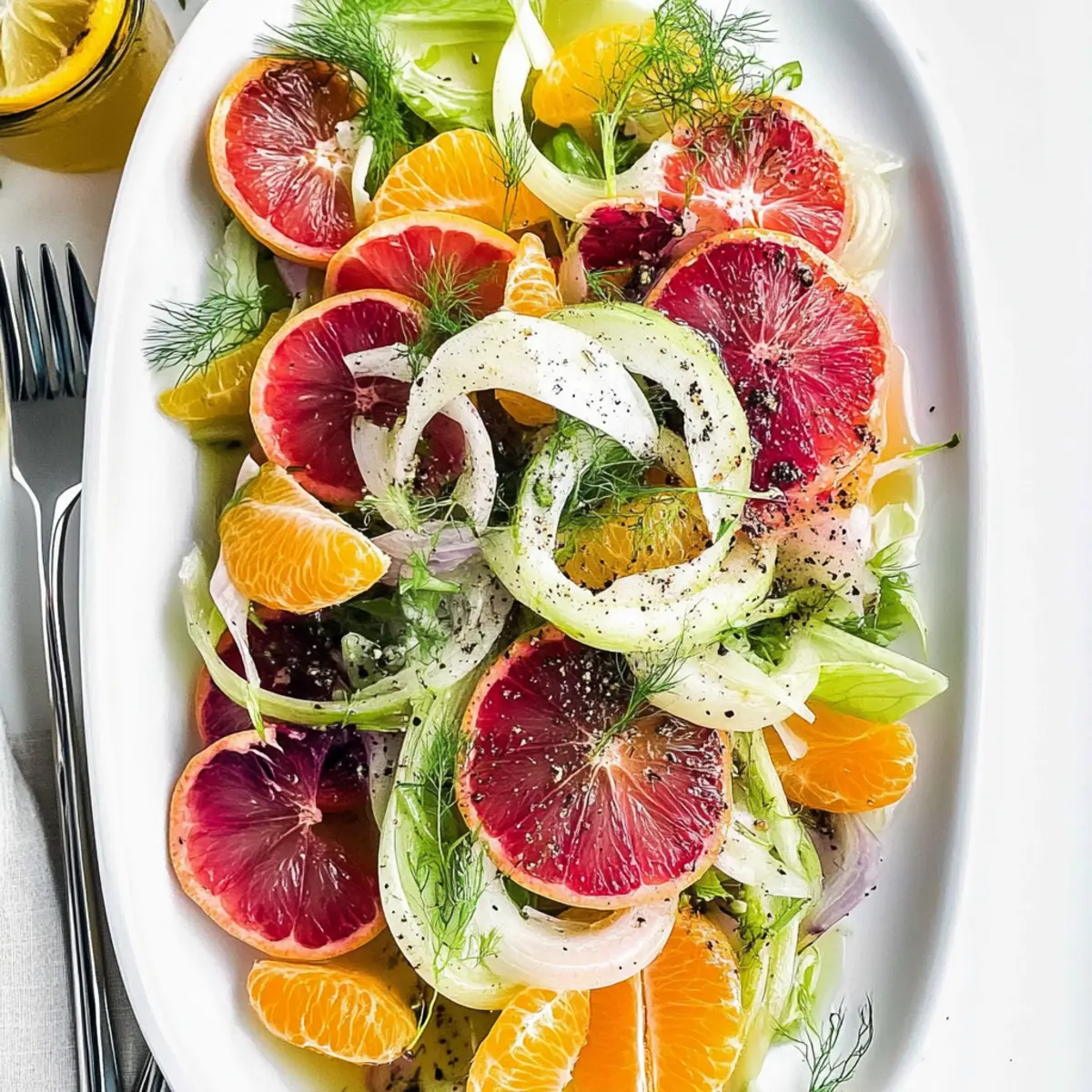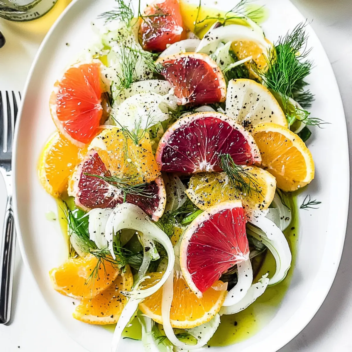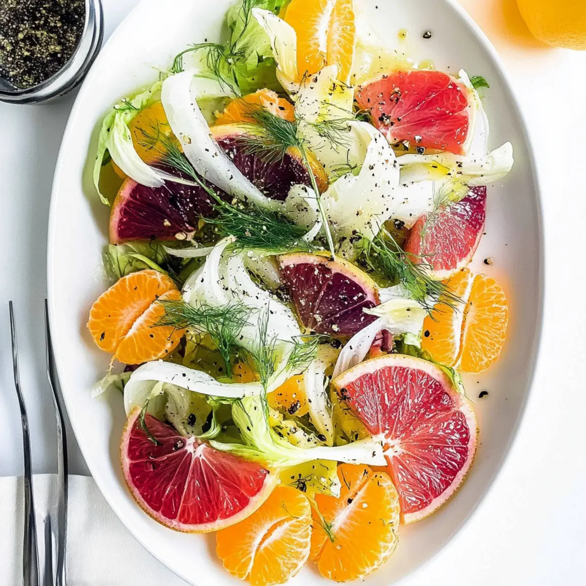 As I was tossing together ingredients for one of my go-to salads, a wave of inspiration washed over me. Enter the Fennel and Citrus Salad with Fennel Vinaigrette, where crunchy fennel meets the bright burst of citrus! This Mediterranean delight transforms a simple meal into a refreshing experience, perfect for those busy days when you crave something healthy yet satisfying. Not only is this salad a low-calorie champ, coming in at about 175 kcal per serving, but it also boasts a quick prep time of just 15 minutes—ideal for anyone ready to ditch fast food. So, whether you’re serving it alongside grilled meats or savoring it as a light lunch, aren’t you curious to see how you can make it your own? Why Is This Salad So Refreshing? Vibrant Ingredients: The combination of crunchy fennel and sweet citrus creates a taste explosion that will rejuvenate your palate. Wholesome Nutrition: Packed with vitamins and low in calories, this salad is guilt-free and health-conscious. Quick to Make: In just 15 minutes, you can prepare this delicious dish, making it perfect for a busy lifestyle. Customizable Delight: With simple swaps like adding grilled chicken or experimenting with seasonal fruits, you can easily tailor this salad to suit your taste. Crowd-Pleasing Appeal: Whether for a casual lunch or a sophisticated dinner party, this salad will impress your guests and leave them wanting more! Fennel and Citrus Salad Ingredients • Get ready to elevate your meal with these fresh ingredients! For the Salad Fennel – Adds a fresh, crunchy texture and a subtle anise flavor; substitute with sliced celery for a milder option. Radicchio – Provides a slightly bitter contrast and vibrant color; can be swapped with another bitter green like arugula. Orange – Offers sweetness and juiciness to balance the salad; substitute with tangerine or any sweet citrus. Pink Grapefruit – Contributes tartness and refreshing juice; exchange with pomelo for a less bitter profile. Fresh Cracked Black Pepper – Enhances flavor contrast; use white pepper for a milder heat. For the Fennel Vinaigrette Olive Oil – Provides richness; substitute avocado oil for a different flavor enhancement. Champagne Vinegar – Adds acidity and brightness; try white wine vinegar as an alternative. Fresh Lemon Juice – Brightens the dressing; lime juice works well in a pinch. Honey Dijon Mustard – Adds sweetness and tang; use regular Dijon with a touch of honey as a simple swap. Fennel Fronds – Complement the salad with a subtle fennel flavor; if unavailable, parsley makes a great substitute. Salt – Essential for flavor enhancement; opt for sea salt for added texture. Now that you have all the ingredients ready, let’s get into creating this delightful Fennel and Citrus Salad with Fennel Vinaigrette! Step‑by‑Step Instructions for Fennel and Citrus Salad with Fennel Vinaigrette Step 1: Prepare Fennel Begin by trimming the stalks off the fennel bulb. Peel away the outer layers and slice the bulb thinly, around 1/8 inch in thickness, using a mandoline or a sharp knife. Ensure you cut evenly for a beautiful presentation and optimal crunch in your Fennel and Citrus Salad. Step 2: Soak Fennel To prevent any browning and maintain the vibrant color, plunge the sliced fennel into a bowl of cold water mixed with a squeeze of lemon juice. Allow it to soak for about 5 minutes; this will keep the fennel crisp and bright, enhancing the overall look and taste of your salad. Step 3: Handle Radicchio While the fennel is soaking, cut the radicchio in half, remove any core, and thinly slice or shred it. Its slightly bitter flavor and vibrant color will add a stunning contrast to the sweetness of the oranges and grapefruits in your Fennel and Citrus Salad. Step 4: Citrus Preparation Next, prepare your citrus fruits. Carefully remove the skins of the orange and pink grapefruit, ensuring to cut away all pith. Segment or slice the fruit thinly, revealing the juicy flesh. This vibrant citrus will uplift your salad, offering a refreshing burst of flavor with every bite. Step 5: Assemble Salad Once all components are prepped, it’s time to assemble your Fennel and Citrus Salad. On a large platter, layer the radicchio, followed by the fennel slices, and finally the citrus segments. This colorful arrangement not only looks appealing but allows each ingredient’s flavor to shine. Step 6: Make Dressing For the Fennel Vinaigrette, combine olive oil, champagne vinegar, fresh lemon juice, honey Dijon mustard, and chopped fennel fronds in a jar. Secure the lid and shake vigorously until all ingredients are well-blended and emulsified. This creamy vinaigrette will add a delightful richness to the salad. Step 7: Serve Drizzle the prepared vinaigrette generously over the assembled salad, ensuring every leaf and slice is coated. Finish with a sprinkle of fresh cracked black pepper for an added kick, and garnish with additional fennel fronds if desired. Your Fennel and Citrus Salad with Fennel Vinaigrette is now ready to enjoy! Fennel and Citrus Salad Variations Feel free to explore your culinary creativity and make this salad uniquely yours! Crunchy Add-ins: Toss in nuts or seeds like pistachios or sunflower seeds for an extra satisfying crunch. They’ll add dimension both in flavor and texture. Protein Boost: Add grilled chicken or shrimp to transform this salad into a heartier meal, making it filling while still keeping it light and refreshing. Seasonal Twist: Substitute seasonal fruits; think berries for a sweet addition or sliced apples for a crisp contrast. It’s all about enjoying what’s fresh! Herb Upgrade: Replace fennel fronds with fresh herbs such as dill or mint to infuse a different aromatic note that complements the citrus beautifully. Creamy Swap: For a creamier vinaigrette, mix in a dollop of Greek yogurt—this will elevate the overall creaminess while maintaining a tangy flavor. Spice It Up: Add a pinch of red pepper flakes for a gentle ki