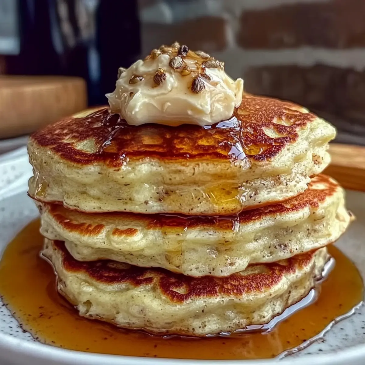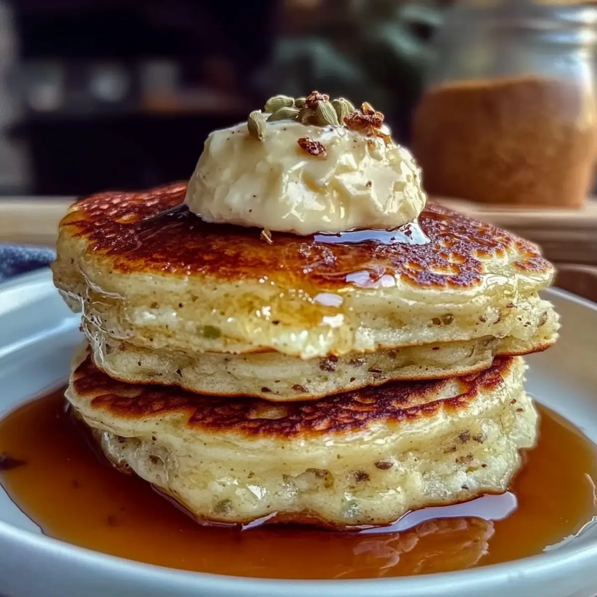 The sweet, comforting scent of breakfast wafts through the air as I pour the pancake batter into a warm skillet. There’s something enchanting about the way fluffy pancakes sizzle, transforming a simple ingredient mix into a stack of joy. Today, I’m excited to share my recipe for Fluffy Pancakes with Cardamom Honey Butter, a delightful twist that will elevate your morning routine. These pancakes are not only easy to whip up, but they’re also the perfect way to impress family and friends at brunch gatherings. With a touch of cardamom, this recipe brings a cozy, exotic warmth that dances on your palate. Whether you’re a seasoned home-chef or just keen to step away from takeaway breakfasts, you’ll find satisfaction in this comforting meal. Ready to create your own fluffy masterpiece and brighten your mornings? Let’s dive in! Why are these pancakes a must-try? Fluffiness Guaranteed: Each bite of these pancakes is light and airy, making breakfast feel extra special. Unique Flavor Fusion: The cardamom honey butter offers a delightful twist that sets them apart from ordinary pancakes. Easy Preparation: With simple ingredients and clear instructions, you’ll whip them up in no time! Customizable Options: Substitute ingredients as needed—plenty of dairy-free options available to suit your dietary preferences. Crowd-Pleasing Dish: Perfect for brunch gatherings or family breakfasts, these pancakes are sure to impress everyone at the table. Pair them with some Garlic Butter Shrimp Pasta for a truly memorable meal! Fluffy Pancakes with Cardamom Honey Butter Ingredients For the Pancakes • All-Purpose Flour – Provides structure and lightness to the pancakes; substitute with gluten-free flour mix for a gluten-free option. • Baking Powder – Acts as a leavening agent, ensuring pancakes rise and are fluffy. • Sugar – Adds sweetness to the batter and enhances flavor; substitute with honey or maple syrup if preferred. • Salt – Enhances overall flavor balance in the pancakes. • Eggs – Binds ingredients together and contributes to moisture; for a vegan option, substitute with flax eggs. • Milk – Adds moisture and aids in creating a light batter; use almond or oat milk for dairy-free versions. • Butter – Adds richness and flavor; can be swapped with plant-based butter for a dairy-free option. • Cardamom – Infuses the batter and butter with a unique floral flavor; substitute with cinnamon or nutmeg for alternative taste profiles. For the Cardamom Honey Butter • Butter – Whip together with other ingredients for a rich, smooth topping; choose plant-based butter for a dairy-free option. • Cardamom – Enhances the flavor of the butter, giving it a warm, exotic twist; feel free to adjust the amount based on your preference. • Honey – Sweetens the butter and adds depth; can be replaced with agave syrup for a vegan option. Step‑by‑Step Instructions for Fluffy Pancakes with Cardamom Honey Butter Step 1: Combine Dry Ingredients In a large mixing bowl, whisk together 1 cup of all-purpose flour, 2 teaspoons of baking powder, 2 tablespoons of sugar, and a pinch of salt. This blend provides the foundation for your fluffy pancakes, ensuring a light and airy texture. Make sure there are no lumps for a smooth batter, then set the bowl aside. Step 2: Mix Wet Ingredients In a separate bowl, crack 1 egg and whisk it until pale. Gradually add in 1 cup of milk and 2 tablespoons of melted butter, stirring well to combine. The wet mixture should be smooth and cohesive, which helps create moist, fluffy pancakes when mixed with the dry ingredients. Step 3: Combine Wet and Dry Mixtures Pour the wet ingredients into the bowl of dry ingredients. Stir gently with a spatula until just combined, being careful not to overmix. Lumps are okay! This step is crucial for preserving the fluffiness of your pancakes, so avoid overworking the batter. Step 4: Let the Batter Rest Allow the batter to rest for about 5 minutes. This short pause helps the baking powder activate, leading to fluffier pancakes. Meanwhile, you can prepare your cooking surface, ensuring it’s ready for pouring the batter. Step 5: Preheat Your Skillet Preheat a non-stick skillet or griddle over medium heat and lightly grease it with a bit of butter or oil. The pan should be hot enough that a drop of water sizzles when added, which indicates it’s ready for perfect pancake cooking. Step 6: Cook the Pancakes Pour a ladleful of batter onto the skillet for each pancake, leaving space between them. Cook until bubbles form on the surface and the edges appear set, about 2-3 minutes. These visual cues signal that it’s time to flip for even cooking. Step 7: Flip and Finish Cooking Carefully flip each pancake with a spatula and cook the other side for another 1-2 minutes until golden brown. The pancakes should be puffed and lightly browned, exuding a warm, inviting aroma. Transfer them to a plate and keep warm while you cook the remaining batter. Step 8: Prepare Cardamom Honey Butter In a small bowl, whip together 1/2 cup of softened butter, 1 tablespoon of ground cardamom, and 2 tablespoons of honey until smooth and fluffy. The resulting cardamom honey butter will add an extra layer of flavor to your fluffy pancakes, ensuring every bite is a delight. Step 9: Serve and Enjoy Stack your warm, fluffy pancakes on a plate and serve them generously topped with the cardamom honey butter. For an extra treat, consider adding fresh fruit, nuts, or maple syrup to enhance this cozy breakfast experience. Enjoy the fusion of flavors that makes Fluffy Pancakes with Cardamom Honey Butter a perfect morning choice! How to Store and Freeze Fluffy Pancakes Fridge: Store leftover pancakes in an airtight container for up to 2 days. To maintain their fluffiness, separate layers with parchment paper to avoid sticking. Freezer: Freeze pancakes in a single layer on a baking sheet, then transfer to a freezer bag. They can be stored for up to 2 months. 