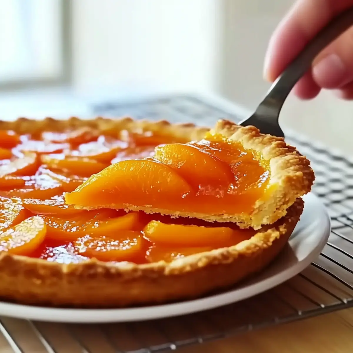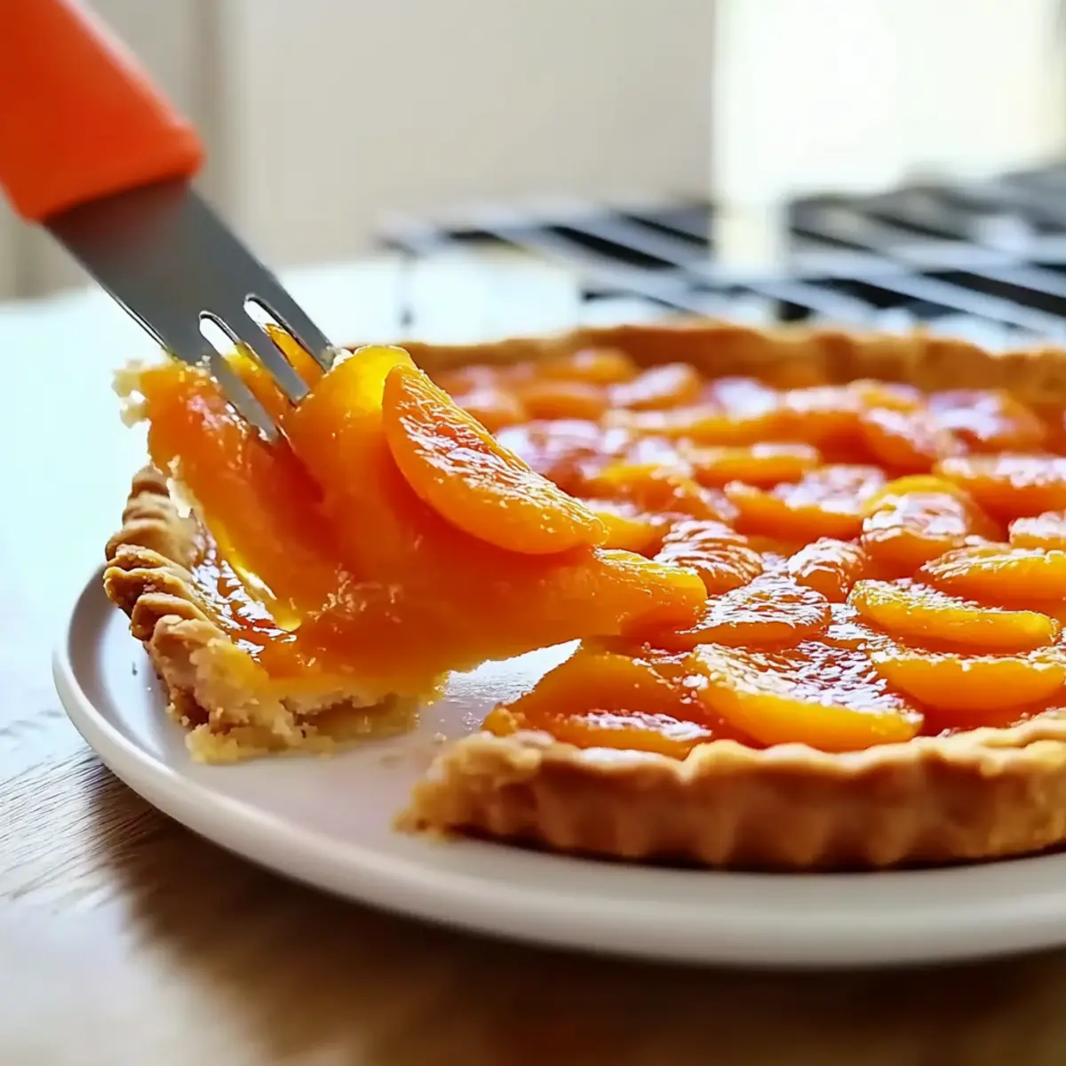 The warmth of summer blossoms not just in gardens, but in the rich flavors of your kitchen. When fresh apricots begin to fill market stalls, it’s the perfect time to whip up a Classic French Apricot Tart (Tarte Aux Abricot). This delightful dessert showcases juicy apricot halves nestled in a golden, flaky crust that’s as satisfying to make as it is to eat. With minimal ingredients and simple techniques, this recipe is a breeze, making it an inviting choice whether you’re entertaining guests or indulging in a cozy night at home. Plus, it’s a fantastic way to enjoy the fruits of your labor from those backyard trees or local orchards! Curious about how to create this quintessential French delight? Let’s dive into the recipe! Why is this tart so irresistible? Freshness and Flavor: Highlighting juicy, ripe apricots, this tart brings a burst of fruity flavor that captures summer’s essence. User-Friendly: The straightforward process requires minimal ingredients, making this an accessible bake for all skill levels. Versatile Base: While apricots shine here, feel free to swap in peaches or plums, tailoring the tart to your seasonal favorites. Elegant Presentation: This tart is not only delicious but also visually stunning, making it perfect for impressing dinner guests. Satisfying Texture: Experience the delightful contrast of flaky crust and tender fruit in every slice, ensuring this dessert is a crowd-pleaser! Treat yourself to this Classic French Apricot Tart and discover the charm of homemade desserts that feel gourmet yet are simple to create. French Apricot Tart Ingredients • Get ready to bake a delightful treat! For the Crust All-purpose flour – Provides structure for the tart crust; you can use gluten-free flour if needed. Sugar – Adds sweetness to both the crust and filling; brown sugar can provide a richer flavor. Unsalted butter – Ensures a rich, flaky crust; make sure the butter is cold for best results. Large egg – Binds the crust together; opt for a flax egg for a vegan option. Cold water – Helps combine the dough; add a bit more if the mixture appears dry. For the Filling Corn starch – Thickens the filling and absorbs moisture; feel free to substitute with tapioca starch. Fresh apricot halves – The star of the dish, delivering a fresh and fruity flavor; substitute with other stone fruits like peaches or plums if desired. Apricot jam mixed with water – Adds a beautiful glossy finish; you can use other fruit jams depending on your preference. Optional additional sugar for apricots – Use this if your apricots are too tart to enhance sweetness. Embrace the deliciousness of a French Apricot Tart and elevate your dessert game today! Step‑by‑Step Instructions for French Apricot Tart Step 1: Preheat Your Oven Begin by preheating your oven to 475°F (245°C). This step is crucial for achieving a perfectly baked crust for your French Apricot Tart. As the oven heats, you can prepare your dough, ensuring you’re ready to pop the tart in once it’s assembled. Step 2: Make the Dough In a food processor, pulse together all-purpose flour and sugar until combined. Gradually add cold, cubed unsalted butter, pulsing until the mixture resembles coarse crumbs. Take your time here, as the cold butter is essential for a flaky crust. Aim for no longer than a minute of processing for best results. Step 3: Combine Wet Ingredients In a separate bowl, whisk together a large egg and a few tablespoons of cold water. Gradually stream this mixture into the food processor while blending until a dough forms into a cohesive ball. The dough should be slightly sticky but manageable. If it’s too dry, add a little extra cold water. Step 4: Shape and Chill the Dough On a lightly floured surface, gently fraisage the dough (the technique of pressing and folding) until smooth and unified. Shape it into a round disc, wrap it in plastic, and chill in the refrigerator for about 15 minutes. Chilling helps to maintain the dough’s integrity during baking. Step 5: Roll Out the Dough After chilling, roll out the dough on a floured surface until it’s large enough to fit a 9 to 11-inch tart pan. Transfer the rolled dough carefully to the pan, pressing it into the corners and edges. Use a knife to trim any excess and poke small holes in the bottom with a fork to prevent bubbling. Step 6: Prepare the Filling Sprinkle a layer of corn starch and a bit of sugar evenly across the tart shell. This ensures the filling remains thick and prevents a soggy bottom as it bakes. Next, artfully arrange fresh apricot halves skin-side down over the filling, allowing their natural beauty to shine through. Step 7: Bake the Tart Place your assembled French Apricot Tart on the lowest rack of the preheated oven. Bake it for 10 minutes at 475°F (245°C), then reduce the heat to 425°F (220°C) and continue baking for another 30 minutes. The edges should turn golden brown, and the apricots will bubble, creating a mouthwatering aroma. Step 8: Cool and Finish Once baked, remove the tart from the oven and carefully unmold it while it’s still warm. Allow it to cool on a wire rack for a few minutes. After cooling, brush the tops of the apricots with a mixture of apricot jam and water for a glossy finish, enhancing the tart’s inviting appearance before serving. What to Serve with Classic French Apricot Tart? Delight your senses by crafting a complete meal that celebrates the essence of summer and fresh flavors. Whipped Cream: The light, airy texture of freshly whipped cream enhances the tart’s flavors, creating a delightful contrast to the juicy apricots. Vanilla Ice Cream: A scoop of creamy vanilla ice cream melts over the warm tart, adding a rich, sweet creaminess that’s simply irresistible. Fresh Berries: Serve alongside a mix of juicy strawberries and blueberries for a refreshing burst of color and tartness that complements the apricot. Chamomile Tea: Sip on a warm cup of chamomile tea for a calming finish t