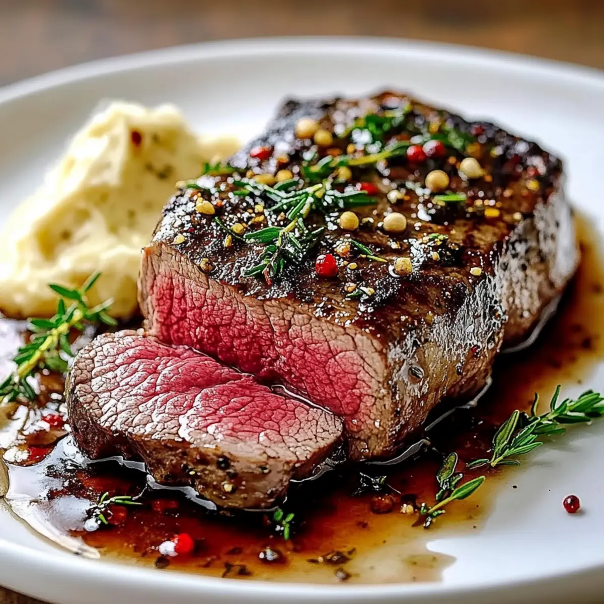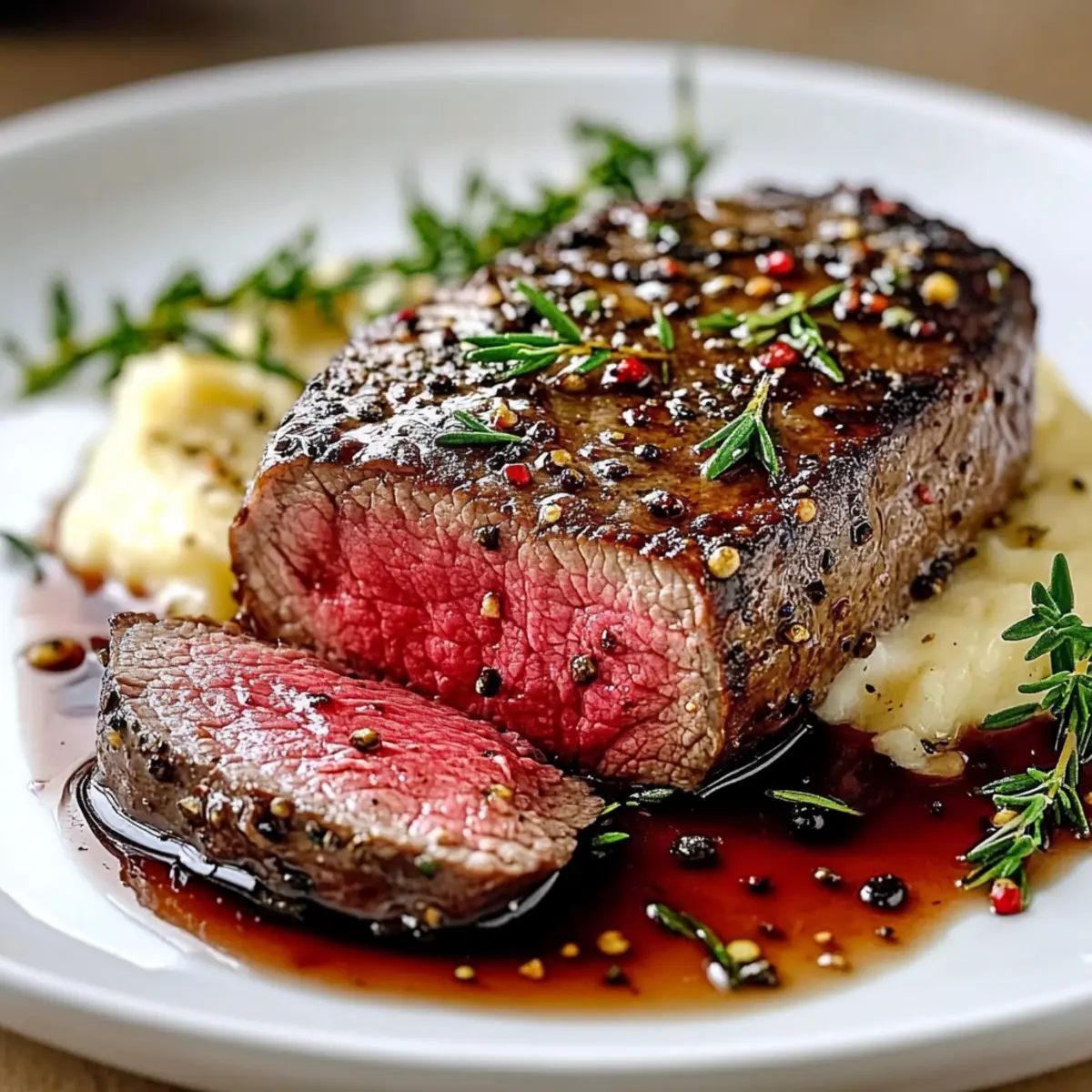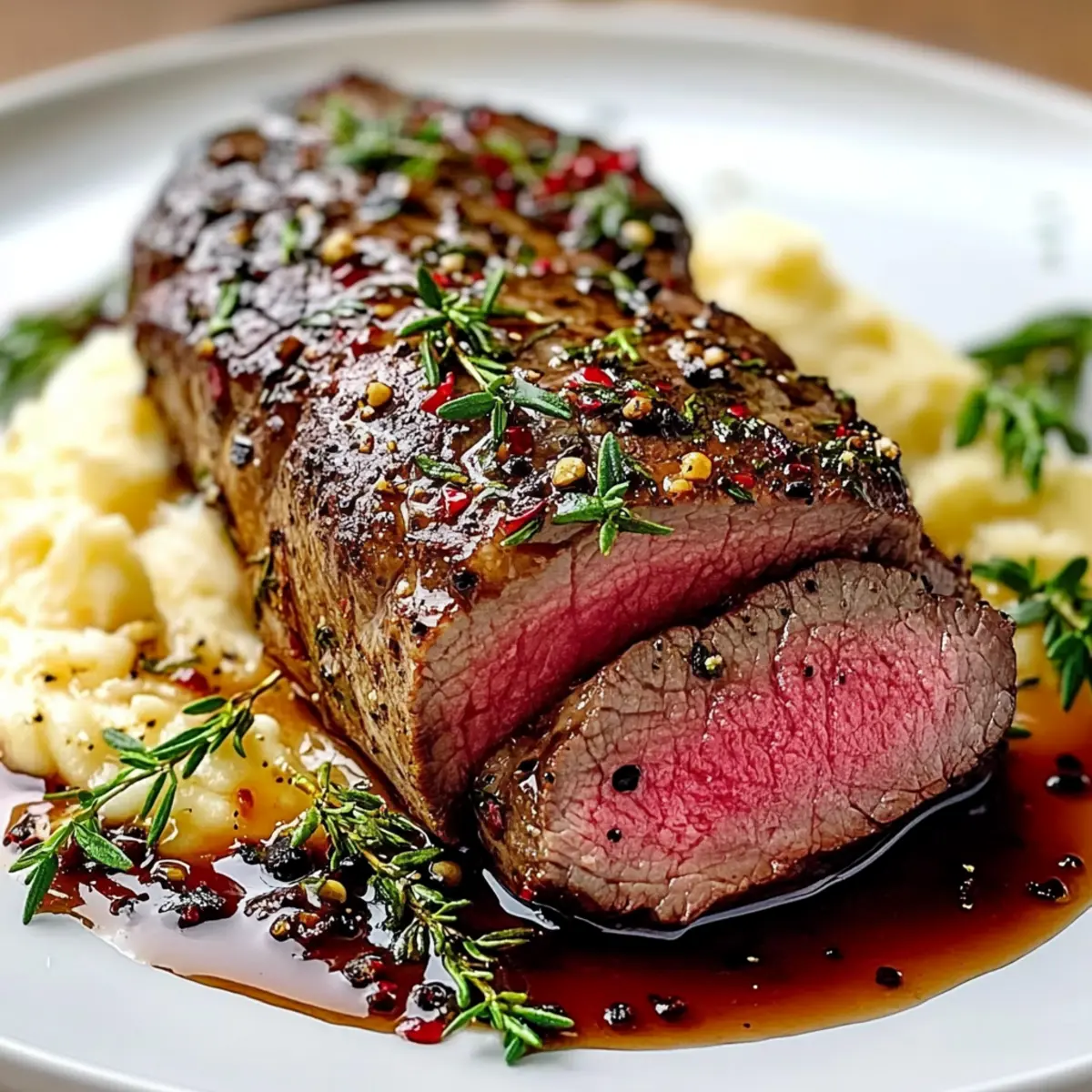 The kitchen was filled with the comforting aroma of sizzling garlic, mingling with the earthy notes of fresh herbs—it felt like a little piece of France had come to life. Today, I’m excited to share my recipe for French Beef Tenderloin with Garlic Herb Butter, a dish that turns simple ingredients into a masterpiece of restaurant-quality dining right in your home. Not only is this tenderloin perfect for impressing guests or celebrating special occasions, but it can also be prepped ahead of time for a stress-free meal. Imagine serving perfectly seared slices that melt in your mouth, each bite more enchanting than the last. Are you ready to elevate your dinner game and explore the delightful world of elegant home-cooked meals? Let’s dive in! Why is French Beef Tenderloin a Must-Try? Indulgent flavor: This dish offers a rich tapestry of tastes, combining perfectly seared beef with aromatic garlic and fresh herbs for a truly gourmet experience. Simple elegance: With just a few ingredients, you can create a restaurant-quality dish that dazzles at any dinner party. Stress-free entertaining: Enjoy the make-ahead advantage, allowing you to prep early and serve with ease, giving you more time to connect with your guests. Versatile pairings: Whether served with creamy mashed potatoes or a light salad drizzled with balsamic glaze, this tenderloin is perfect for any side, making it easy to adapt. Crowd-pleasing dish: Impress family and friends alike with a luxury meal that makes every occasion feel extra special. Try it alongside my Cheesy Ground Beef Melt for a comforting twist! French Beef Tenderloin Ingredients • Elevate your dinner with these rich flavors! For the Tenderloin Beef Tenderloin – The star of the dish, this cut is the key to a tender, juicy experience. Kosher Salt or Sea Salt – Enhances the beef’s natural flavor; use generously for the best taste. Freshly Ground Black Pepper – Adds a subtle spice that beautifully complements the meat. Extra Virgin Olive Oil – Used for searing, it contributes healthy fats and depth of flavor. For the Aromatics Fresh Thyme – Introduces earthy herbal notes; swap with dried thyme if fresh isn’t on hand. Fresh Rosemary – Offers aromatic flavor; try tarragon for a delightful twist. Garlic, minced – Infuses richness in the dish; fresh garlic is ideal for maximum impact. Unsalted Butter – Used for basting, it enhances the overall richness of the French Beef Tenderloin. Preparing this exquisite dish will surely impress your guests and elevate your home dining experience! Step‑by‑Step Instructions for French Beef Tenderloin with Garlic Herb Butter Step 1: Prepare the Tenderloin Begin by trimming any silver skin and excess fat from the beef tenderloin to ensure a tender texture when cooked. Pat the meat dry with paper towels, which helps achieve a beautiful sear later. Generously season the tenderloin on all sides with kosher salt and freshly ground black pepper, allowing the seasoning to enhance the rich flavors of the French Beef Tenderloin. Step 2: Sear the Tenderloin Heat a cast-iron skillet or heavy pan over medium-high heat and add a drizzle of extra virgin olive oil, just enough to coat the bottom. Once the oil is shimmering, carefully place the seasoned tenderloin in the skillet, searing each side for 3-4 minutes until a deep brown crust forms. This step is crucial as it locks in the juices and adds a stunning color to the French Beef Tenderloin. Step 3: Add Aromatics and Butter Reduce the heat to medium and introduce minced garlic, fresh thyme, and rosemary to the skillet, stirring them in the flavorful drippings. Immediately add a few tablespoons of unsalted butter, allowing it to melt and combine with the herbs and garlic. Use a spoon to baste the tenderloin with this mixture for about 2-3 minutes, enriching the meat with aromatic flavors while keeping it moist. Step 4: Roast the Tenderloin Preheat your oven to 400°F (200°C). Once the butter has infused the meat, transfer the skillet (if oven-safe) or the tenderloin to a roasting dish. Roast in the preheated oven for 15-25 minutes, depending on your desired level of doneness. Use a meat thermometer to check for medium-rare, aiming for an internal temperature of 130-135°F (54-57°C), ensuring perfectly cooked French Beef Tenderloin. Step 5: Rest and Slice Once the beef tenderloin reaches the desired temperature, remove it from the oven and let it rest on a cutting board for 10-15 minutes. This resting period is essential, as it allows juices to redistribute throughout the meat, ensuring each slice is juicy and tender. After resting, slice the tenderloin against the grain to enhance tenderness and showcase the beautiful pink interior. Step 6: Serve Arrange the sliced French Beef Tenderloin on a large platter, drizzling any remaining pan juices over the top for added flavor. To elevate presentation, garnish with fresh herb sprigs if desired. This exquisite dish is perfect for serving alongside creamy mashed potatoes, a light salad, or crusty baguette slices to soak up the delicious juices, creating a memorable dining experience. French Beef Tenderloin Variations Feel free to get creative and add your personal touch to this elegant dish. Let’s customize your experience! Beef Wellington Style: Wrap the tenderloin in puff pastry with mushroom duxelles for a stunning centerpiece. This twist transforms a classic into a breathtaking dish that’s sure to impress at dinner parties. Light Serving Option: Serve thinly sliced over a bed of arugula with shaved Parmesan and a drizzle of balsamic glaze. This refreshing twist creates a light and elegant presentation that’s perfect for warmer weather. Herb Variations: Swap in different fresh herbs like tarragon or oregano to give the dish a unique flavor profile. Experimenting with herbs can enhance the dish’s aromatic experience. Spicy Kick: Add a touch of heat by incorporating crushed red pepper flakes into the butter mixture.