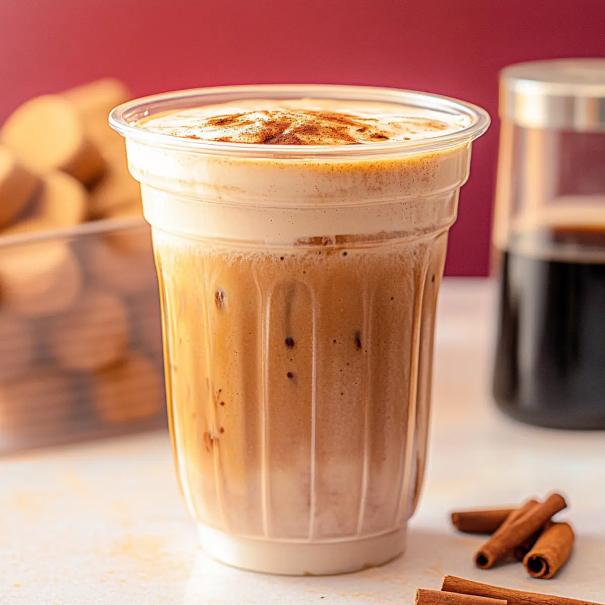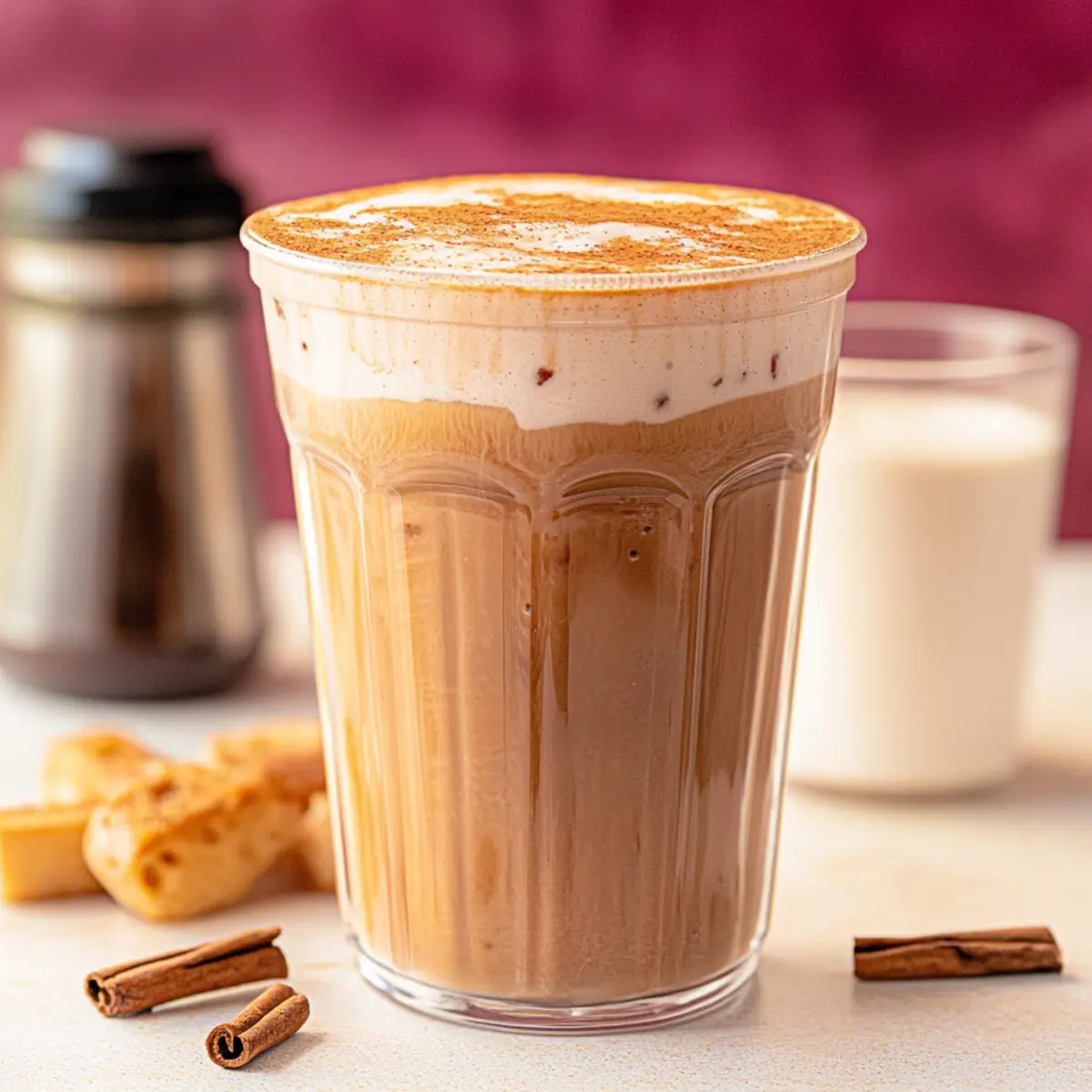 As I stood in front of my coffee maker, the aroma of freshly brewed espresso filled the air, dragging me momentarily back to lazy Sunday mornings. That’s when the idea of a French Toast Iced Latte struck me—an indulgent twist on a classic breakfast favorite. This recipe combines smooth espresso, creamy milk, and the heavenly flavors of pure maple syrup and warm cinnamon for a treat that dazzles the senses. Not only is this French Toast Iced Latte delightfully easy to prepare in just five minutes, but it’s also perfect for any time of the day, offering a refreshing pick-me-up that doesn’t shy away from comfort. Imagine savoring this drink while basking in sunlight or cozied up indoors on a chilly day. Are you ready to elevate your coffee game and bring that brunch vibe home? Let’s dive into this deliciously frothy wonder! Why Will You Love This Latte? Delicious flavors: This French Toast Iced Latte brings together smooth espresso and rich maple syrup, making each sip feel like a warm hug. Quick and easy: In just 5 minutes, you can whip up a luxurious drink without any complex techniques. Year-round enjoyment: Whether it’s a hot summer day or a cozy winter morning, this latte fits perfectly with any season. Creative variations: Feel free to switch up the flavors, from caramel to hazelnut, transforming this drink to satisfy your craving. Crowd pleaser: Serve it up for brunch or as an afternoon delight, and watch it become the star of your next gathering. For similar indulgent recipes, check out my Baked French Dip Biscuits for a savory treat or a sweet contrast with my Baked French Cruller. French Toast Iced Latte Ingredients • Get ready to brew bliss with these simple ingredients! For the Sweet Base 100% Pure Maple Syrup – Adds authentic sweetness and flavor; agave syrup or honey can be used as a substitute. Light Brown Sugar – Provides warmth and depth; granulated sugar works for a milder taste. Vanilla Bean Paste – Enhances richness with a subtle vanilla flavor; swap with vanilla extract if needed. Ground Cinnamon – Contributes cozy spices reminiscent of French toast; allspice can serve as a replacement. Sea Salt – Balances sweetness and elevates flavors; regular salt is an alternative. For the Coffee Base Espresso – The bold base of the latte; brewed coffee can be an option for a gentler taste. Ice – Essential for chilling your latte; nugget ice gives a softer texture while large cubes dilute slower. Milk – Adds creaminess; whole milk makes it rich, while almond milk suits a dairy-free version. Now that you have your ingredients ready, you’re just a few steps away from crafting your delicious French Toast Iced Latte! Step‑by‑Step Instructions for French Toast Iced Latte Step 1: Prepare the Sweet Base In a heat-safe glass, combine 2 tablespoons of 100% pure maple syrup, 1 tablespoon of light brown sugar, 1 teaspoon of vanilla bean paste, ¼ teaspoon of ground cinnamon, and a pinch of sea salt. Stir gently with a spoon until mixed, creating a sweet base that will evoke the beloved flavors of French toast. This will take about 1-2 minutes until well-combined and the sugar is starting to dissolve. Step 2: Brew the Espresso Brew 2 ounces of fresh espresso directly into the sweet mixture in the glass. If you don’t have an espresso machine, strong brewed coffee can be used instead. Mix steadily for about 30 seconds, helping the sugar dissolve completely while the mixture becomes lighter in color and creamy. The aroma should be inviting, reflecting the warm flavors of your French Toast Iced Latte. Step 3: Chill the Glass While the espresso is brewing, prepare a 20 to 24-ounce cup filled with ice. Use nugget ice for a softer texture or large ice cubes to keep the latte chilled longer. If you’re looking for an extra-cold treat, consider placing the glass in the freezer for about 15-20 minutes beforehand to ensure your drink stays refreshingly cool. Step 4: Add the Milk Pour in 6 to 8 ounces of your choice of milk over the ice—go for whole milk for richness or opt for almond milk for a dairy-free option. Gently stir to combine the milk with the ice before pouring in the delicious frothed espresso mixture. This method creates a layered effect and ensures your French Toast Iced Latte is perfectly balanced. Step 5: Combine and Serve Gently pour the frothy espresso and sweet mixture over the milk and ice in your prepared cup. Use a long spoon or a straw to stir together the layers, creating a beautiful marbled effect. This step is crucial for blending the comforting flavors, reminiscent of classic French toast, while producing a frothy topping that completes this delightful drink. Expert Tips for the Best French Toast Iced Latte Chill Your Glass: Place your serving glass in the freezer for 15-20 minutes before making the latte. This ensures your drink stays refreshingly cold longer. Frothing Technique: When mixing your sweet base with freshly brewed espresso, stir continuously until the mixture becomes frothy and pale, which enhances the latte’s creamy texture. Adjust Sweetness: Taste your mixture before serving; feel free to add more maple syrup or sugar according to your preference for the ideal French Toast Iced Latte sweetness. Ice Choice: Choose nugget ice for a soft mouthfeel or large cubes if you want to minimize dilution. This helps maintain the drink’s delightful flavor longer. Experiment with Flavors: Don’t hesitate to swap maple syrup for flavored syrups like caramel or hazelnut to create unique variations and keep your French Toast Iced Latte interesting. Make Ahead Options These French Toast Iced Lattes are perfect for meal prep enthusiasts wanting to save time on busy mornings! You can prepare the sweet base (maple syrup, brown sugar, vanilla bean paste, cinnamon, and sea salt) up to 24 hours in advance. Just mix and refrigerate in an airtight container. For the best flavor, brew the espresso fresh right before serving; however, you can bre