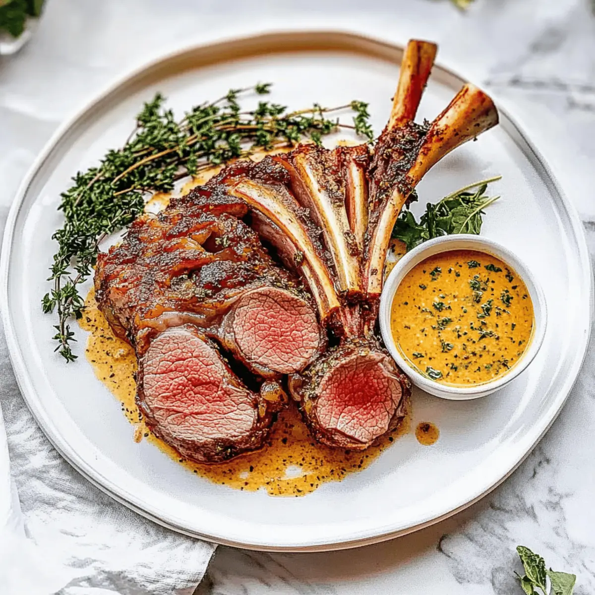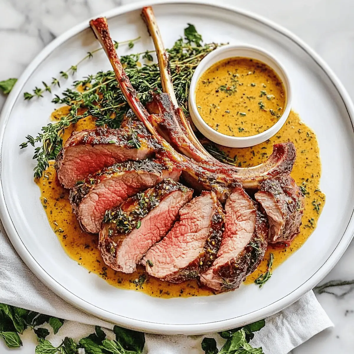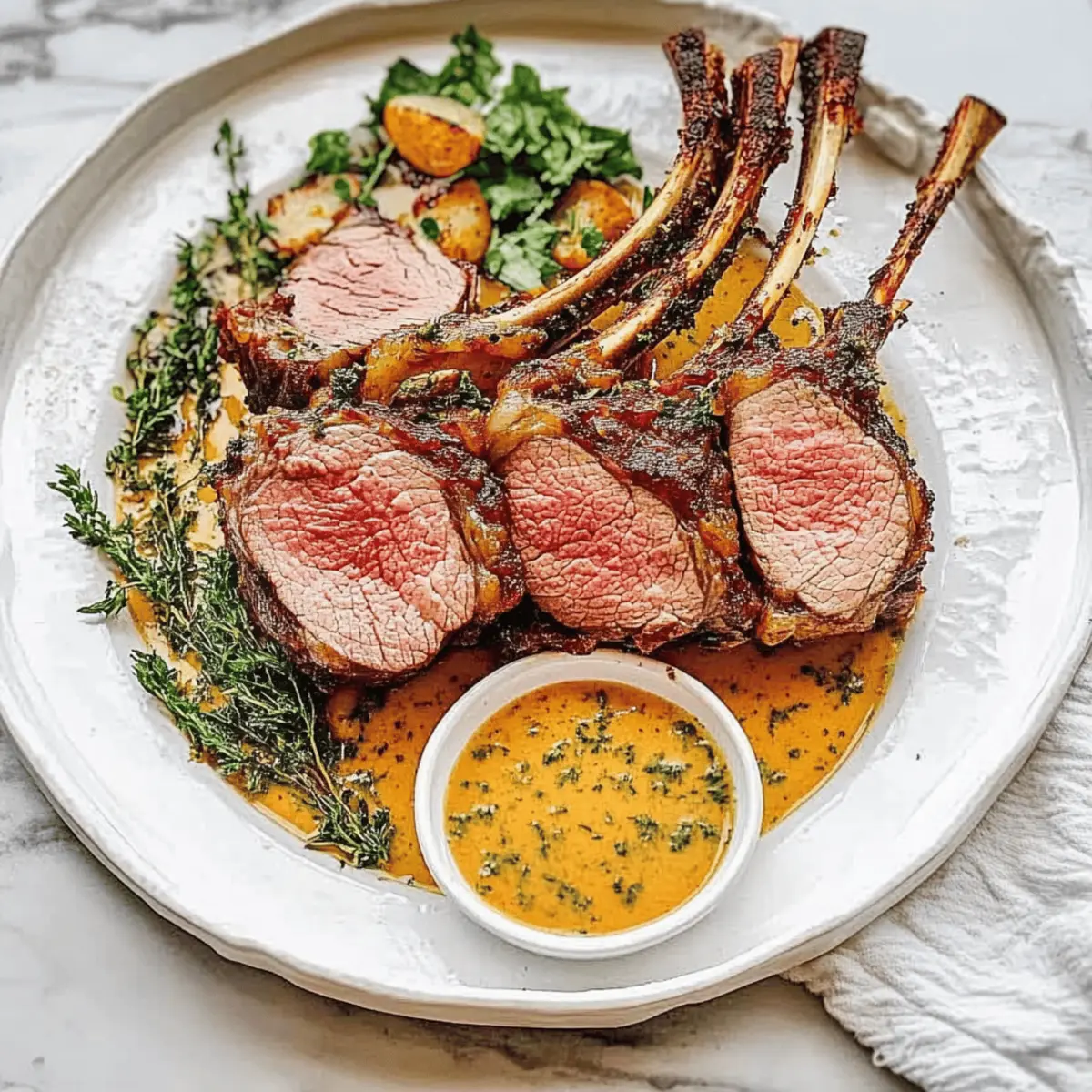 There’s nothing quite like the aroma of garlic and rosemary filling the kitchen, creating a comforting backdrop for a festive gathering. When it comes to an impressive main course, I can’t think of anything better than a Garlic and Rosemary Crusted Rack of Lamb with Mint Sauce. This dish isn’t just about flavors; it’s a showstopper that elevates any dinner to a new level of elegance, making it a perfect choice for special occasions. Not only is the preparation surprisingly simple, but the tender, succulent meat paired with a bright mint sauce will leave your guests raving. On top of that, the vibrant herb crust adds a delightful crunch that’s utterly irresistible. Ready to bring this sophisticated feast to your table? Let’s dive into the details! Why is this Lamb Recipe so Special? Fragrant Aromatics: The blend of garlic and rosemary creates a mouthwatering aroma that fills your home, setting the stage for an unforgettable feast. Impressive Presentation: With the beautifully frenched racks, your dish will look like it’s straight from a gourmet restaurant, impressing even the toughest critics at your dinner table. Juicy Perfection: A meat thermometer ensures your lamb is cooked to juicy perfection, making every bite a tender delight. Versatile Pairings: This dish pairs wonderfully with sides like creamy mashed potatoes or seasonal roasted vegetables, allowing you to create a festive spread. Effortless Preparation: You’ll find the prep is surprisingly simple, allowing you to enjoy more time with your guests rather than slaving away in the kitchen. Let’s get started and create a feast that everyone will remember! Garlic and Rosemary Crusted Rack of Lamb with Mint Sauce Ingredients For the Lamb • Rack of Lamb (2 racks, 1.5 pounds each) – This tender cut is the star of the show, so make sure they are frenched for an elegant look. • Garlic (4 cloves, minced) – Fresh garlic is essential; it infuses the crust with a robust and aromatic flavor. • Rosemary (2 tablespoons, fresh, finely chopped) – Adds deep, fragrant notes; substitute with thyme for a different herbaceous kick. • Olive Oil (2 tablespoons) – Extra virgin not only binds the crust but also enhances the flavor, giving a crispy texture during roasting. • Salt and Pepper – These staples are vital for elevating the overall taste; adjust them to suit your palate. For Mint Sauce • Fresh Mint Leaves (1 cup, finely chopped) – The key to a refreshing sauce; use more leaves if you prefer a stronger mint flavor. • Red Wine Vinegar (1/4 cup) – Provides a delightful acidity that balances the sauce; feel free to swap in apple cider vinegar if necessary. • Honey (2 tablespoons) – This sweetener perfectly complements the tanginess, or you can choose maple syrup for a vegan twist. • Extra Virgin Olive Oil (1/4 cup) – Enhances the richness of the sauce; use another light oil if you want something different. • Salt and Pepper – Always adjust to taste for a rich, harmonious flavor profile in your mint sauce. This Garlic and Rosemary Crusted Rack of Lamb with Mint Sauce will make any occasion feel special! Step‑by‑Step Instructions for Garlic and Rosemary Crusted Rack of Lamb with Mint Sauce Step 1: Preheat the Oven Start by preheating your oven to 425°F (220°C). This high temperature will ensure a beautifully roasted Garlic and Rosemary Crusted Rack of Lamb, allowing the herbs to become fragrant and the exterior to achieve a lovely crust. While the oven heats, gather your ingredients and tools, including a roasting pan and a meat thermometer for precise cooking. Step 2: Make the Garlic-Rosemary Paste In a small bowl, combine the minced garlic, finely chopped rosemary, olive oil, salt, and pepper to create a flavorful paste. Mix well until the ingredients are fully blended, resembling a thick paste. This aromatic mixture will form the delicious crust on your lamb, so ensure it’s evenly mixed to infuse the meat with outstanding flavor. Step 3: Prepare the Rack of Lamb Season the frenched racks of lamb generously with salt and pepper on both sides. Then, take the garlic-rosemary paste and rub it evenly over the meat, ensuring all surfaces are well-coated. This step is essential for achieving a maximum flavor profile in your Garlic and Rosemary Crusted Rack of Lamb, so take your time to massage the paste into the meat. Step 4: Sear the Lamb Place an oven-safe skillet over medium-high heat, and add the lamb racks, fat side down. Sear for about 3-4 minutes, or until they are nicely browned and have developed a rich color. This initial browning will enhance the depth of flavor in your dish, creating a wonderful contrast to the herb crust. Step 5: Roast the Lamb After searing, flip the racks over and transfer the skillet to your preheated oven. Roast the lamb for 15-20 minutes, keeping an eye on the internal temperature. Use a meat thermometer to check for 135°F (57°C) for a perfect medium-rare finish. The lamb should be golden and aromatic, showcasing the delightful crust you created earlier. Step 6: Prepare the Mint Sauce While the lamb roasts, whisk together the finely chopped mint leaves, red wine vinegar, honey, olive oil, salt, and pepper in a bowl. Mix until smooth, allowing the flavors to meld beautifully. This refreshing mint sauce will perfectly complement the rich Garlic and Rosemary Crusted Rack of Lamb, adding a vibrant touch to each bite. Step 7: Rest the Lamb Once the lamb has reached the desired temperature, remove it from the oven and let it rest for 5-10 minutes in the skillet. This resting period allows the juices to redistribute throughout the meat, ensuring each slice is tender and juicy. The crust should remain intact, ready for slicing into elegant chops. Step 8: Serve and Enjoy After resting, slice the lamb into individual chops and arrange them on a serving platter. Serve your Garlic and Rosemary Crusted Rack of Lamb with the freshly made mint sauce on the side, inviting