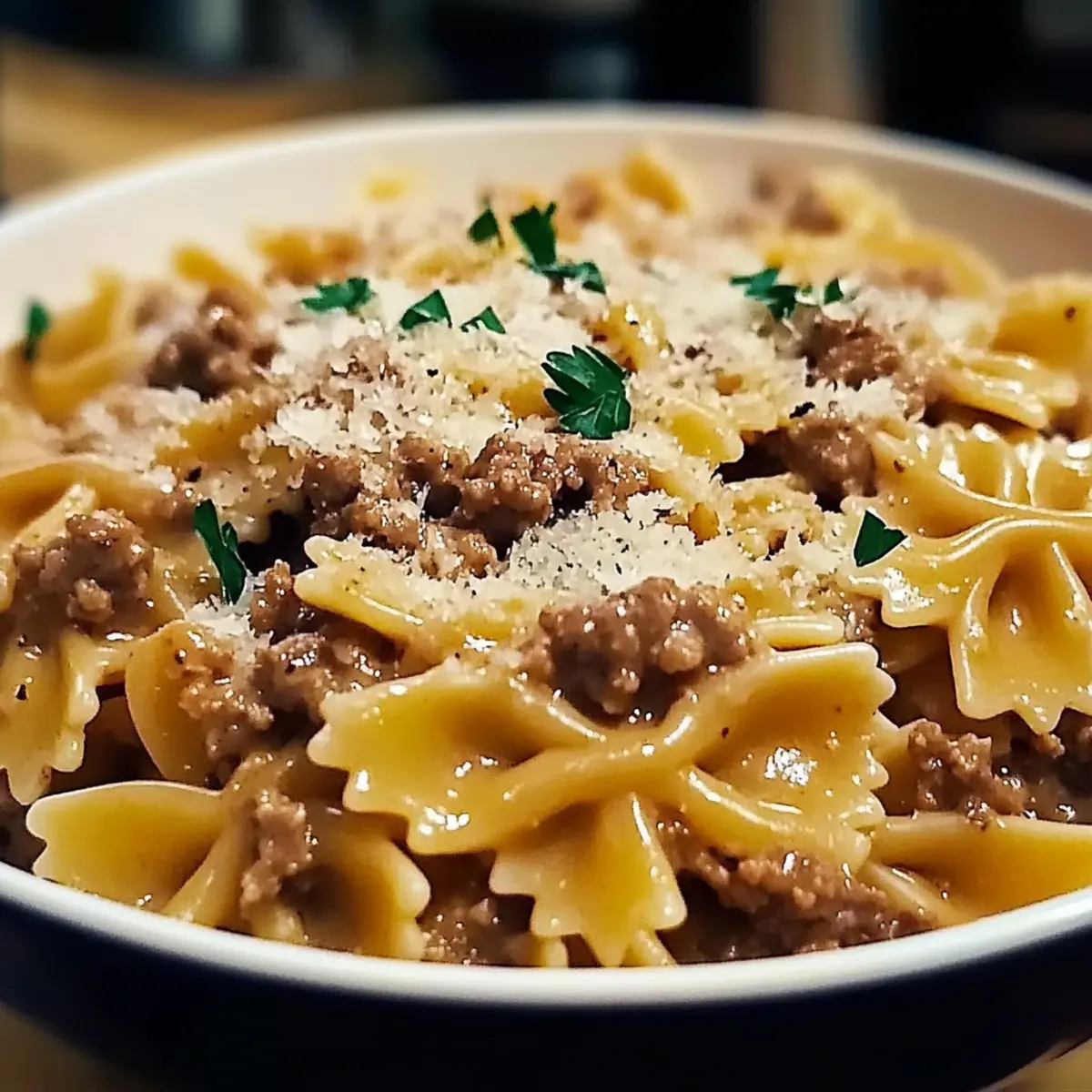 Delicious Garlic Parmesan Bowtie Pasta with Creamy Beef, perfect for quick dinners and customizable for every dietary need.