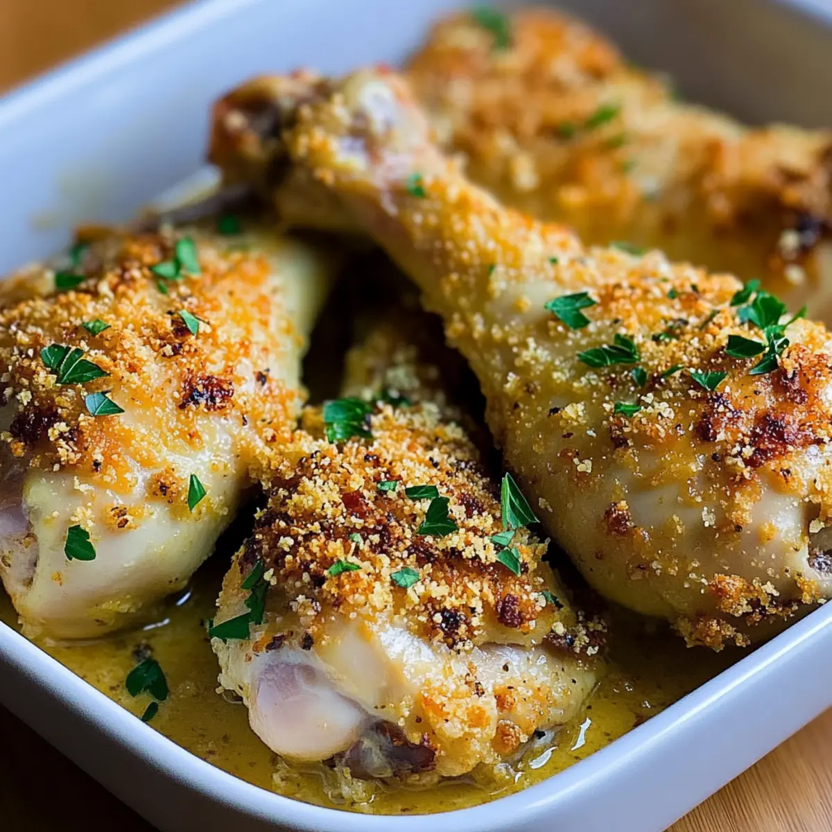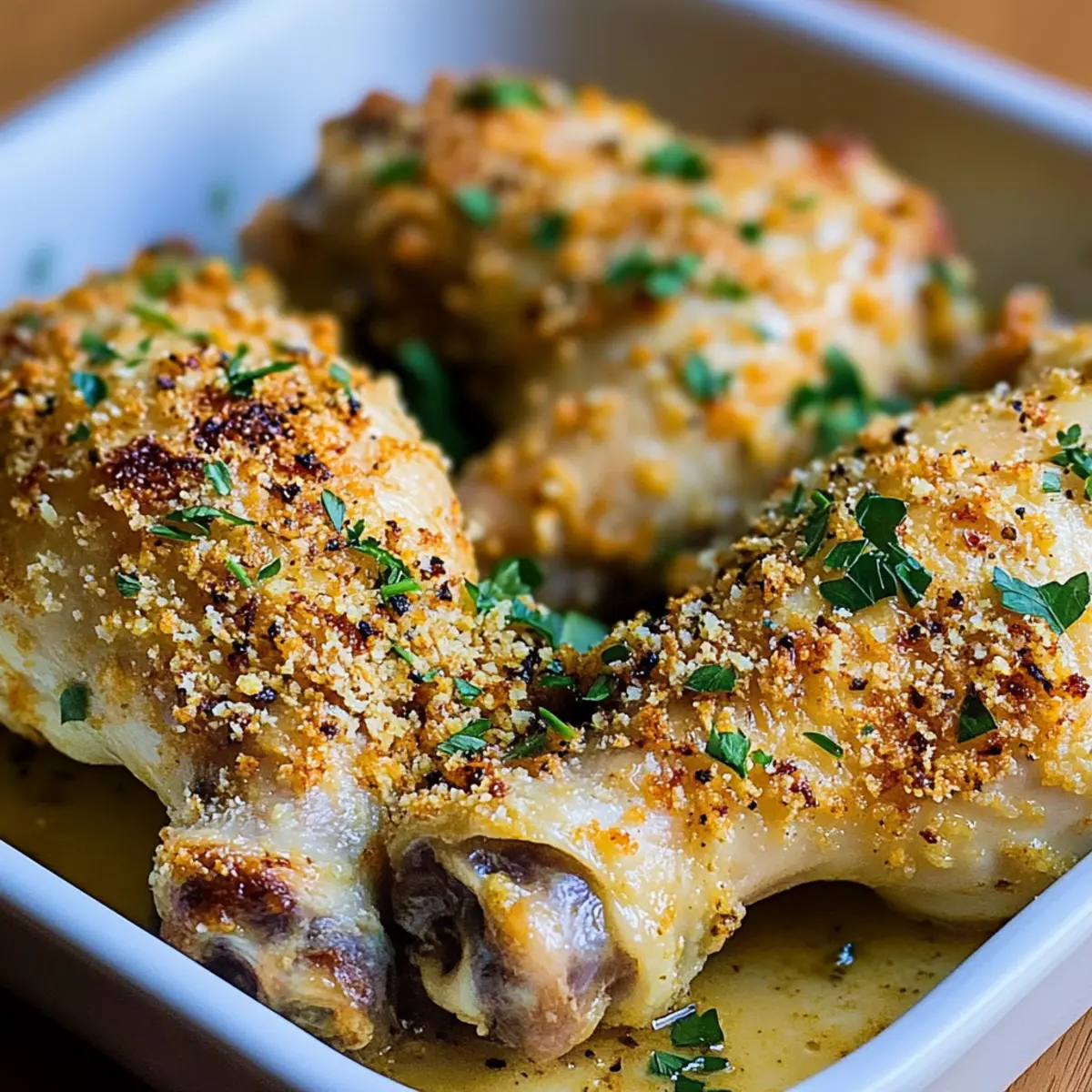 The aroma of garlic and Parmesan wafts through my kitchen, instantly transporting me to a cozy Italian trattoria. It’s incredible how a simple dish can evoke such comfort and satisfaction, and that’s exactly what you’ll experience with these Garlic Parmesan Chicken Legs. This crispy, flavorful comfort food not only makes an effortless centerpiece for weeknight dinners but is also gluten-free, ensuring that everyone can indulge without compromise. With minimal prep time and pantry staples, this recipe promises juicy, tender chicken every time—perfect for family gatherings or meal prep. If you’re ready to impress your loved ones with a dish that tastes gourmet without the fuss, keep reading. You won’t want to miss these savory bites! Why Are Garlic Parmesan Chicken Legs So Irresistible? Simplicity: This recipe requires just a handful of pantry staples, making it easy for anyone to whip up. Flavor Explosion: The rich garlic aroma and savory Parmesan blend create mouthwatering layers of taste that will make your family ask for seconds. Crowd-Pleasing: These chicken legs are perfect for gatherings, whether paired with roasted veggies or creamy mashed potatoes for a complete meal. Check out how to create delightful sides to serve alongside this dish. Gluten-Free Delight: Enjoy hearty comfort food without worrying about dietary restrictions, as this dish accommodates gluten-free needs effortlessly. Time-Saving: With minimal prep and a quick bake time, you can have dinner on the table in no time, leaving more moments to enjoy with your loved ones. Garlic Parmesan Chicken Legs Ingredients Get ready to savor every bite with these delightful, crispy chicken legs! For the Chicken Chicken Legs (drumsticks) – These are your main protein, and using legs ensures juicy, tender meat. Olive Oil (2 tbsp) – Helps the coating adhere and achieves a beautifully crispy exterior. For the Coating Garlic (2 cloves, minced) – Fresh garlic elevates the flavor, giving a robust punch that complements the Parmesan beautifully. Grated Parmesan Cheese (½ cup) – Opt for freshly grated for a more intense and savory flavor. Breadcrumbs (⅓ cup) – Adds that crave-worthy crunch; try gluten-free options for a dietary-friendly choice. Paprika (1 tsp) – Offers a mild smoky flavor and a beautiful color to the coating. Salt (½ tsp) & Black Pepper (½ tsp) – Essential for balancing flavors; adjust to your taste. For Garnish Fresh Parsley (2 tbsp, chopped) – Introduces a pop of freshness and color when serving, enhancing the dish’s visual appeal. With these ingredients, you’ll create Garlic Parmesan Chicken Legs that are bursting with flavor and sure to be a hit at your dinner table! Step‑by‑Step Instructions for Garlic Parmesan Chicken Legs Step 1: Preheat the Oven Begin by preheating your oven to 400°F (200°C). While the oven heats up, prepare a baking sheet by lining it with parchment paper or lightly greasing it with cooking spray. This will help prevent sticking and ensures easy cleanup later. Step 2: Prepare the Coating In a mixing bowl, combine the grated Parmesan cheese, minced garlic, breadcrumbs, paprika, salt, and black pepper. Stir the mixture until well blended, creating a fragrant coating that will envelop the Garlic Parmesan Chicken Legs. Set this bowl aside while you prepare the chicken. Step 3: Prep the Chicken Pat the chicken legs dry with paper towels to remove excess moisture, which allows the coating to adhere better. Next, drizzle olive oil over the legs, ensuring they are evenly coated. This step is crucial for achieving a crispy exterior when the chicken is baked. Step 4: Coat the Chicken Take each chicken leg and press it firmly into the Parmesan mixture, ensuring it is evenly covered on all sides. Place the coated chicken legs on the prepared baking sheet, leaving enough space between them for air circulation to achieve perfect crispiness. Step 5: Bake the Chicken Slide the baking sheet into the preheated oven and bake the Garlic Parmesan Chicken Legs for 35 to 45 minutes. Keep an eye on them and look for a golden-brown color and a crispy crust. Use a meat thermometer to check that the internal temperature reaches 165°F (74°C) for fully cooked chicken. Step 6: Serve and Garnish Once baked, remove the chicken legs from the oven and let them rest for a few minutes. Garnish with freshly chopped parsley to add a pop of color and freshness. Serve the Garlic Parmesan Chicken Legs warm, and enjoy the irresistible blend of flavors at your next family dinner! Expert Tips for Garlic Parmesan Chicken Legs Crispy Finish: Broil the chicken for an additional 2–3 minutes after baking to achieve a wonderfully crispy crust that’s hard to resist. Meat Thermometer: Always use a meat thermometer to ensure your chicken legs reach an internal temperature of 165°F (74°C) for safety and juiciness. Even Cooking: Ensure all chicken legs are similar in size to promote even cooking, avoiding overcooked or undercooked pieces. Fresh Ingredients: Opt for freshly grated Parmesan and minced garlic for the best flavor; pre-grated alternatives can lack the necessary richness. Gluten-Free Options: Substitute regular breadcrumbs with gluten-free options to cater to dietary needs while still enjoying delicious Garlic Parmesan Chicken Legs. Garlic Parmesan Chicken Legs Variations & Substitutions Feel free to play with the flavors and ingredients for your Garlic Parmesan Chicken Legs; your creativity can turn this already delectable dish into something uniquely yours! Spicy Twist: Add 1 teaspoon of cayenne pepper to the breadcrumb mixture for a spicy kick that awakens the taste buds. Herb-Infused: Incorporate 1 tablespoon of dried Italian herbs like oregano or thyme into the coating for an aromatic burst of flavor. Cheesy Variation: Substitute half the Parmesan with crumbled feta or goat cheese for a tangy twist that’s deliciously unexpected. Low-Carb Alternative: Swap regular breadcrumbs with cru