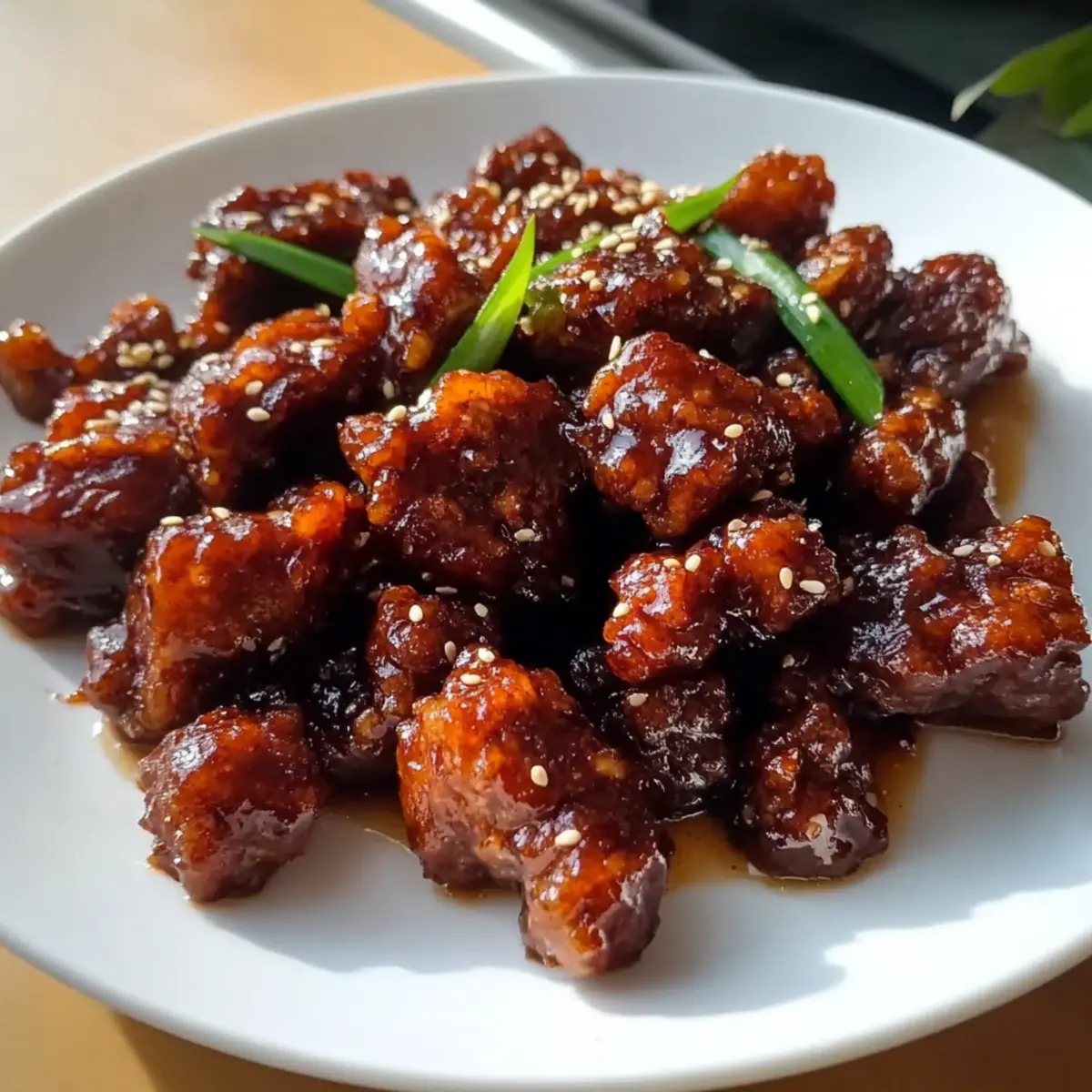 The sizzling sound of steak hitting the pan is undeniably one of the most comforting sounds in the kitchen. As the aroma of these Glazed Sticky Beef Bites fills the air, I’m always reminded of cozy family gatherings and the joy of sharing good food. These tender steak cubes are draped in a luscious honey-soy glaze that strikes the perfect balance between sweet and savory. What’s even better? This quick recipe not only makes for an impressive appetizer but also doubles as a delightful main dish that’s sure to please the crowd. Plus, you have the freedom to adjust the beef cuts and sweeteners to suit your taste or dietary needs! Are you ready to take your taste buds on an unforgettable journey? Let’s dive in! Why Are These Beef Bites Irresistible? Tender, Juicy Steak: Each bite is perfectly seared to lock in the flavors, making it a guaranteed crowd-pleaser. Sweet and Savory Harmony: The honey-soy glaze elevates the dish with a luscious richness that balances bold and sweet notes. Easy Cooking: Minimal prep and quick cooking time mean you can savor this dish on busy weeknights or impress guests in a flash. Versatile Ingredients: Customize your beef cut and opt for gluten-free soy sauce or maple syrup to suit dietary preferences, just like you can with recipes like Cheesy Ground Beef or Ground Beef Enchiladas. Perfect Party Appetizer: Impress your friends and family with these delicious bites that are sure to start conversations! Glazed Sticky Beef Bites Ingredients • Get ready to whip up this delicious dish with our essential ingredients! For the Beef Bites Steak (sirloin, ribeye, flank, or skirt) – Choose any tender cut of beef suitable for quick cooking to ensure a juicy bite. Oil (vegetable or canola) – This oil is perfect for searing the beef, creating a crispy exterior that seals in flavor. For the Glaze Soy Sauce – Adds depth and umami to the glaze; opt for gluten-free soy sauce or tamari if needed. Honey – This sweet component enhances the glaze’s flavor beautifully; you can substitute it with maple syrup or brown sugar for a different sweetness. For Garnish Sesame Seeds – These add a nutty crunch and visual appeal; they’re optional but highly recommended for added texture. Scallions or Cilantro – Sprinkle these for a refreshing burst of color and flavor to elevate your dish! Now that you have everything you need to create these mouthwatering Glazed Sticky Beef Bites, let’s dive into the cooking process! Step‑by‑Step Instructions for Glazed Sticky Beef Bites Step 1: Heat the Skillet Start by heating a tablespoon of oil in a large skillet over medium-high heat until it shimmers, typically about 2 minutes. This ensures a perfect sear on the beef cubes, locking in their juices and flavor. Keep an eye on the oil; once you see slight ripples, it’s ready for cooking! Step 2: Sear the Beef Carefully add the beef cubes to the skillet in a single layer, ensuring they don’t overcrowd the pan. Let them cook undisturbed for about 2-3 minutes on each side, allowing them to develop a beautiful golden-brown crust. This step is essential for those delicious Glazed Sticky Beef Bites, so resist the urge to move them around! Step 3: Add the Glaze Ingredients Once the beef is nicely seared, pour in the soy sauce and honey, stirring gently to coat the beef evenly. The sizzling sound as the glaze meets the hot steak is music to any home cook’s ears. Make sure all the beef bites are enveloped in that rich mixture for maximum flavor. Step 4: Simmer and Thicken Reduce the heat to medium-low, allowing the glaze to simmer for about 5-7 minutes. Watch closely as the liquid thickens to a glossy finish, clinging perfectly to your beef bites. This is the time when those mouthwatering flavors meld, transforming your dish into something truly special. Step 5: Rest and Serve Remove the skillet from heat and let your Glazed Sticky Beef Bites rest for a couple of minutes. This resting period is crucial for letting the flavors meld and allows the glaze to set. Once ready, serve the beef bites in a shallow bowl, garnishing with sesame seeds and sliced scallions for a lovely finish. What to Serve with Glazed Sticky Beef Bites The perfect accompaniment can transform these delectable beef bites into a memorable meal, enhancing every savory morsel with delightful contrasts and flavors. Steamed Jasmine Rice: This fluffy, fragrant rice soaks up the savory glaze perfectly, providing a comforting and filling base for your beef bites. Asian Slaw: Crisp, fresh, and vibrant, slaw adds a refreshing crunch that balances the rich glaze beautifully. The brightness of the veggies complements the savory flavors of the beef. Garlic Fried Rice: Infused with aromatic garlic and a hint of soy, this dish offers a satisfying, hearty complement to the tender beef bites, perfect for a filling meal. Grilled Vegetables: A medley of grilled bell peppers, zucchini, and asparagus provides a smoky flavor and vibrant color, providing a healthy and balanced addition to the dinner plate. Cucumber Salad: This light and crisp salad, dressed in a tangy vinegar, is an excellent way to cleanse the palate between rich bites, refreshing your senses with each mouthful. Sesame Noodles: Flavorful noodles tossed in sesame oil and garlic make for a delightful side that echoes the meaty flavors while adding a comforting chewiness. Spring Rolls: Light and airy, spring rolls stuffed with fresh veggies and herbs can serve as a fun appetizer or side, enhancing the overall dining experience with added texture and crunch. Sake or Asian Beer: Pair your meal with a chilled bottle of sake or a light Asian beer to elevate the flavors, balancing the sweet and savory notes of the beef. Glazed Sticky Beef Bites Variations Feel free to put your own spin on these Glazed Sticky Beef Bites! Let your imagination run wild as you explore these delightful tweaks. Protein Swap: Use chicken or tofu in place of beef for a lighter alternative. This way,