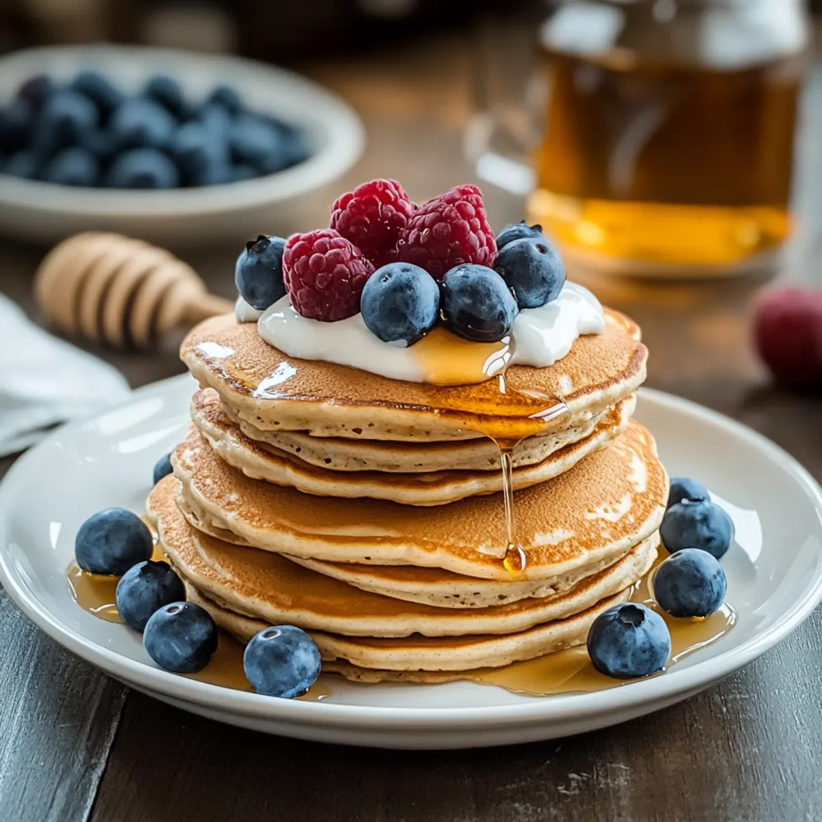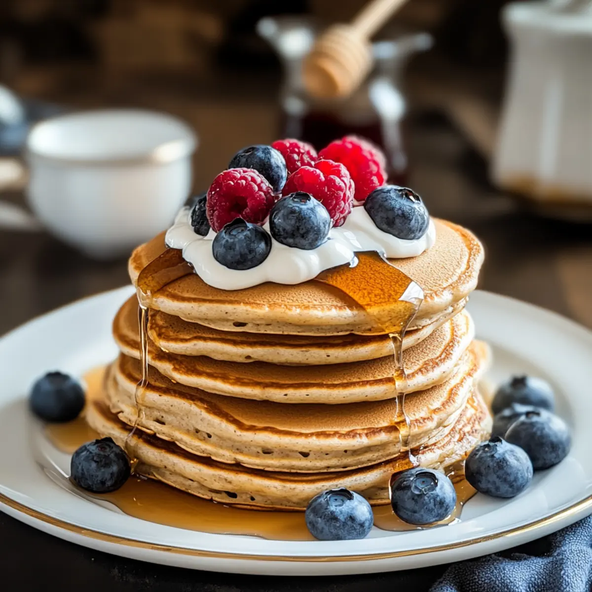 As I flipped the golden pancakes, the aroma of toasted oats began to weave its way through my kitchen, instantly triggering that cozy familiarity only homemade breakfast can provide. My High Protein Greek Yogurt Oatmeal Pancakes are not just another weekend treat; they’re a nourishing way to fuel your day. Bursting with fiber and protein, these pancakes offer a quick solution for those busy mornings or a satisfying post-workout meal. Plus, they’re easy to customize—think blueberries or chocolate chips! Why settle for the same old routine when you can savor each bite of this delightful twist on a classic favorite? What will you top them with to make them truly yours? Why Choose Greek Yogurt Oatmeal Pancakes? Healthy indulgence: These pancakes are a guilt-free way to enjoy breakfast while getting protein-packed nutrients. Customizable goodness: Easy to tailor with your favorite mix-ins like blueberries or nuts for added flavor and texture. Quick prep: Whip them up in minutes—perfect for hectic mornings or a leisurely brunch. Family-friendly: Everyone will love these soft, fluffy pancakes, making them a hit for breakfast gatherings. Meal prep superstar: Make a batch ahead and store in the fridge or freezer for easy, delicious breakfasts anytime! Pair them with a side of homemade Kofta Garlic Yogurt for a nutritious kick, or try a drizzle of Garlic Butter Shrimp for a unique fusion experience. Greek Yogurt Oatmeal Pancakes Ingredients For the Batter Oats – These provide structure and fiber; you can substitute with oat flour for a finer texture. Greek Yogurt – Adds protein and a creamy texture; swap for regular yogurt if you want a lower protein content. Eggs – Bind the ingredients together and add moisture; replace with flax eggs for a vegan version. Baking Powder – Ensures your pancakes rise for that fluffy texture; check for freshness for the best results. Sweetener (e.g., honey or maple syrup) – Gives natural sweetness; consider coconut sugar or stevia for a lower-calorie alternative. Milk (or plant-based alternative) – Adjusts the batter’s consistency; almond milk or oat milk are delicious substitutes. For Serving Fresh Fruit – Adds a burst of flavor and nutrition; think berries, bananas, or whatever’s in season! Nut Butter – A protein-rich topping that makes these pancakes even more satisfying; almond or peanut butter work wonderfully. Maple Syrup – Drizzle on top for that classic sweet touch; it’s perfect for enhancing the flavor of your Greek Yogurt Oatmeal Pancakes! Optional Extras Add-ins – Consider adding blueberries, chocolate chips, or chopped nuts for extra flavor and texture. Spices – A dash of cinnamon or vanilla extract can elevate the pancake experience. Step‑by‑Step Instructions for Greek Yogurt Oatmeal Pancakes Step 1: Prepare the Batter In a blender, combine oats, Greek yogurt, eggs, baking powder, your choice of sweetener, and milk. Blend on medium speed until the mixture is smooth and creamy, ensuring there are no large oat chunks. This should take about 30 seconds. The resulting batter should be thick but pourable, perfect for your Greek Yogurt Oatmeal Pancakes. Step 2: Heat the Pan Preheat a non-stick frying pan or griddle over medium heat for about 5 minutes. You want the surface hot enough that a drop of water sizzles when it makes contact. Lightly grease the surface with a bit of oil or cooking spray, ensuring even cooking and easy flipping of your pancakes. Step 3: Cook the Pancakes Pour about a quarter cup of batter onto the heated pan for each pancake. Use the back of a spoon to gently spread the batter into a circular shape if necessary. Cook for 2-3 minutes, or until you see bubbles forming on the surface and the edges appear set. This visual cue indicates it’s time to flip! Step 4: Flip and Finish Cooking Carefully flip each pancake with a spatula and cook for an additional 2-3 minutes. Watch for the pancakes to turn golden brown on the cooked side, indicating they’re perfectly done. You may need to adjust the heat slightly if they brown too quickly or slowly; the ideal temperature is key for fluffy Greek Yogurt Oatmeal Pancakes. Step 5: Serve Once the pancakes are golden on both sides, transfer them to a warm oven (set to low) to keep them warm while you cook the remaining batter. Serve them immediately with your favorite toppings like fresh fruit, nut butter, or a drizzle of maple syrup, allowing the delicious flavors of the Greek Yogurt Oatmeal Pancakes to shine through! What to Serve with High Protein Greek Yogurt Oatmeal Pancakes Indulging in a warm stack of pancakes is just the beginning; let’s elevate your breakfast experience with delightful sides and toppings! Fresh Berries: Juicy strawberries, blueberries, or raspberries add a burst of flavor and visual appeal to your pancakes. Nut Butter: A smooth drizzle of almond or peanut butter enhances the pancakes’ protein content while adding a rich, creamy texture. Maple Syrup: A classic choice, this sweet syrup perfectly complements the wholesome flavors of the pancakes, making every bite a treat. Greek Yogurt Topping: For an extra protein boost and a tangy twist, top with a dollop of plain Greek yogurt—delicious and nutritious! Chopped Nuts: A sprinkle of walnuts or almonds offers a crunchy texture contrast, elevating each mouthful to delightful new heights. Banana Slices: Adding soft, sweet banana slices enhances the overall flavor while introducing a tropical flair to your breakfast table. Cinnamon Sugar: A light dusting of cinnamon sugar brings warmth and aromatic sweetness that beautifully contrasts the pancake’s flavors. Honey Drizzle: For a touch of natural sweetness, a drizzle of honey can add complexity and richness to your pancake stack. Coconut Flakes: Toasted coconut flakes add a delightful crunch and a hint of tropical flavor that pairs beautifully with your pancakes. Smoothie: Pair with a refreshing fruit smoothie for a light and nutritious 